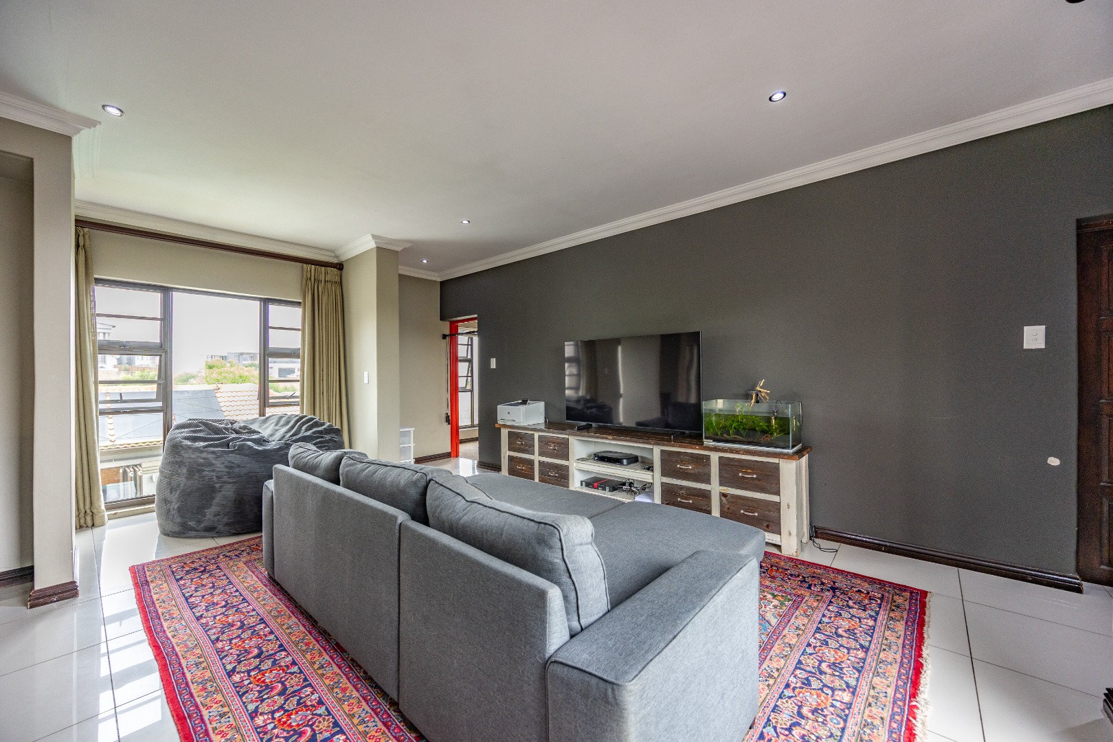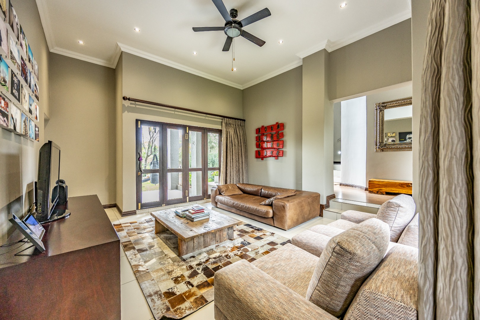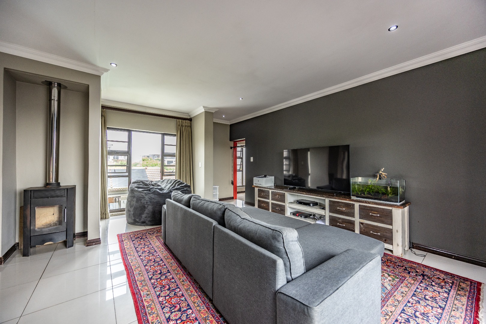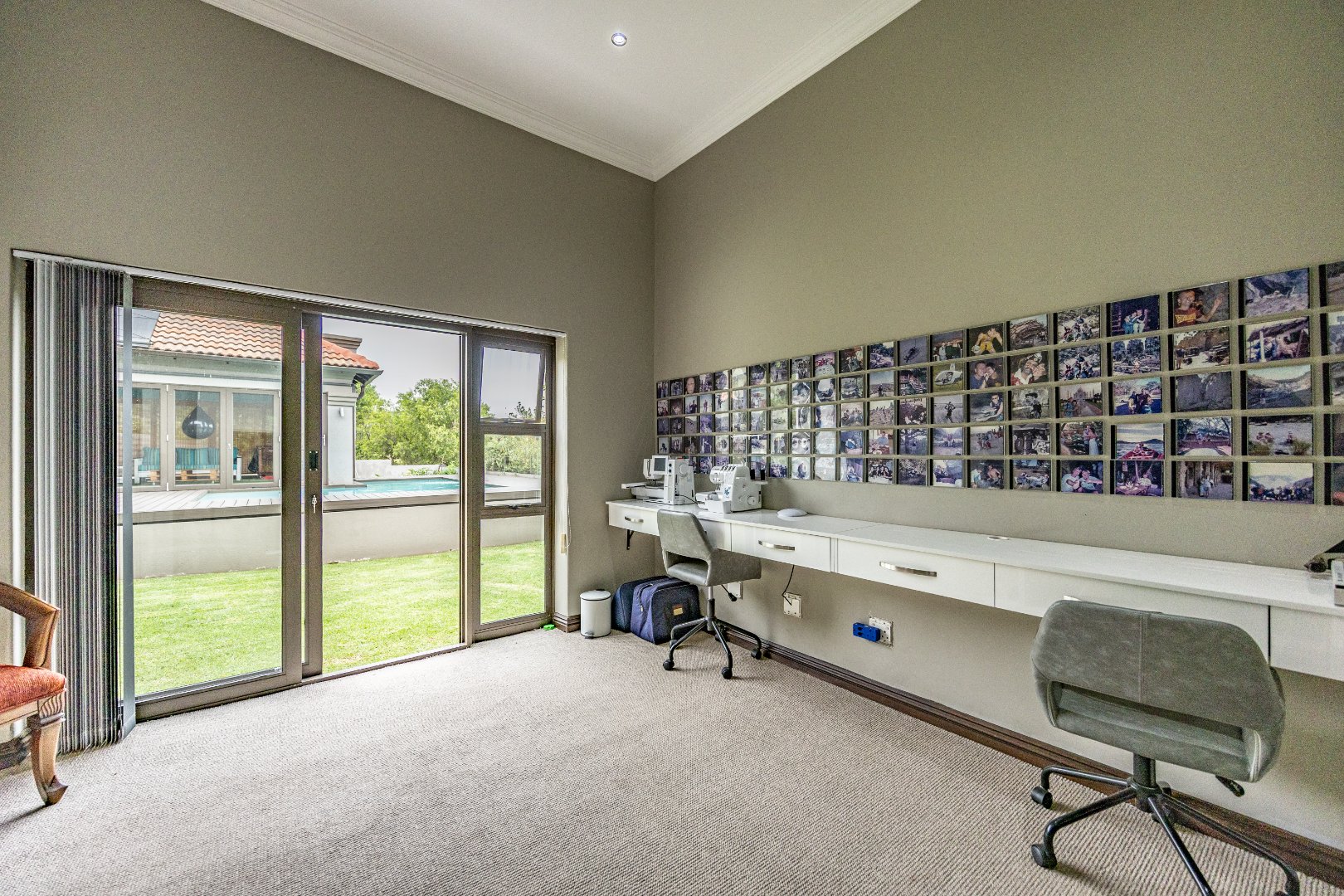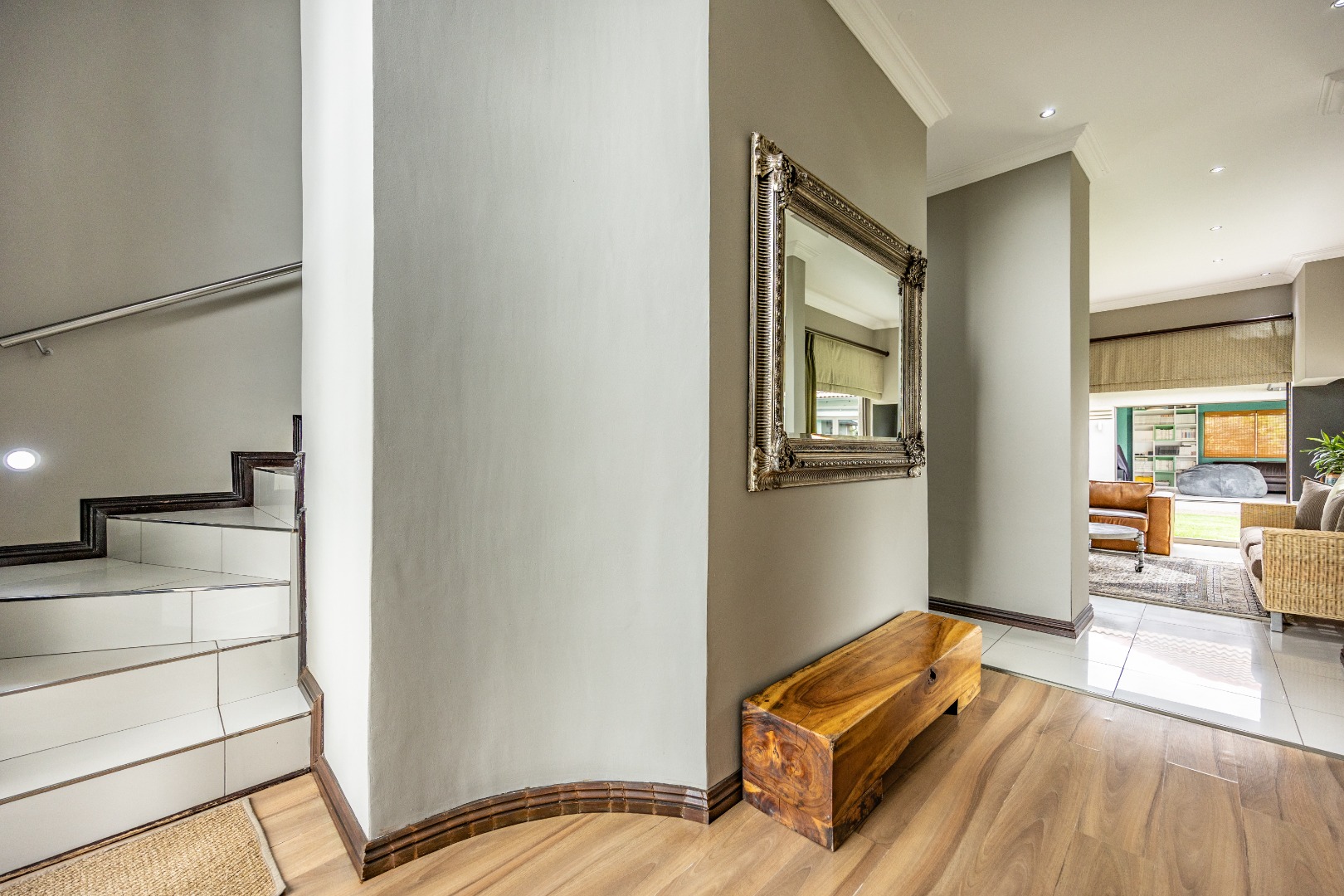 This immaculate home delivers space, flow, and lifestyle in one of the most sought-after dam estates. From the moment you enter, the layout is practical and impressive. To the left of the front door is a private pajama lounge, study, full bathroom, and guest bedroom that opens directly to the outside—ideal for visitors or extended family. Straight ahead from the entrance is a guest toilet and a spacious lounge that opens onto the back garden and heated swimming pool, fitted with neat roller blinds for clean, modern living.