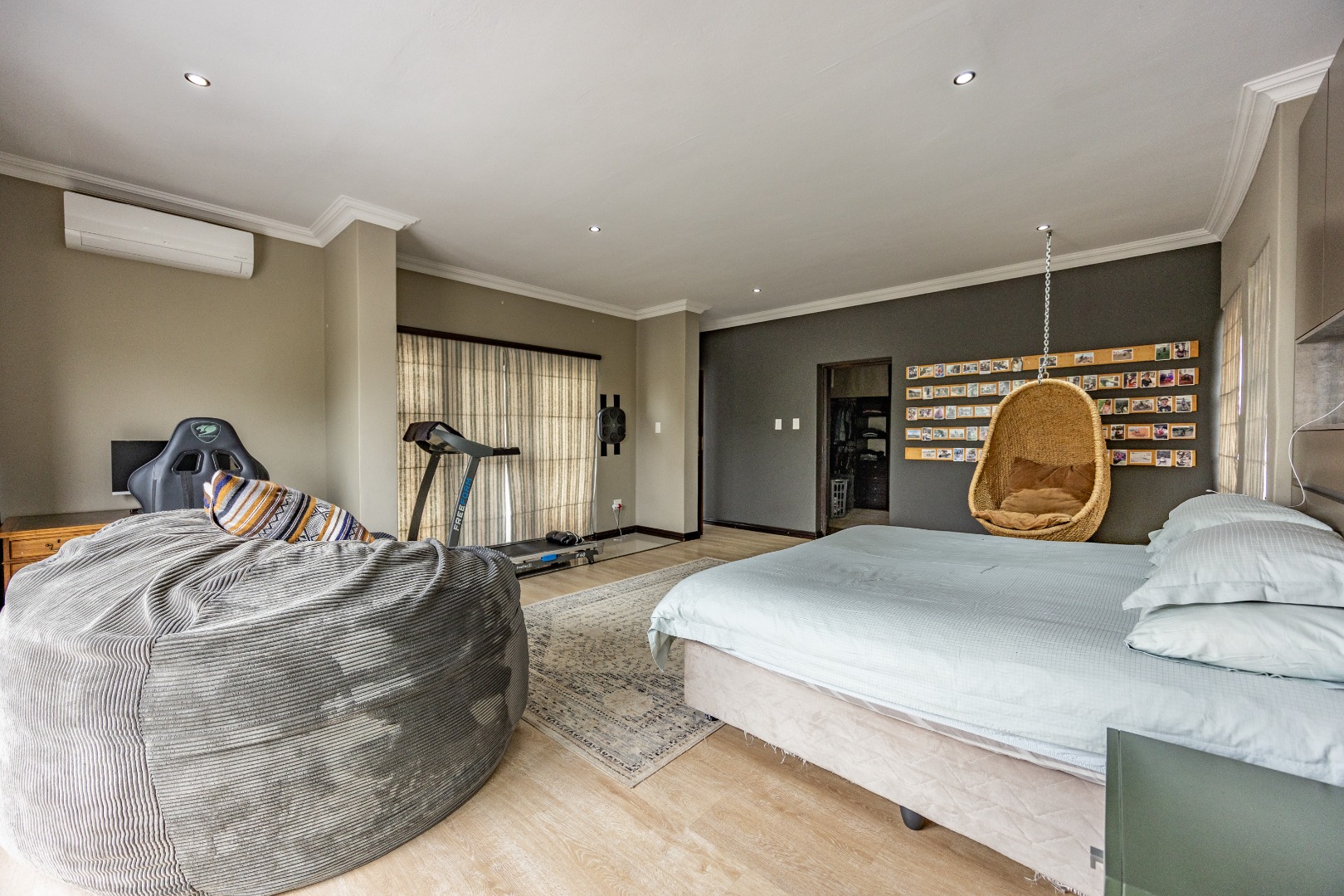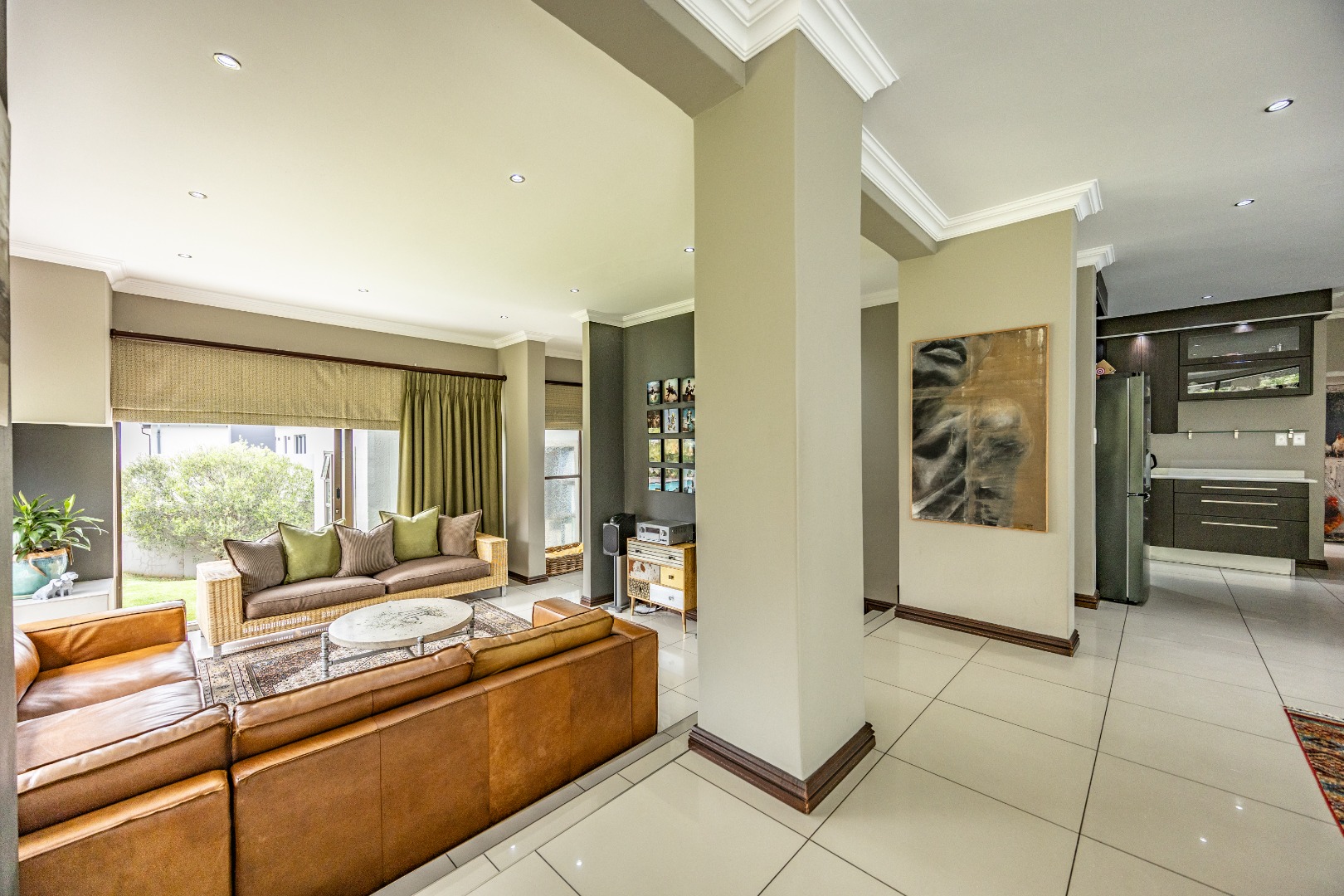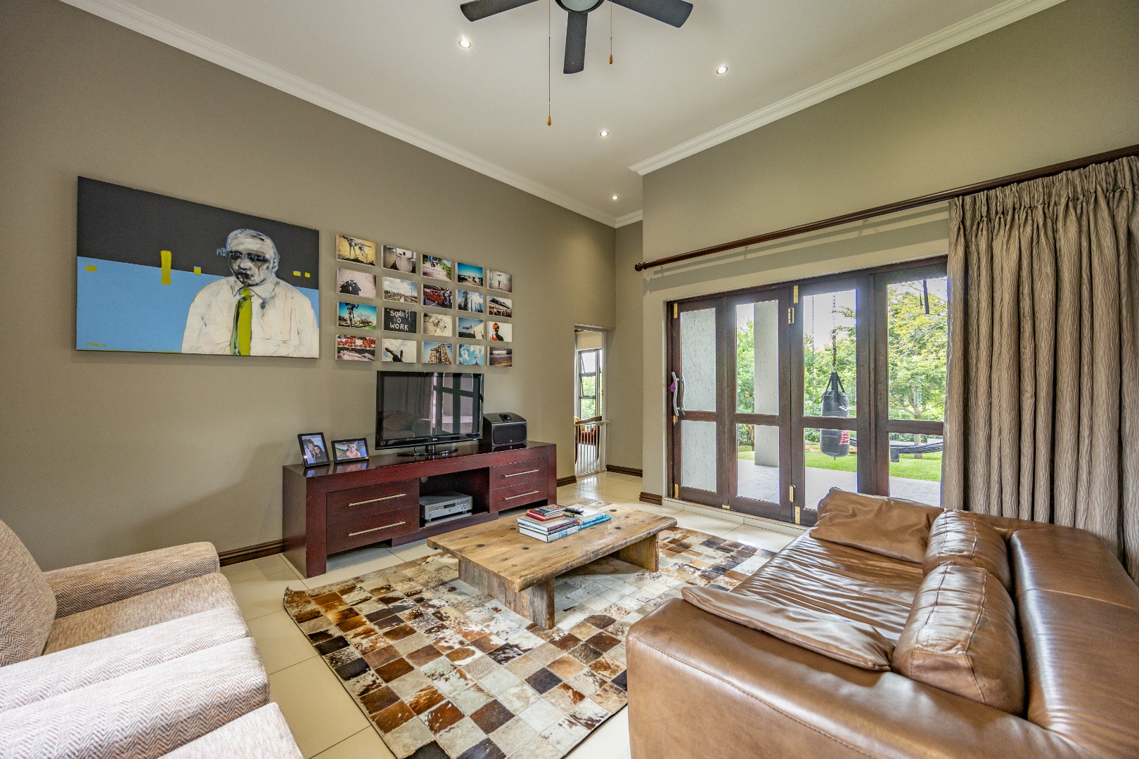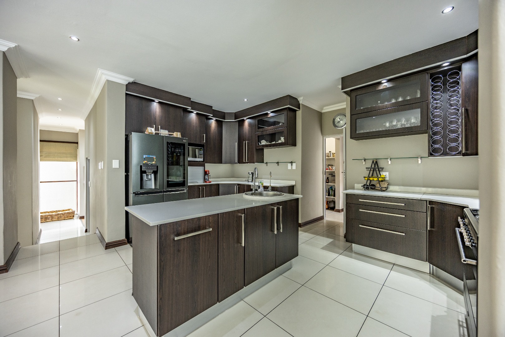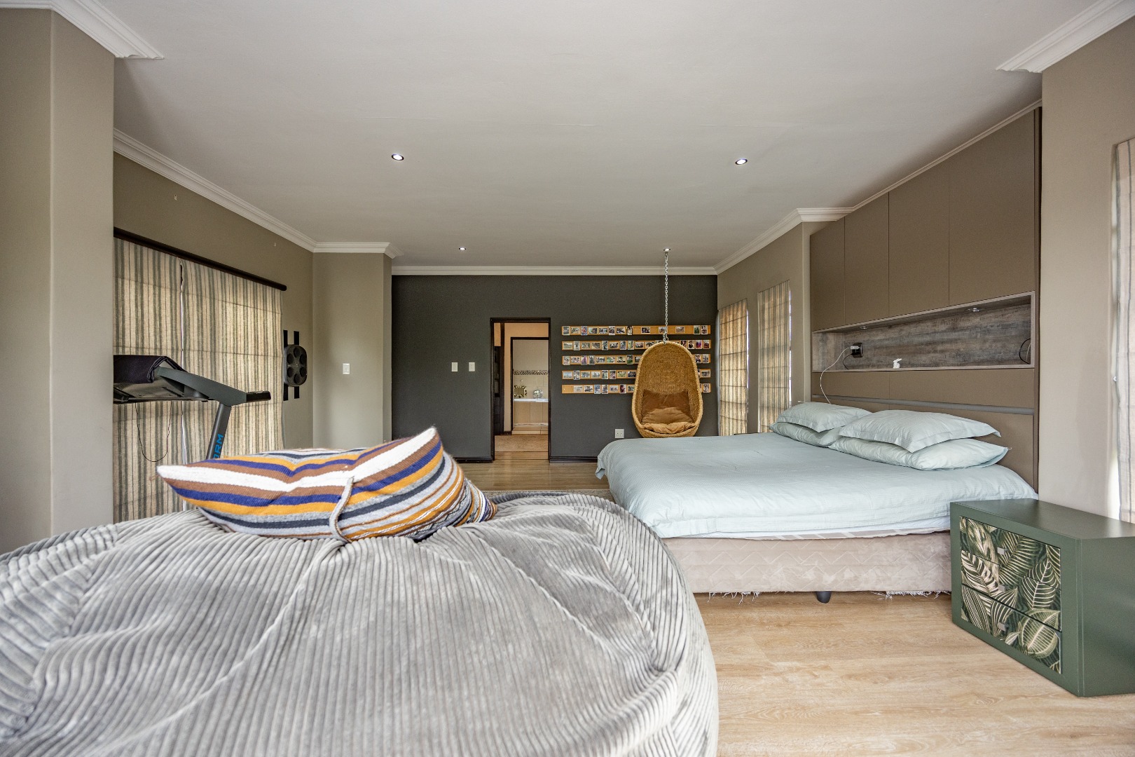 This immaculate home delivers space, flow, and lifestyle in one of the most sought-after dam estates. From the moment you enter, the layout is practical and impressive. To the left of the front door is a private pajama lounge, study, full bathroom, and guest bedroom that opens directly to the outside—ideal for visitors or extended family. Straight ahead from the entrance is a guest toilet and a spacious lounge that opens onto the back garden and heated swimming pool, fitted with neat roller blinds for clean, modern living.