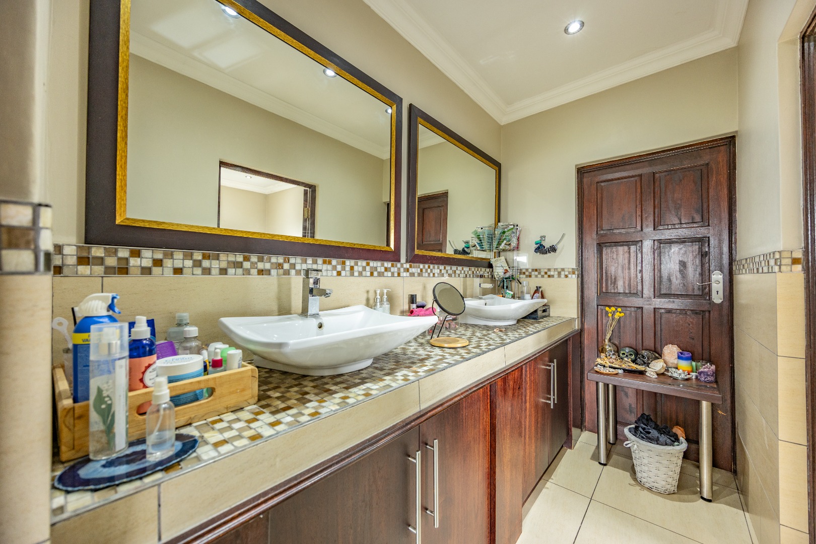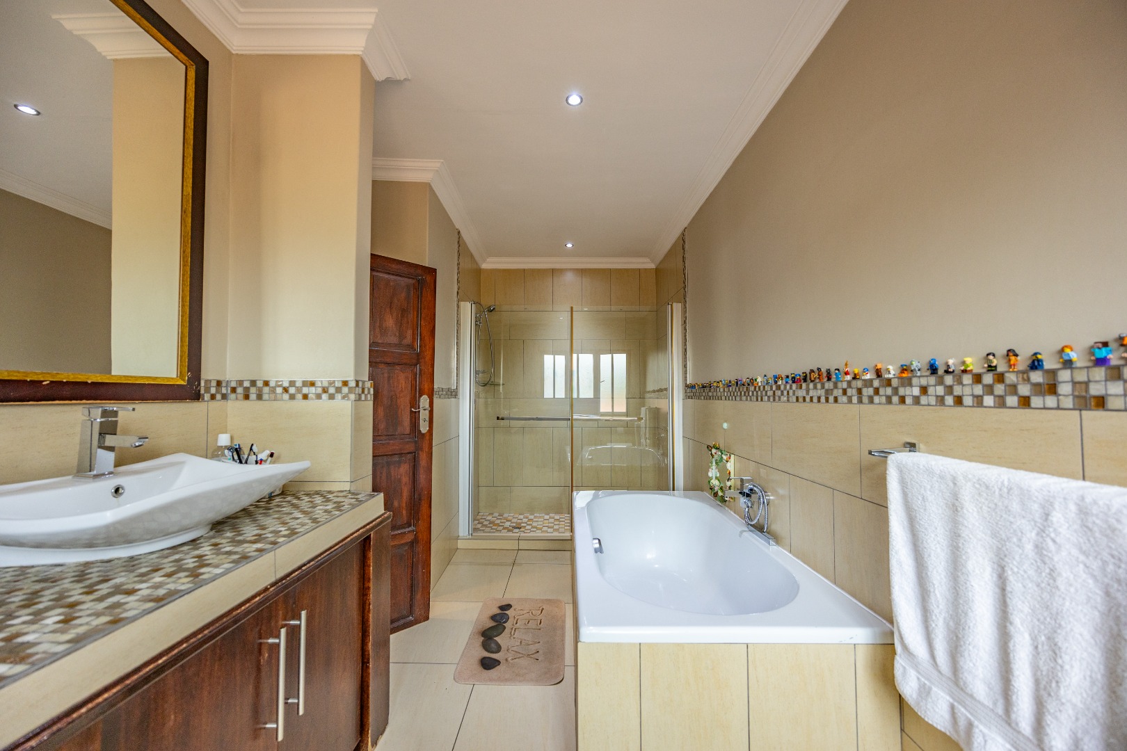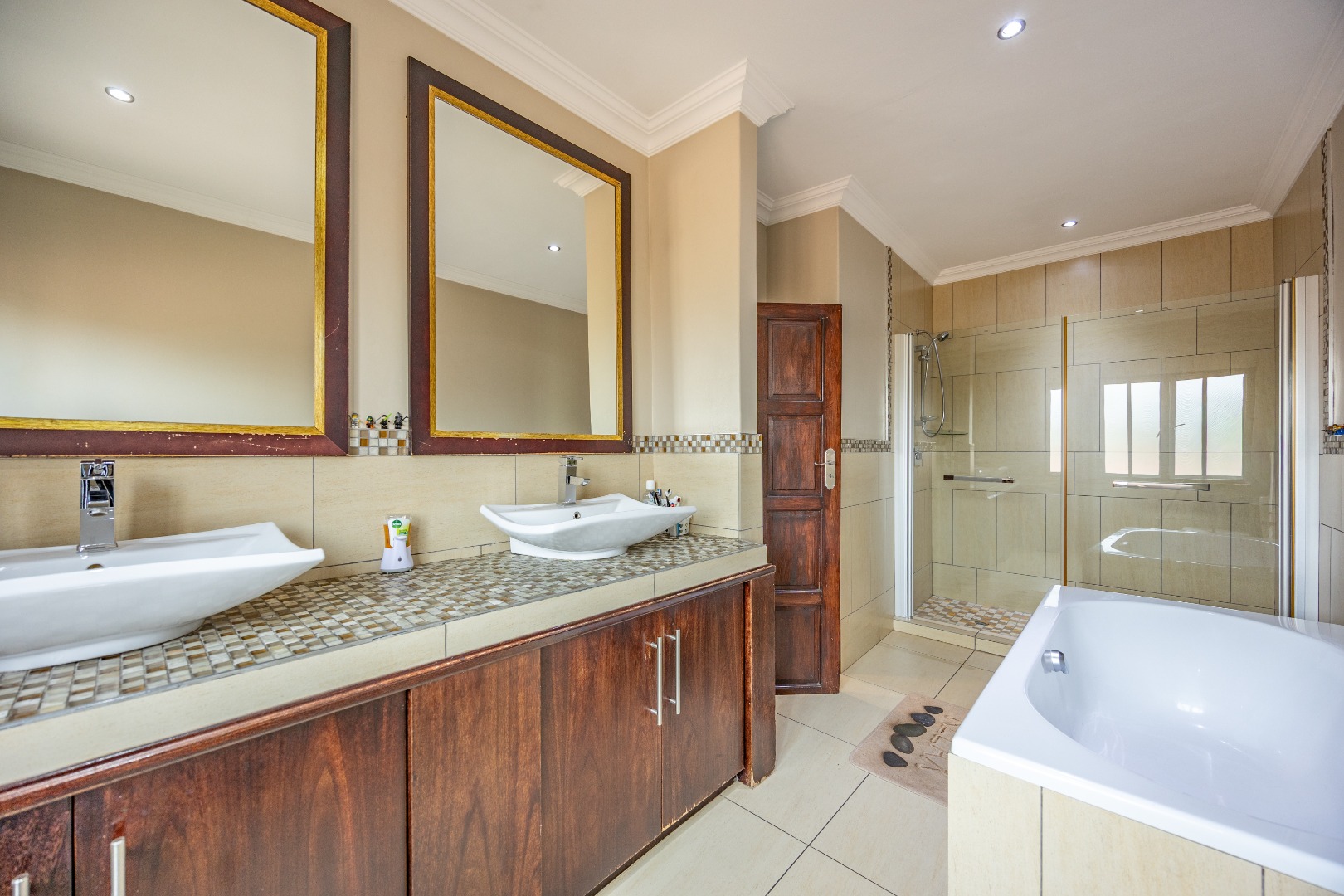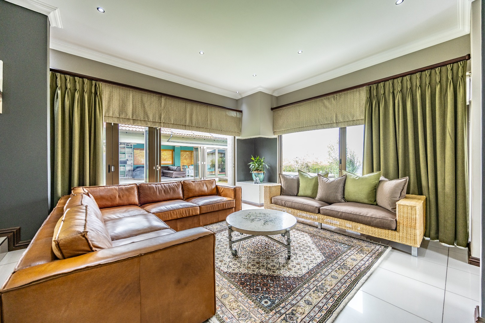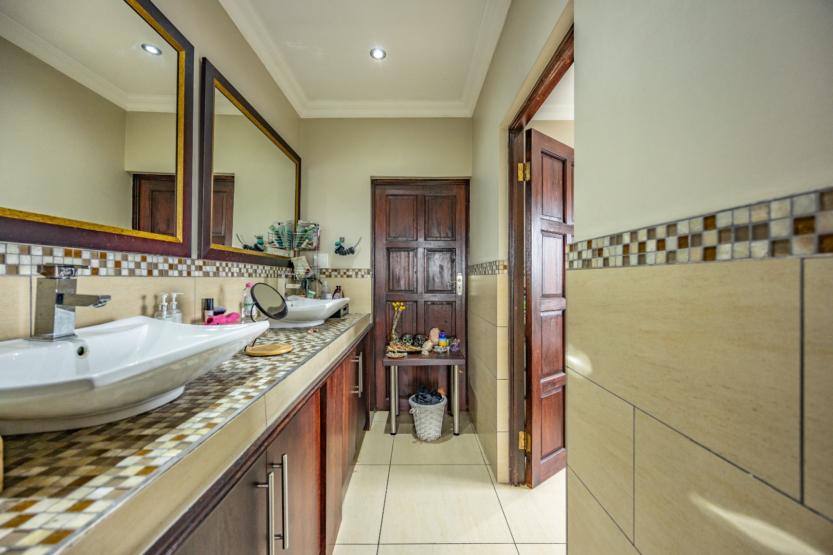This immaculate home delivers space, flow, and lifestyle in one of the most sought-after dam estates. From the moment you enter, the layout is practical and impressive. To the left of the front door is a private pajama lounge, study, full bathroom, and guest bedroom that opens directly to the outside—ideal for visitors or extended family. Straight ahead from the entrance is a guest toilet and a spacious lounge that opens onto the back garden and heated swimming pool, fitted with neat roller blinds for clean, modern living.