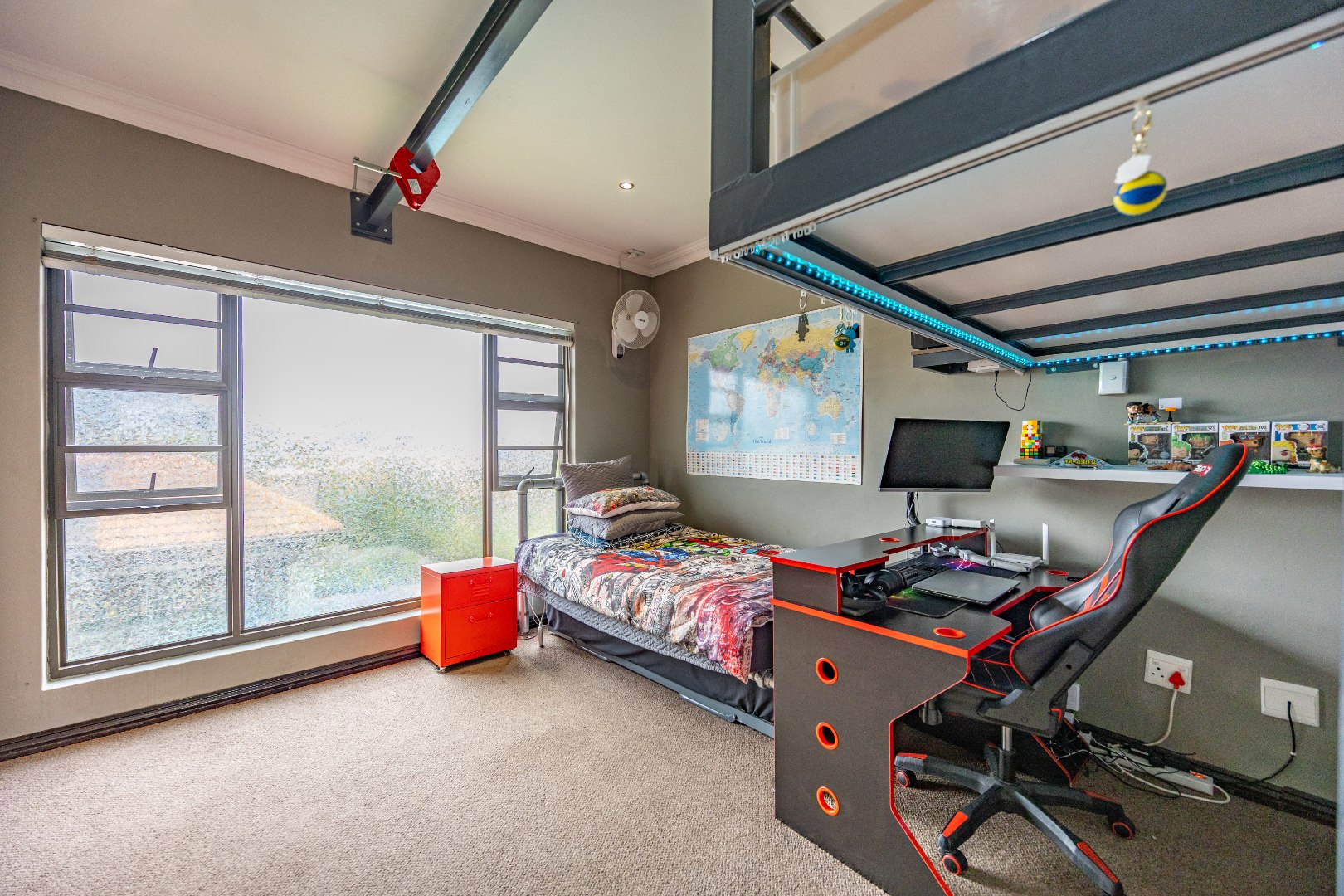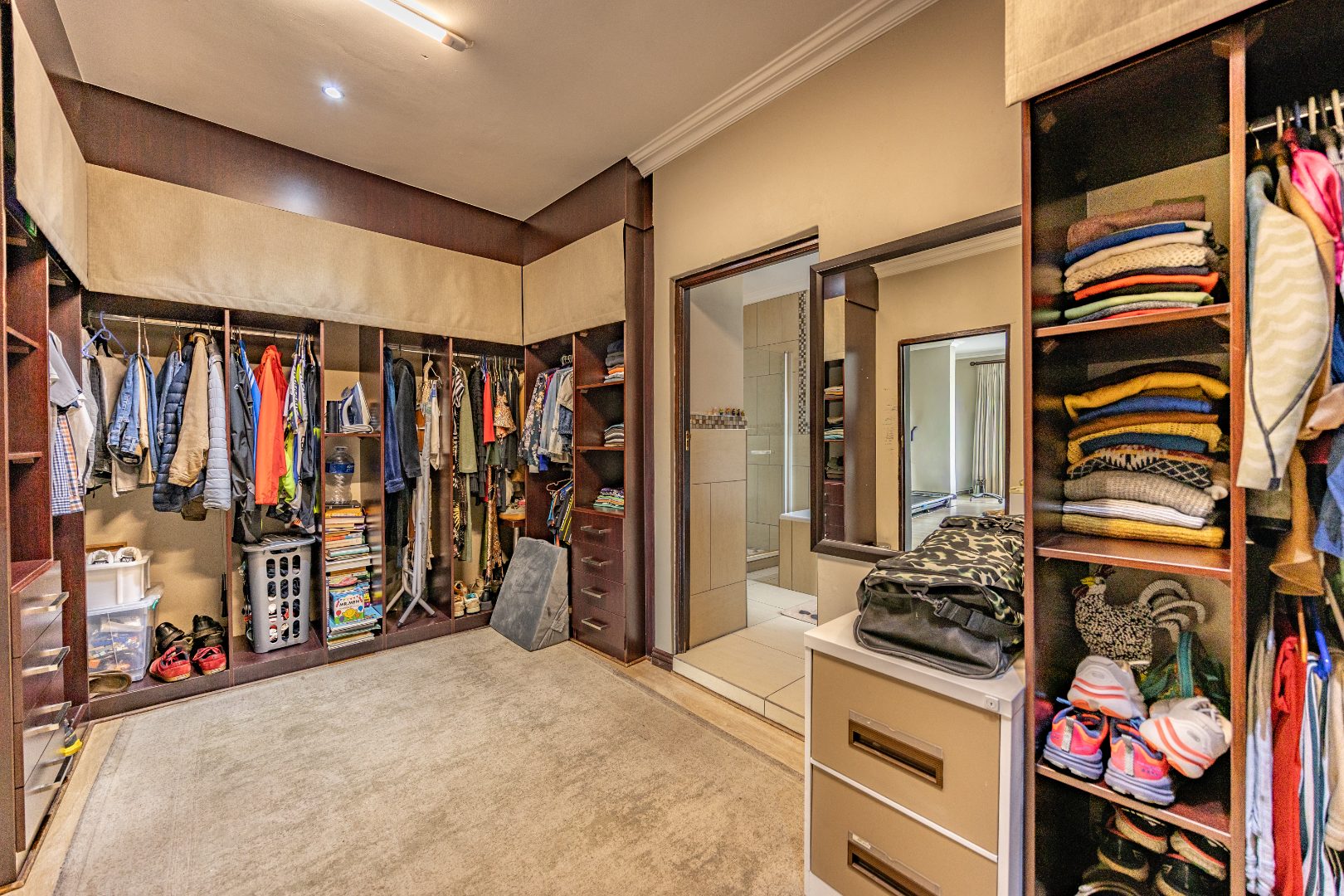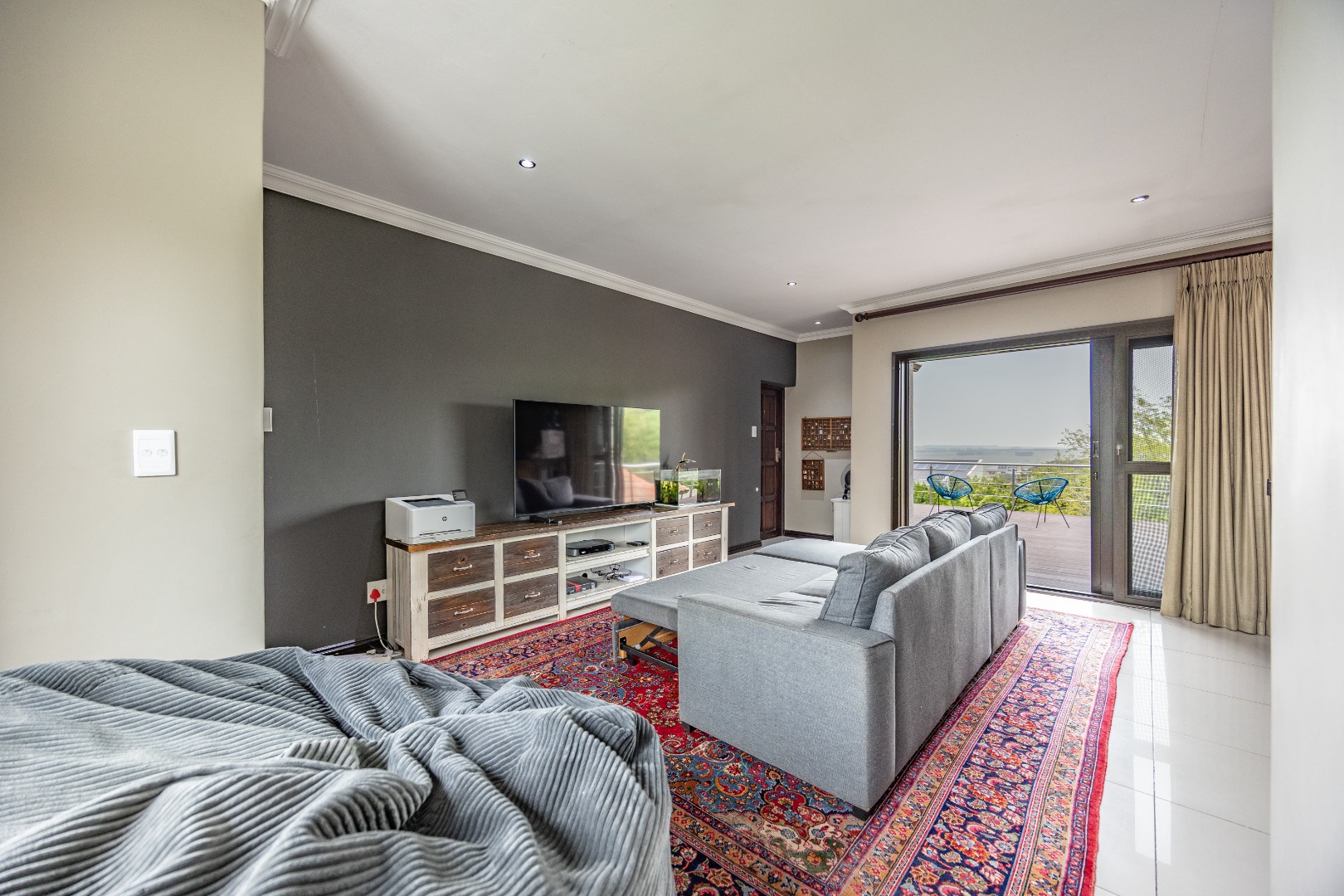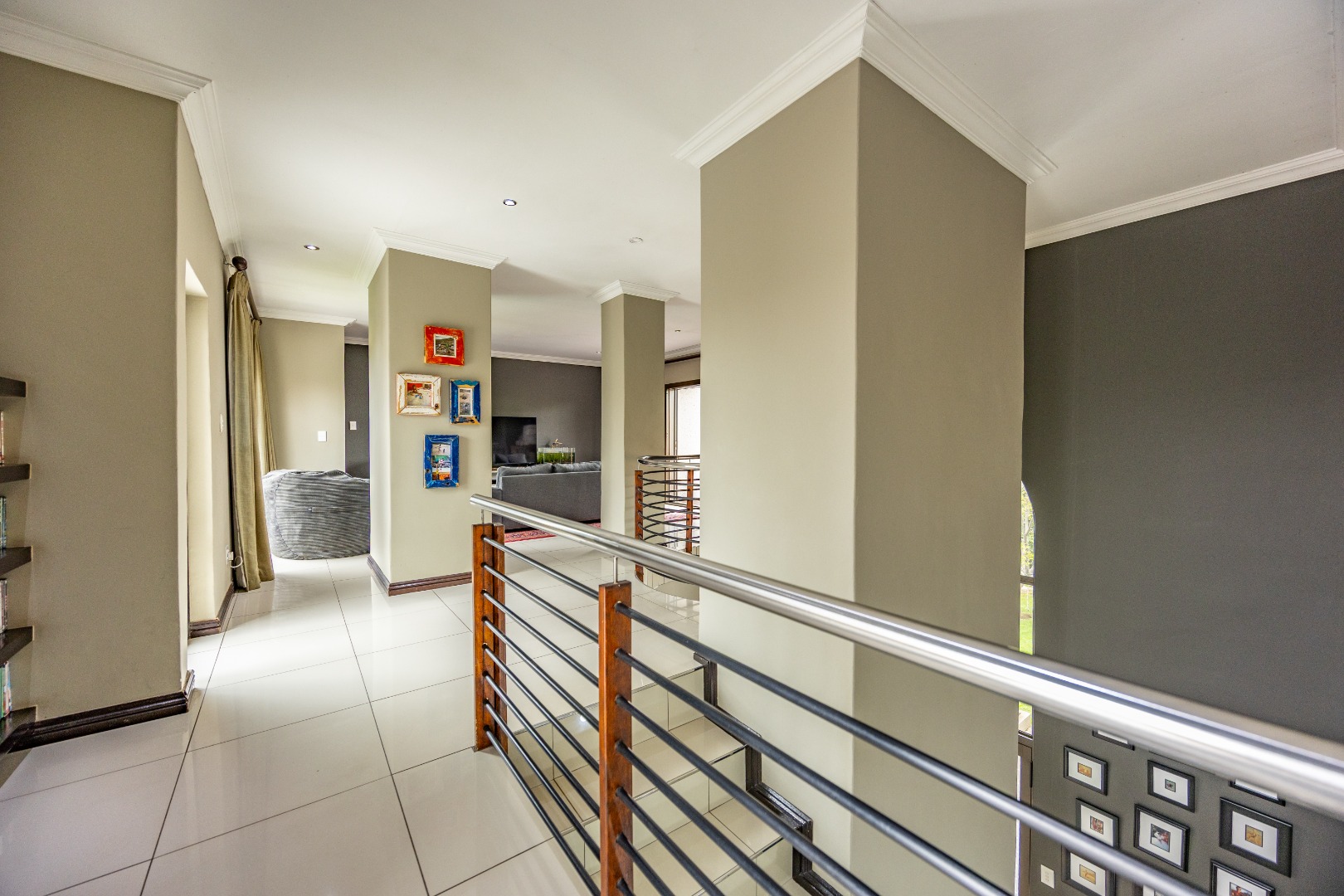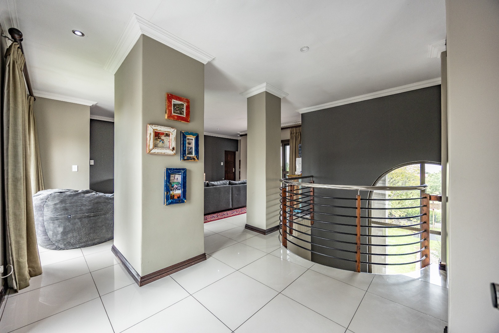 This immaculate home delivers space, flow, and lifestyle in one of the most sought-after dam estates. From the moment you enter, the layout is practical and impressive. To the left of the front door is a private pajama lounge, study, full bathroom, and guest bedroom that opens directly to the outside—ideal for visitors or extended family. Straight ahead from the entrance is a guest toilet and a spacious lounge that opens onto the back garden and heated swimming pool, fitted with neat roller blinds for clean, modern living.