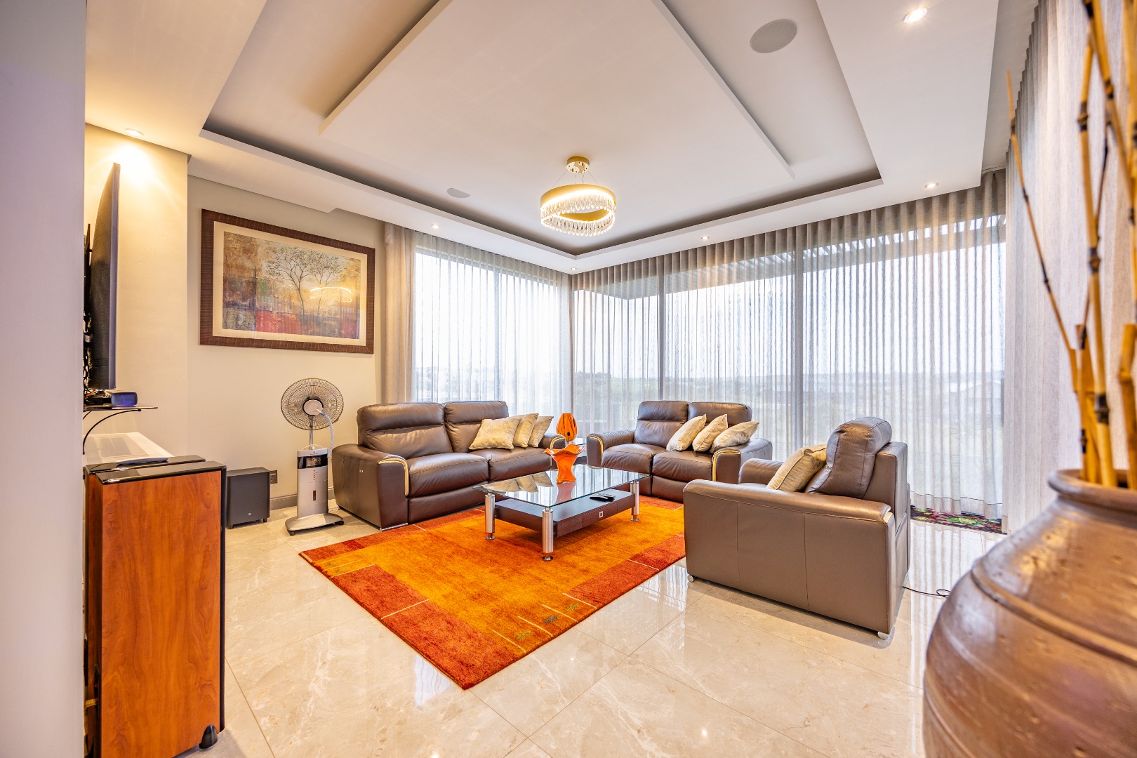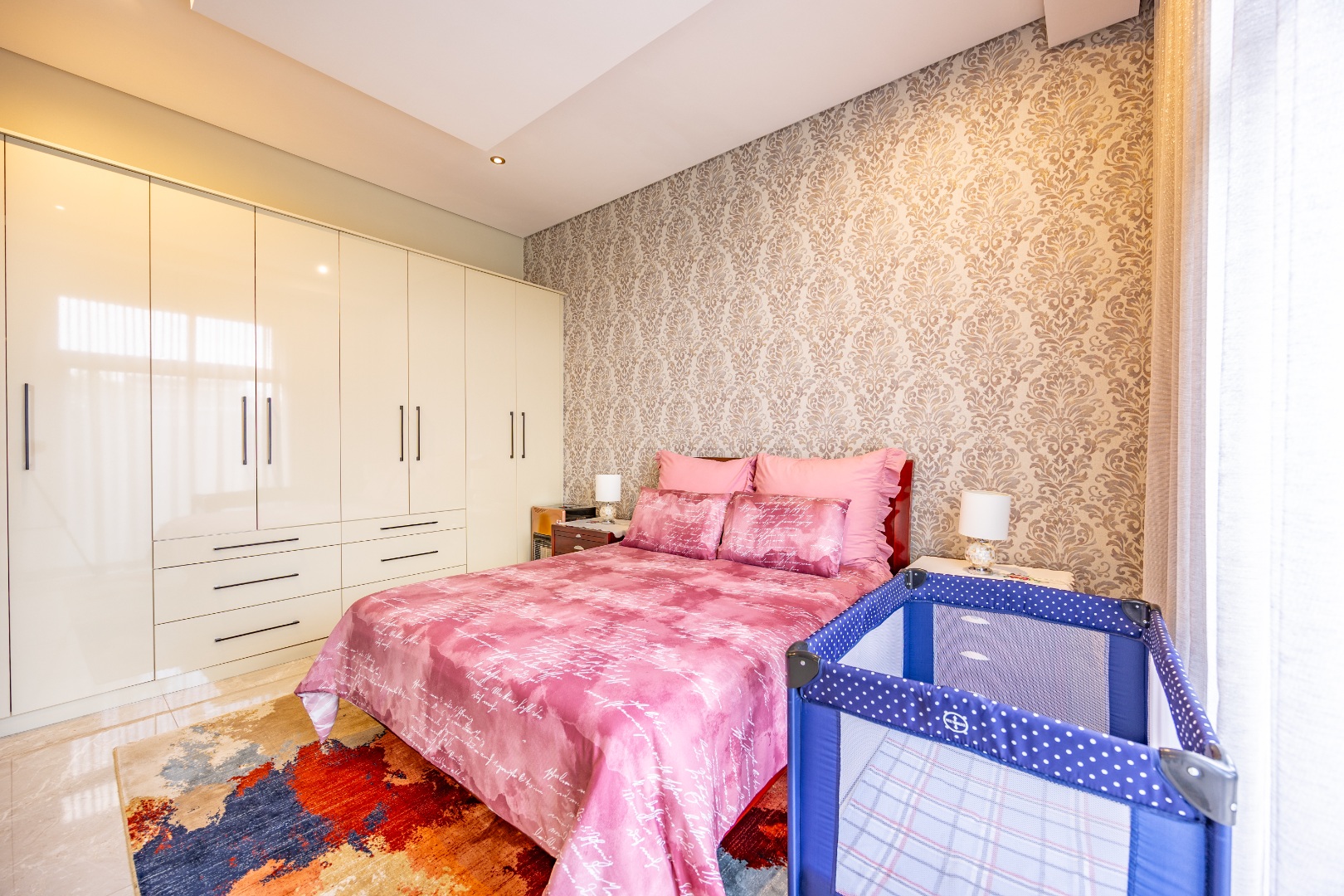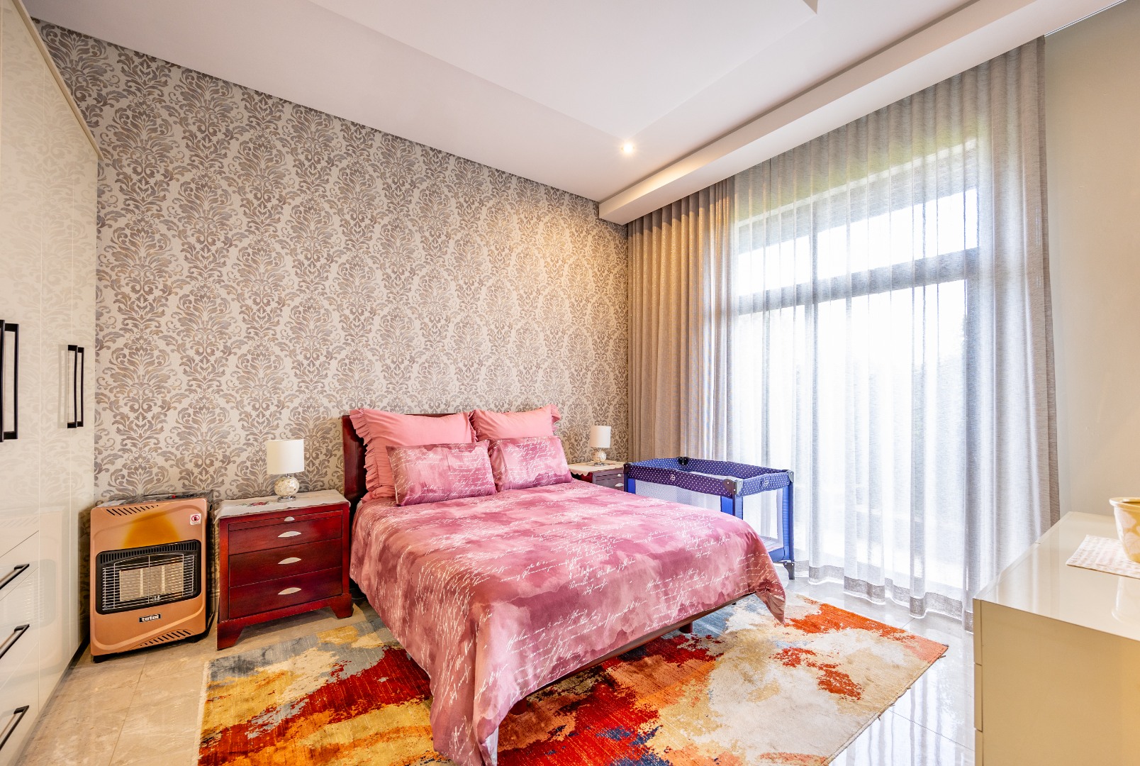 This home is also equipped with a 16kVA solar system, including 4 batteries, 16 panels, and a solar-powered geyser, ensuring energy efficiency and sustainability. Additional features include staff quarters with a separate bathroom, two double automated garages, a guest toilet conveniently located near the entrance, and high-end finishes throughout, such as marble flooring, modern lighting fixtures, and elegant rugs that add a touch of timeless charm.