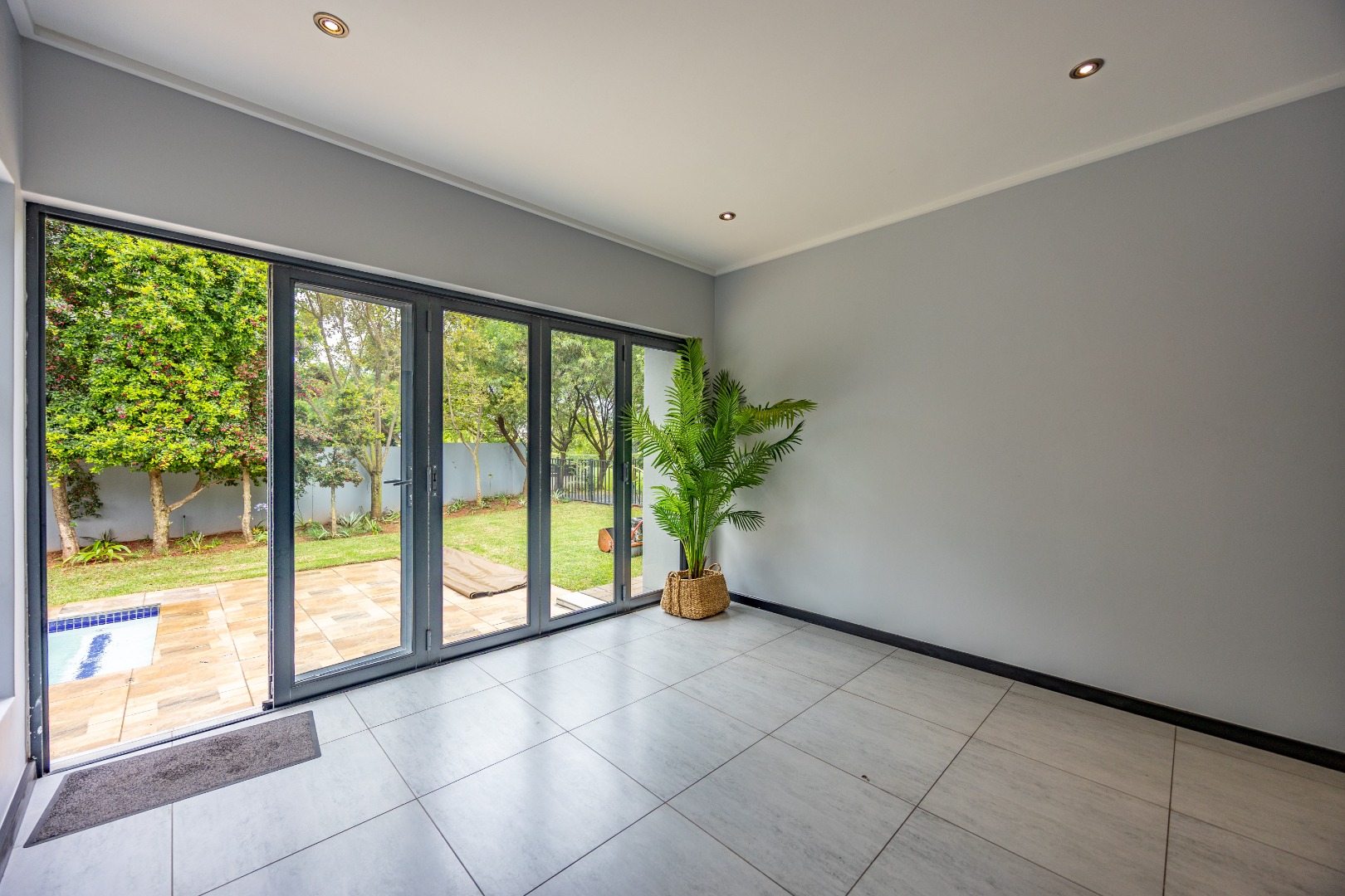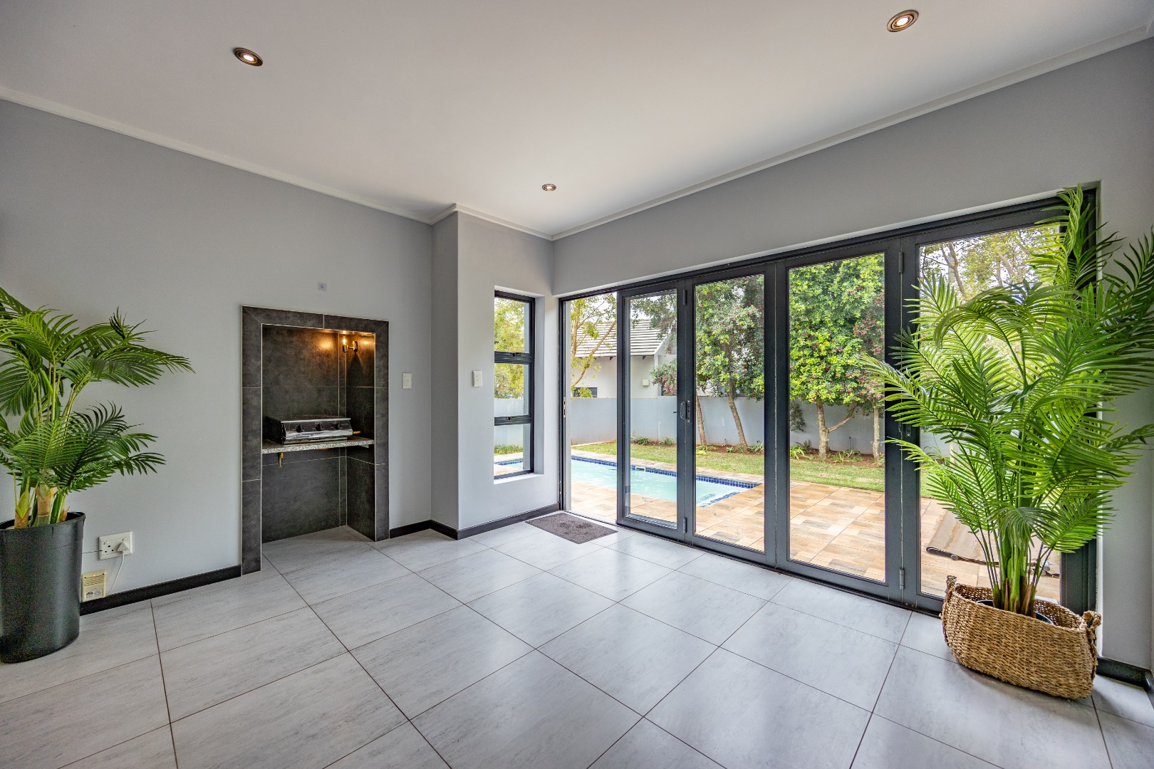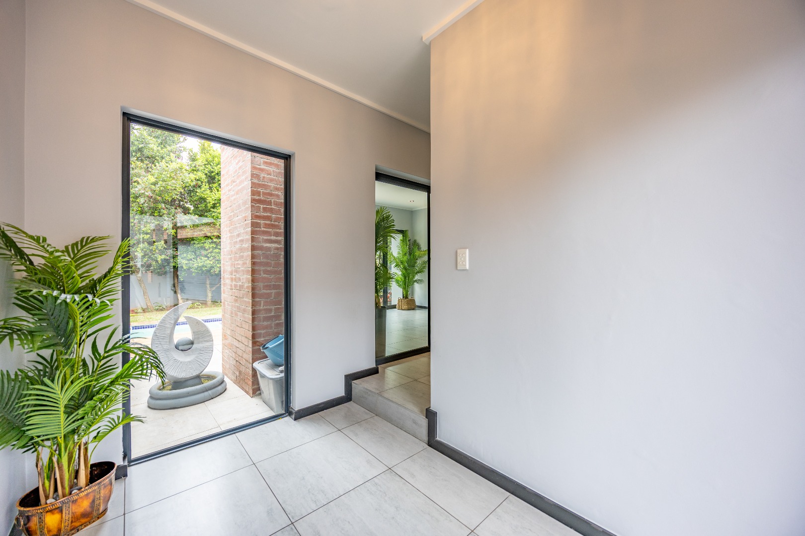 Nestled within the prestigious Copperleaf Estate in Centurion, South Africa, this property offers an exceptional lifestyle. Residents benefit from a secure, gated community that includes a golf estate and wellness facilities, providing a tranquil yet active environment. Step inside to discover a contemporary interior featuring light grey walls, durable tiled flooring, and modern recessed lighting throughout. The open-plan design seamlessly connects living spaces, including a dedicated family TV room and a well-appointed kitchen, ideal for modern living. A dedicated study provides a quiet space for work or contemplation. This residence boasts four spacious bedrooms and four-and-a-half bathrooms, ensuring comfort and privacy for all occupants. Each bedroom is designed with a neutral palette, some featuring built-in wardrobes and integrated desks, complemented by en-suite facilities, as seen in the modern, tiled bathrooms with combination bath/showers. Spanning a generous 724 sqm erf with a 285 sqm floor size, the property includes a private patio and balcony, perfect for outdoor enjoyment. A built-in braai area enhances entertaining, while the double garage provides secure parking. Residents also enjoy access to the estate's gym, golf course, tennis courts, club house, creche, and a spa pool. Security is paramount within this gated community, featuring 24-hour security, CCTV, access gates, security posts, and an intercom system. The home is also equipped with modern conveniences like fibre connectivity, a battery inverter, and solar panels, promoting sustainable living. Pets are permitted, adding to the family-friendly appeal. Key Features: * 4 Bedrooms, 4.5 Bathrooms * 724 sqm Erf, 285 sqm Floor Size * Double Garage * Modern Finishes & Recessed Lighting * Study, Family TV Room, Open Plan Layout * Patio, Balcony, Built-in Braai * Fibre, Battery Inverter, Solar Panels * Gated Golf & Wellness Estate with Gym, Tennis, Spa Pool * 24-Hour Security & CCTV