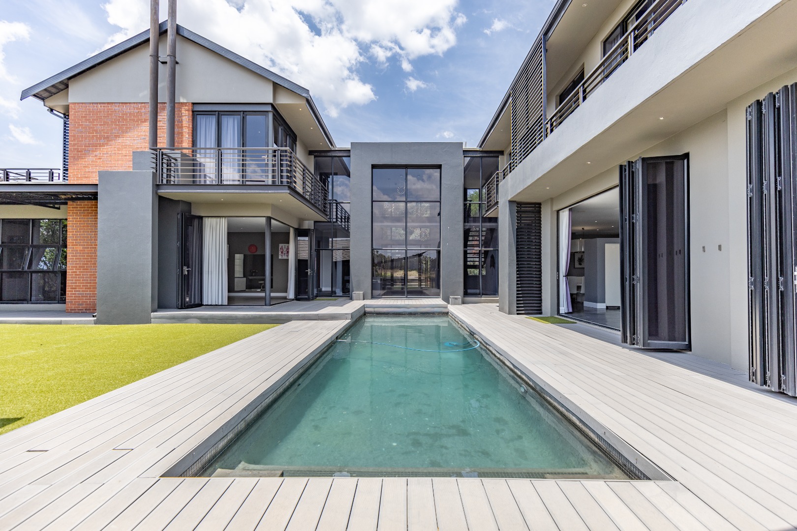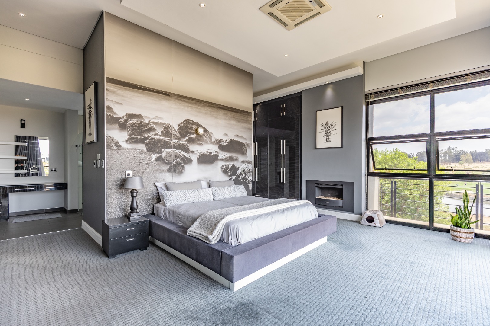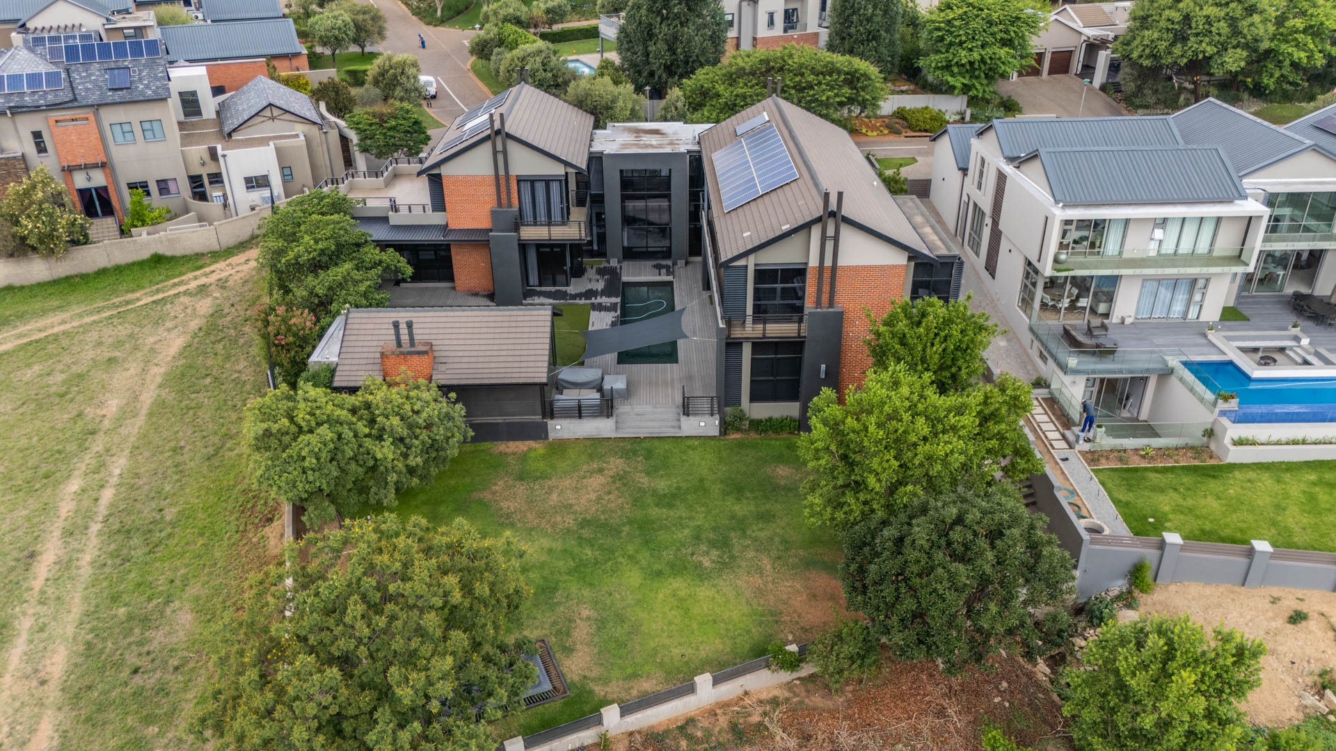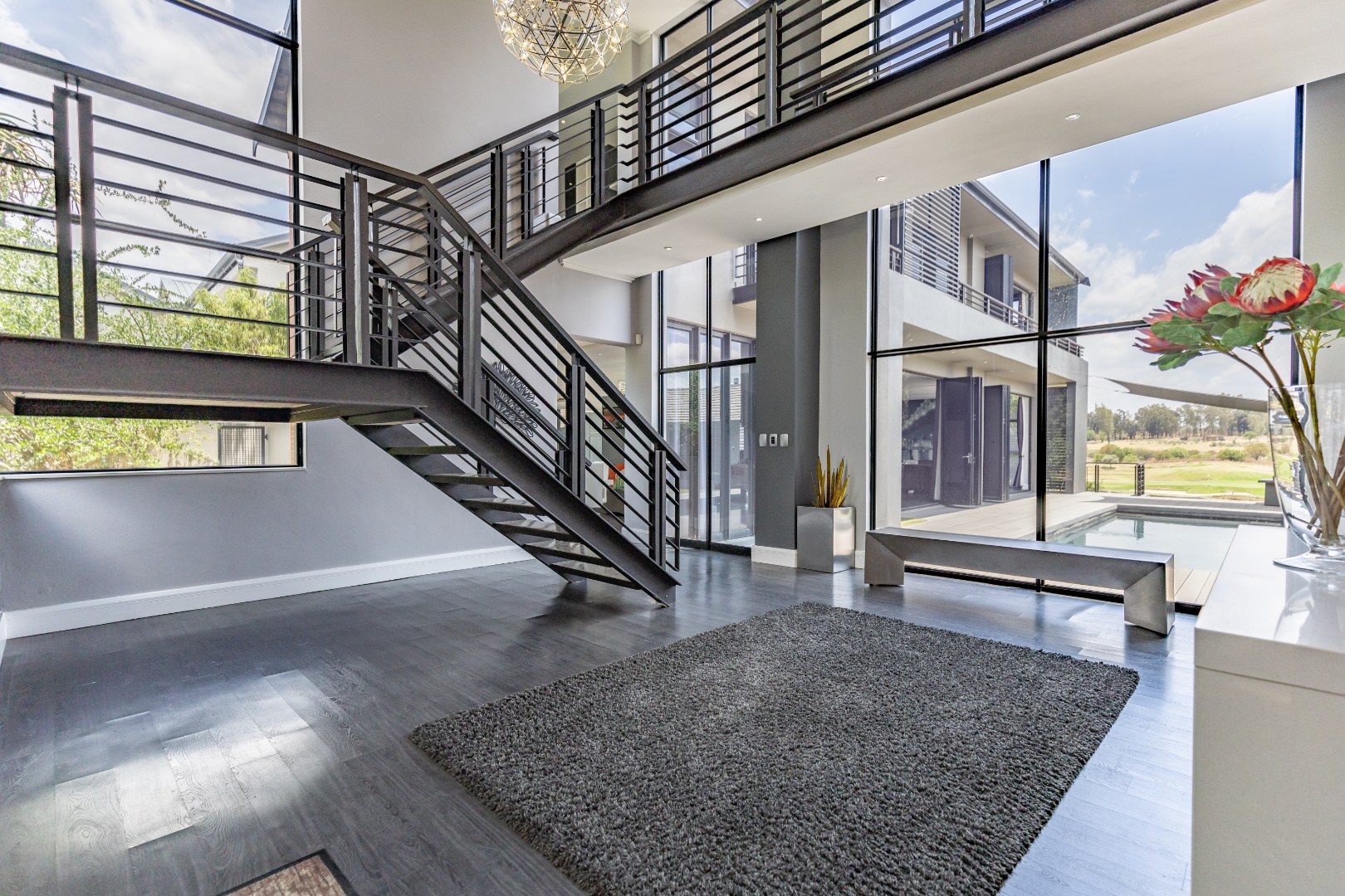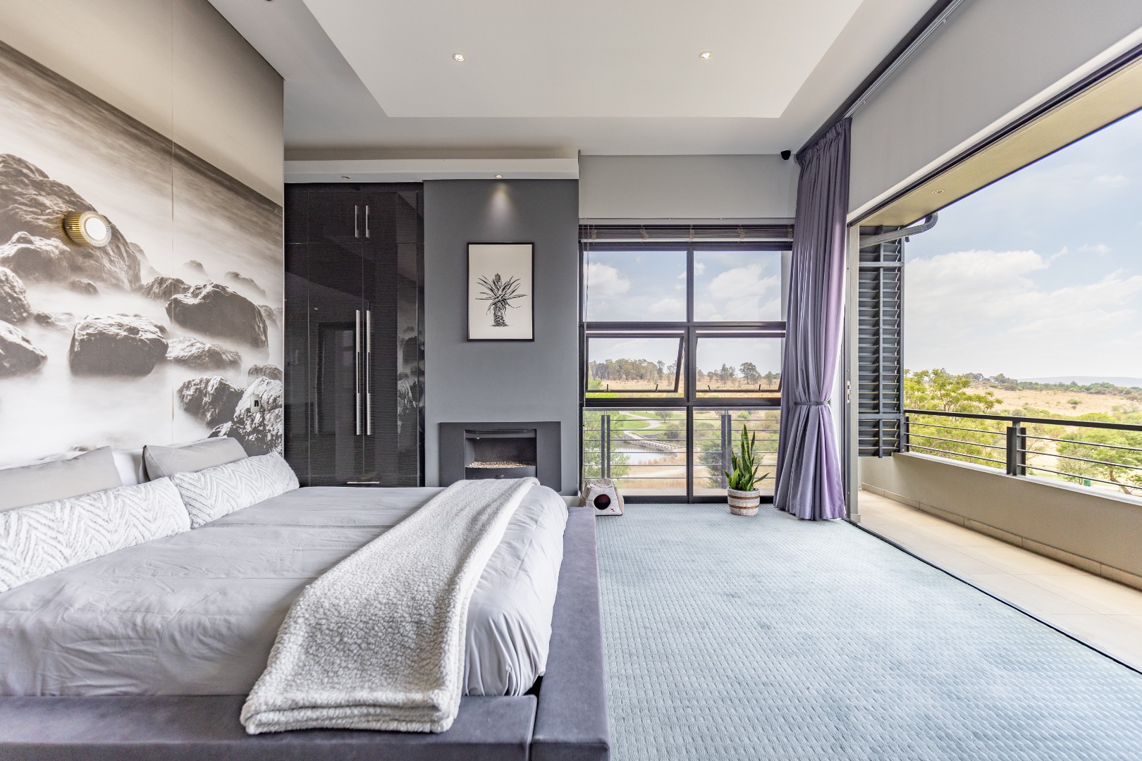Nestled within the prestigious Copperleaf Golf Estate, a premier modern community of 1,165 homes just 20 minutes from Lanseria Airport and conveniently accessible via the N14 highway, this exceptional 4 or 5 bedroom residence masterfully combines luxury, sustainability, and a holiday-like lifestyle on South Africa’s only Els Club golf course. Perfect for family living and entertaining, the estate is surrounded by top-tier schools and thrives with recent westward expansion, fostering a vibrant, family-oriented environment. Set on expansive grassland plains, the championship golf course, designed by Ernie Els, features long holes, distinctive bunkering, wide fairways, multiple tee boxes, and superb greens, making it accessible to golfers of all skill levels while offering challenging bunkers, water hazards, and three short, risk-reward par 4s that have earned praise from professionals. This eco-conscious home is equipped with a 6KW grid-tied solar system, including 8KW solar panels, a 6KW inverter, and 24x 2V 2050mAh batteries, ensuring uninterrupted power during outages and keeping monthly electricity bills as low as R2000. A 70m borehole supplies a 2000L house tank and two 6000L irrigation tanks, with water purified through a 6-stage system and UV sterilization, completely eliminating council water bills, though occasional estimated charges are typically refunded the following month.