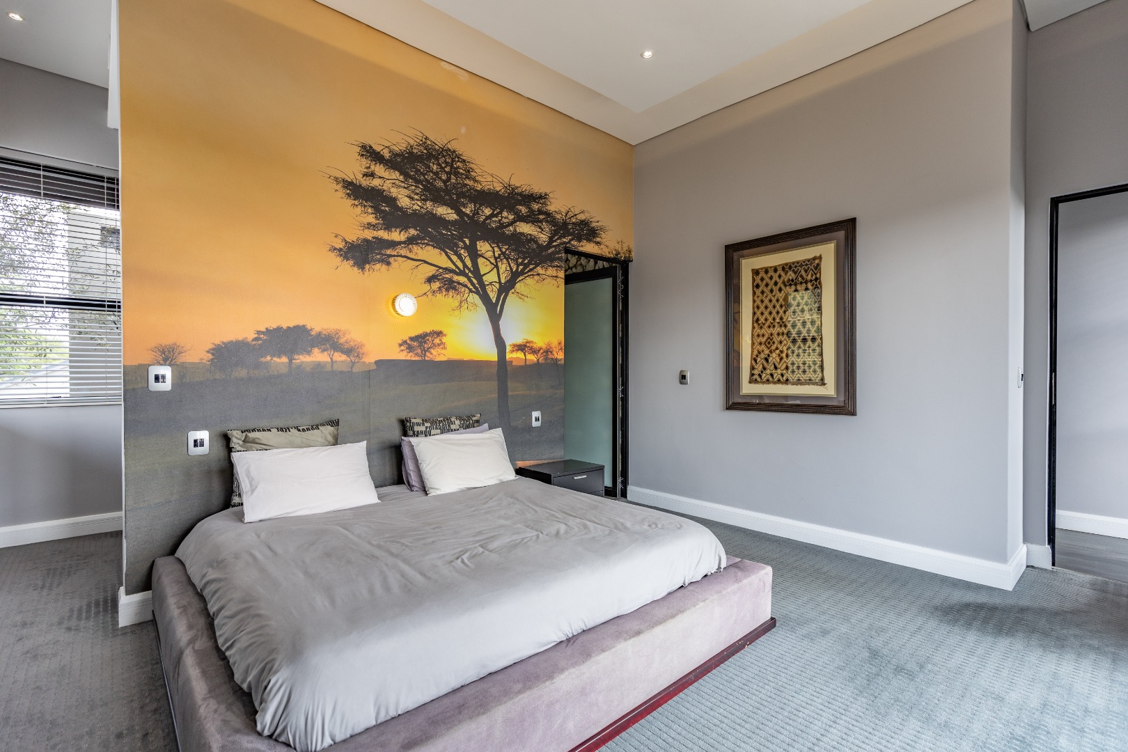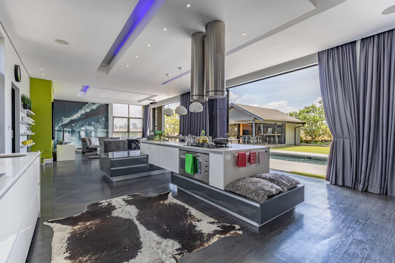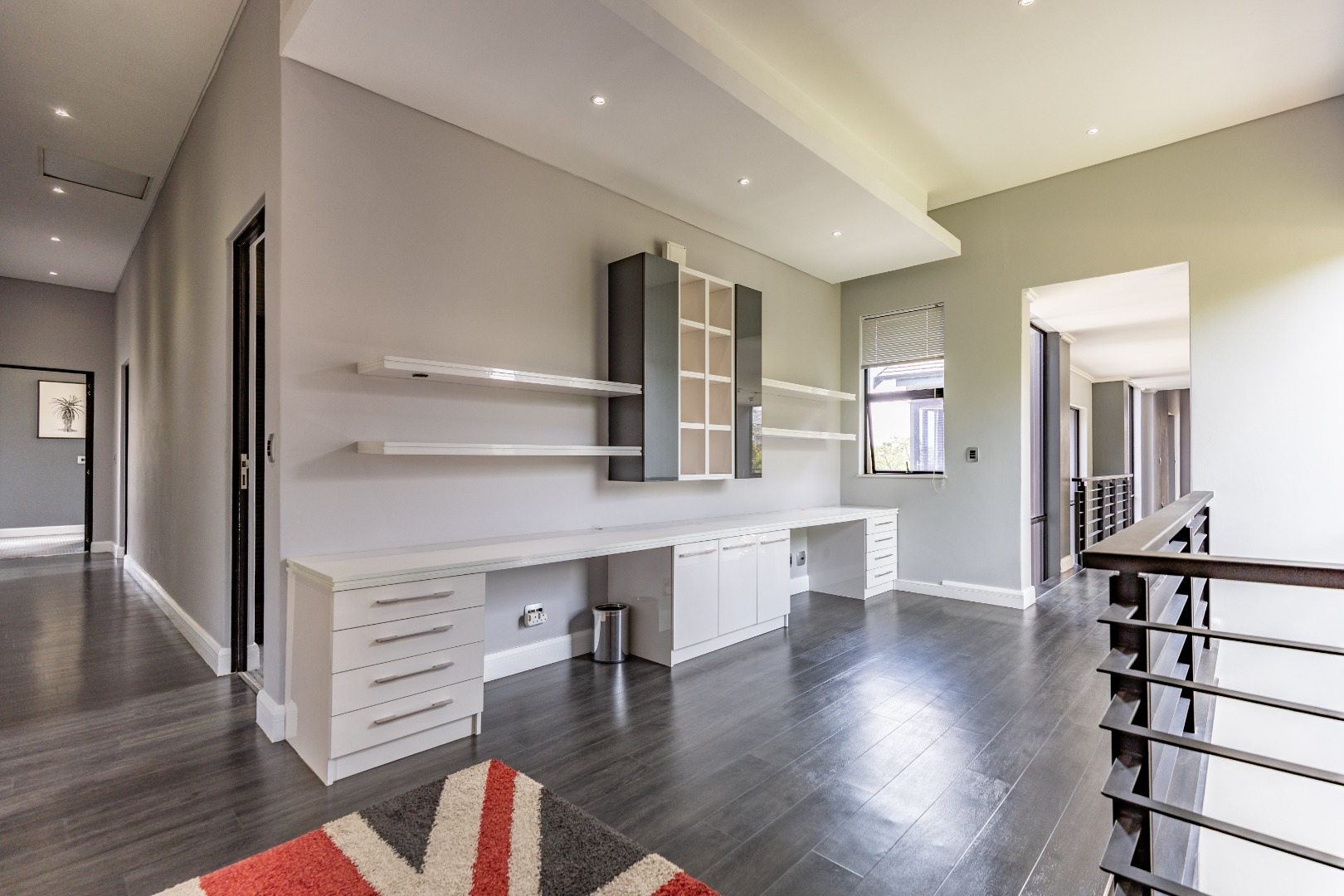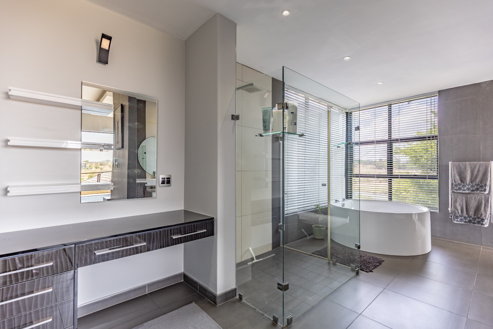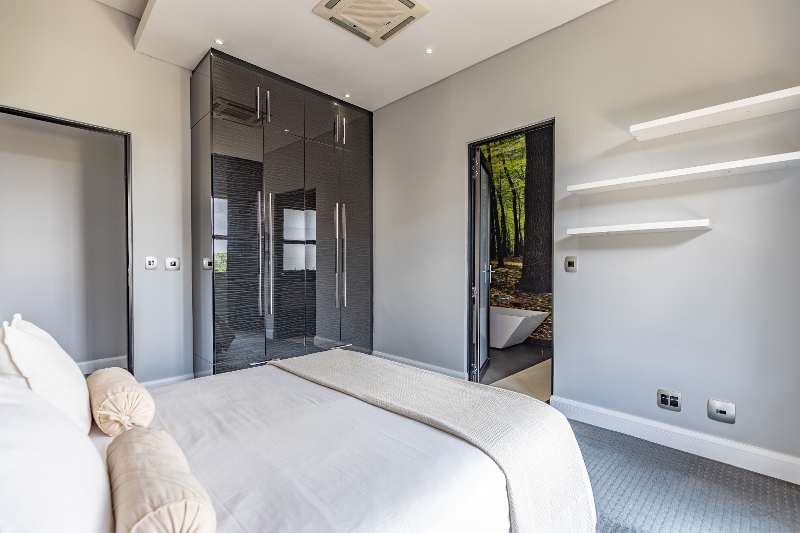 Nestled within the prestigious Copperleaf Golf Estate, a premier modern community of 1,165 homes just 20 minutes from Lanseria Airport and conveniently accessible via the N14 highway, this exceptional 4 or 5 bedroom residence masterfully combines luxury, sustainability, and a holiday-like lifestyle on South Africa’s only Els Club golf course. Perfect for family living and entertaining, the estate is surrounded by top-tier schools and thrives with recent westward expansion, fostering a vibrant, family-oriented environment. Set on expansive grassland plains, the championship golf course, designed by Ernie Els, features long holes, distinctive bunkering, wide fairways, multiple tee boxes, and superb greens, making it accessible to golfers of all skill levels while offering challenging bunkers, water hazards, and three short, risk-reward par 4s that have earned praise from professionals. This eco-conscious home is equipped with a 6KW grid-tied solar system, including 8KW solar panels, a 6KW inverter, and 24x 2V 2050mAh batteries, ensuring uninterrupted power during outages and keeping monthly electricity bills as low as R2000. A 70m borehole supplies a 2000L house tank and two 6000L irrigation tanks, with water purified through a 6-stage system and UV sterilization, completely eliminating council water bills, though occasional estimated charges are typically refunded the following month.