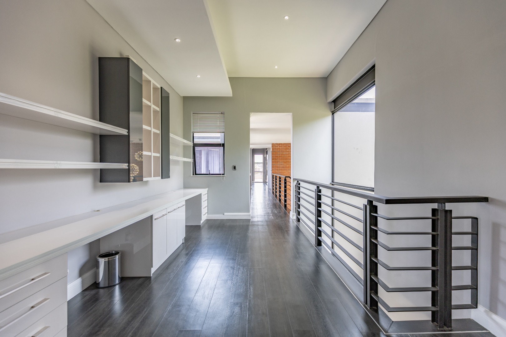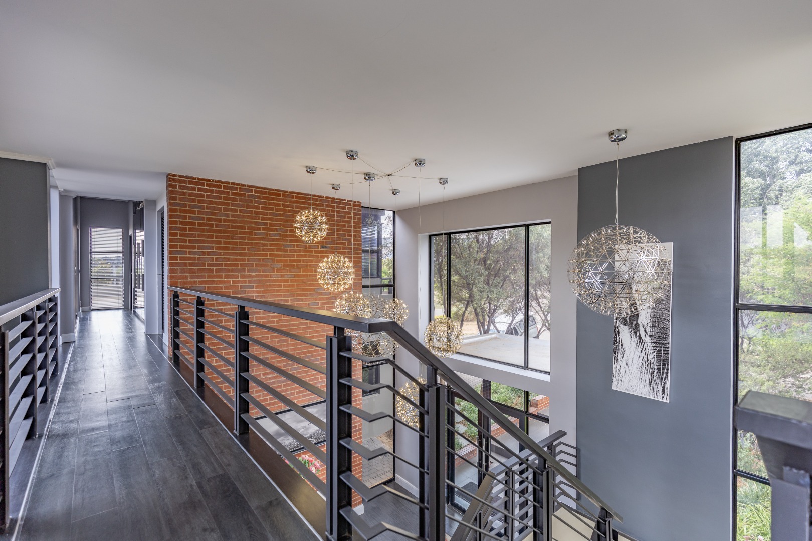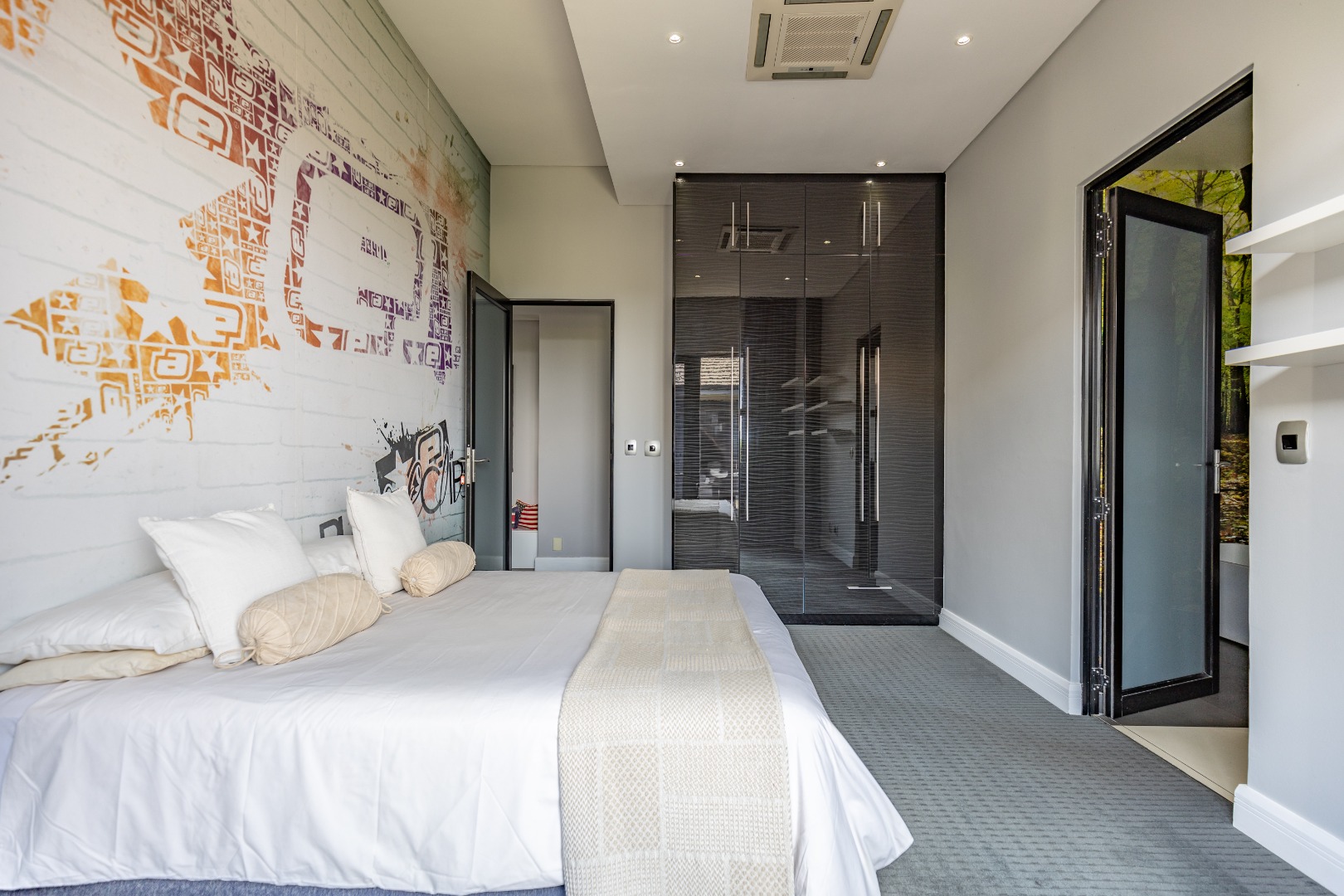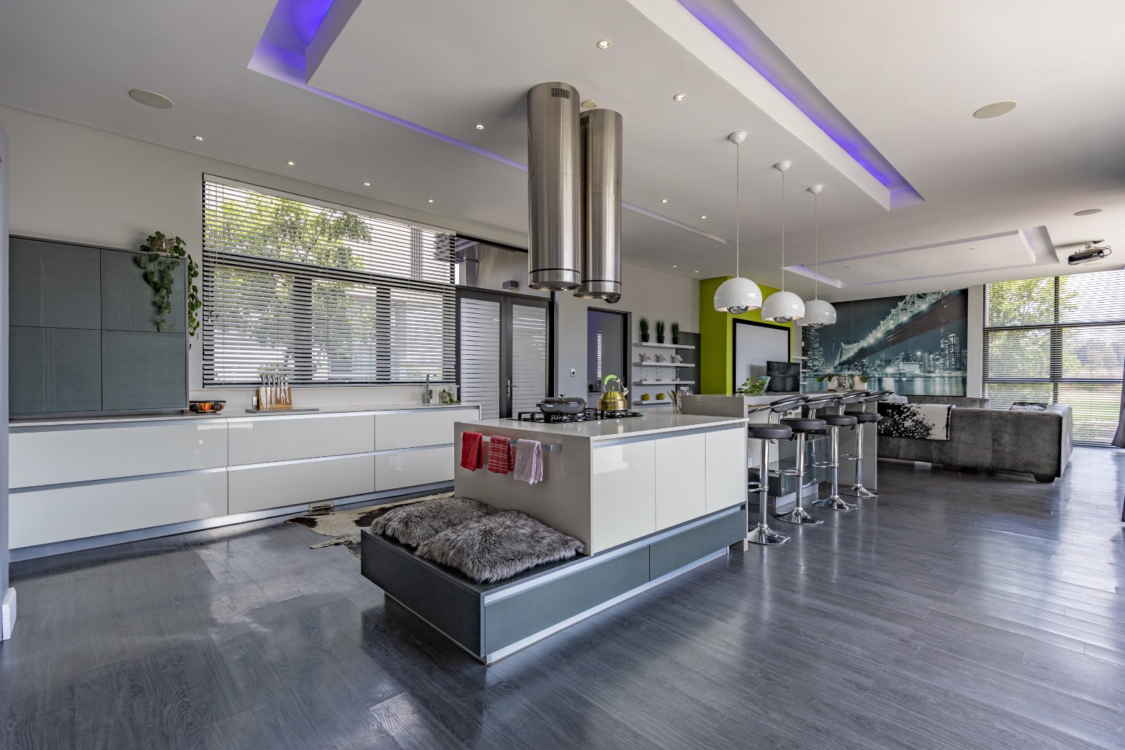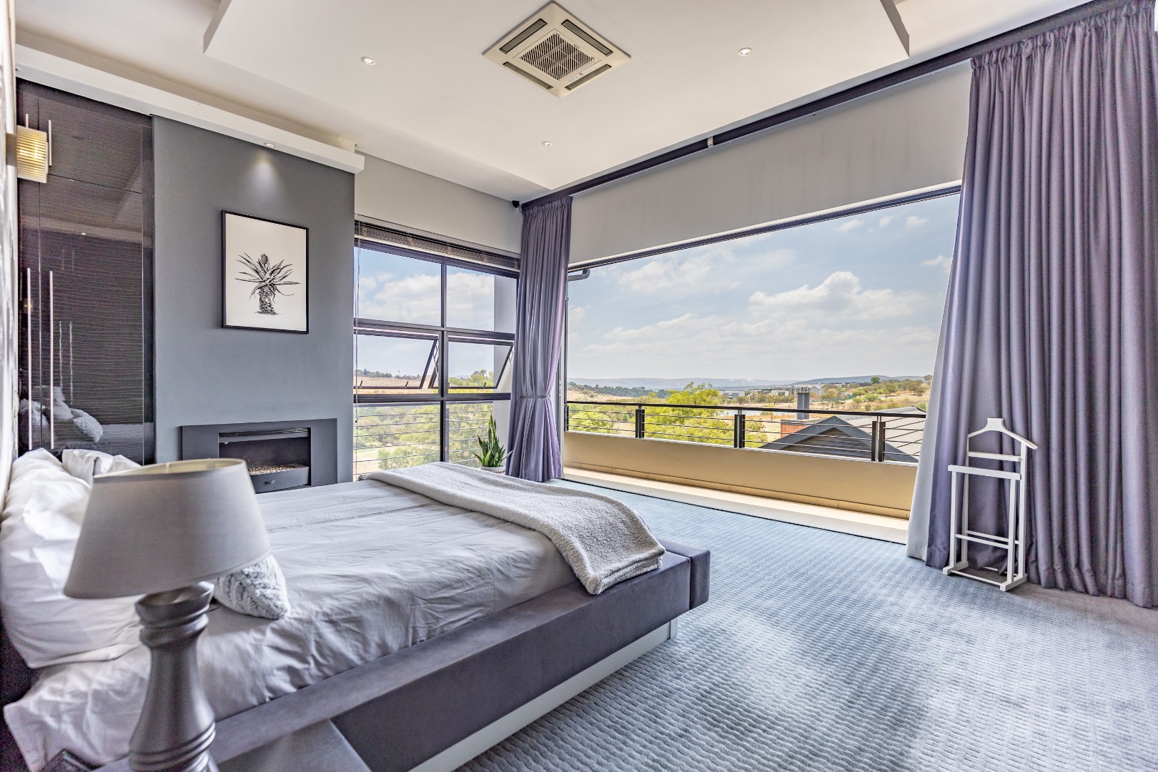 Nestled within the prestigious Copperleaf Golf Estate, a premier modern community of 1,165 homes just 20 minutes from Lanseria Airport and conveniently accessible via the N14 highway, this exceptional 4 or 5 bedroom residence masterfully combines luxury, sustainability, and a holiday-like lifestyle on South Africa’s only Els Club golf course. Perfect for family living and entertaining, the estate is surrounded by top-tier schools and thrives with recent westward expansion, fostering a vibrant, family-oriented environment. Set on expansive grassland plains, the championship golf course, designed by Ernie Els, features long holes, distinctive bunkering, wide fairways, multiple tee boxes, and superb greens, making it accessible to golfers of all skill levels while offering challenging bunkers, water hazards, and three short, risk-reward par 4s that have earned praise from professionals. This eco-conscious home is equipped with a 6KW grid-tied solar system, including 8KW solar panels, a 6KW inverter, and 24x 2V 2050mAh batteries, ensuring uninterrupted power during outages and keeping monthly electricity bills as low as R2000. A 70m borehole supplies a 2000L house tank and two 6000L irrigation tanks, with water purified through a 6-stage system and UV sterilization, completely eliminating council water bills, though occasional estimated charges are typically refunded the following month.