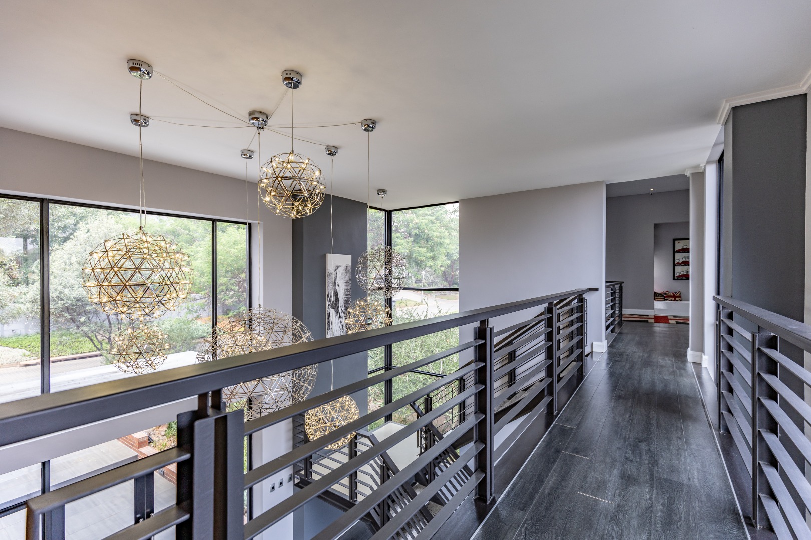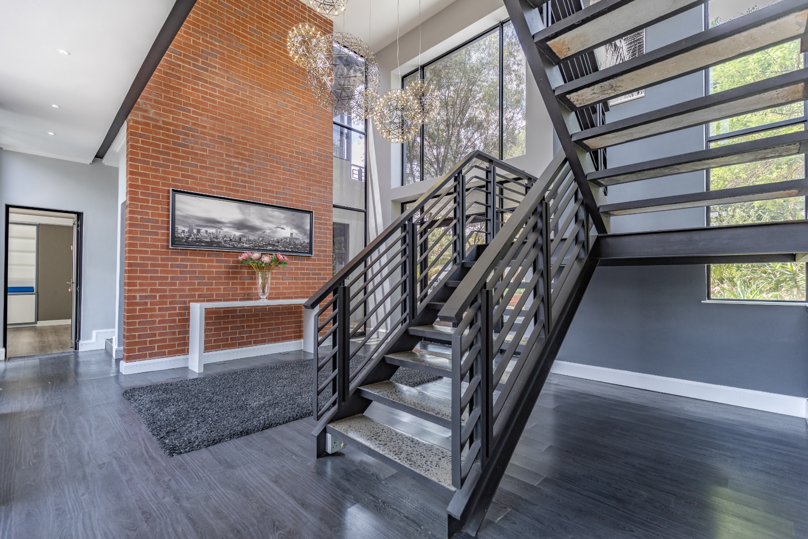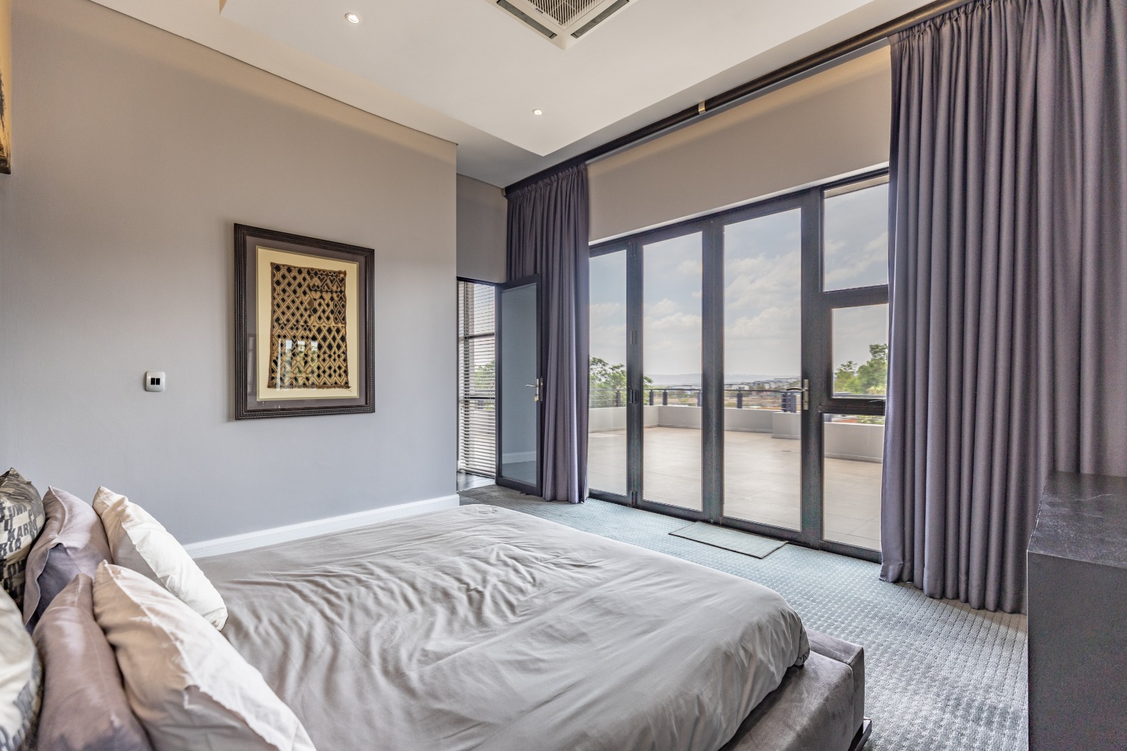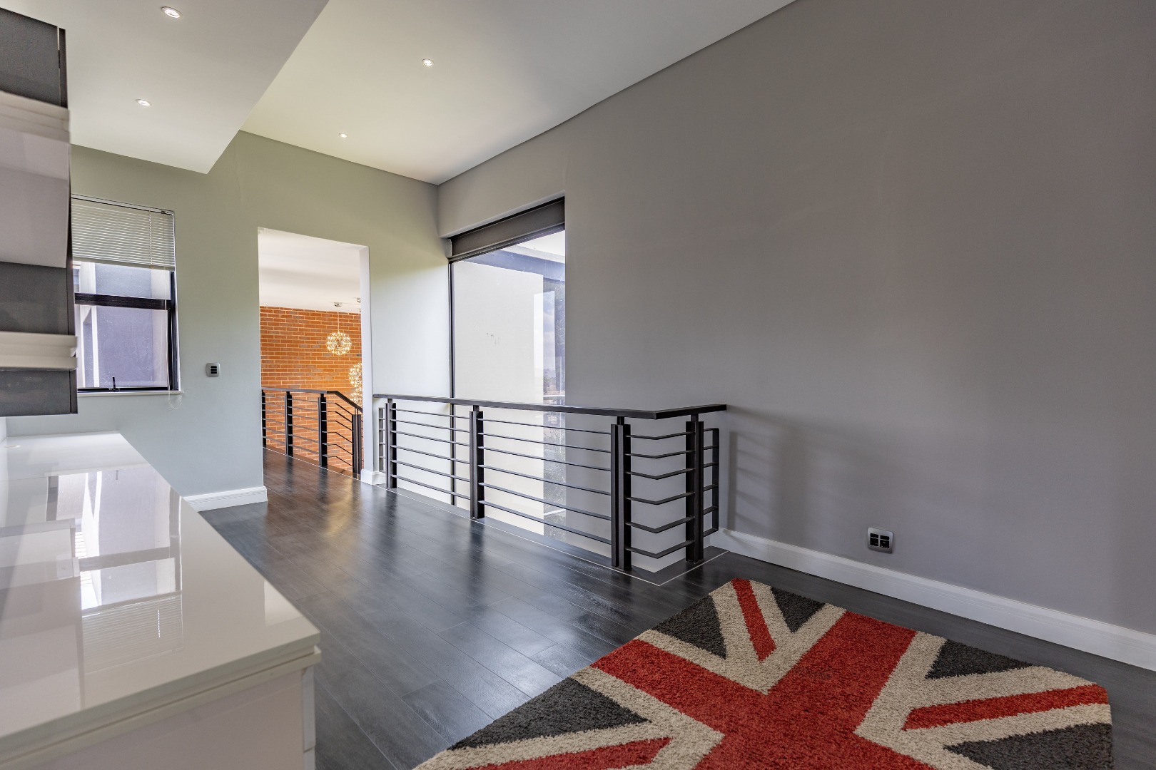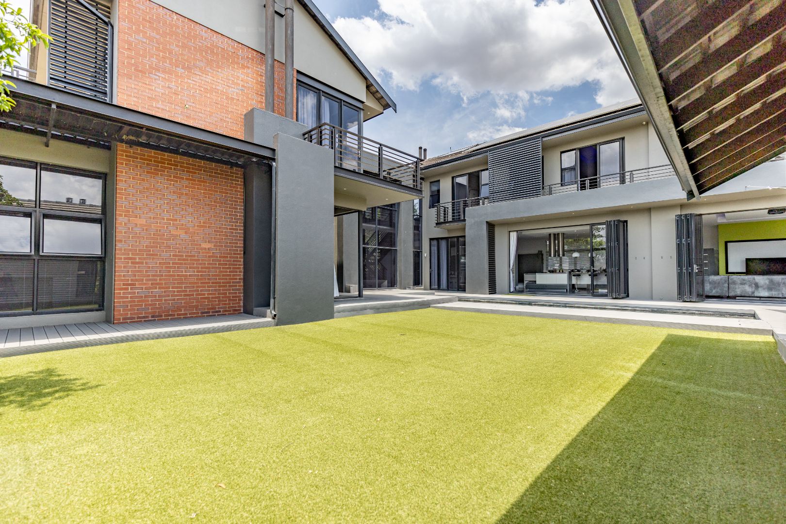 Nestled within the prestigious Copperleaf Golf Estate, a premier modern community of 1,165 homes just 20 minutes from Lanseria Airport and conveniently accessible via the N14 highway, this exceptional 4 or 5 bedroom residence masterfully combines luxury, sustainability, and a holiday-like lifestyle on South Africa’s only Els Club golf course. Perfect for family living and entertaining, the estate is surrounded by top-tier schools and thrives with recent westward expansion, fostering a vibrant, family-oriented environment. Set on expansive grassland plains, the championship golf course, designed by Ernie Els, features long holes, distinctive bunkering, wide fairways, multiple tee boxes, and superb greens, making it accessible to golfers of all skill levels while offering challenging bunkers, water hazards, and three short, risk-reward par 4s that have earned praise from professionals. This eco-conscious home is equipped with a 6KW grid-tied solar system, including 8KW solar panels, a 6KW inverter, and 24x 2V 2050mAh batteries, ensuring uninterrupted power during outages and keeping monthly electricity bills as low as R2000. A 70m borehole supplies a 2000L house tank and two 6000L irrigation tanks, with water purified through a 6-stage system and UV sterilization, completely eliminating council water bills, though occasional estimated charges are typically refunded the following month.