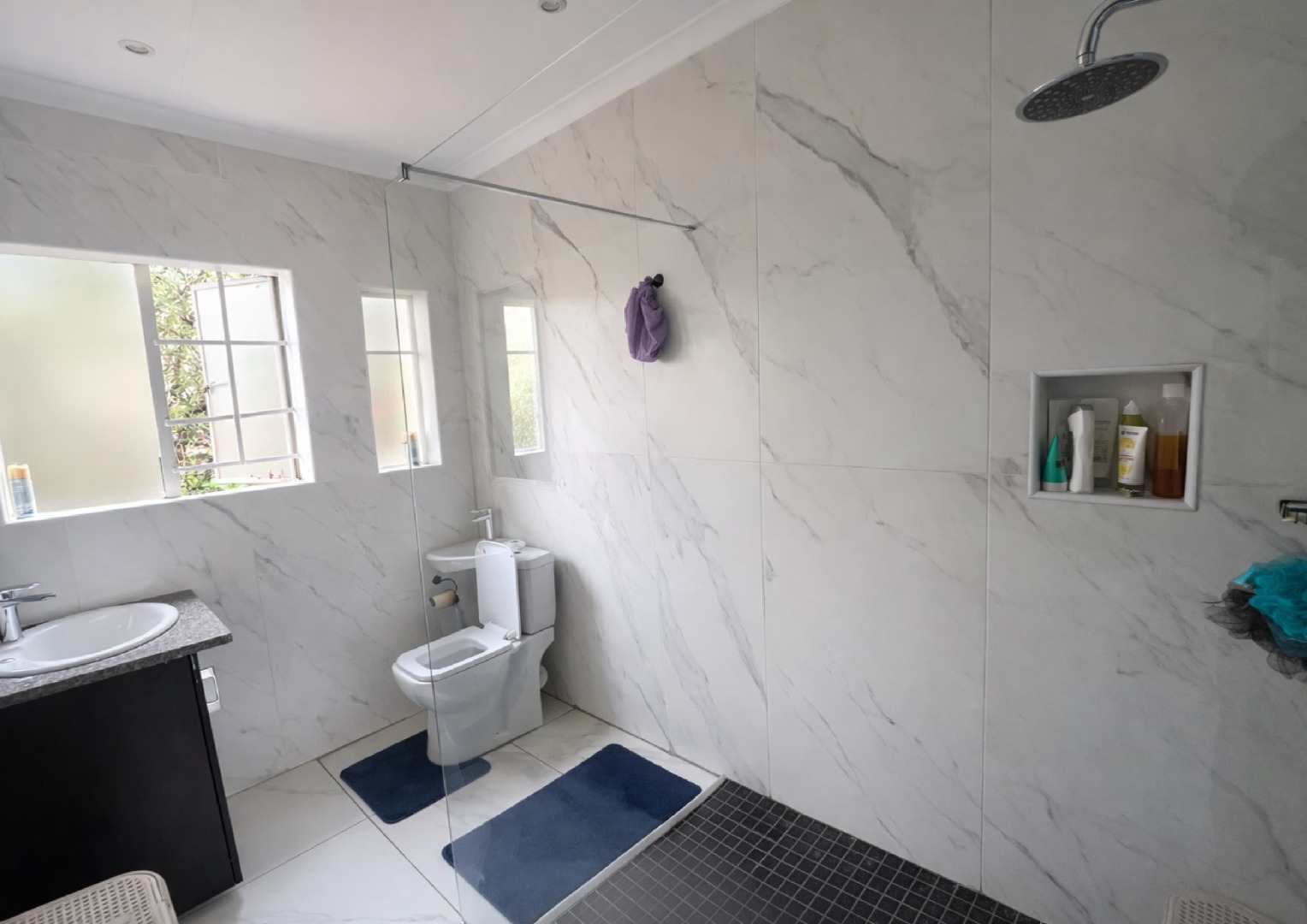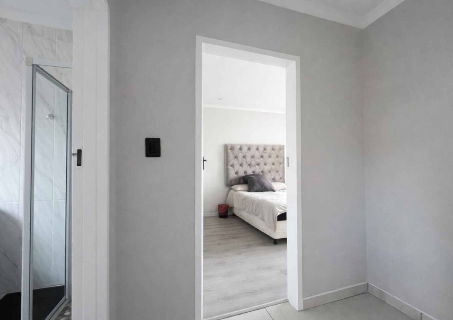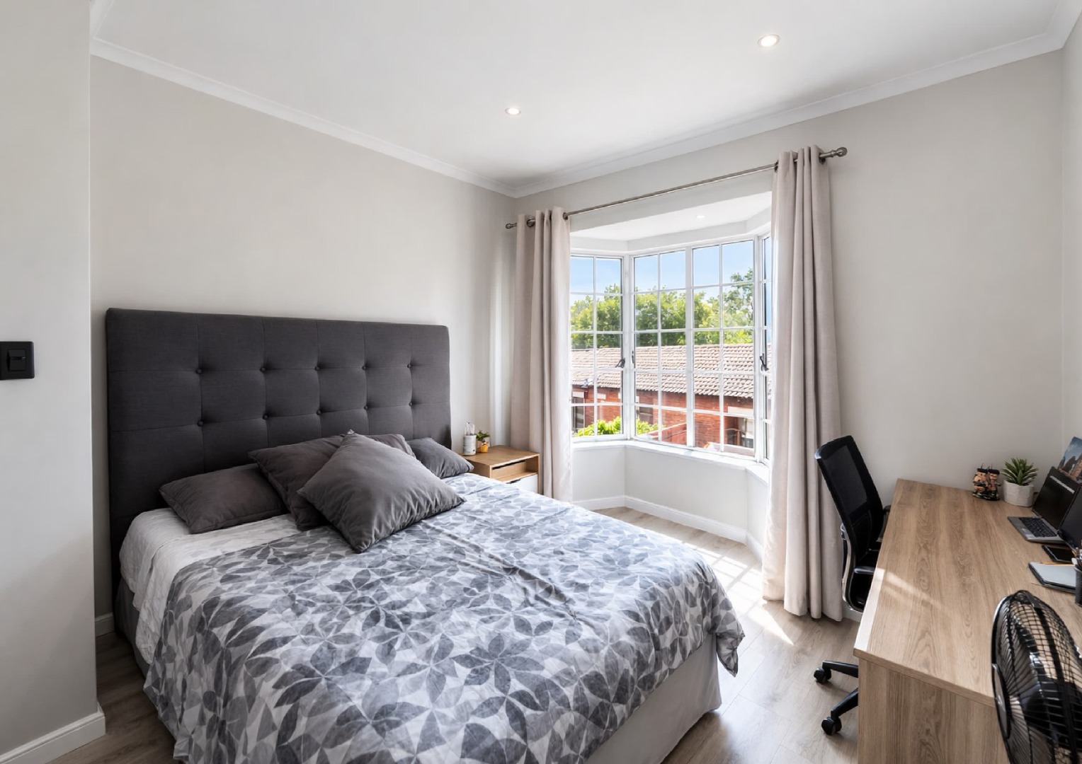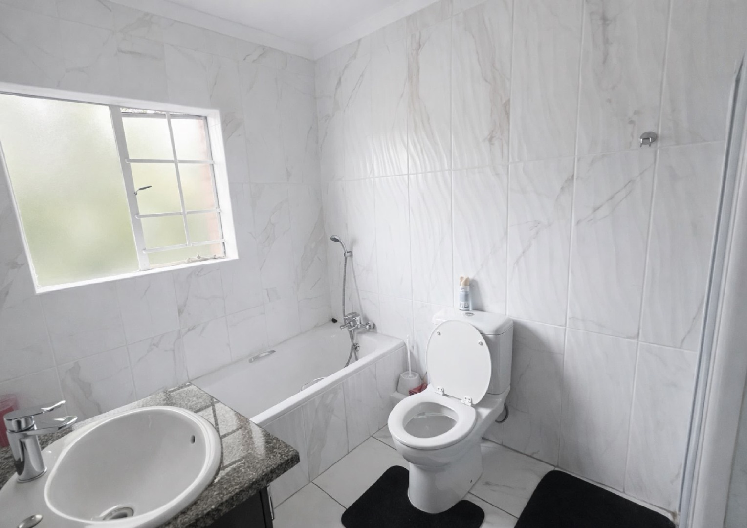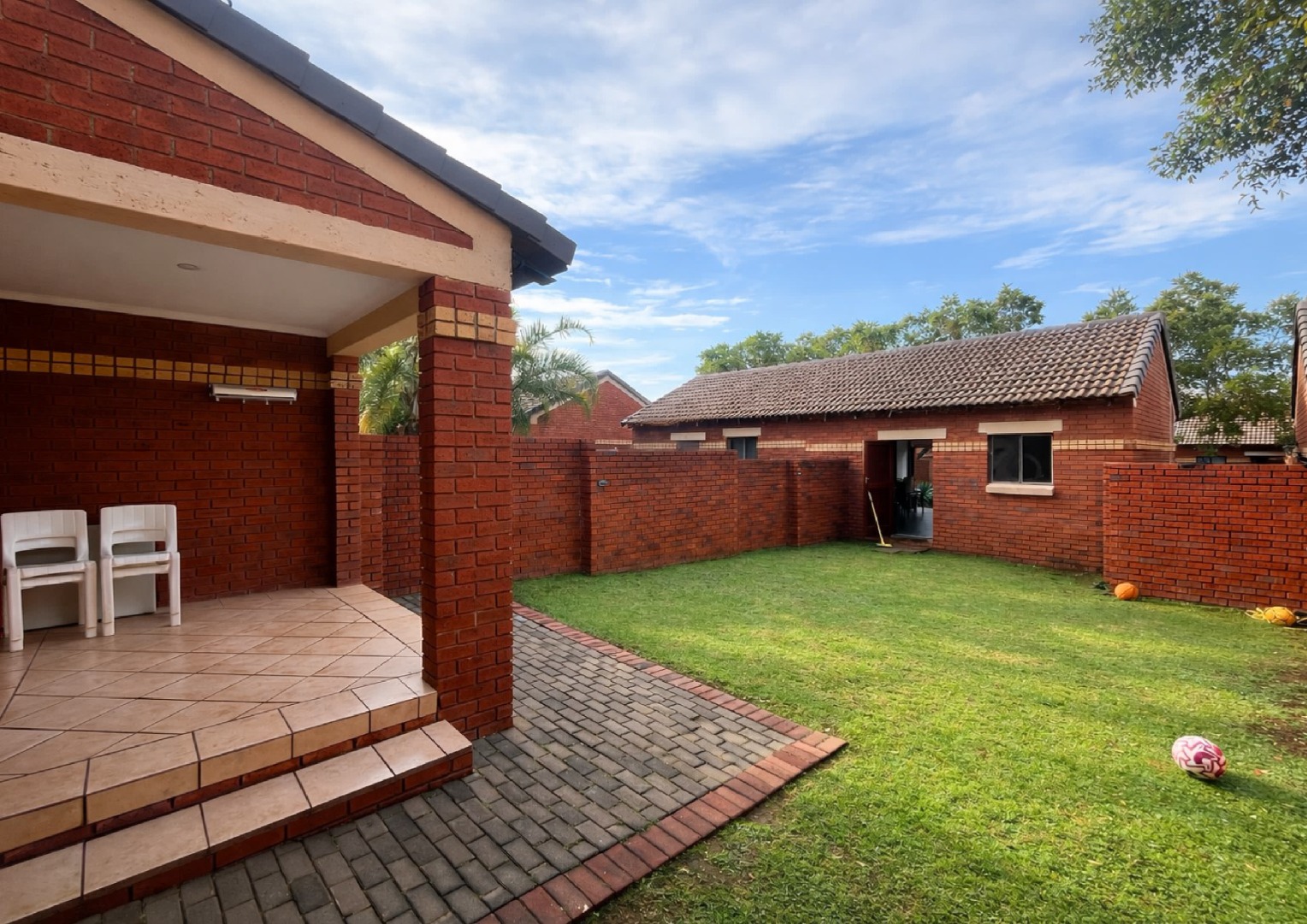 Upstairs, you’ll find well-sized bedrooms with built in cupboards, offering a peaceful retreat from the main living areas. The bathrooms are neat and modern, finished with clean, stylish tiling. Additional features such as air conditioning and a well thought out layout add to the overall comfort and convenience of the home.