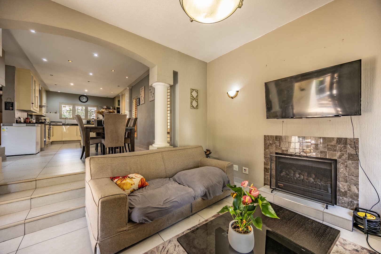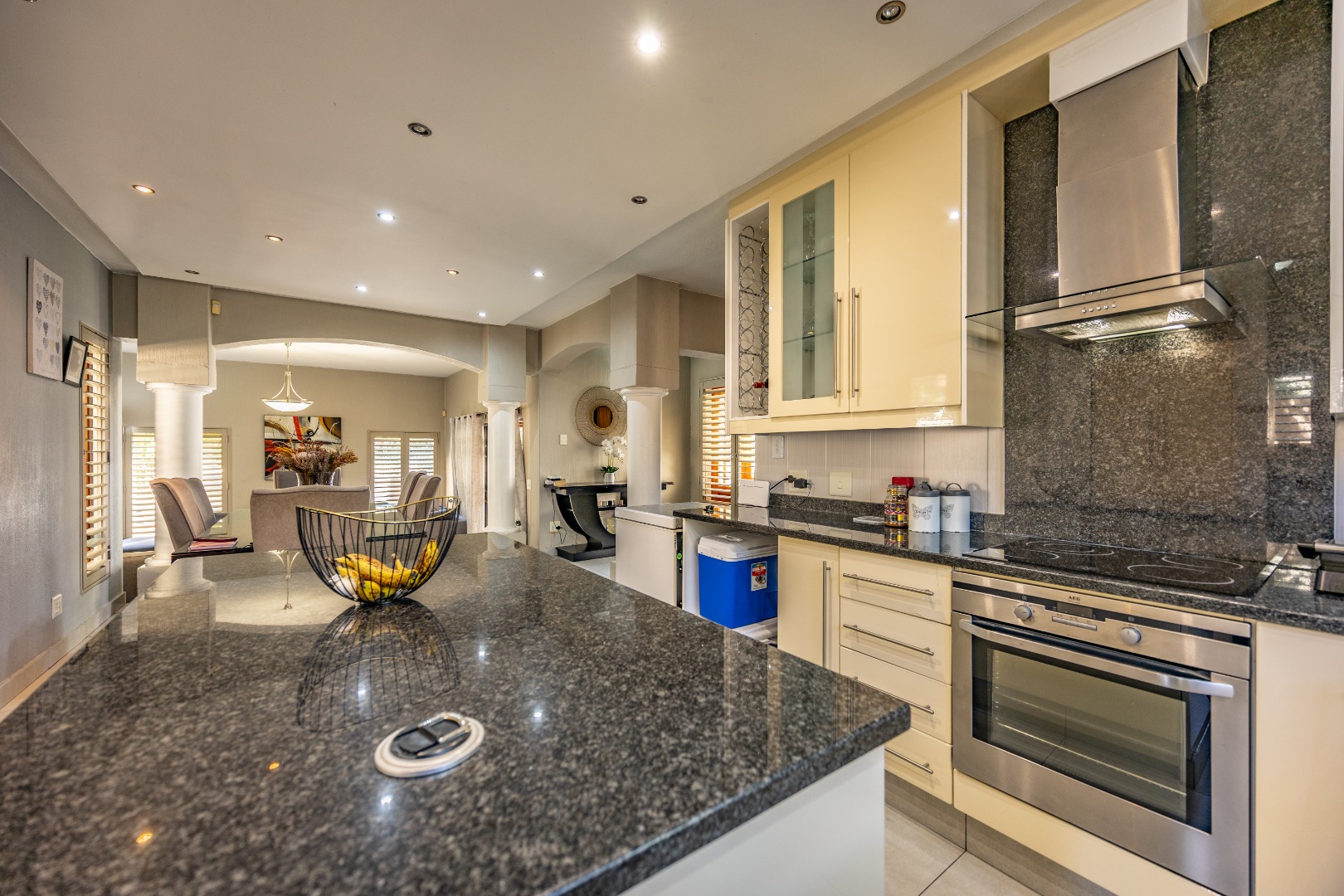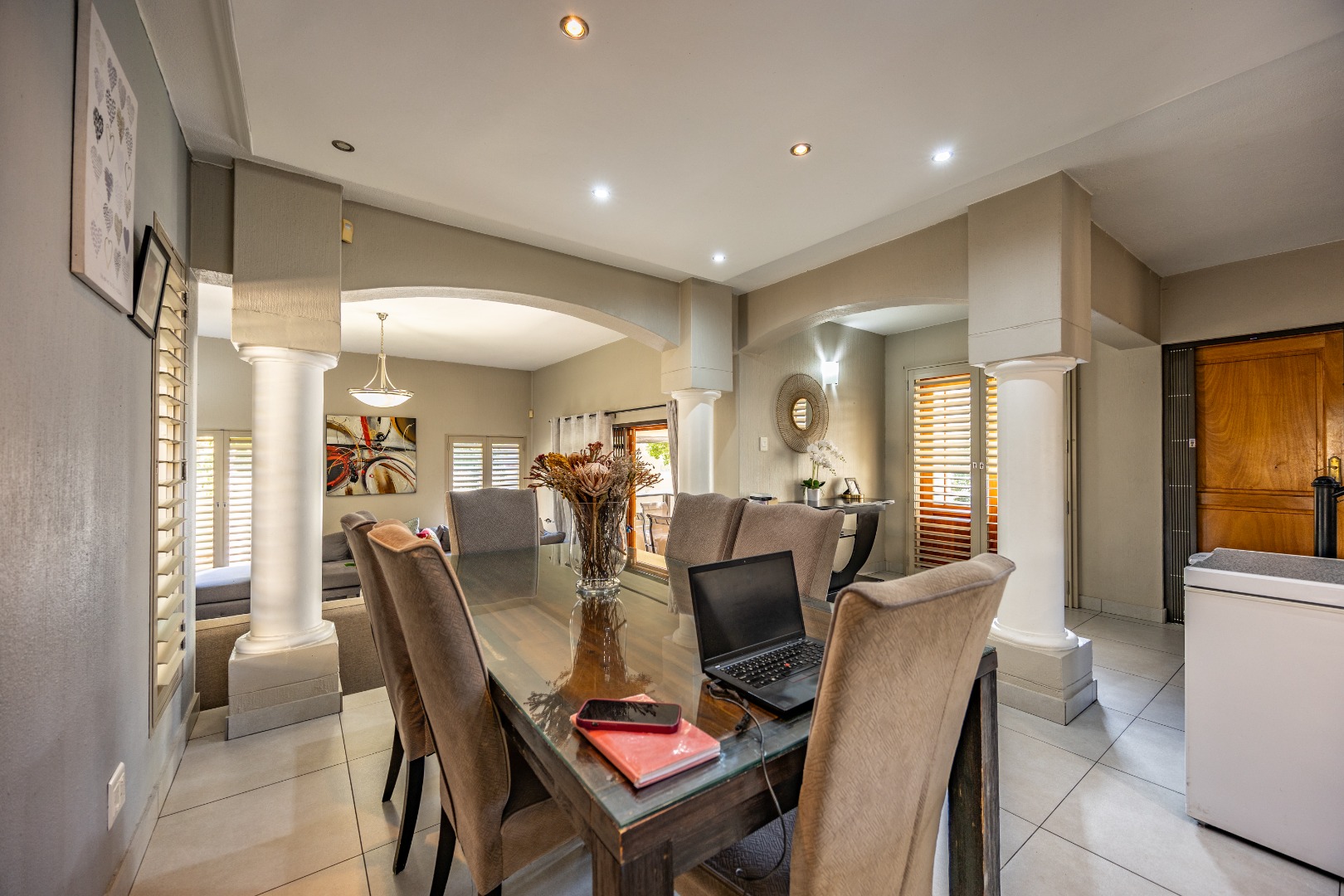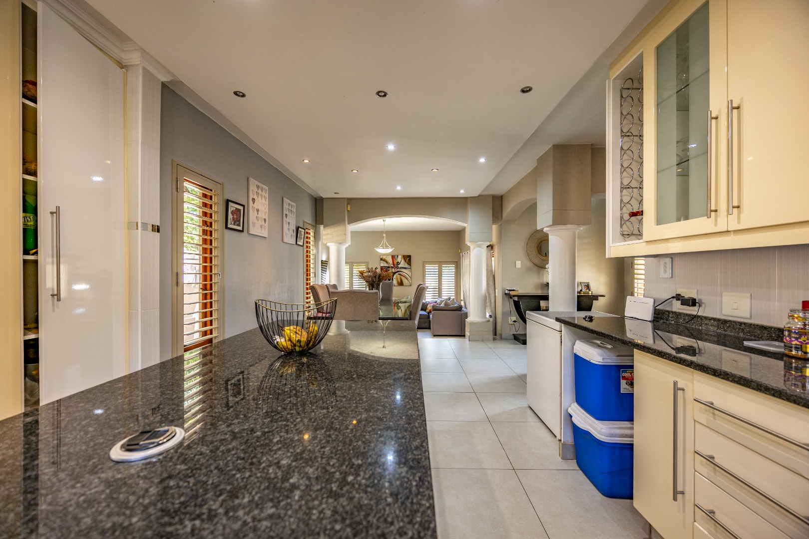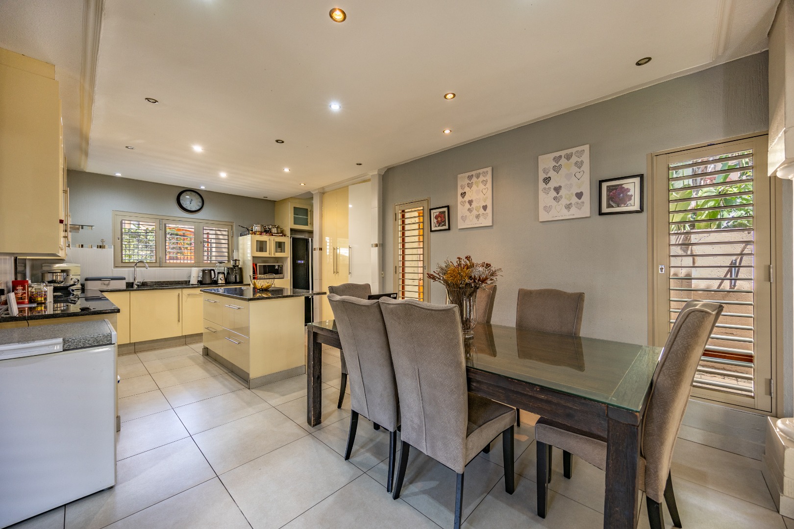 The heart of the home extends seamlessly outdoors, where a stunning swimming pool and beautifully designed braai area set the stage for unforgettable gatherings. Whether hosting friends and family or enjoying quiet evenings under the stars, this outdoor space is a true highlight—crafted for relaxation and enjoyment. The flowing layout ensures a seamless connection between indoor and outdoor living, enhancing the overall appeal of the home.