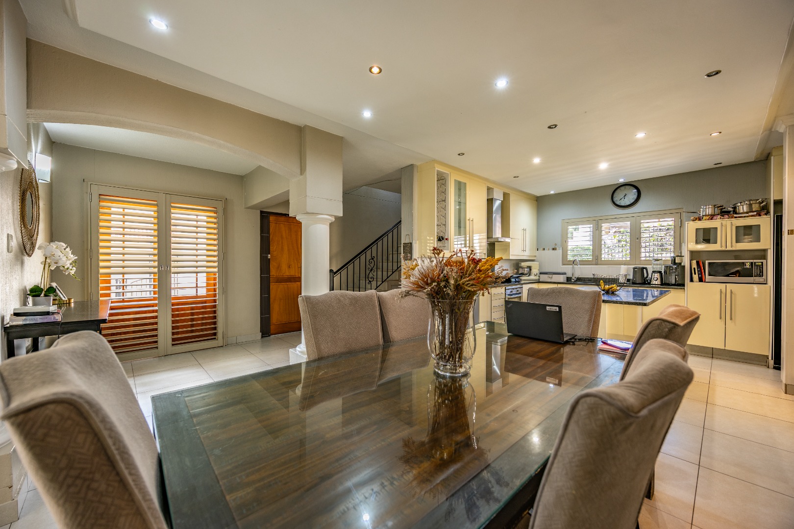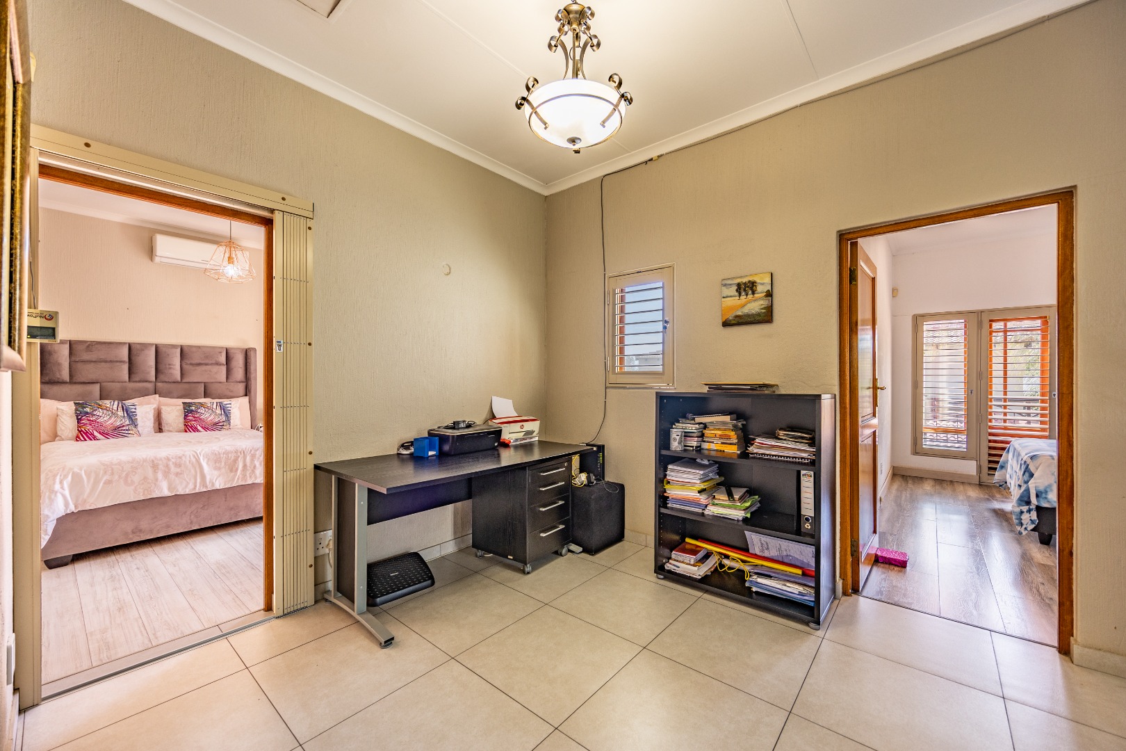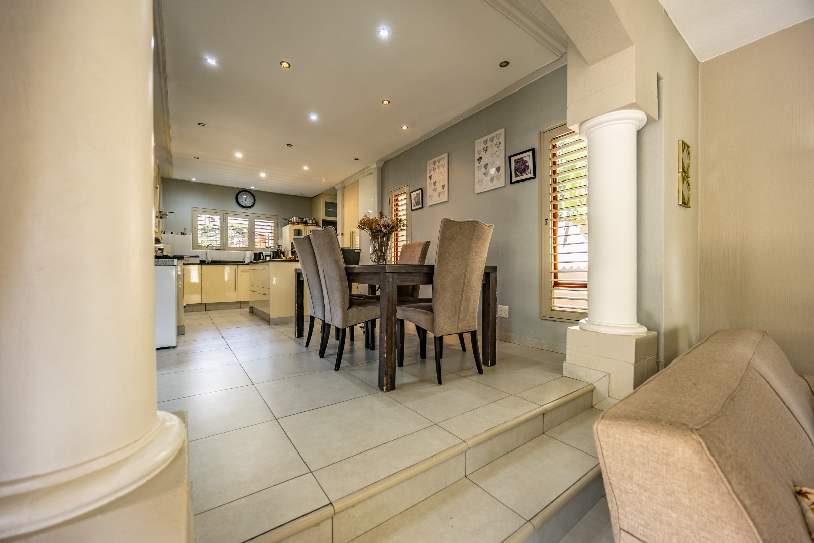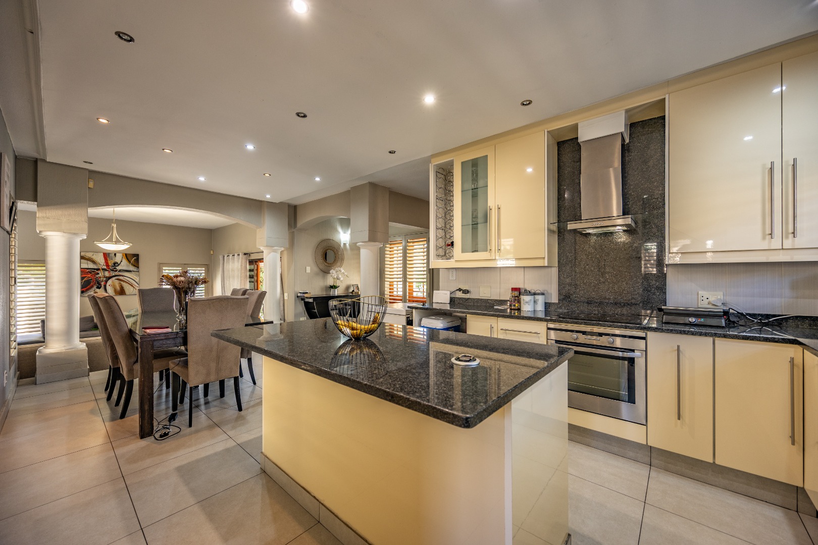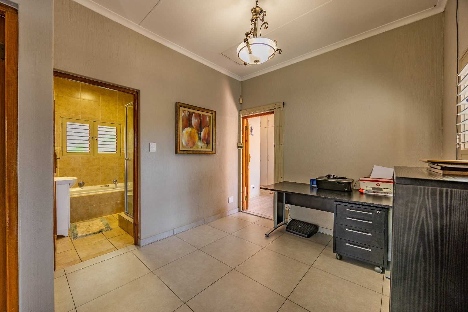 The heart of the home extends seamlessly outdoors, where a stunning swimming pool and beautifully designed braai area set the stage for unforgettable gatherings. Whether hosting friends and family or enjoying quiet evenings under the stars, this outdoor space is a true highlight—crafted for relaxation and enjoyment. The flowing layout ensures a seamless connection between indoor and outdoor living, enhancing the overall appeal of the home.