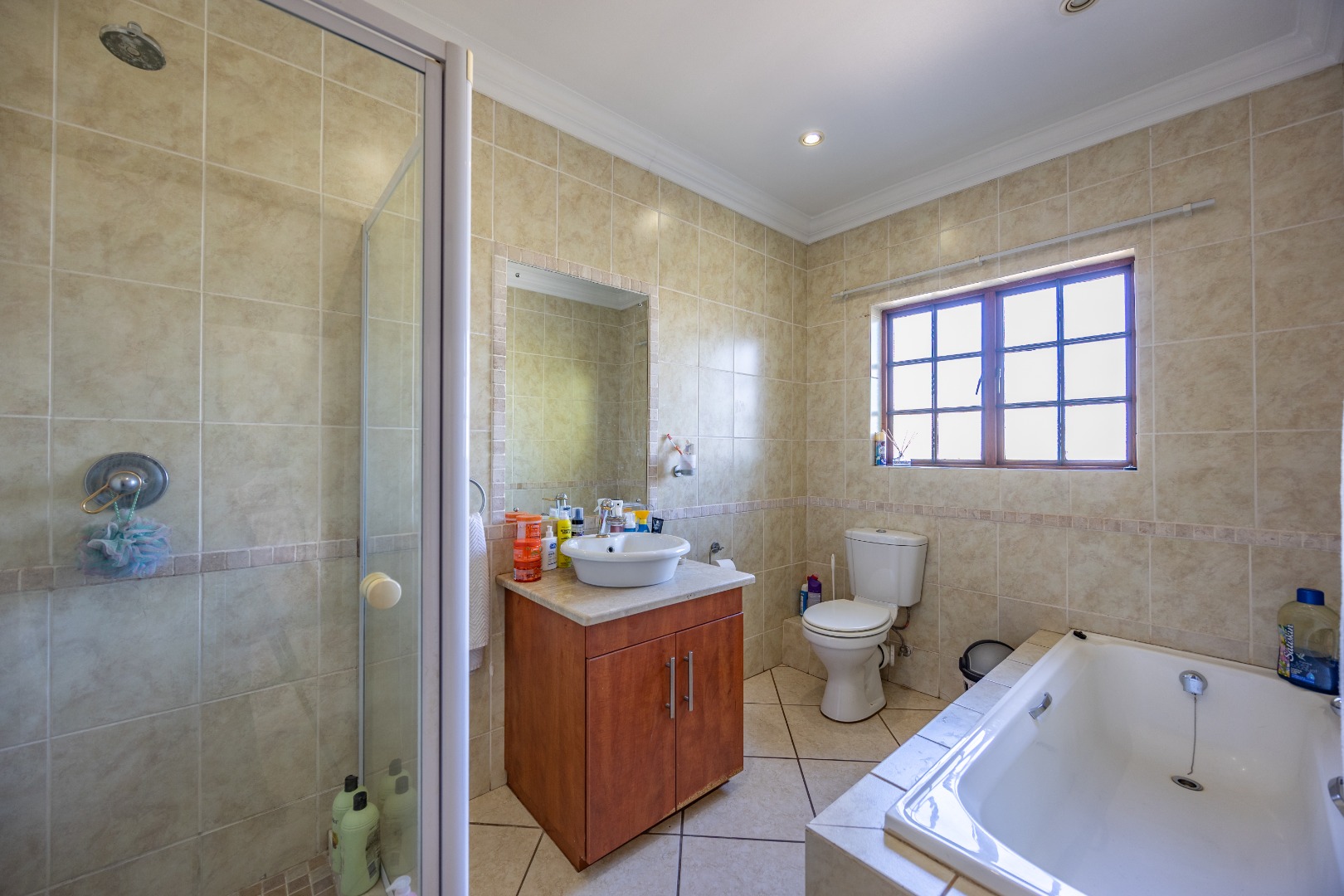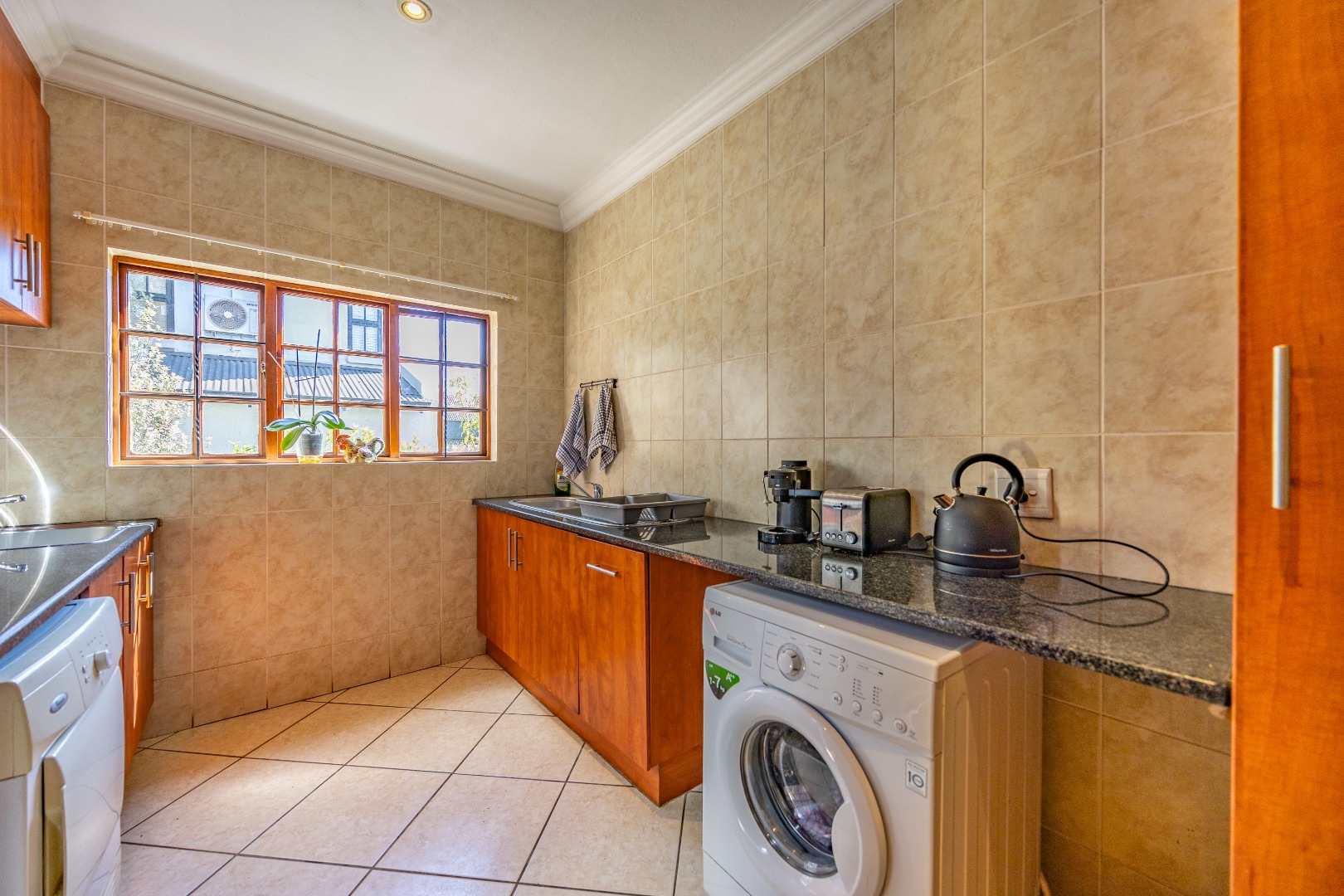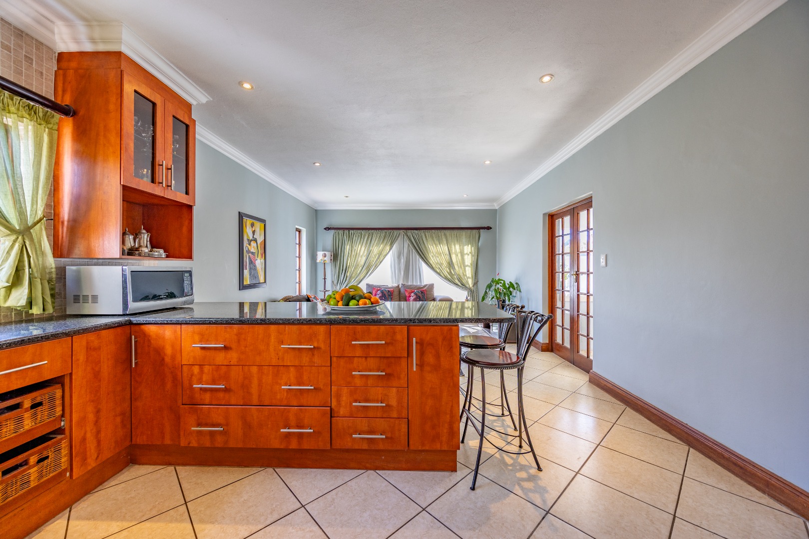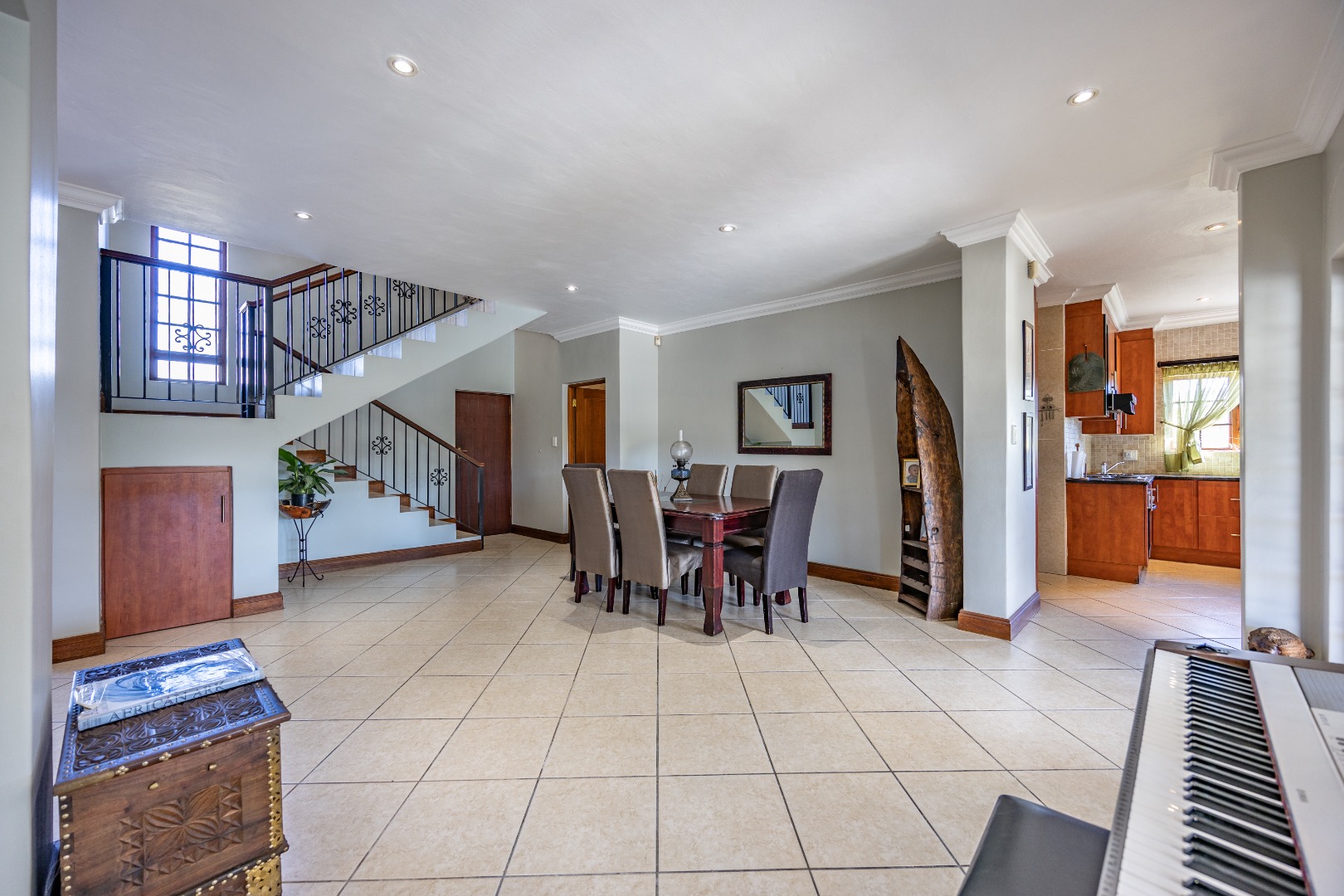 Discover this exceptional 4-bedroom double-storey home in the prestigious Boardwalk Meander Estate A, Pretoria East, where timeless charm meets everyday comfort. Upon entering, generous open-plan living spaces invite you in, seamlessly connecting a formal lounge, TV room, and expansive dining area—perfect for both entertaining and family living. The well-designed kitchen, with sleek pull-out drawers and ample work surfaces, is complemented by a scullery and walk-in pantry, keeping everything organised and functional. A private study on the ground floor offers the ideal work-from-home setup, while under-stair storage and staff accommodation with a domestic bathroom add practical convenience.
