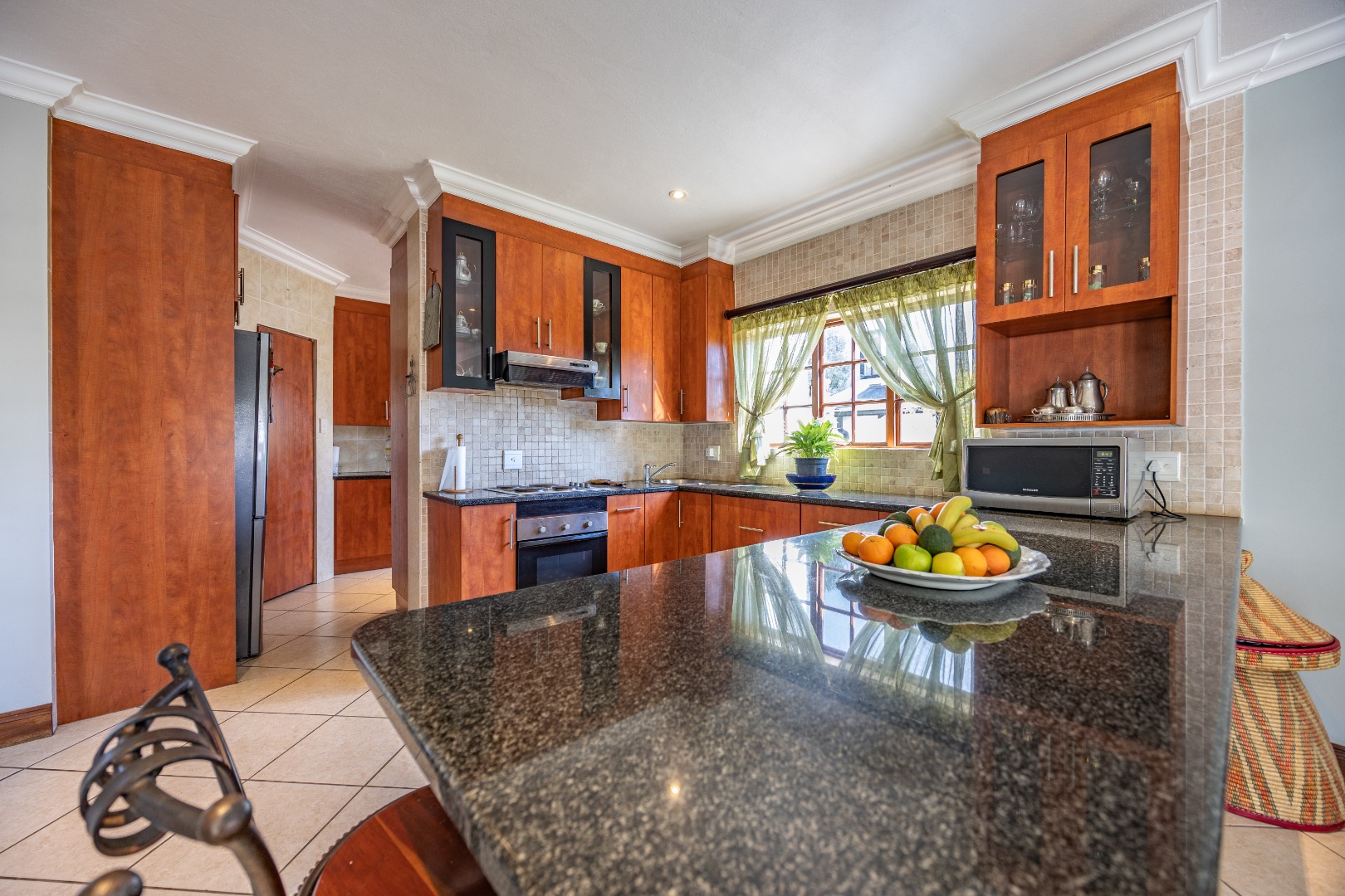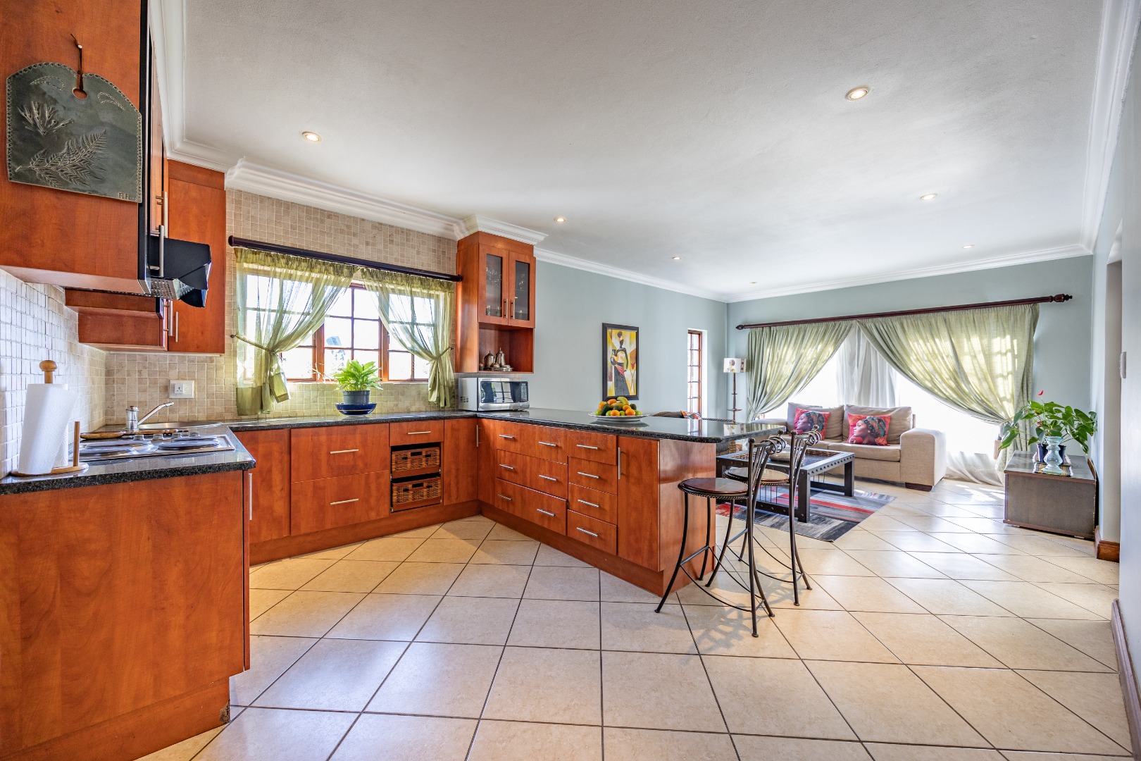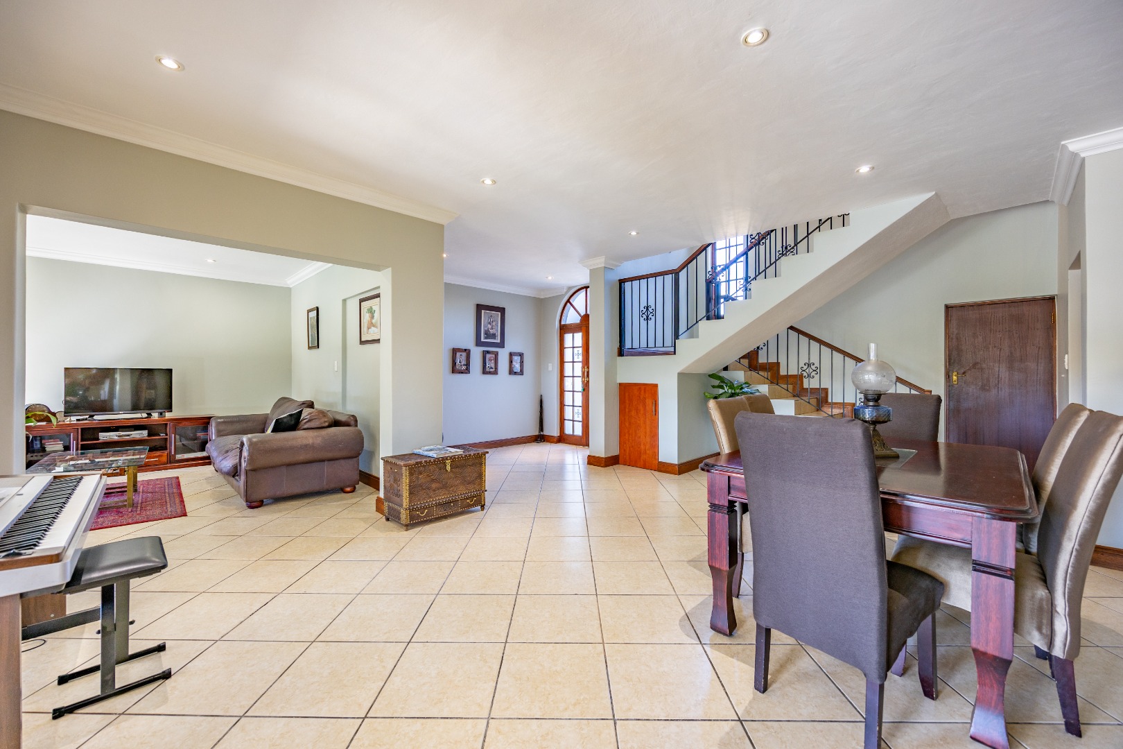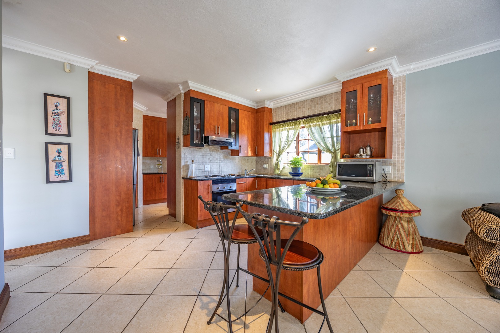 Discover this exceptional 4-bedroom double-storey home in the prestigious Boardwalk Meander Estate A, Pretoria East, where timeless charm meets everyday comfort. Upon entering, generous open-plan living spaces invite you in, seamlessly connecting a formal lounge, TV room, and expansive dining area—perfect for both entertaining and family living. The well-designed kitchen, with sleek pull-out drawers and ample work surfaces, is complemented by a scullery and walk-in pantry, keeping everything organised and functional. A private study on the ground floor offers the ideal work-from-home setup, while under-stair storage and staff accommodation with a domestic bathroom add practical convenience.
