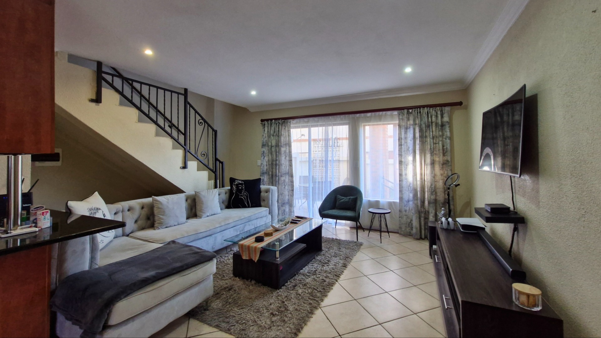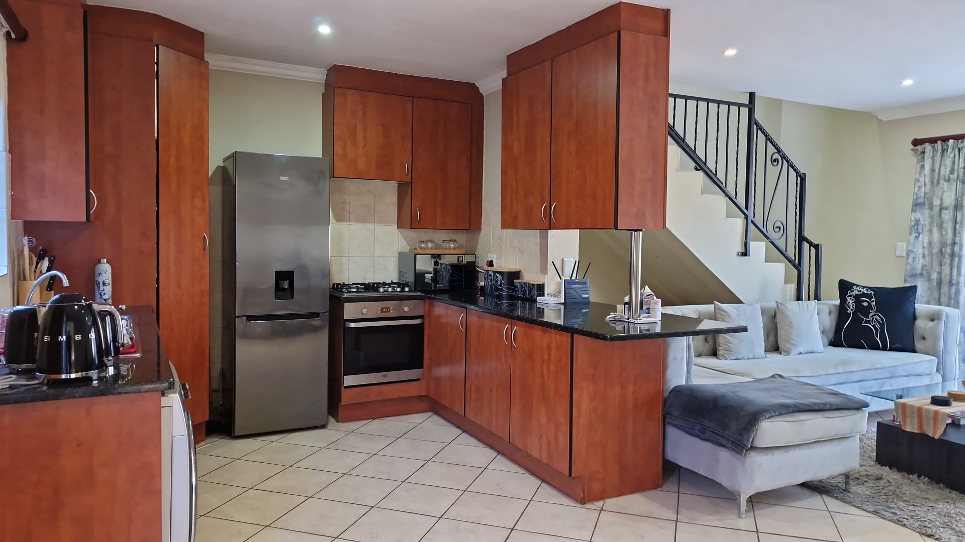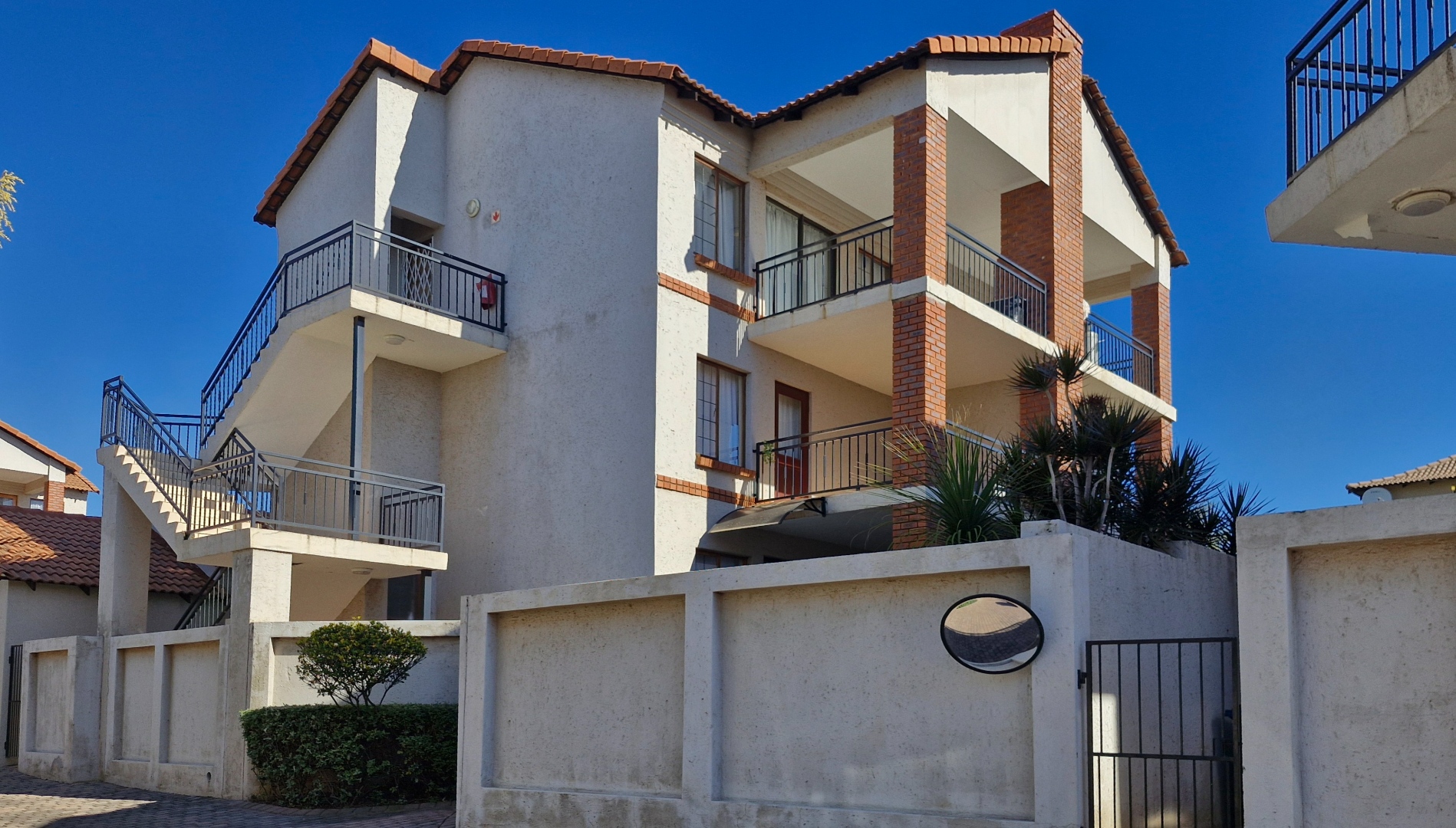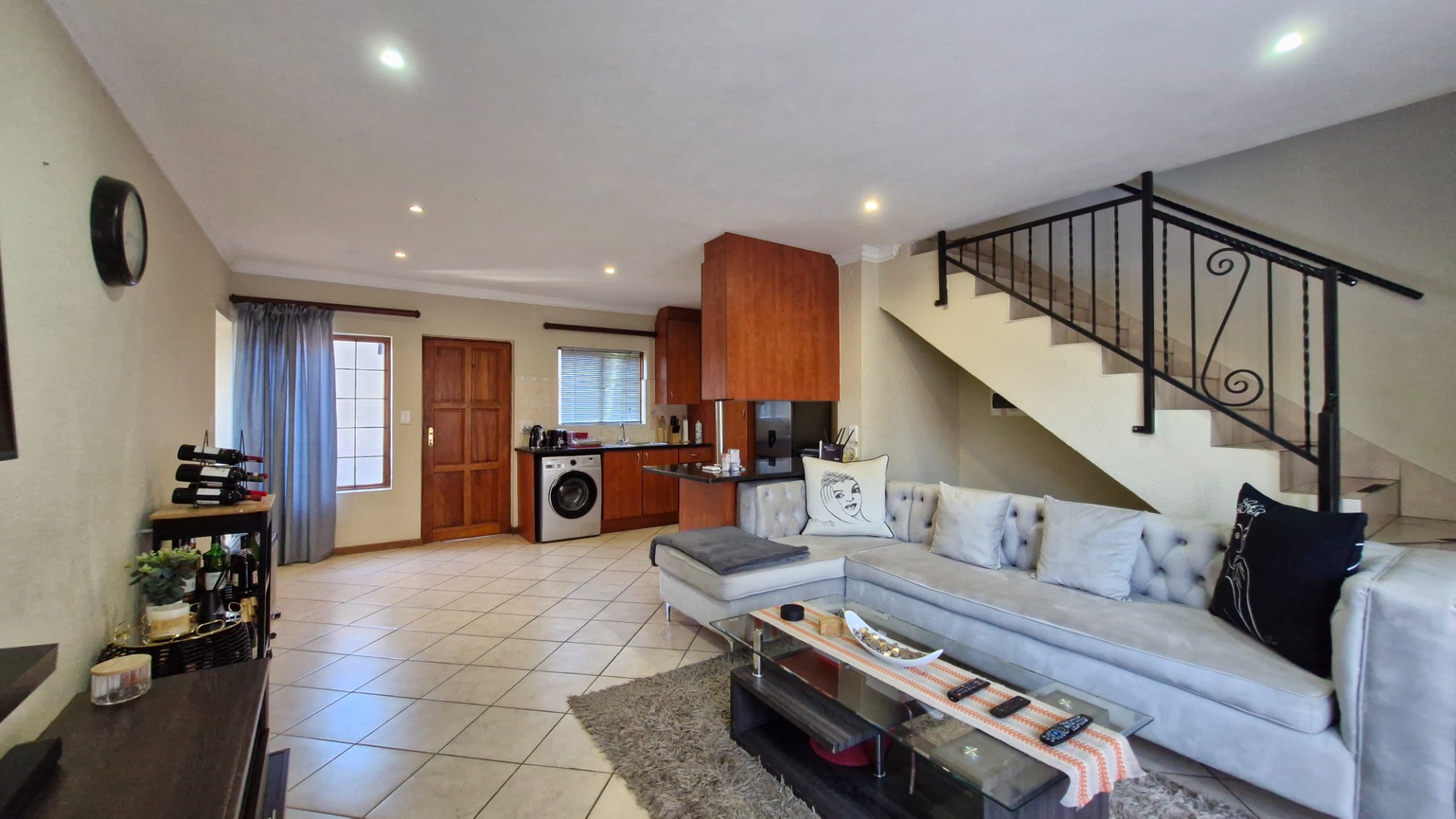 This beautiful duplex, situated in the center of one of the complexes within Country View Estate. This is a corner unit with a large two level garden and is very suitable as a lock-up-and-go property. Main features include two bedrooms, one full bathroom, a separate guest toilet, a private enclosed garden, covered patio with a built-in braai, one lock-up garage and one covered parking. The open-plan kitchen with granite tops, gas hob with an under counter oven, breakfast-nook, a corner pantry, space for a fridge and dishwasher and a separate washing-machine connection in the garage. The living-areas flow out to the covered patio with a built-in braai and irrigated garden-area. The guest-toilet is situated on the ground level, with the bedrooms and full bathroom on the second level. The spacious main bedroom has a balcony for extra convenience. The duplex is further complimented with a fibre connection.