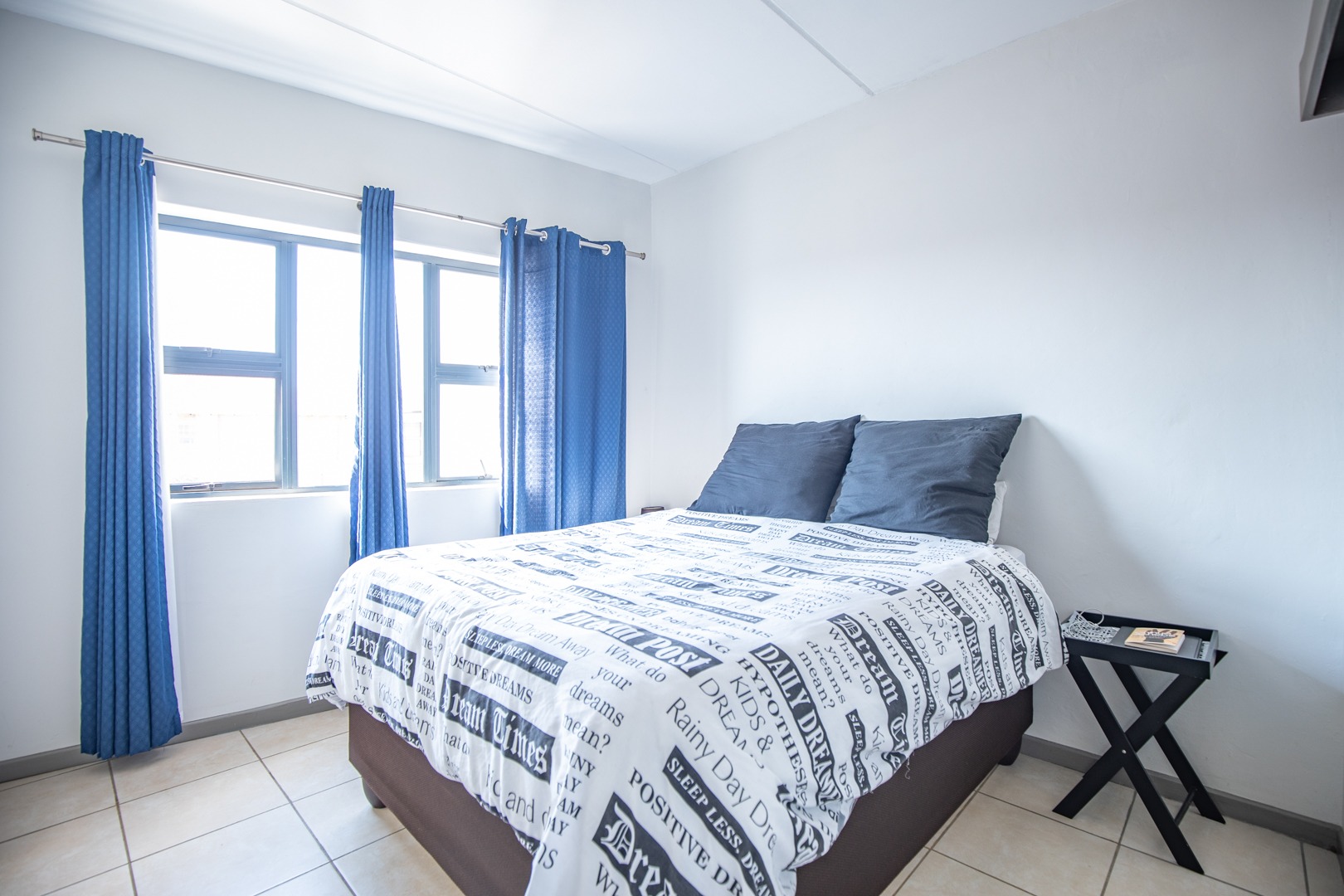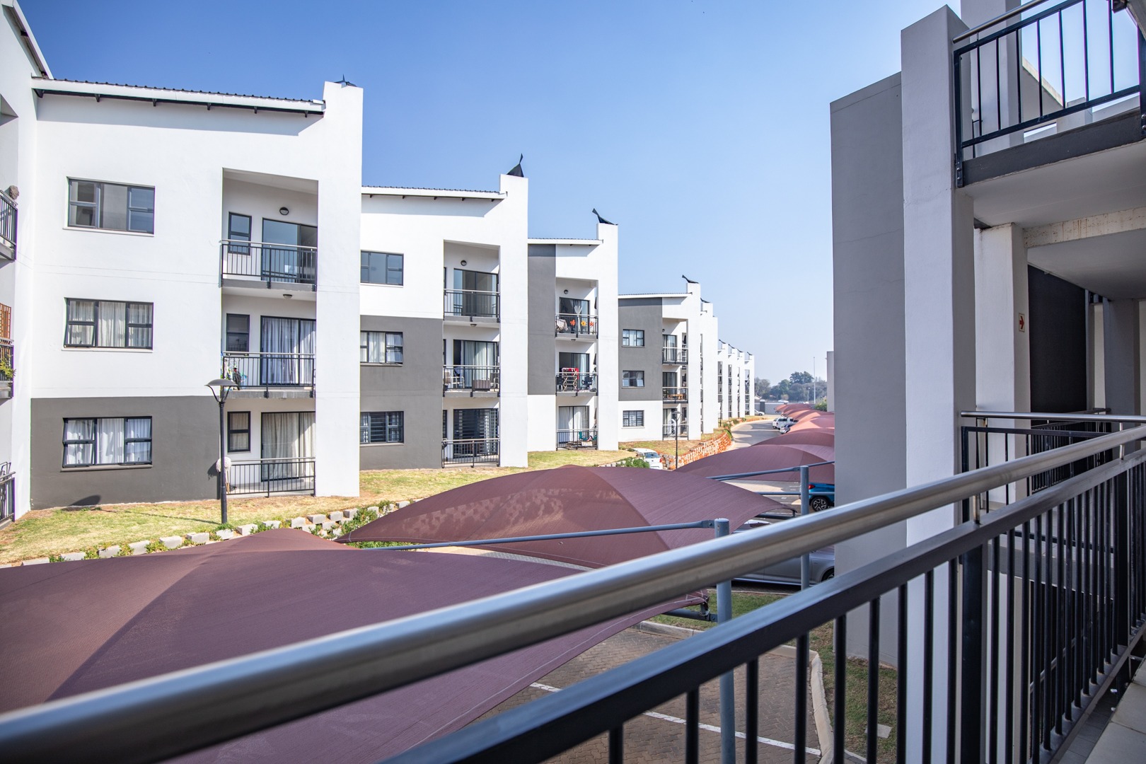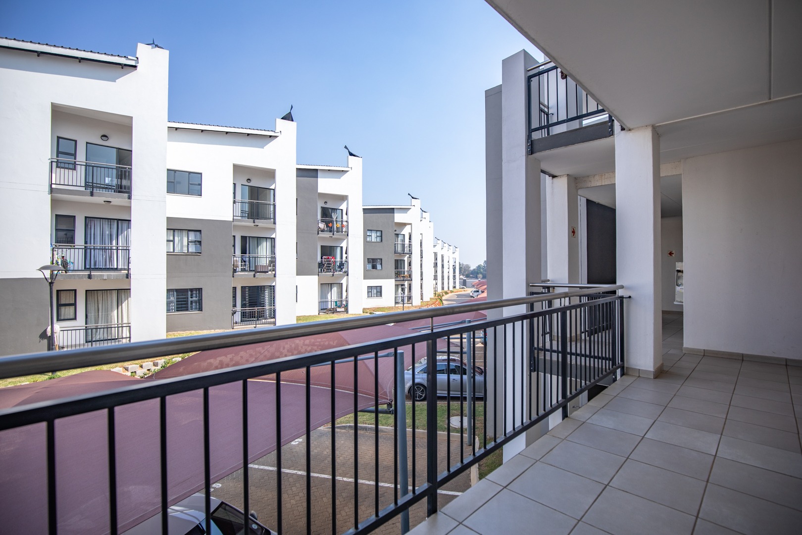 Step into a neat and tidy unit featuring a modern kitchen with ample cupboard space, a tabletop electric stove, and room for an appliance. The open-plan layout flows seamlessly into the spacious living area, which leads out to a private balcony equipped with a built-in braai—ideal for entertaining.
