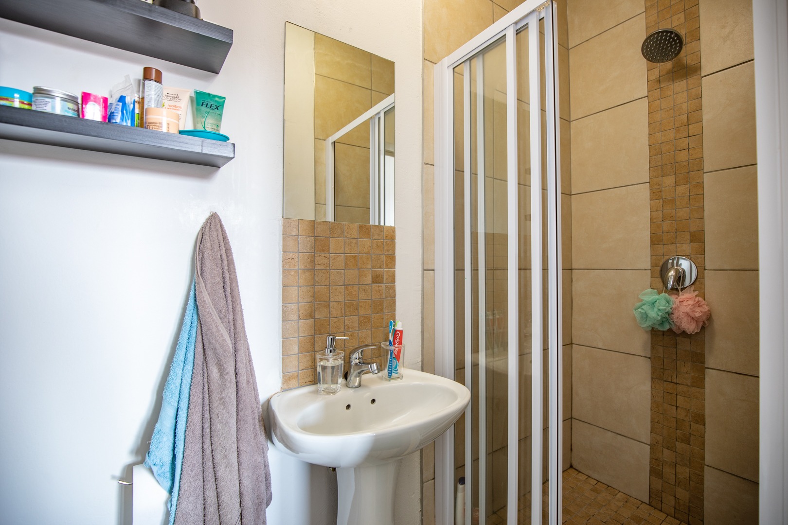 Both bedrooms offer generous space, with the main bedroom boasting an en-suite bathroom with a shower. The second bathroom serves the rest of the unit, ensuring convenience for residents and guests alike.