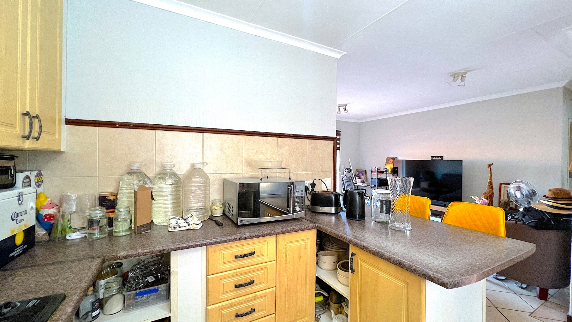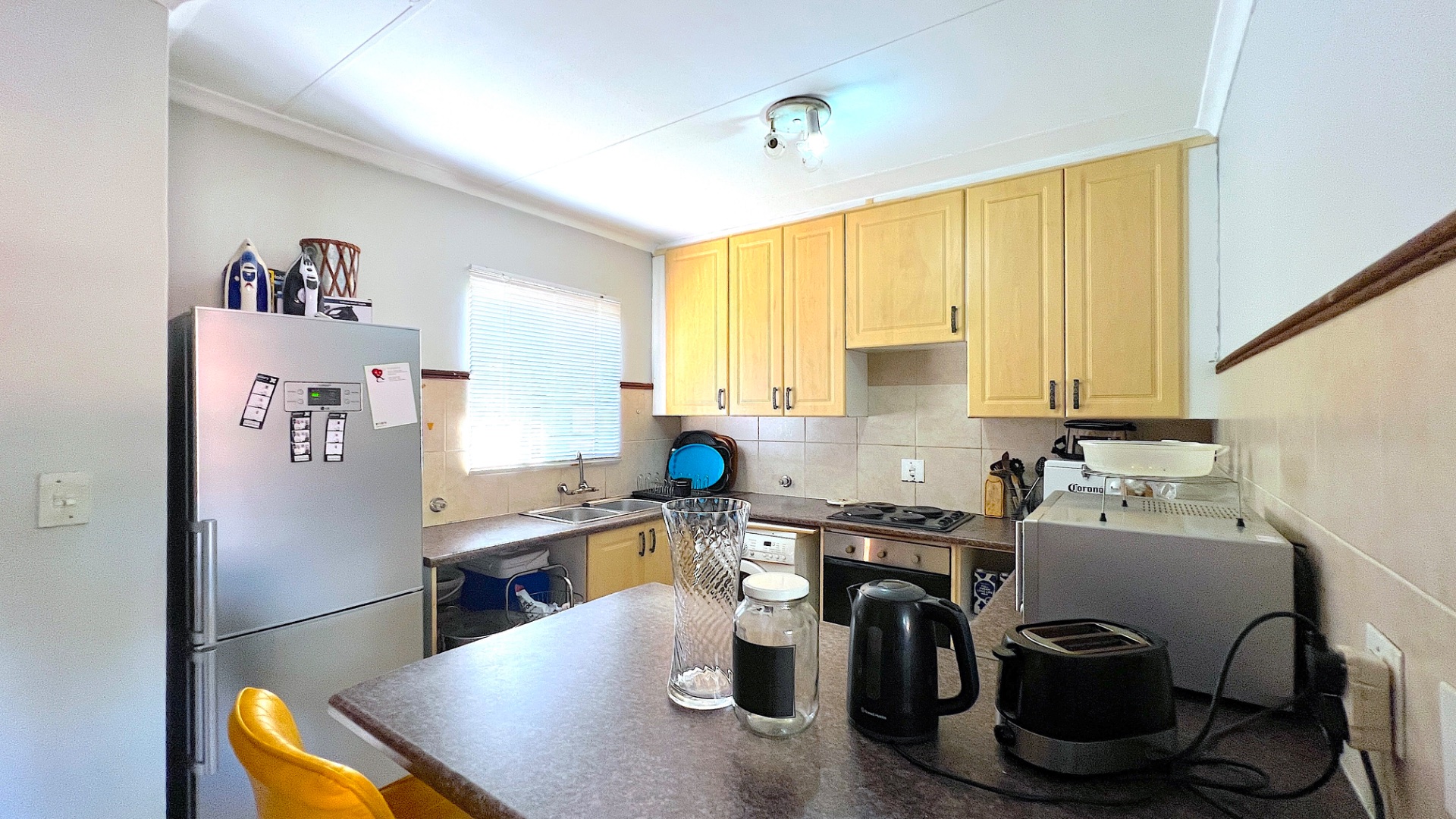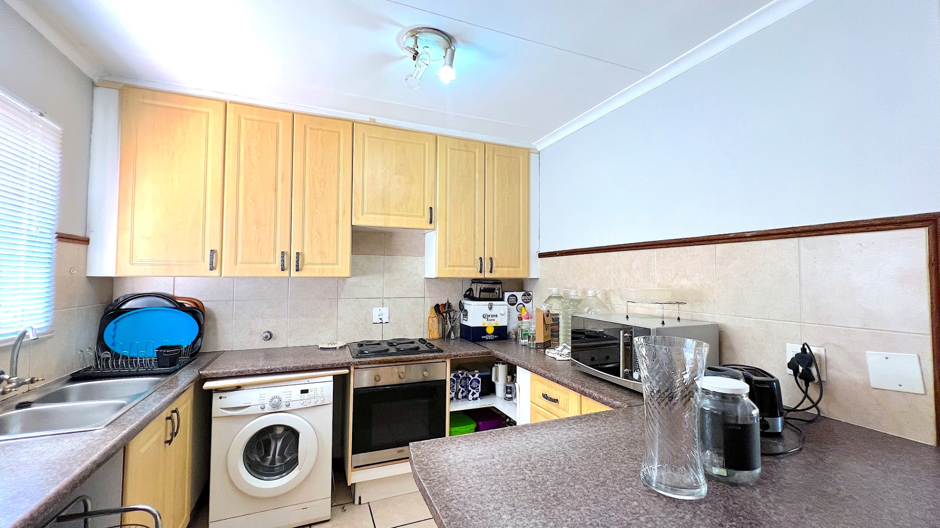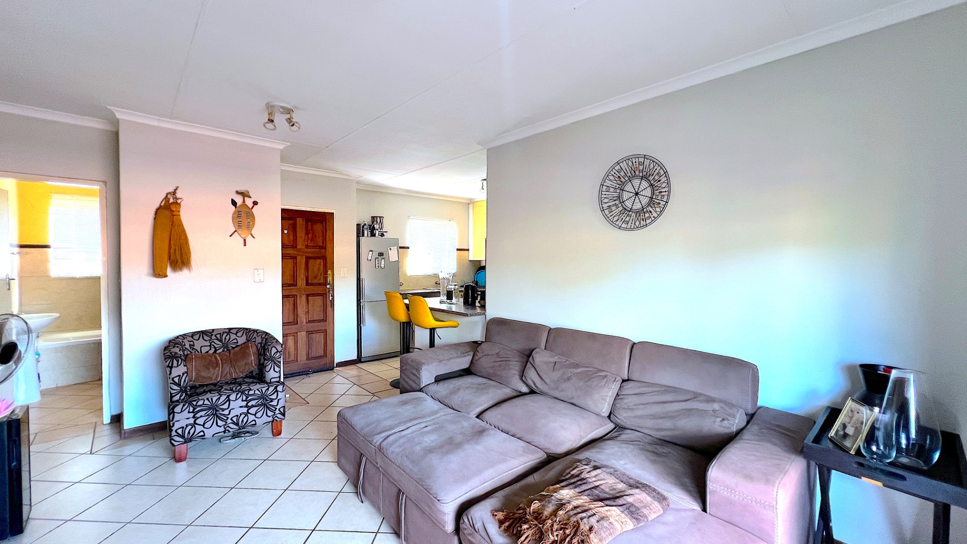 Discover comfortable living in this inviting two-bedroom apartment, ideally situated within a secure estate in Equestria, Pretoria. Spanning 81 square metres, this property offers a functional and well-designed layout perfect for modern lifestyles. The heart of the home features an open-plan kitchen, seamlessly flowing into the lounge area. The kitchen is equipped with practical light wood cabinetry, an integrated oven and hob, a double basin sink, and durable countertops, complemented by a tiled backsplash and a convenient breakfast bar for casual dining. Tiled flooring extends throughout the living spaces, ensuring easy maintenance and a cohesive aesthetic.
