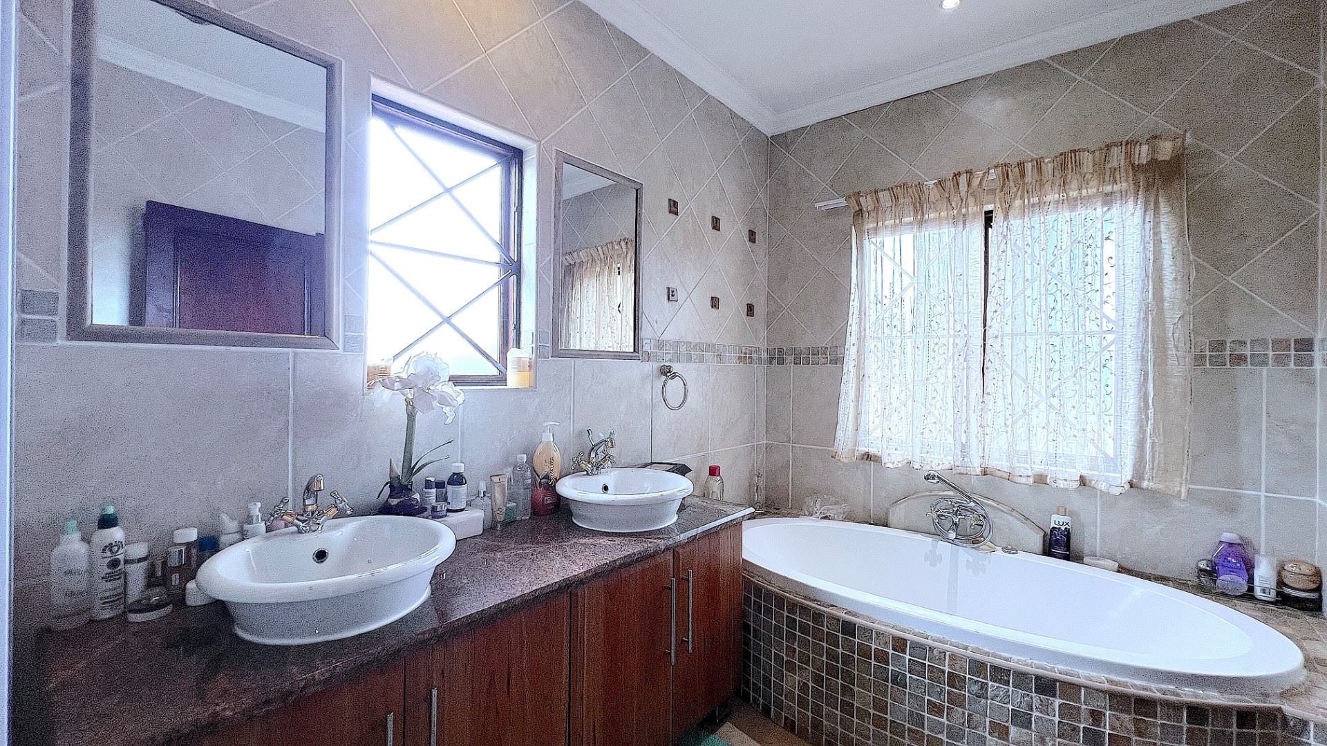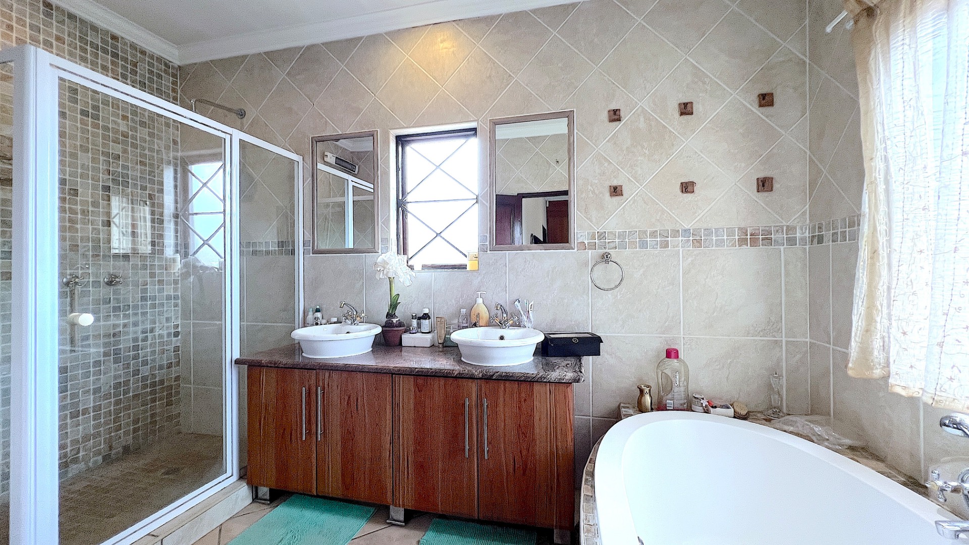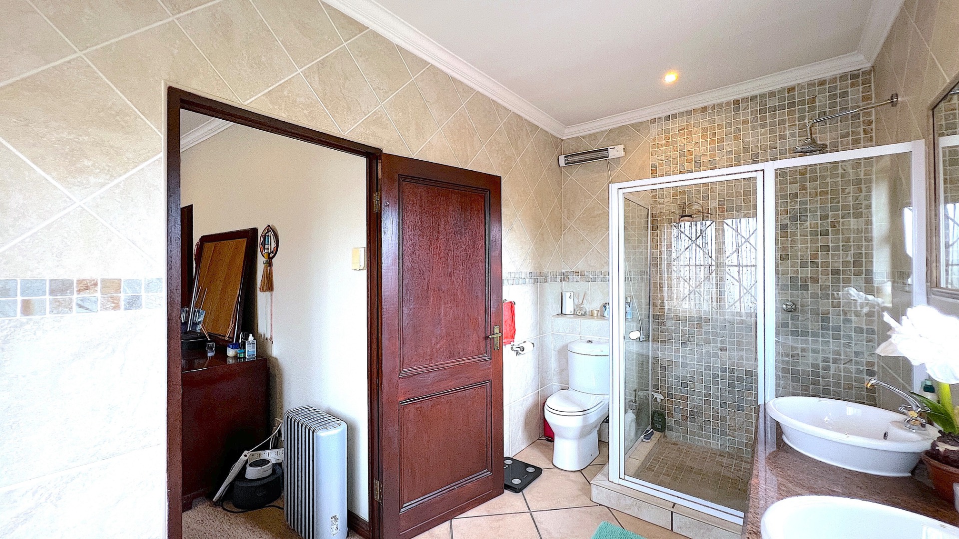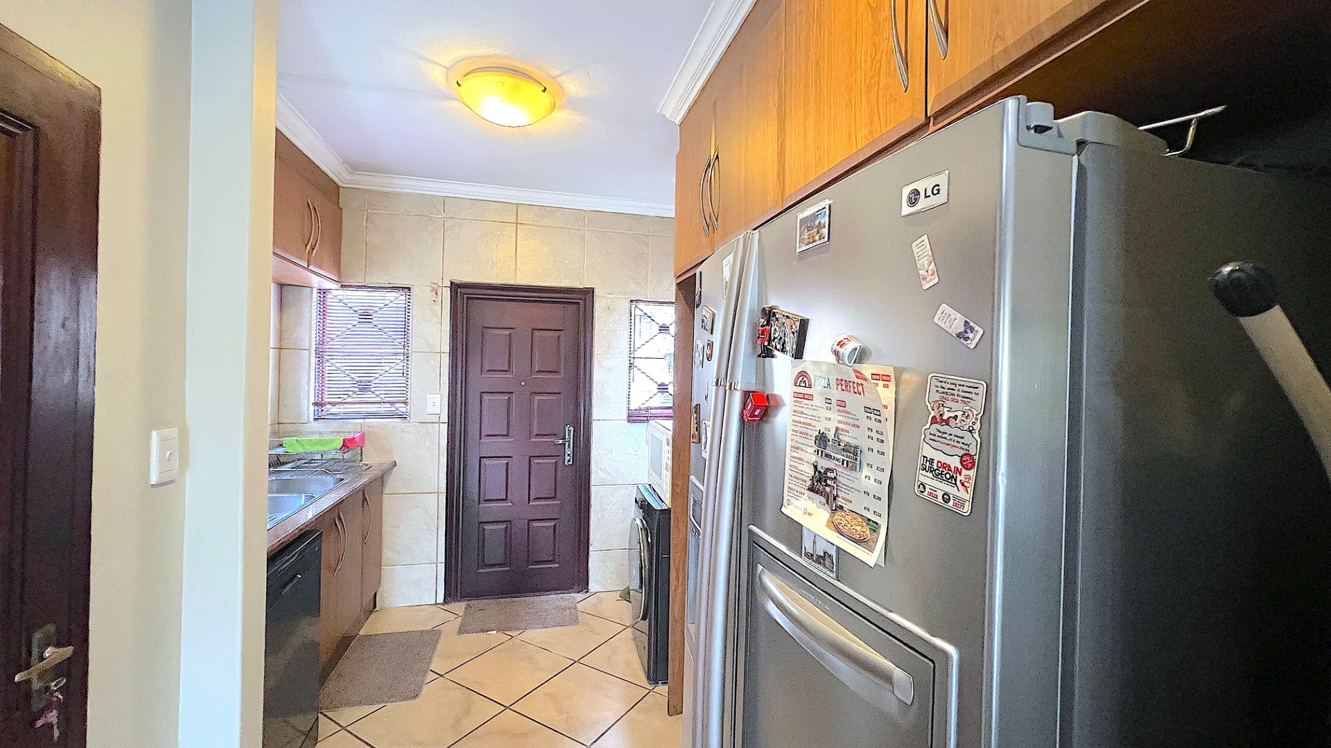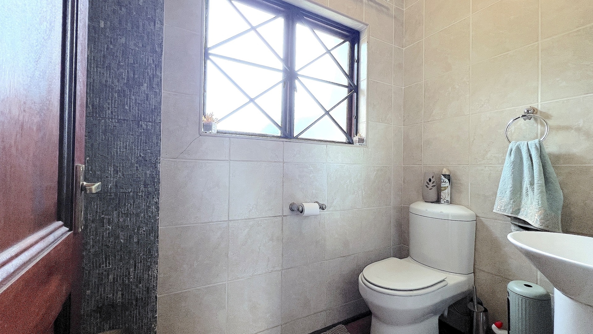 Outdoor living is catered for with a private patio and a well-kept garden, providing a tranquil space for enjoyment. The property includes a double garage and five additional parking spaces, offering generous parking solutions. As part of a secure estate and gated community in a cul-de-sac, residents benefit from 24-hour security, security posts, access gates, and burglar bars, ensuring peace of mind. Fibre connectivity is also available.