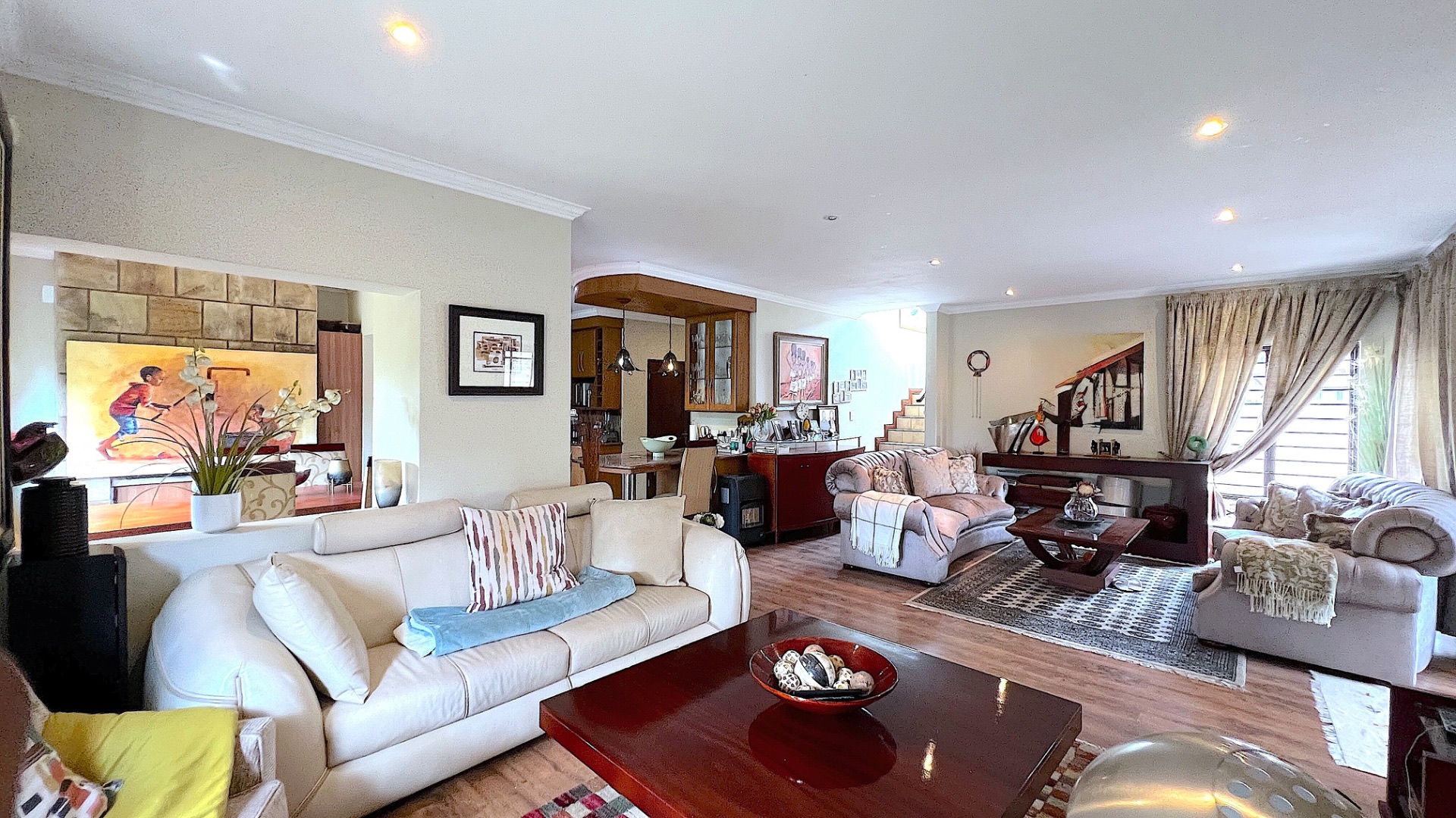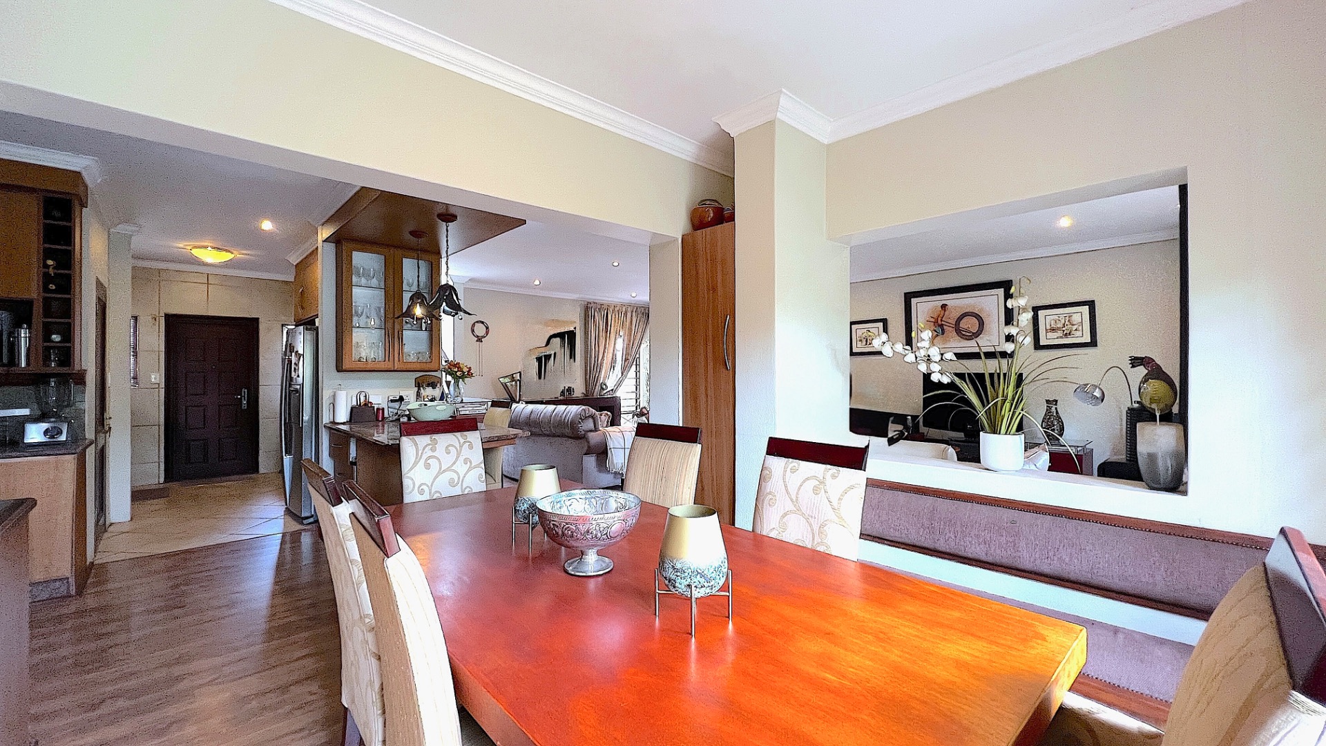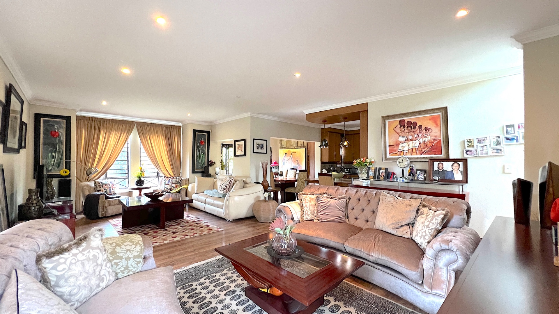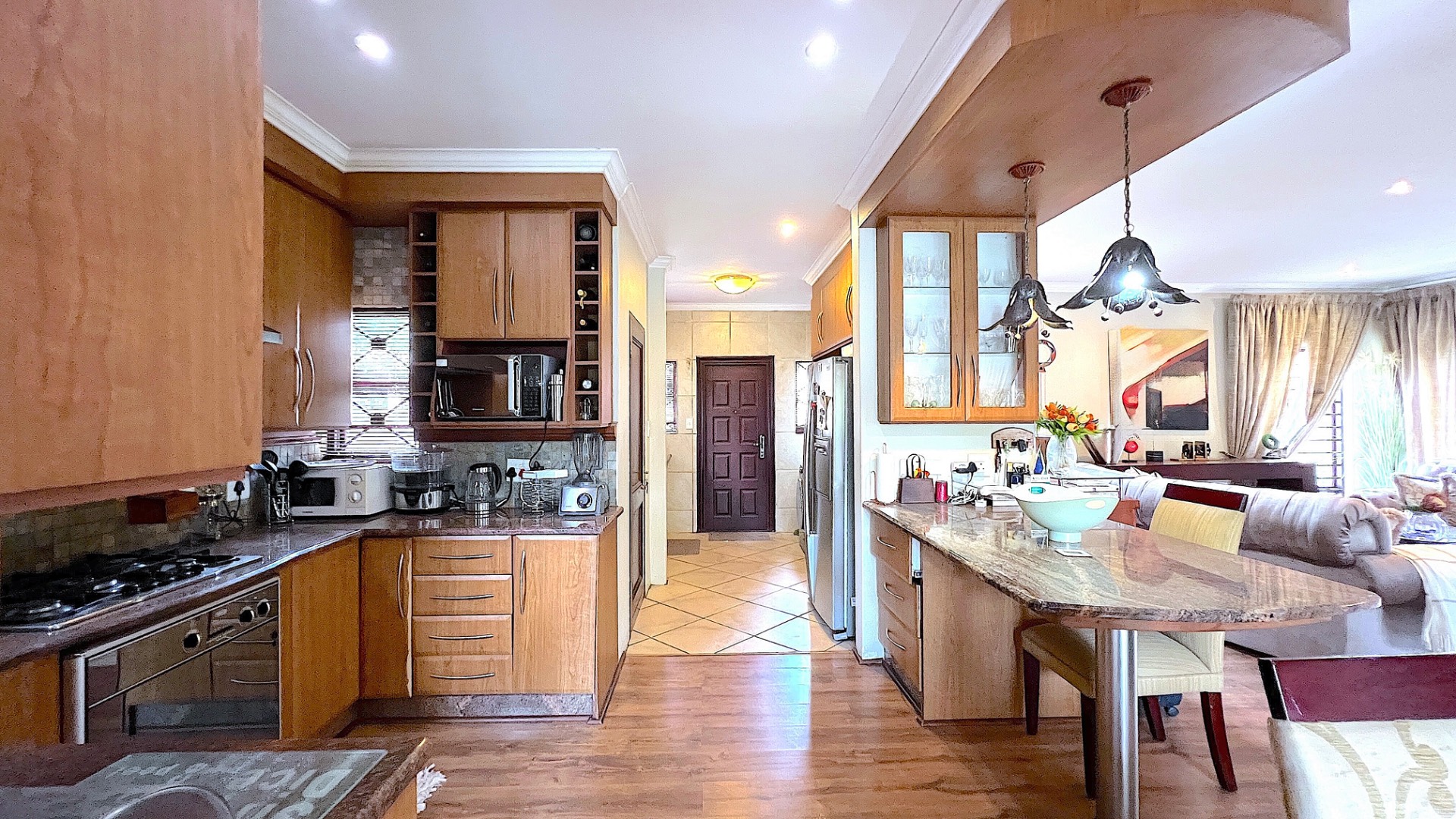 This modern multi-story home in Equestria presents a welcoming facade with its well-maintained exterior, attractive landscaping, and paved driveway leading to a double garage. Situated within a secure estate, this property offers a blend of comfort and convenience, ideal for family living in Pretoria.