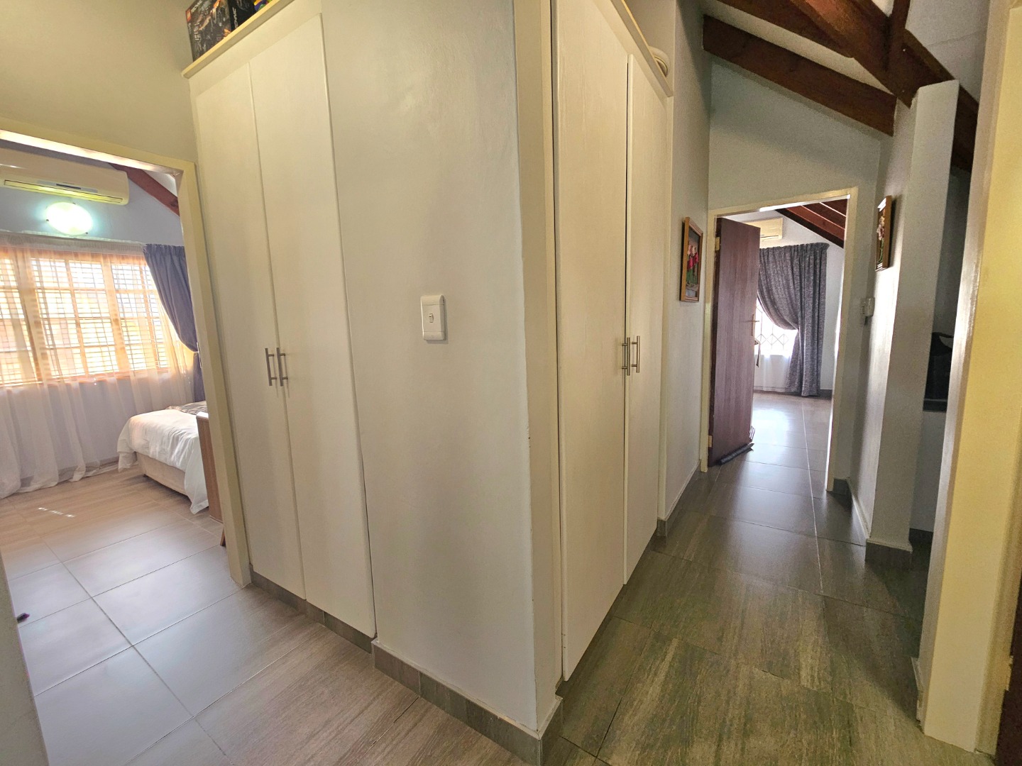 Practical amenities include efficient air conditioning, a double garage, and two additional dedicated parking spaces. Situated within a meticulously managed secure estate, residents benefit from unparalleled peace of mind, supported by robust 24-hour security. High-speed fibre internet connectivity is readily available, catering to contemporary digital lifestyle requirements. This residence combines elegance, superior functionality, and enhanced security within a prime residential locale.