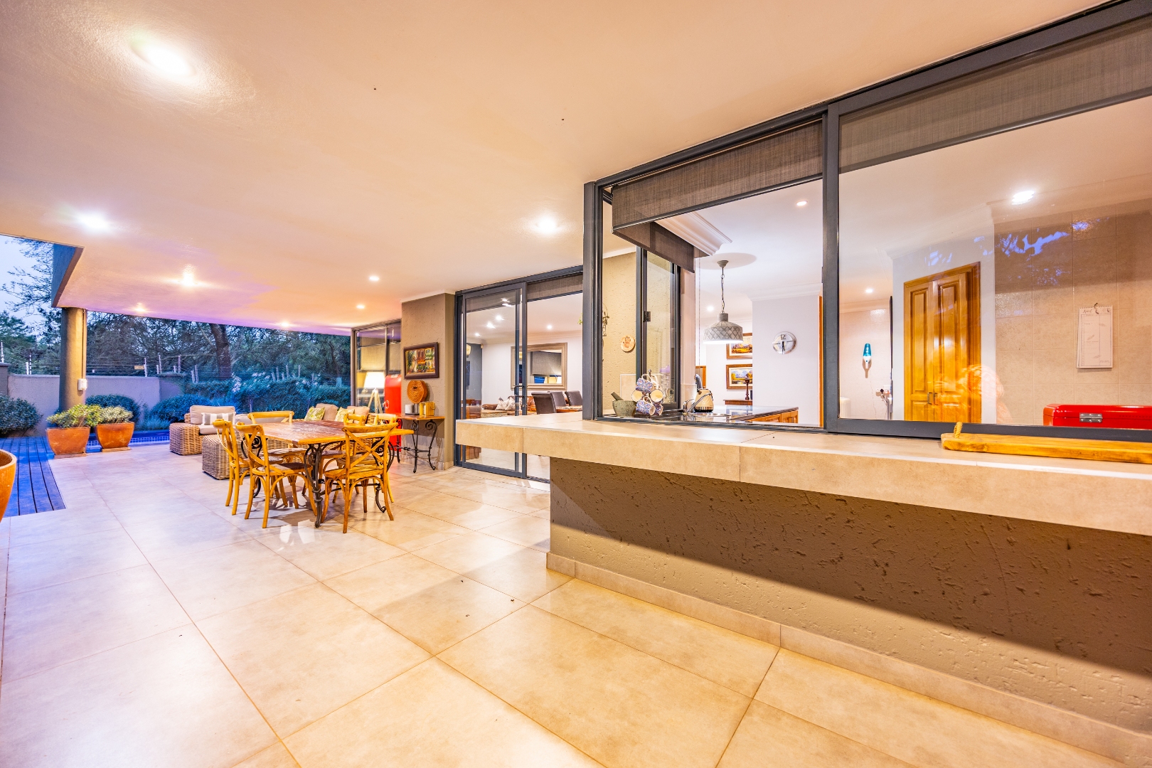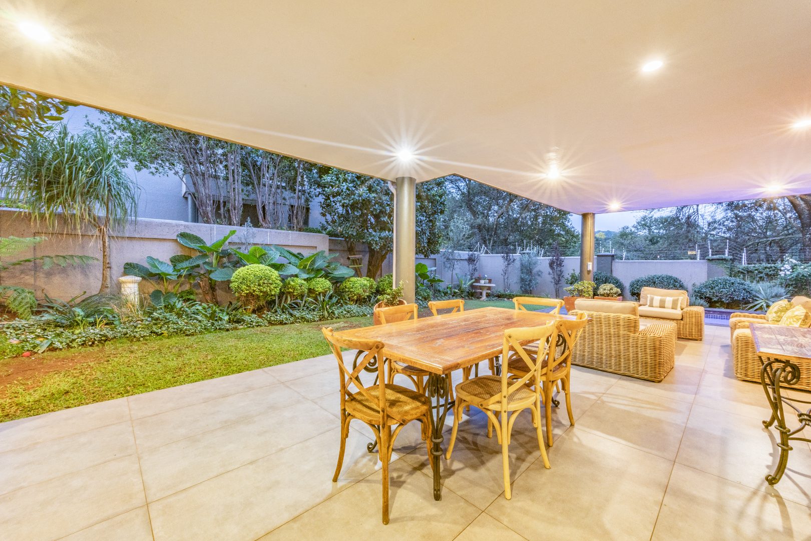 Massive Covered Patio with gas braai and access to the beautifully landscaped garden