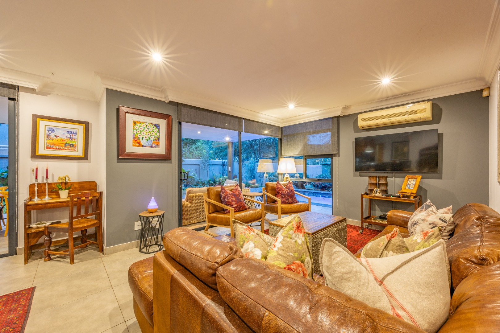 Air-conditioning in the main bedroom and downstairs lounge