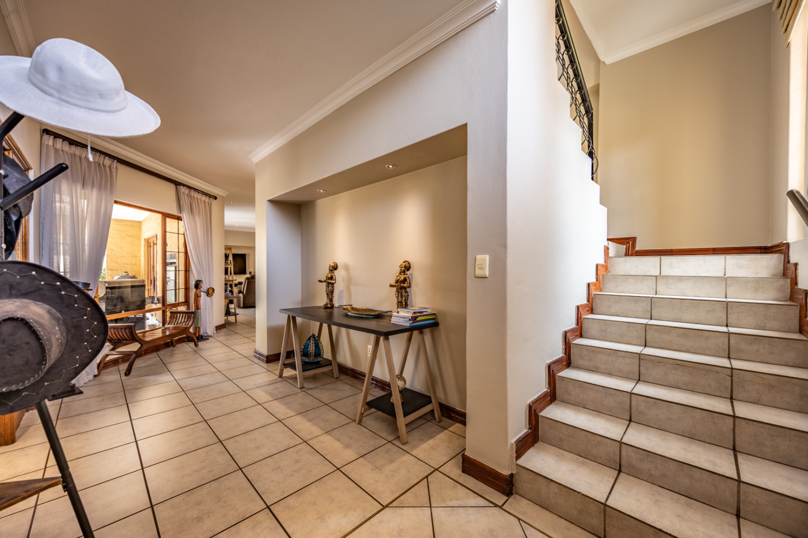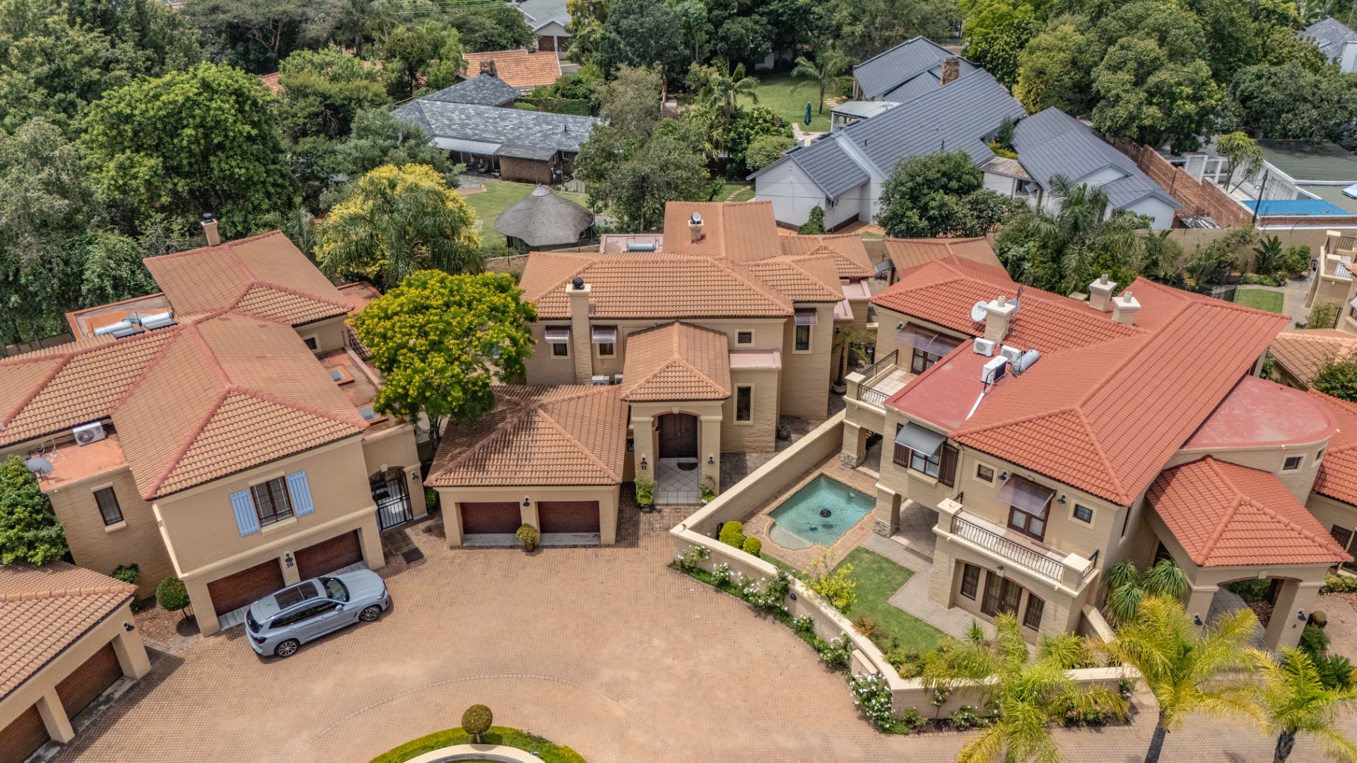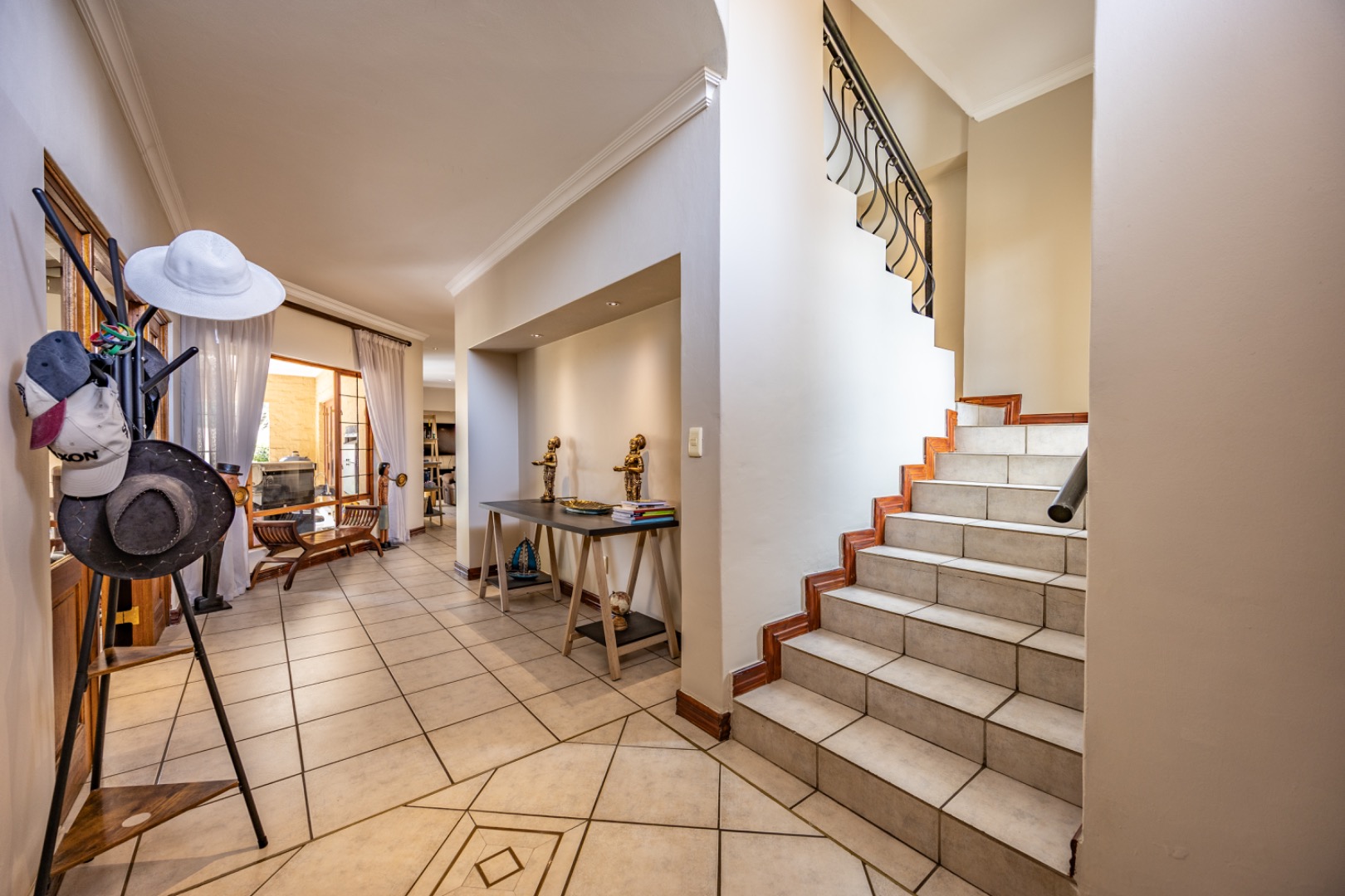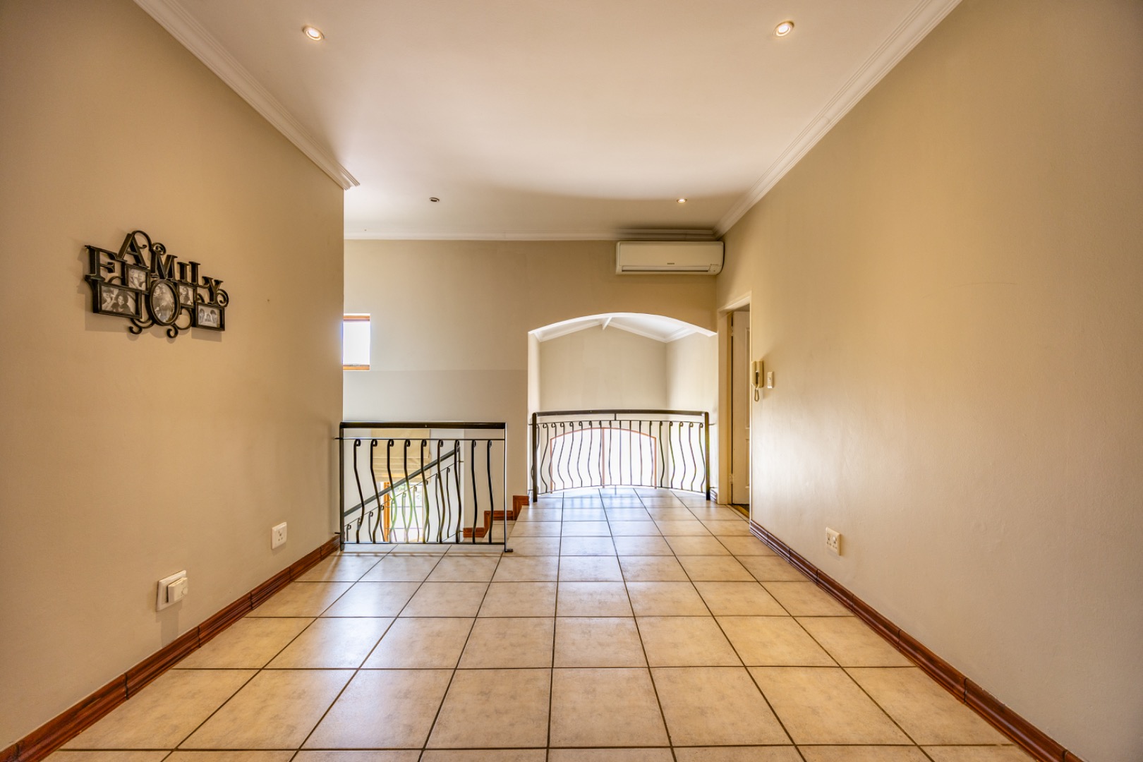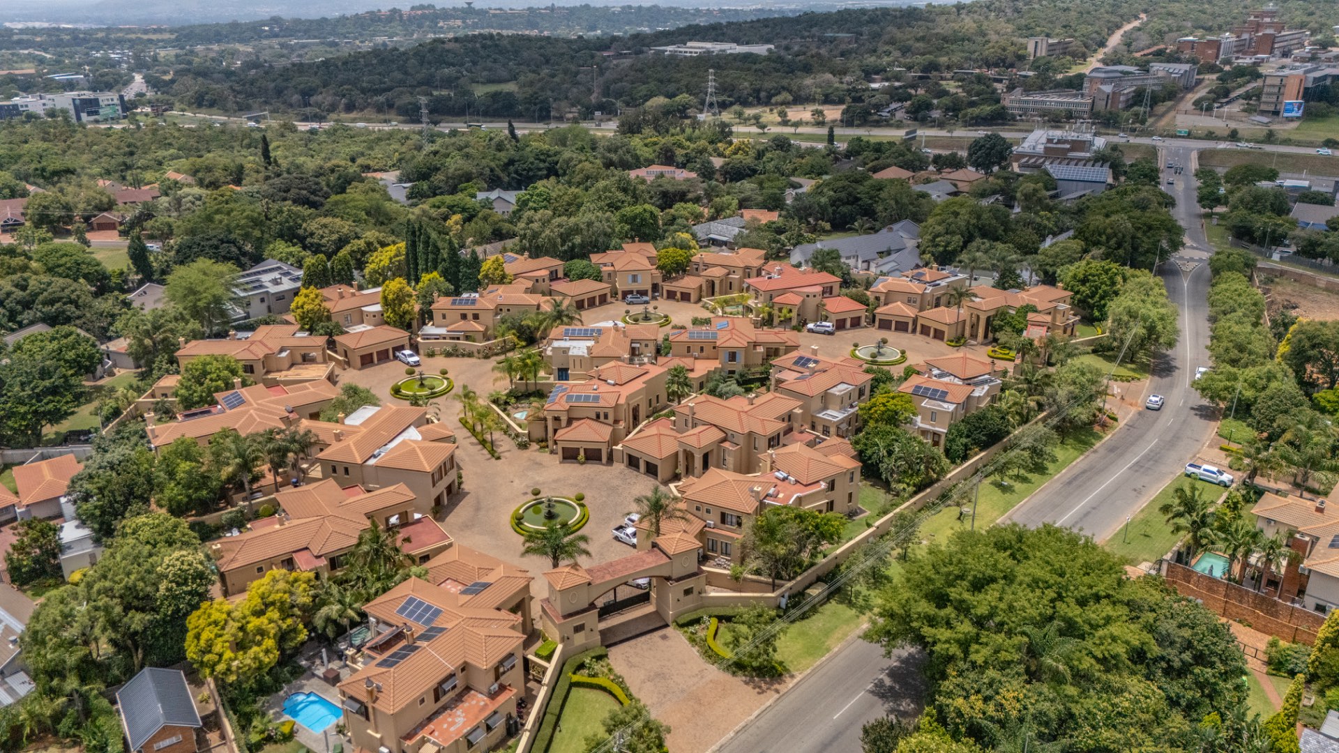 Discover this exquisite Mediterranean-style residence, a true gem nestled within a secure estate in the sought-after Lynnwood suburb of Pretoria. Boasting a generous 575 sqm under roof on a 632 sqm erf, this family home offers a blend of spacious living and elegant design, perfect for discerning buyers seeking a premium lifestyle. The property immediately impresses with its warm stucco exterior, terracotta roof tiles, and a welcoming paved driveway leading to a charming courtyard with a fountain, enhancing its kerb appeal. Step inside to an inviting entrance hall featuring elegant double wooden doors, durable tiled flooring with a decorative pattern, and an elegant staircase with a wrought iron railing. The interior layout includes three spacious lounges, a dedicated dining room, and a family TV room, providing ample space for relaxation and entertaining. Modern comforts such as air conditioning, a cozy fireplace, and a well-appointed pantry are integrated throughout, complemented by special doors and an open-plan design. This residence offers four comfortable bedrooms and three and a half bathrooms, including a luxurious en-suite bathroom, ensuring privacy and convenience for all residents. The thoughtful design extends to practical amenities, including staff quarters with outside toilets, adding to the home's functionality. Outdoor living is a highlight, with a private swimming pool set amidst a well-maintained garden and lush landscaping, complete with an irrigation system. Multiple balconies and a spacious patio provide ideal spots for alfresco dining or enjoying the South African sunshine. A built-in braai is perfect for entertaining, while two garages and additional parking ensure ample space for vehicles. Pets are allowed, making this a perfect family haven. Security is paramount within this gated community and security estate, featuring 24-hour security, a security post, and an alarm system, offering peace of mind. Lynnwood is a prestigious Pretoria suburb known for its leafy streets, excellent schools, and convenient access to amenities, making it an ideal location for family living. Key Features: * 4 Bedrooms, 3.5 Bathrooms (1 En-suite) * 3 Lounges, Dining Room, Family TV Room * Private Swimming Pool & Landscaped Garden * Multiple Balconies & Patio with Built-in Braai * 2 Garages & Additional Parking * Air Conditioning & Fireplace * Staff Quarters * 24-Hour Security Estate * Pet-Friendly