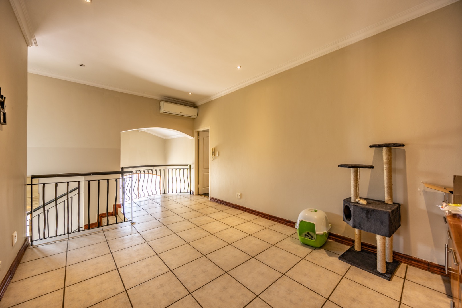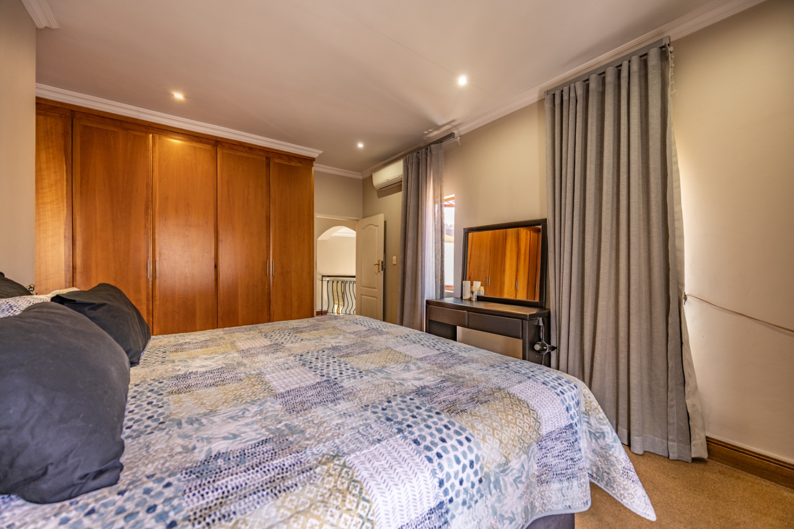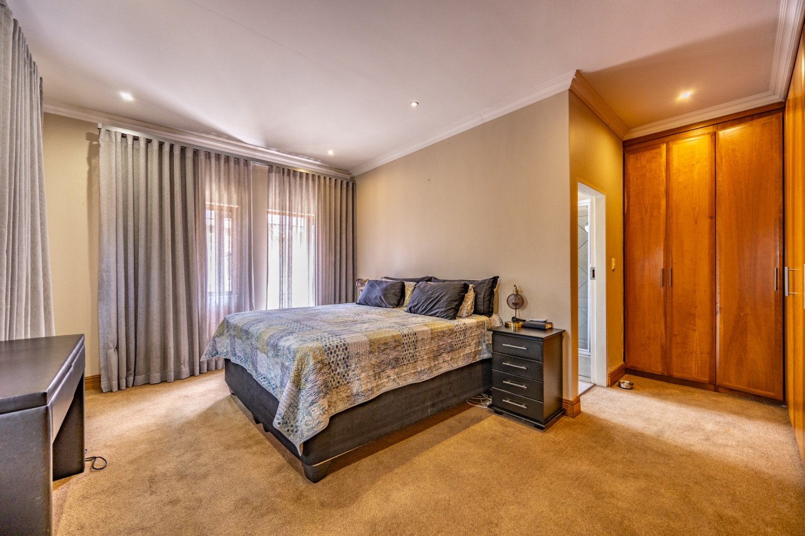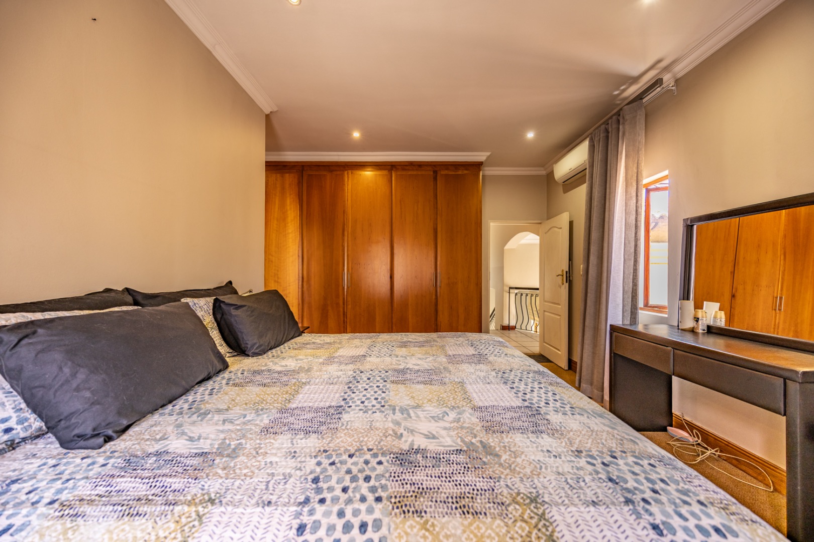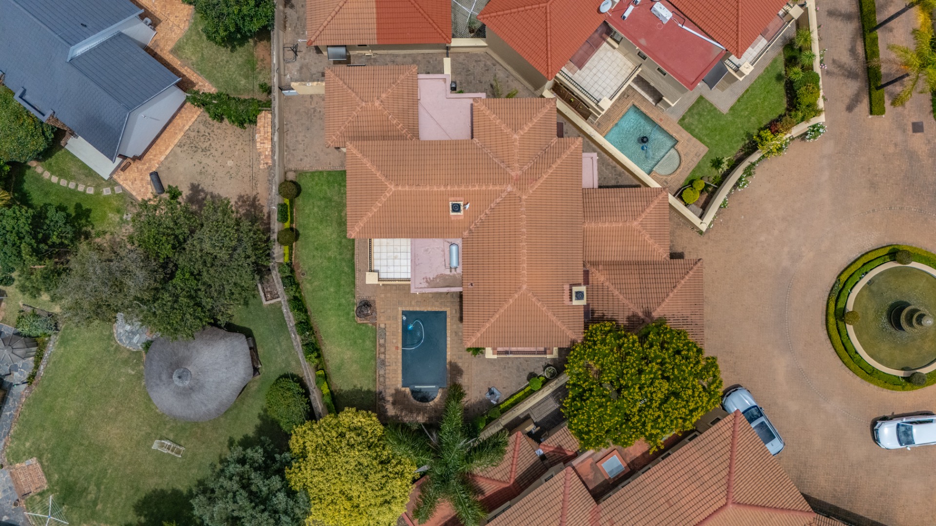 Discover this exquisite Mediterranean-style residence, a true gem nestled within a secure estate in the sought-after Lynnwood suburb of Pretoria. Boasting a generous 575 sqm under roof on a 632 sqm erf, this family home offers a blend of spacious living and elegant design, perfect for discerning buyers seeking a premium lifestyle. The property immediately impresses with its warm stucco exterior, terracotta roof tiles, and a welcoming paved driveway leading to a charming courtyard with a fountain, enhancing its kerb appeal. Step inside to an inviting entrance hall featuring elegant double wooden doors, durable tiled flooring with a decorative pattern, and an elegant staircase with a wrought iron railing. The interior layout includes three spacious lounges, a dedicated dining room, and a family TV room, providing ample space for relaxation and entertaining. Modern comforts such as air conditioning, a cozy fireplace, and a well-appointed pantry are integrated throughout, complemented by special doors and an open-plan design. This residence offers four comfortable bedrooms and three and a half bathrooms, including a luxurious en-suite bathroom, ensuring privacy and convenience for all residents. The thoughtful design extends to practical amenities, including staff quarters with outside toilets, adding to the home's functionality. Outdoor living is a highlight, with a private swimming pool set amidst a well-maintained garden and lush landscaping, complete with an irrigation system. Multiple balconies and a spacious patio provide ideal spots for alfresco dining or enjoying the South African sunshine. A built-in braai is perfect for entertaining, while two garages and additional parking ensure ample space for vehicles. Pets are allowed, making this a perfect family haven. Security is paramount within this gated community and security estate, featuring 24-hour security, a security post, and an alarm system, offering peace of mind. Lynnwood is a prestigious Pretoria suburb known for its leafy streets, excellent schools, and convenient access to amenities, making it an ideal location for family living. Key Features: * 4 Bedrooms, 3.5 Bathrooms (1 En-suite) * 3 Lounges, Dining Room, Family TV Room * Private Swimming Pool & Landscaped Garden * Multiple Balconies & Patio with Built-in Braai * 2 Garages & Additional Parking * Air Conditioning & Fireplace * Staff Quarters * 24-Hour Security Estate * Pet-Friendly
