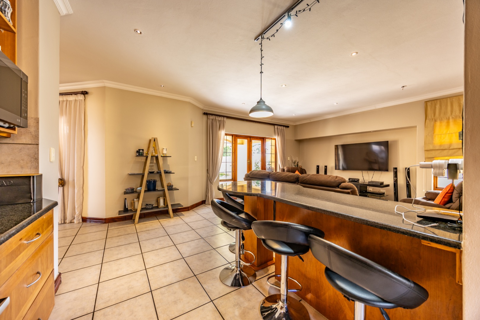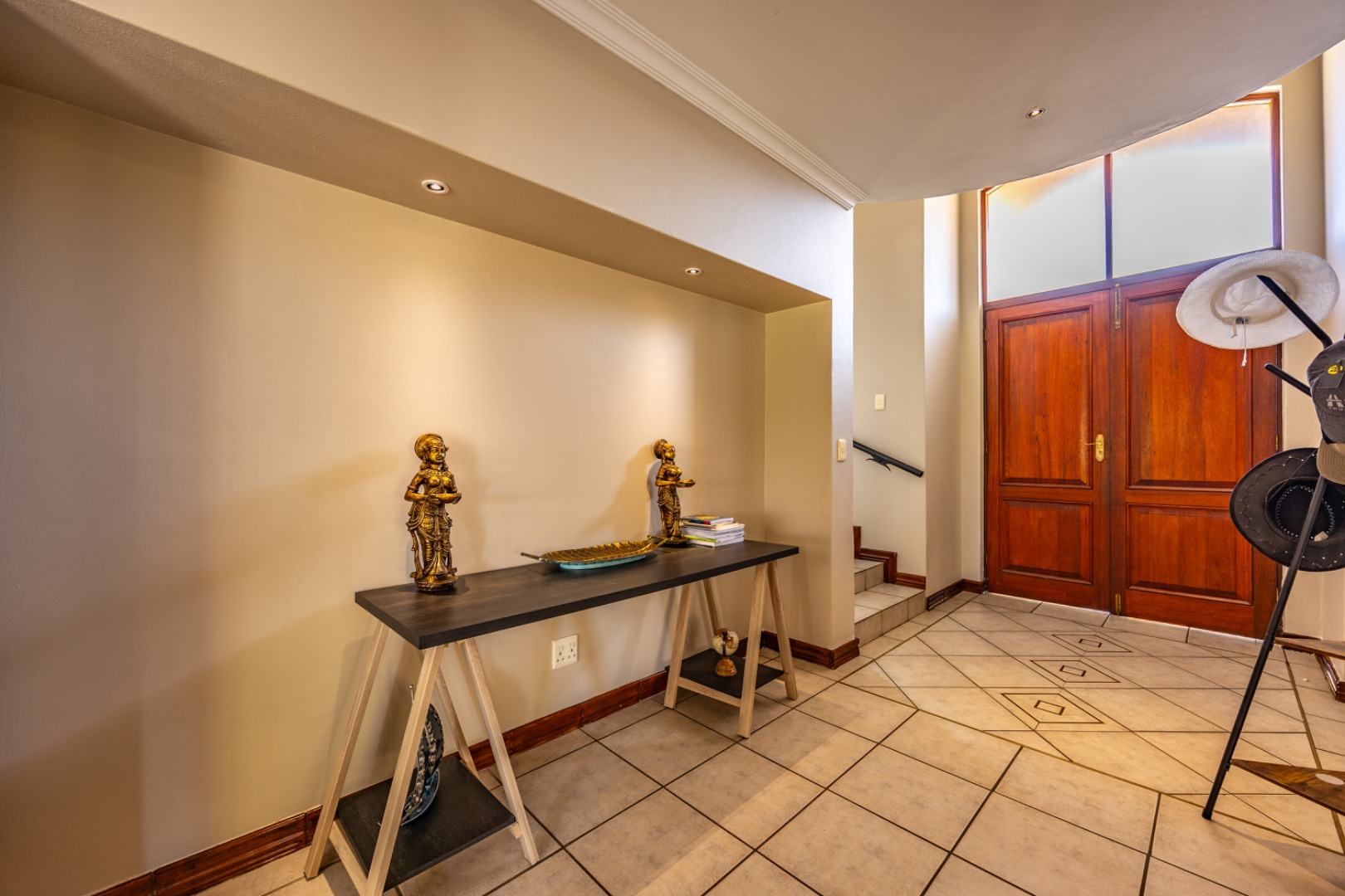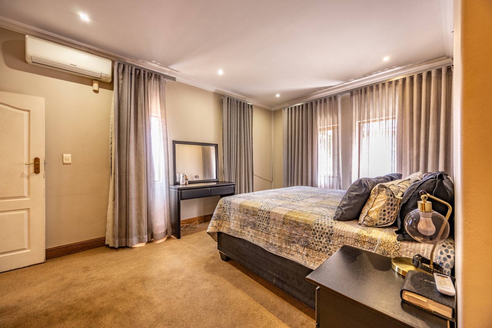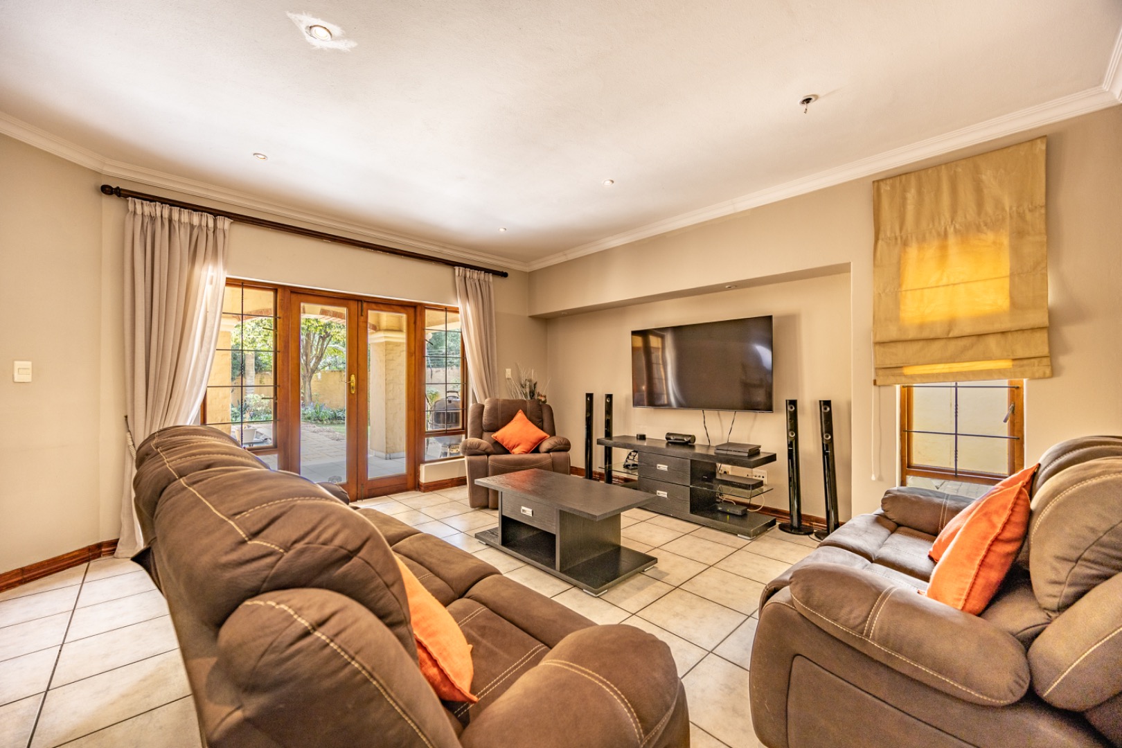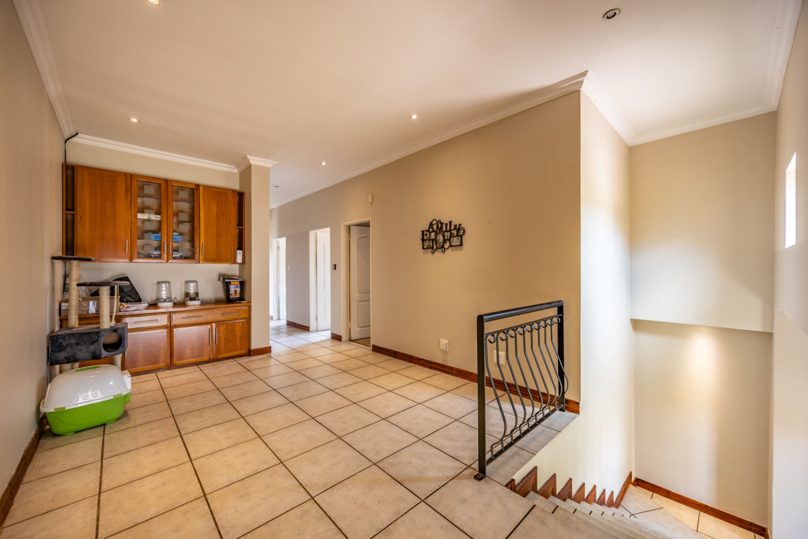Discover this exquisite Mediterranean-style residence, a true gem nestled within a secure estate in the sought-after Lynnwood suburb of Pretoria. Boasting a generous 575 sqm under roof on a 632 sqm erf, this family home offers a blend of spacious living and elegant design, perfect for discerning buyers seeking a premium lifestyle. The property immediately impresses with its warm stucco exterior, terracotta roof tiles, and a welcoming paved driveway leading to a charming courtyard with a fountain, enhancing its kerb appeal. Step inside to an inviting entrance hall featuring elegant double wooden doors, durable tiled flooring with a decorative pattern, and an elegant staircase with a wrought iron railing. The interior layout includes three spacious lounges, a dedicated dining room, and a family TV room, providing ample space for relaxation and entertaining. Modern comforts such as air conditioning, a cozy fireplace, and a well-appointed pantry are integrated throughout, complemented by special doors and an open-plan design. This residence offers four comfortable bedrooms and three and a half bathrooms, including a luxurious en-suite bathroom, ensuring privacy and convenience for all residents. The thoughtful design extends to practical amenities, including staff quarters with outside toilets, adding to the home's functionality. Outdoor living is a highlight, with a private swimming pool set amidst a well-maintained garden and lush landscaping, complete with an irrigation system. Multiple balconies and a spacious patio provide ideal spots for alfresco dining or enjoying the South African sunshine. A built-in braai is perfect for entertaining, while two garages and additional parking ensure ample space for vehicles. Pets are allowed, making this a perfect family haven. Security is paramount within this gated community and security estate, featuring 24-hour security, a security post, and an alarm system, offering peace of mind. Lynnwood is a prestigious Pretoria suburb known for its leafy streets, excellent schools, and convenient access to amenities, making it an ideal location for family living. Key Features: * 4 Bedrooms, 3.5 Bathrooms (1 En-suite) * 3 Lounges, Dining Room, Family TV Room * Private Swimming Pool & Landscaped Garden * Multiple Balconies & Patio with Built-in Braai * 2 Garages & Additional Parking * Air Conditioning & Fireplace * Staff Quarters * 24-Hour Security Estate * Pet-Friendly