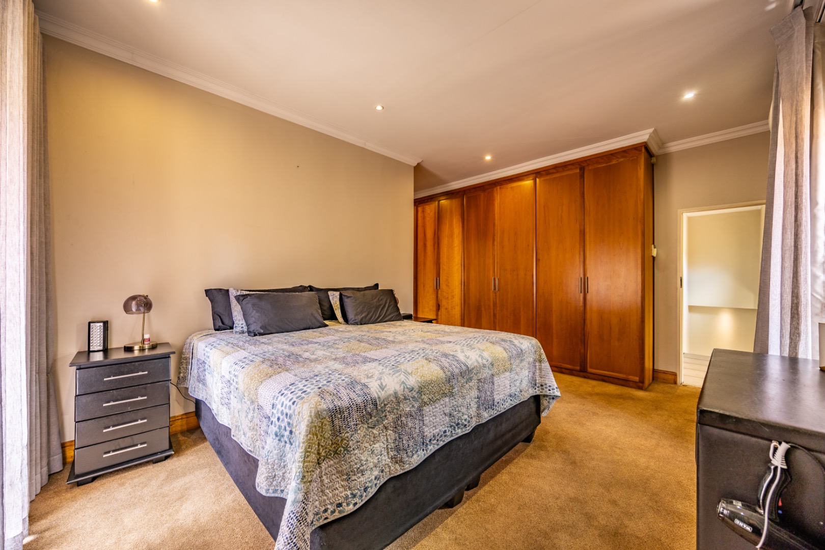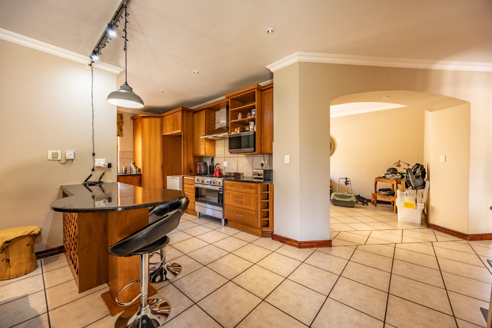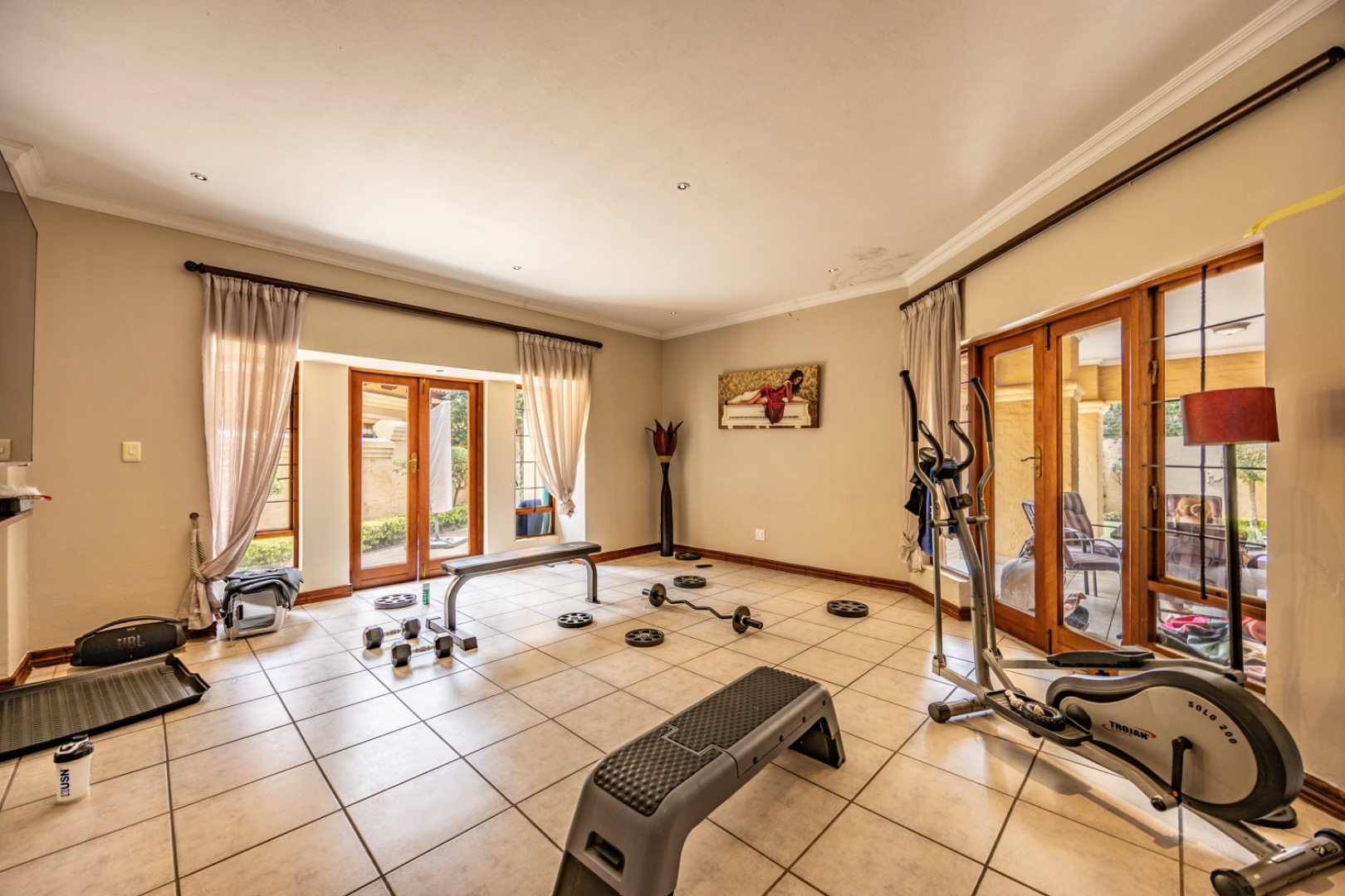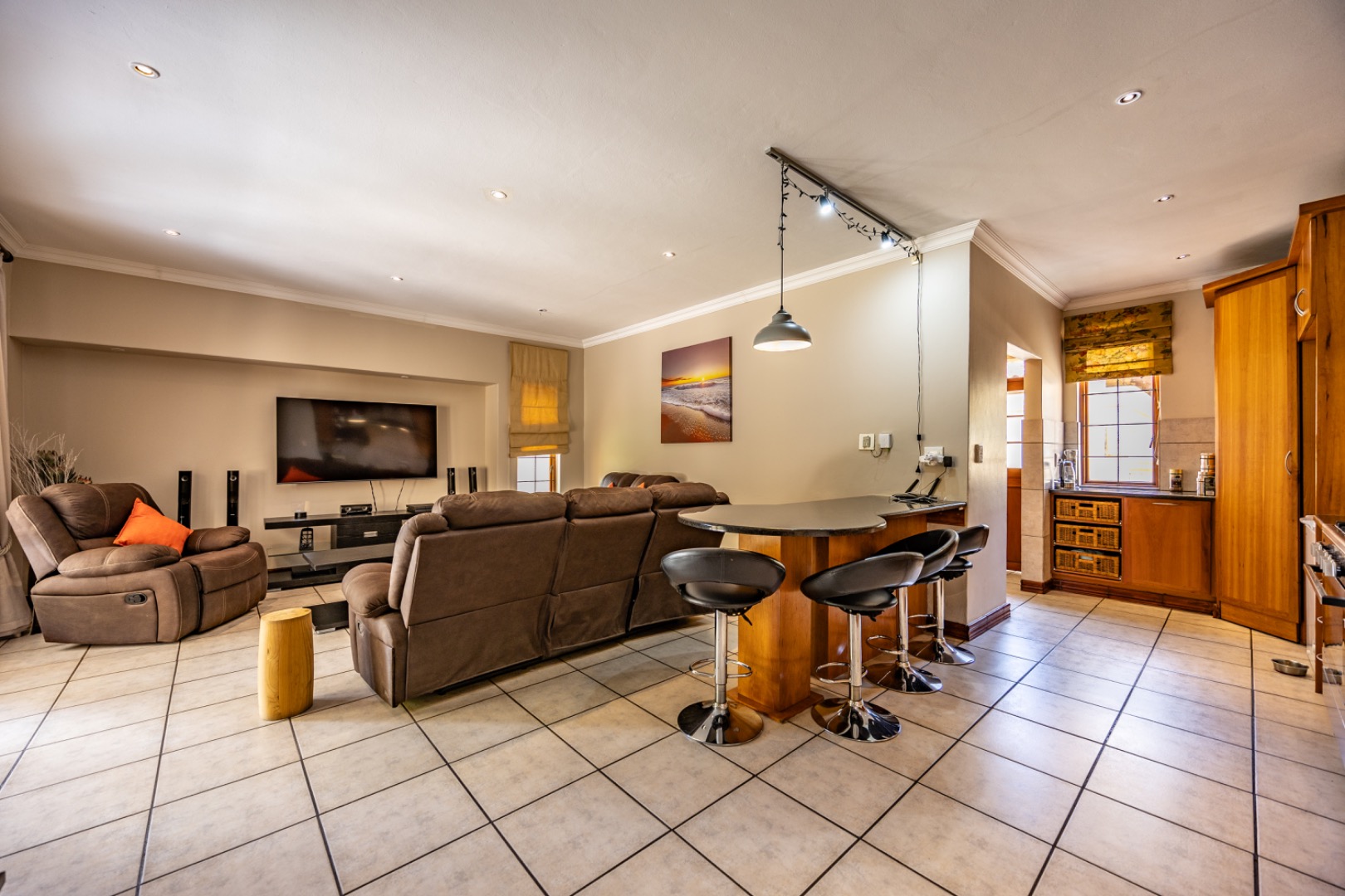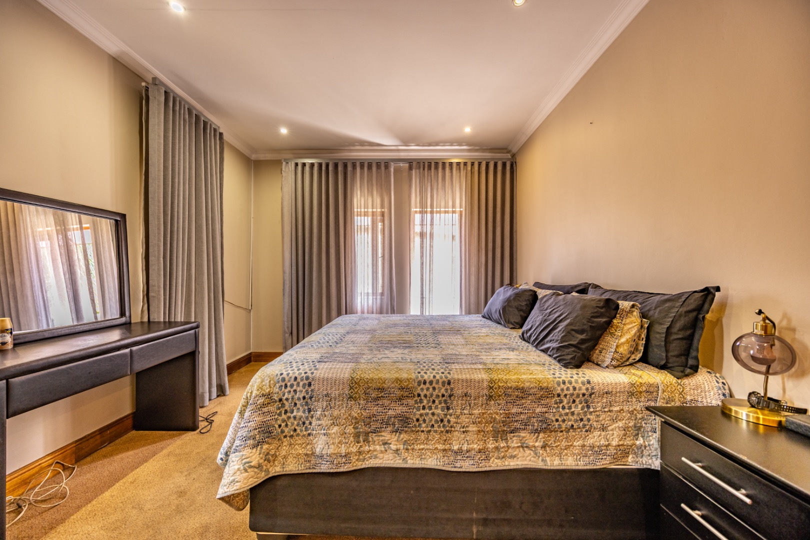 Discover this exquisite Mediterranean-style residence, a true gem nestled within a secure estate in the sought-after Lynnwood suburb of Pretoria. Boasting a generous 575 sqm under roof on a 632 sqm erf, this family home offers a blend of spacious living and elegant design, perfect for discerning buyers seeking a premium lifestyle. The property immediately impresses with its warm stucco exterior, terracotta roof tiles, and a welcoming paved driveway leading to a charming courtyard with a fountain, enhancing its kerb appeal. Step inside to an inviting entrance hall featuring elegant double wooden doors, durable tiled flooring with a decorative pattern, and an elegant staircase with a wrought iron railing. The interior layout includes three spacious lounges, a dedicated dining room, and a family TV room, providing ample space for relaxation and entertaining. Modern comforts such as air conditioning, a cozy fireplace, and a well-appointed pantry are integrated throughout, complemented by special doors and an open-plan design. This residence offers four comfortable bedrooms and three and a half bathrooms, including a luxurious en-suite bathroom, ensuring privacy and convenience for all residents. The thoughtful design extends to practical amenities, including staff quarters with outside toilets, adding to the home's functionality. Outdoor living is a highlight, with a private swimming pool set amidst a well-maintained garden and lush landscaping, complete with an irrigation system. Multiple balconies and a spacious patio provide ideal spots for alfresco dining or enjoying the South African sunshine. A built-in braai is perfect for entertaining, while two garages and additional parking ensure ample space for vehicles. Pets are allowed, making this a perfect family haven. Security is paramount within this gated community and security estate, featuring 24-hour security, a security post, and an alarm system, offering peace of mind. Lynnwood is a prestigious Pretoria suburb known for its leafy streets, excellent schools, and convenient access to amenities, making it an ideal location for family living. Key Features: * 4 Bedrooms, 3.5 Bathrooms (1 En-suite) * 3 Lounges, Dining Room, Family TV Room * Private Swimming Pool & Landscaped Garden * Multiple Balconies & Patio with Built-in Braai * 2 Garages & Additional Parking * Air Conditioning & Fireplace * Staff Quarters * 24-Hour Security Estate * Pet-Friendly