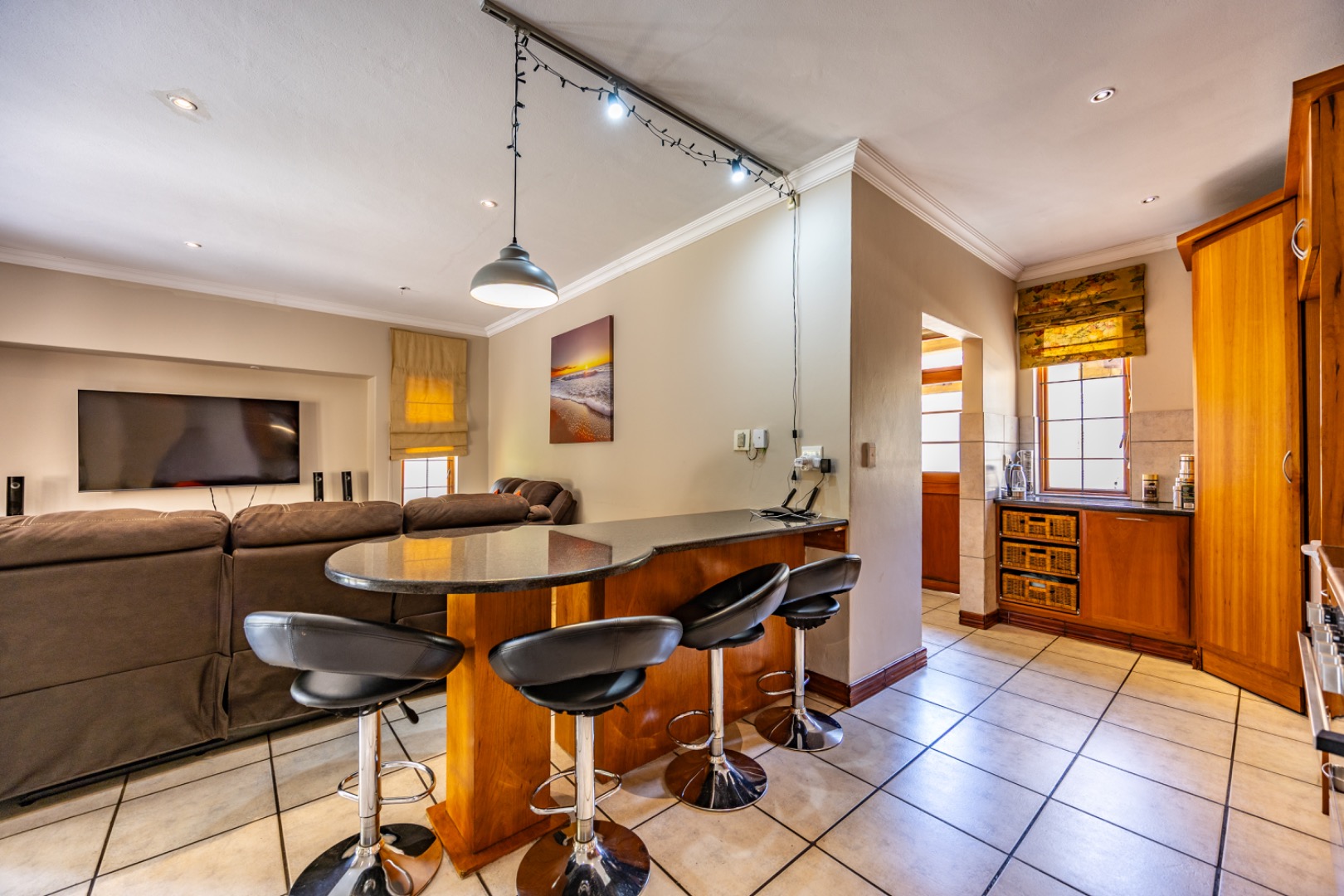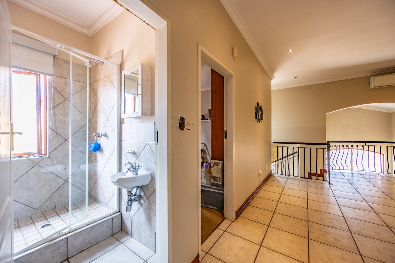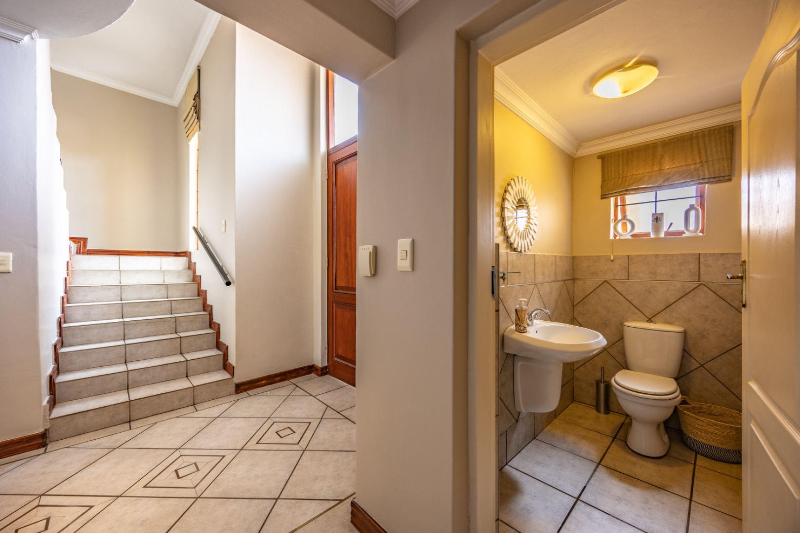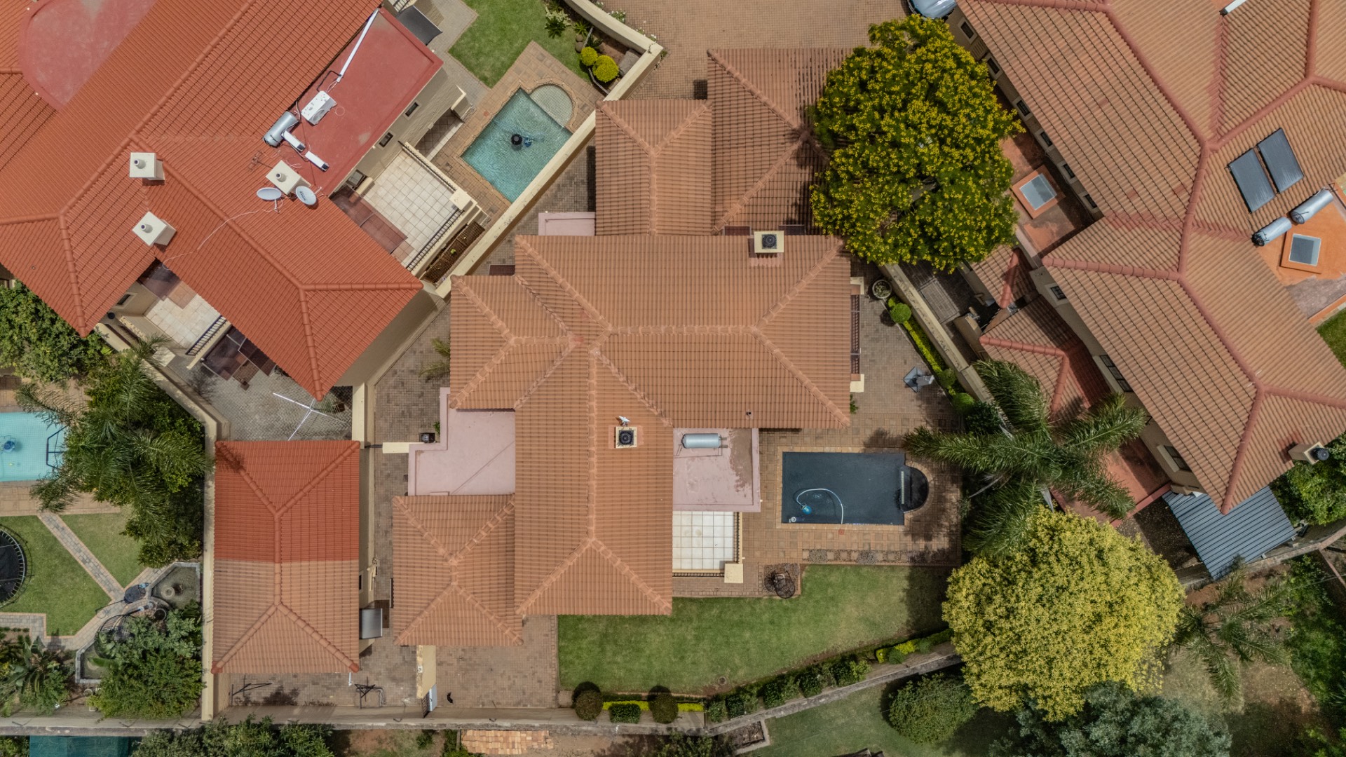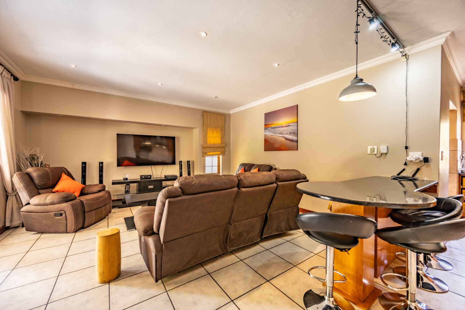 Discover this exquisite Mediterranean-style residence, a true gem nestled within a secure estate in the sought-after Lynnwood suburb of Pretoria. Boasting a generous 575 sqm under roof on a 632 sqm erf, this family home offers a blend of spacious living and elegant design, perfect for discerning buyers seeking a premium lifestyle. The property immediately impresses with its warm stucco exterior, terracotta roof tiles, and a welcoming paved driveway leading to a charming courtyard with a fountain, enhancing its kerb appeal. Step inside to an inviting entrance hall featuring elegant double wooden doors, durable tiled flooring with a decorative pattern, and an elegant staircase with a wrought iron railing. The interior layout includes three spacious lounges, a dedicated dining room, and a family TV room, providing ample space for relaxation and entertaining. Modern comforts such as air conditioning, a cozy fireplace, and a well-appointed pantry are integrated throughout, complemented by special doors and an open-plan design. This residence offers four comfortable bedrooms and three and a half bathrooms, including a luxurious en-suite bathroom, ensuring privacy and convenience for all residents. The thoughtful design extends to practical amenities, including staff quarters with outside toilets, adding to the home's functionality. Outdoor living is a highlight, with a private swimming pool set amidst a well-maintained garden and lush landscaping, complete with an irrigation system. Multiple balconies and a spacious patio provide ideal spots for alfresco dining or enjoying the South African sunshine. A built-in braai is perfect for entertaining, while two garages and additional parking ensure ample space for vehicles. Pets are allowed, making this a perfect family haven. Security is paramount within this gated community and security estate, featuring 24-hour security, a security post, and an alarm system, offering peace of mind. Lynnwood is a prestigious Pretoria suburb known for its leafy streets, excellent schools, and convenient access to amenities, making it an ideal location for family living. Key Features: * 4 Bedrooms, 3.5 Bathrooms (1 En-suite) * 3 Lounges, Dining Room, Family TV Room * Private Swimming Pool & Landscaped Garden * Multiple Balconies & Patio with Built-in Braai * 2 Garages & Additional Parking * Air Conditioning & Fireplace * Staff Quarters * 24-Hour Security Estate * Pet-Friendly