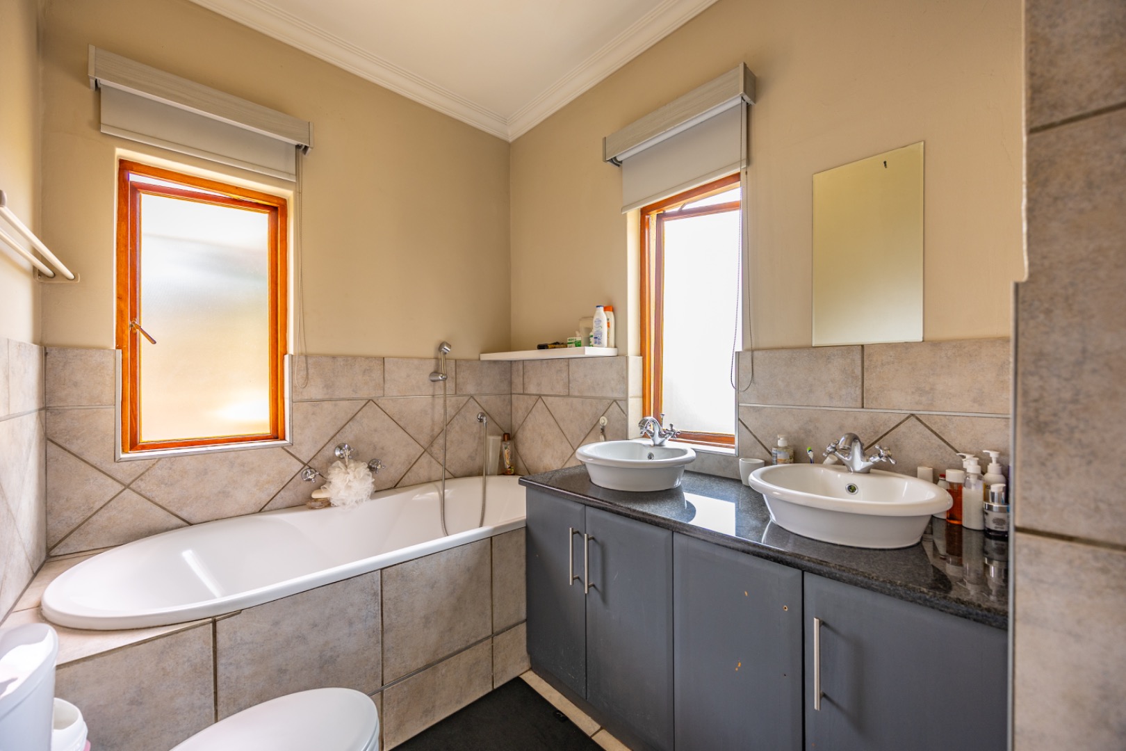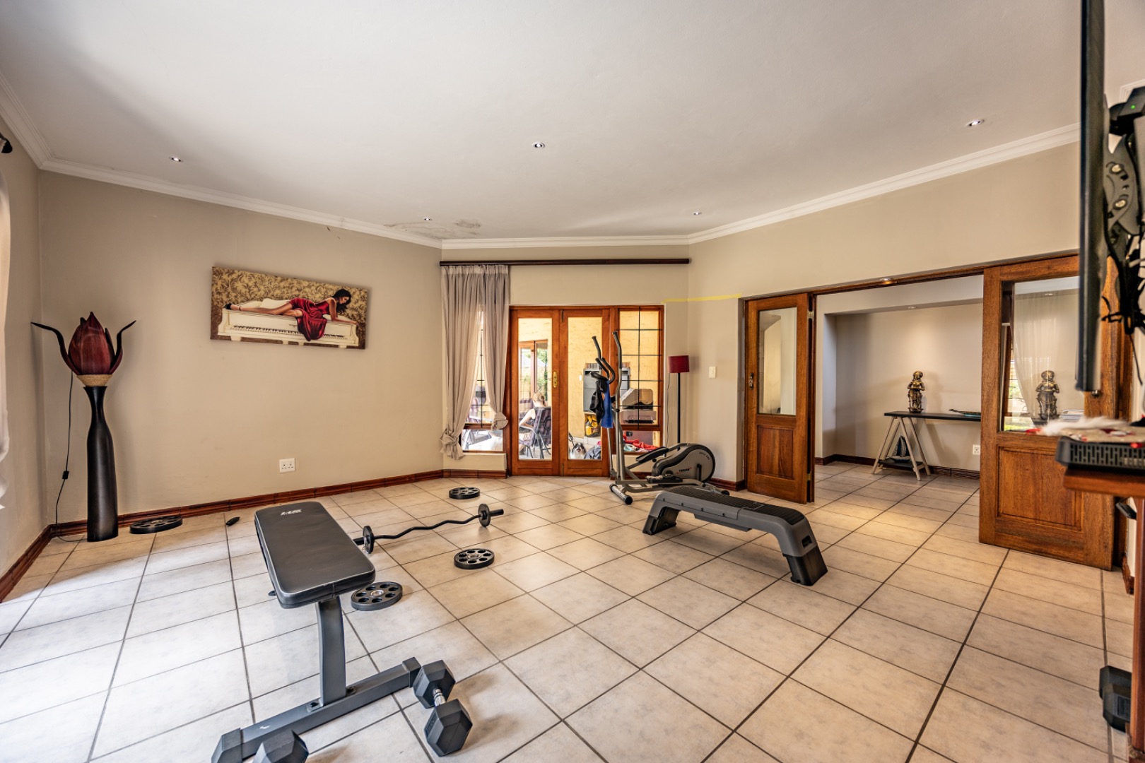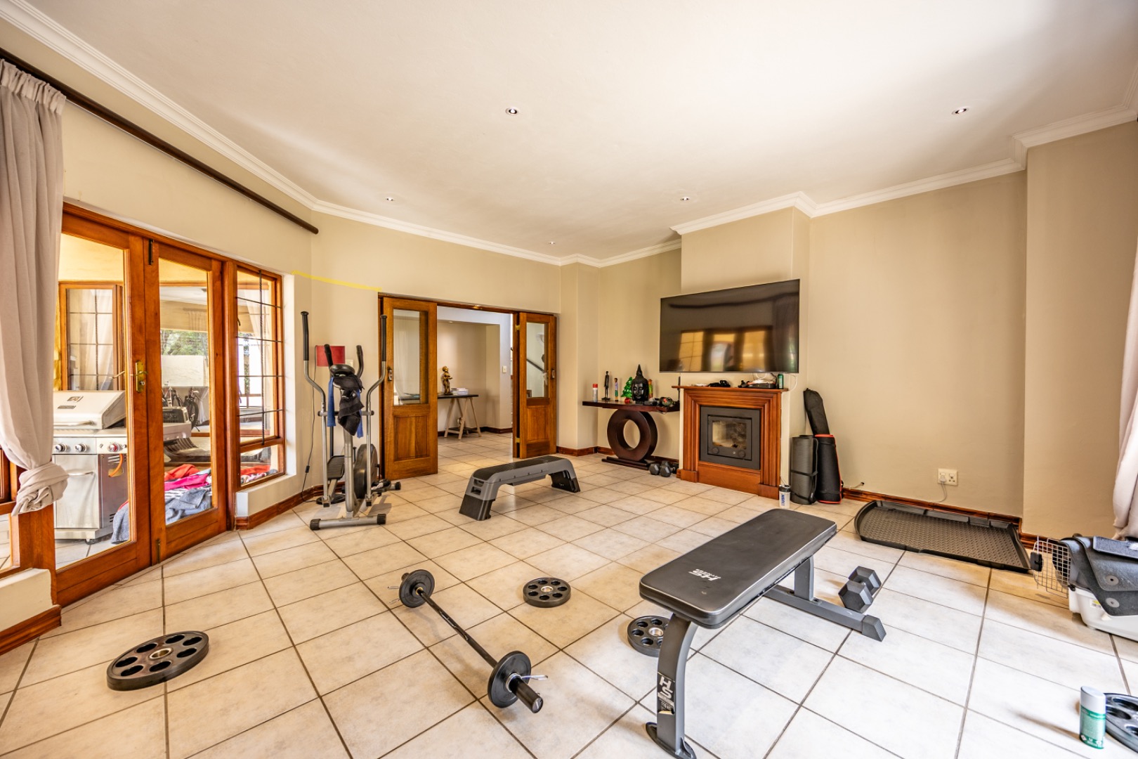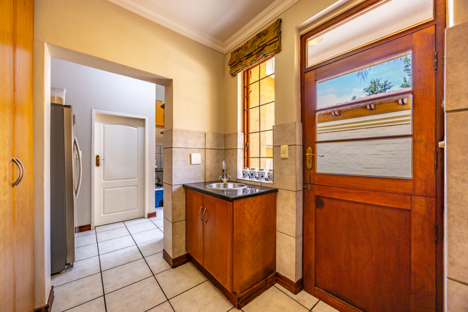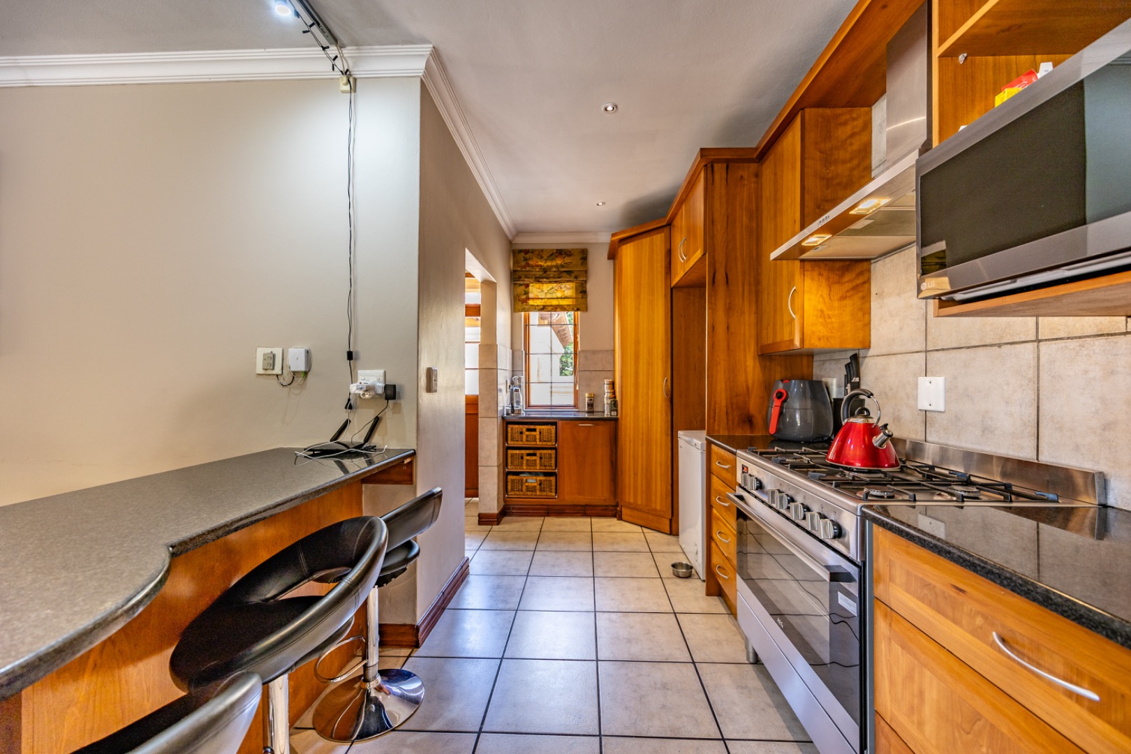 Discover this exquisite Mediterranean-style residence, a true gem nestled within a secure estate in the sought-after Lynnwood suburb of Pretoria. Boasting a generous 575 sqm under roof on a 632 sqm erf, this family home offers a blend of spacious living and elegant design, perfect for discerning buyers seeking a premium lifestyle. The property immediately impresses with its warm stucco exterior, terracotta roof tiles, and a welcoming paved driveway leading to a charming courtyard with a fountain, enhancing its kerb appeal. Step inside to an inviting entrance hall featuring elegant double wooden doors, durable tiled flooring with a decorative pattern, and an elegant staircase with a wrought iron railing. The interior layout includes three spacious lounges, a dedicated dining room, and a family TV room, providing ample space for relaxation and entertaining. Modern comforts such as air conditioning, a cozy fireplace, and a well-appointed pantry are integrated throughout, complemented by special doors and an open-plan design. This residence offers four comfortable bedrooms and three and a half bathrooms, including a luxurious en-suite bathroom, ensuring privacy and convenience for all residents. The thoughtful design extends to practical amenities, including staff quarters with outside toilets, adding to the home's functionality. Outdoor living is a highlight, with a private swimming pool set amidst a well-maintained garden and lush landscaping, complete with an irrigation system. Multiple balconies and a spacious patio provide ideal spots for alfresco dining or enjoying the South African sunshine. A built-in braai is perfect for entertaining, while two garages and additional parking ensure ample space for vehicles. Pets are allowed, making this a perfect family haven. Security is paramount within this gated community and security estate, featuring 24-hour security, a security post, and an alarm system, offering peace of mind. Lynnwood is a prestigious Pretoria suburb known for its leafy streets, excellent schools, and convenient access to amenities, making it an ideal location for family living. Key Features: * 4 Bedrooms, 3.5 Bathrooms (1 En-suite) * 3 Lounges, Dining Room, Family TV Room * Private Swimming Pool & Landscaped Garden * Multiple Balconies & Patio with Built-in Braai * 2 Garages & Additional Parking * Air Conditioning & Fireplace * Staff Quarters * 24-Hour Security Estate * Pet-Friendly