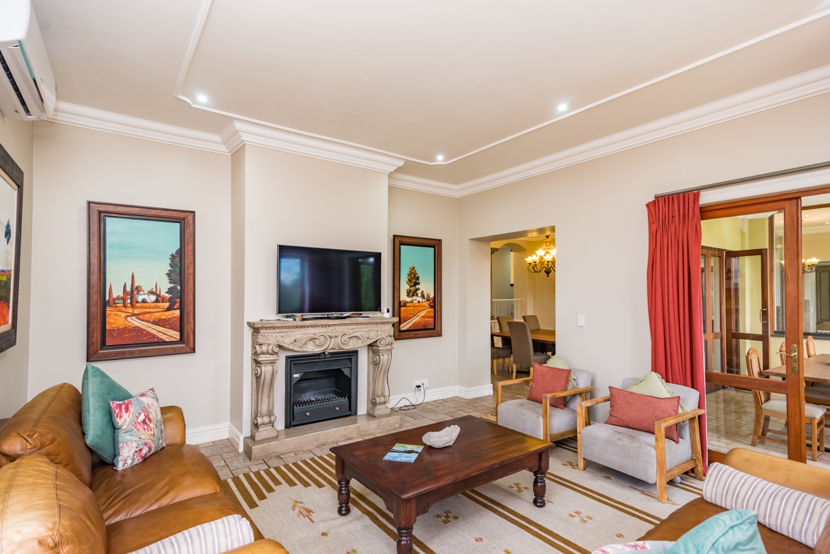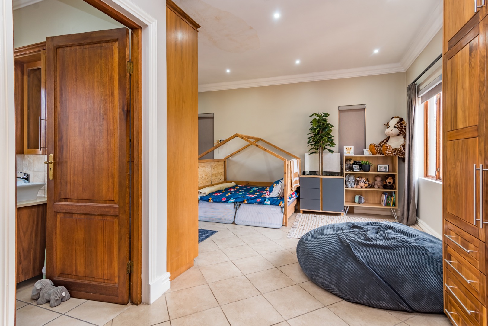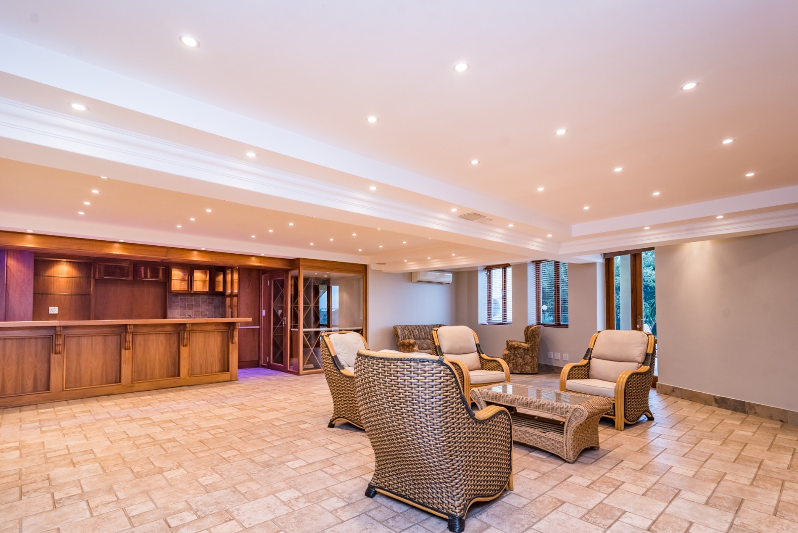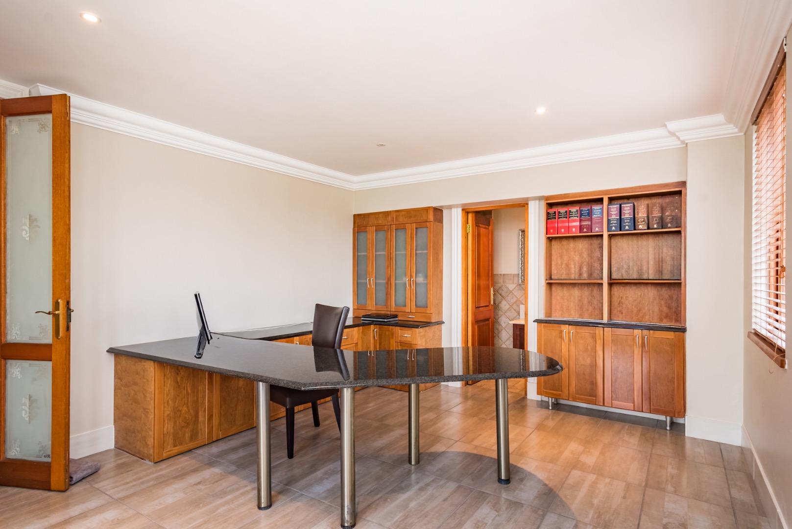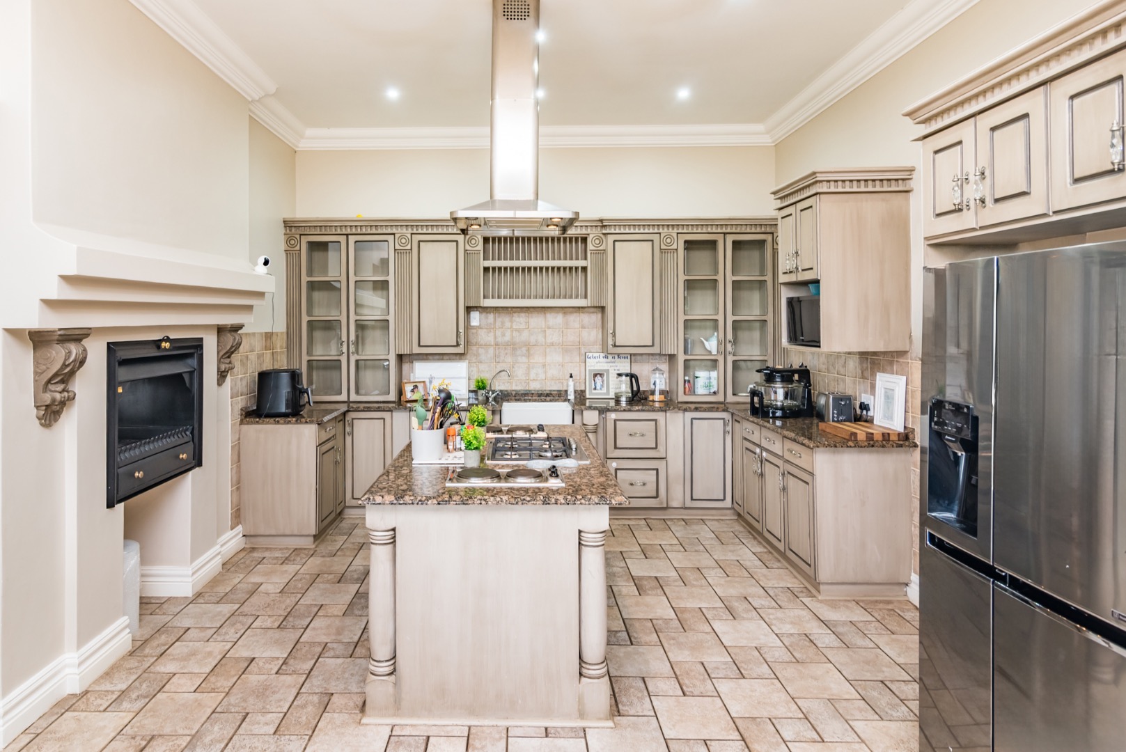 Also featuring: 5 bedrooms, all en-suite, an executive study with its own bathroom, 3 more living rooms ( excluding the entertainment room), scullery/ laundry and walk- in pantry, 4 garages and plenty more parking for more cars if needed; 2 staff quarters, fully equipped 1 bedroom flat that could easily be transformed in a 2 bedroom flat. This home already has adapted to the South African trend: offering solar, batteries and inverters and back-up generator; also a strong borehole with 2 x 10 000 litre water tanks connected to house as well as 7 airconditioners.