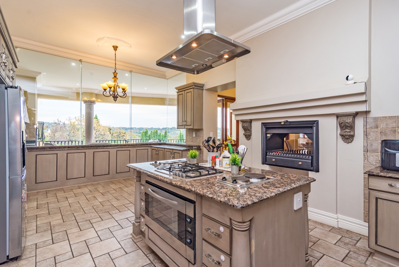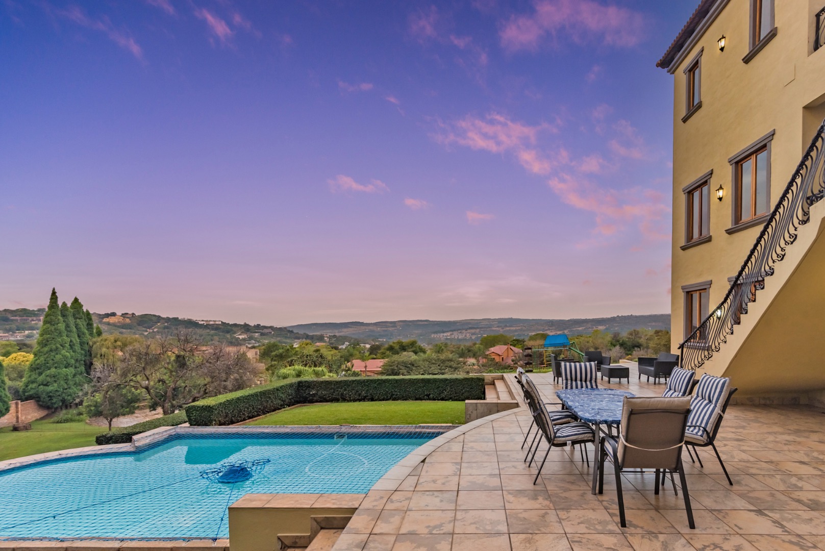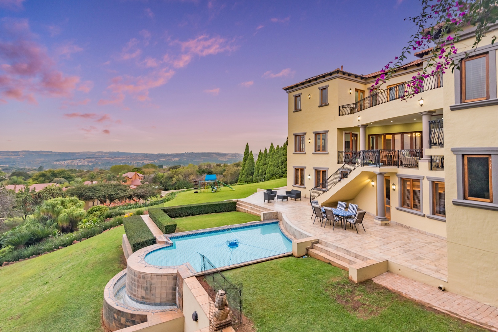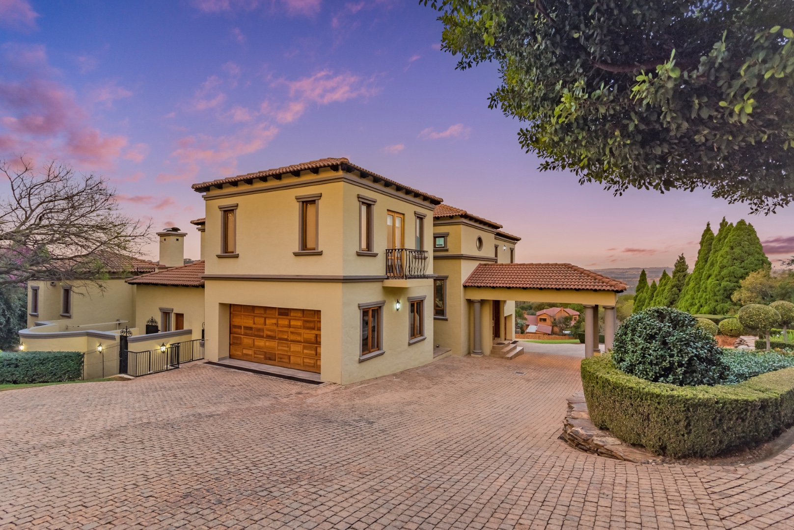 Sole Mandate! An Italian Casa to dream of. This storybook mansion on 1 ha in the most sought after security estate will take your breath away! A villa of character for the discerning buyer who wants only the best in life: privacy, security, peace and tranquility. Well located in one of the best streets in Mooikloof and on one of Mooikloof’s highest hills, this immaculate home offers you unsurpassed views from each and every level. It is luxurious, it is imposing, it’s grandeur and its stature speak of its original Tuscan history. The port couchere leads you into an inviting double staircase and sets the vibe and standard for the rest of the home. Lavishly sculptured gardens with a huge pond add to this showpiece’s uniqueness. A strong borehole provides the water maintaining this picturesque garden as well as the beautiful pond and water features.