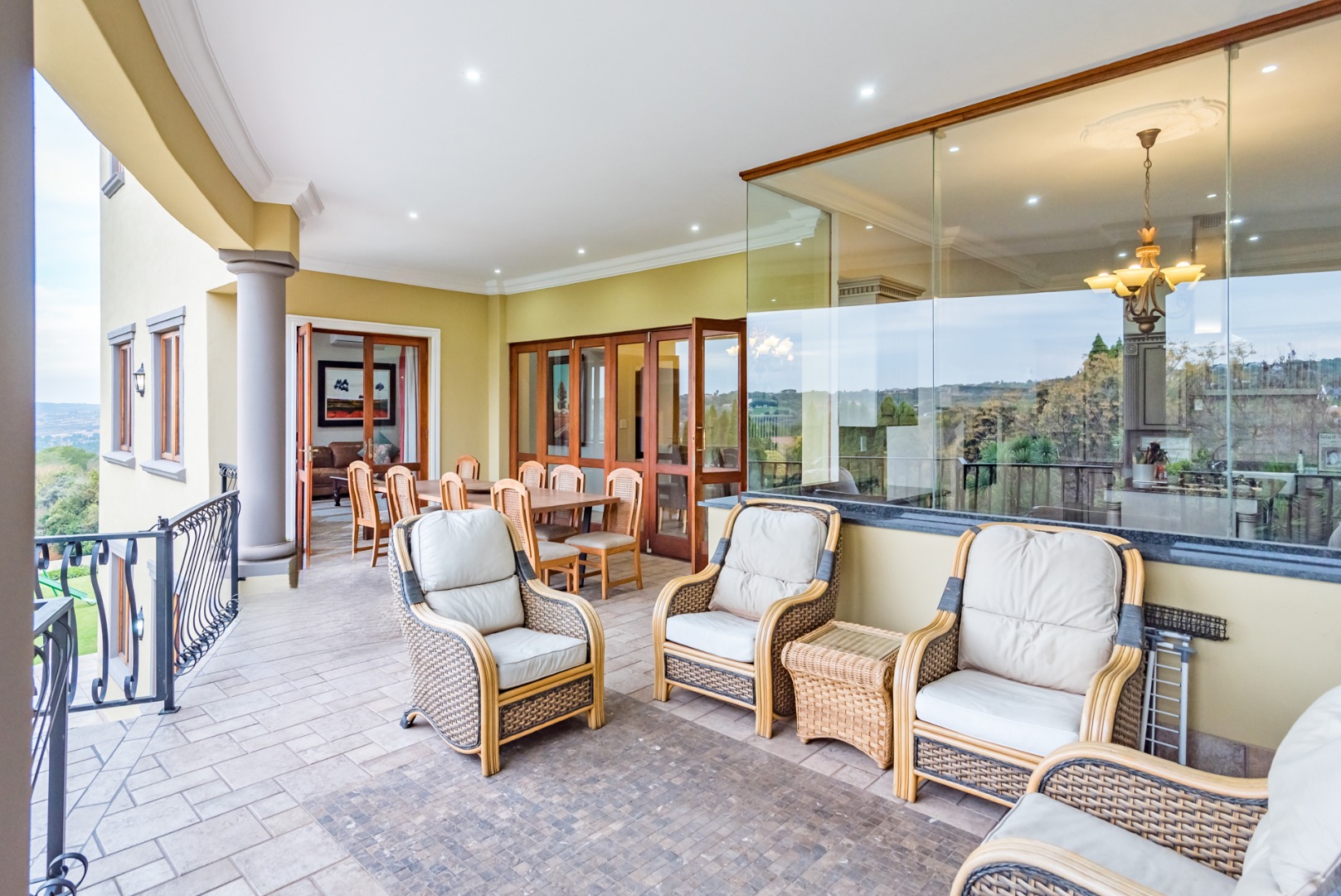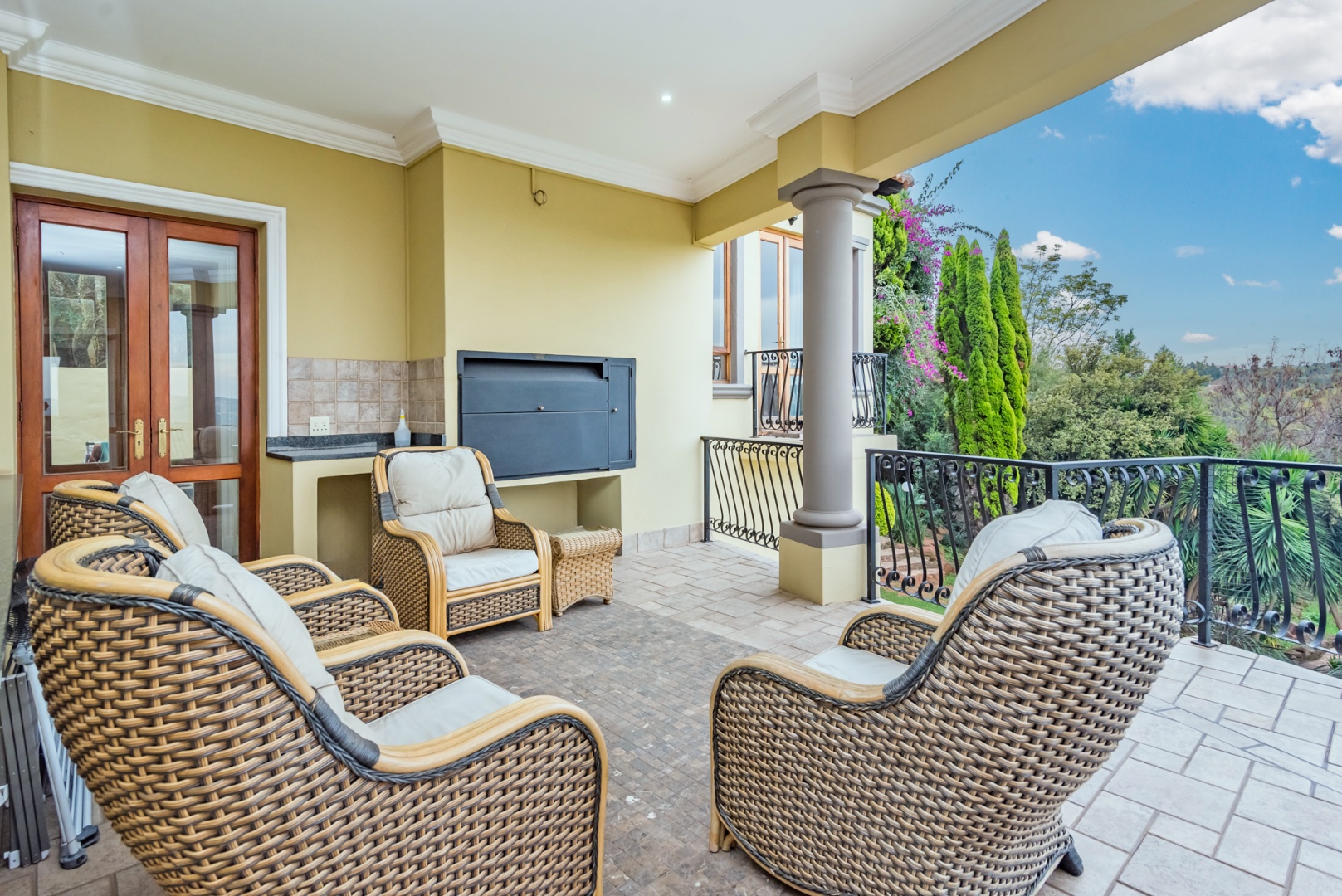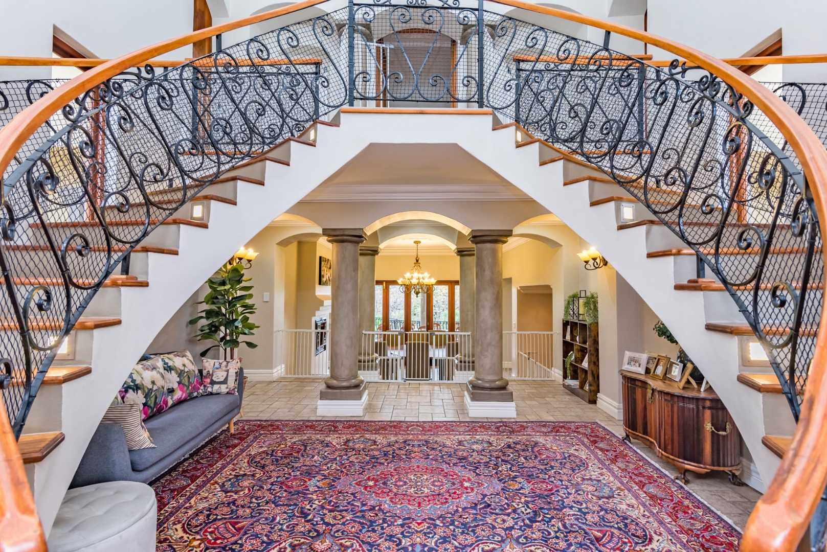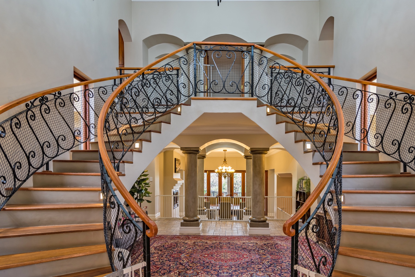 Sole Mandate! An Italian Casa to dream of. This storybook mansion on 1 ha in the most sought after security estate will take your breath away! A villa of character for the discerning buyer who wants only the best in life: privacy, security, peace and tranquility. Well located in one of the best streets in Mooikloof and on one of Mooikloof’s highest hills, this immaculate home offers you unsurpassed views from each and every level. It is luxurious, it is imposing, it’s grandeur and its stature speak of its original Tuscan history. The port couchere leads you into an inviting double staircase and sets the vibe and standard for the rest of the home. Lavishly sculptured gardens with a huge pond add to this showpiece’s uniqueness. A strong borehole provides the water maintaining this picturesque garden as well as the beautiful pond and water features.