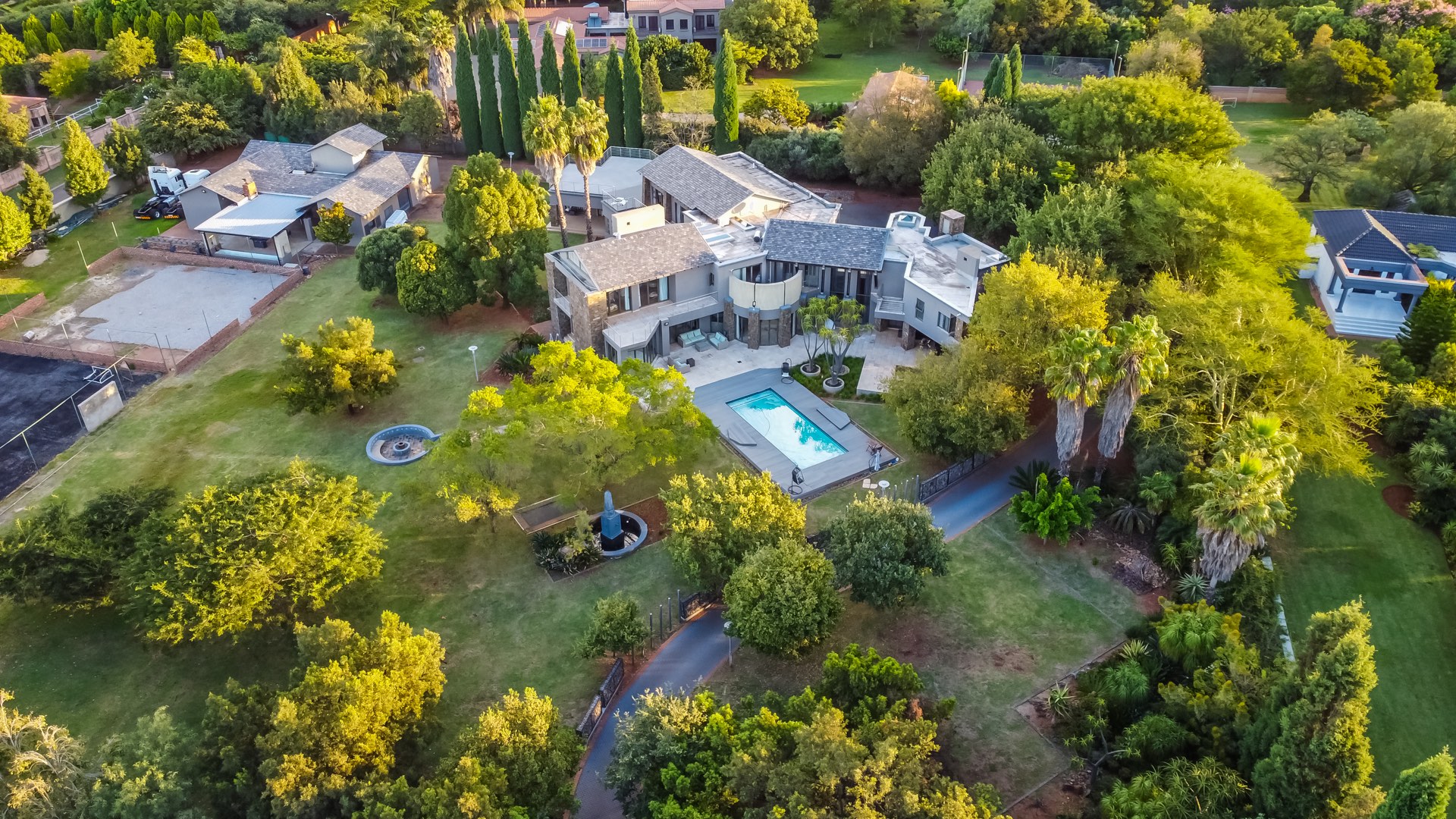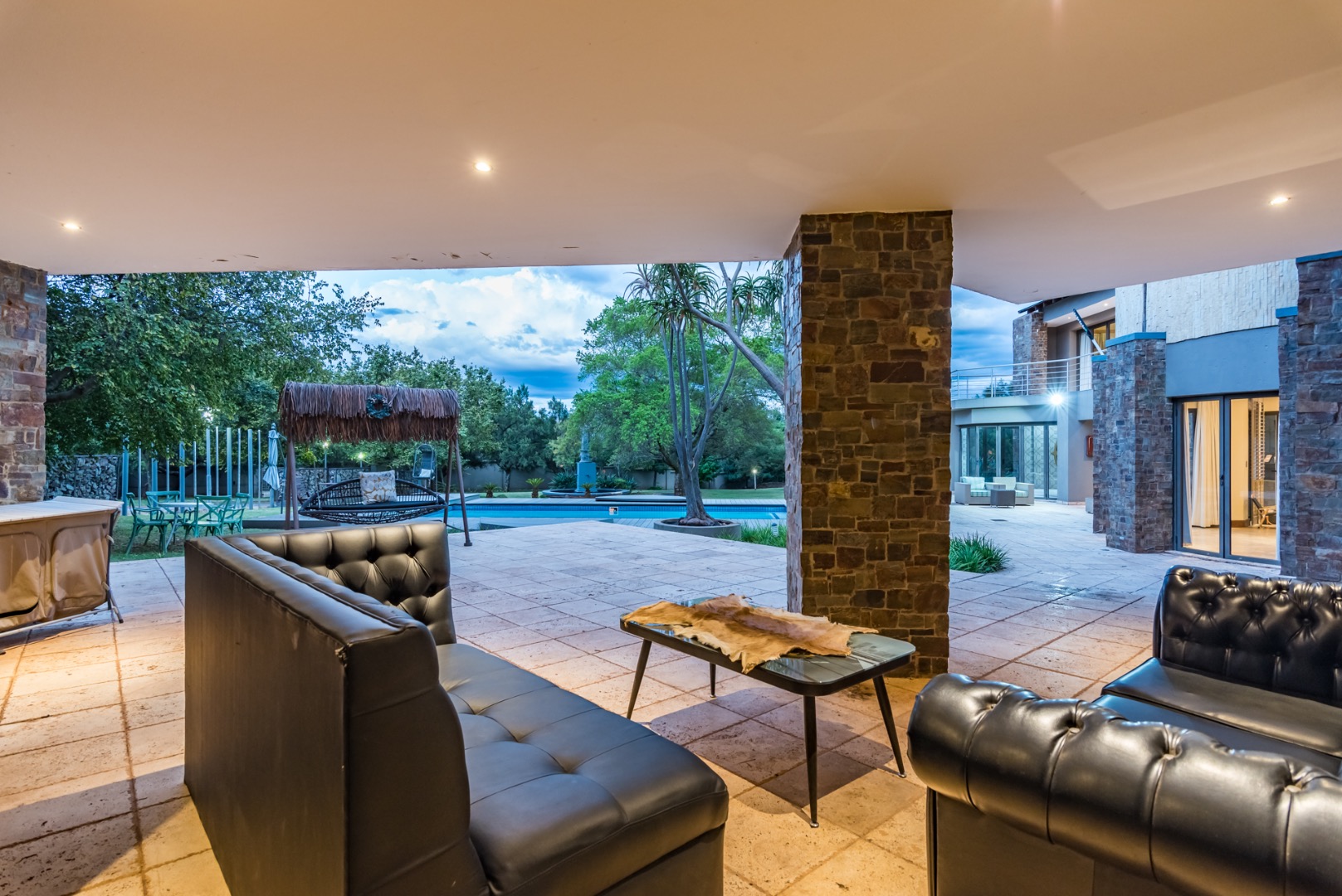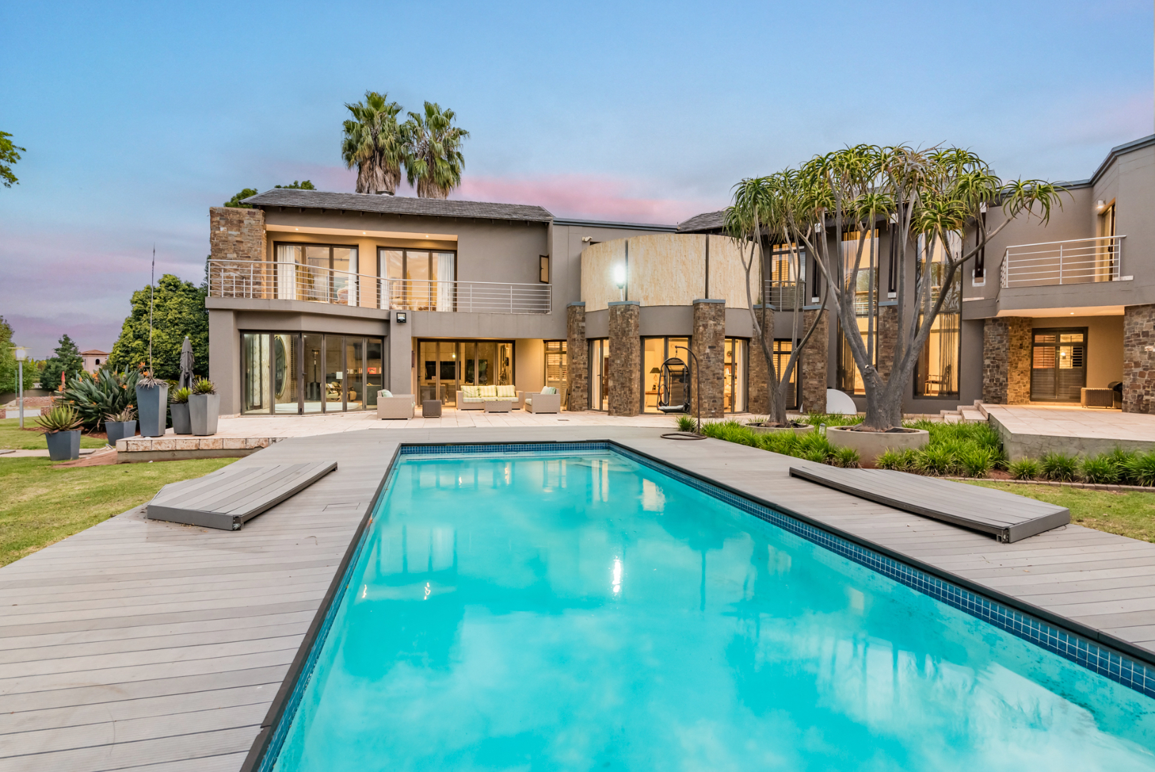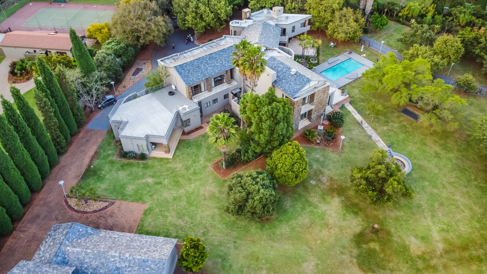 When you walk into this home you are immediately embraced by a sense of calm derived from the light and airy spaces. This home is a fine example of 21st century architecture evident in the usage of perfect symmetry with clean, straight lines and simplified yet elegant designs that add a classy ambience to the overall visually pleasing design. Situated on a very special stand inside Mooikloof Equestrian Estate it ensures privacy to the owners and unobstructed views. The comfortable modern style of the home lends itself to an abundance of natural light and sun in which the home owners relish. The magnificent open-plan Italian imported kitchen forms the heart of the house, from where the cook/s can be part of the socializing in the living rooms. Entertaining will be a real delight with all the living rooms (6) functioning on aluminum stack doors opening onto the huge patios overlooking the huge swimming pool. Entertaining can be done on a large scale with all the living rooms interlinked between each other but if you do prefer a cozy atmosphere between only a few friends you could close off some of the doors for more privacy. The bar, Jacuzzi and indoor braai add extra pleasure to the entertaining areas.