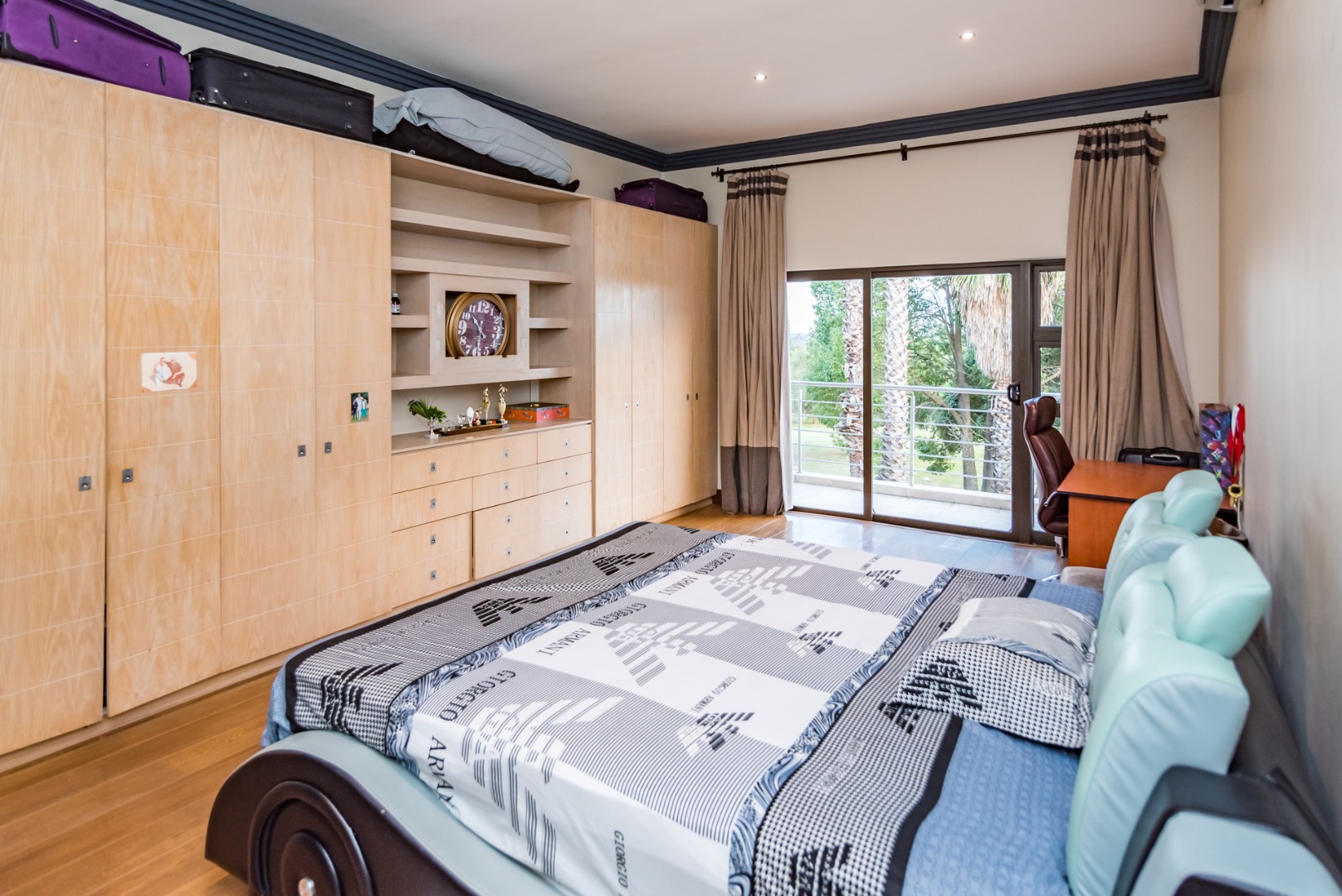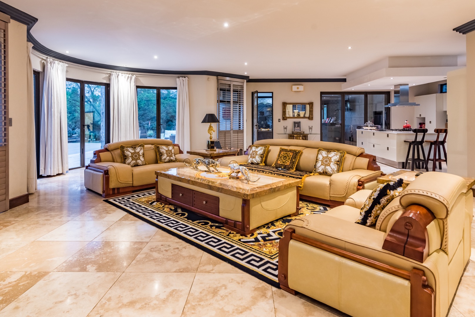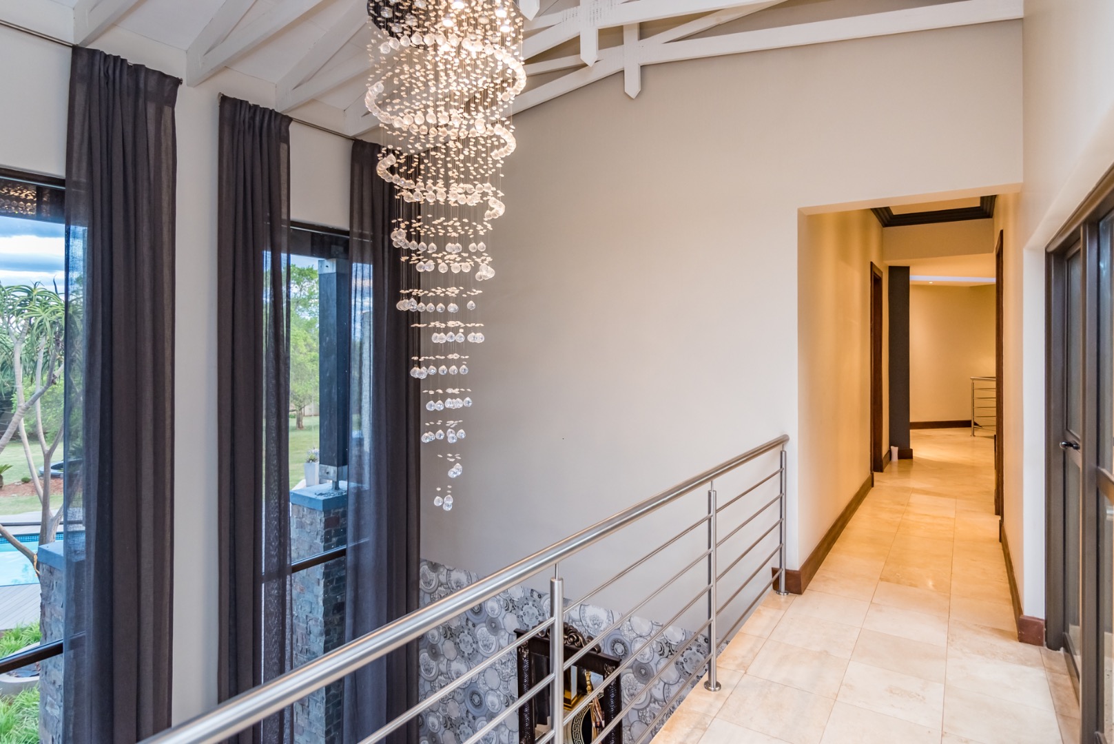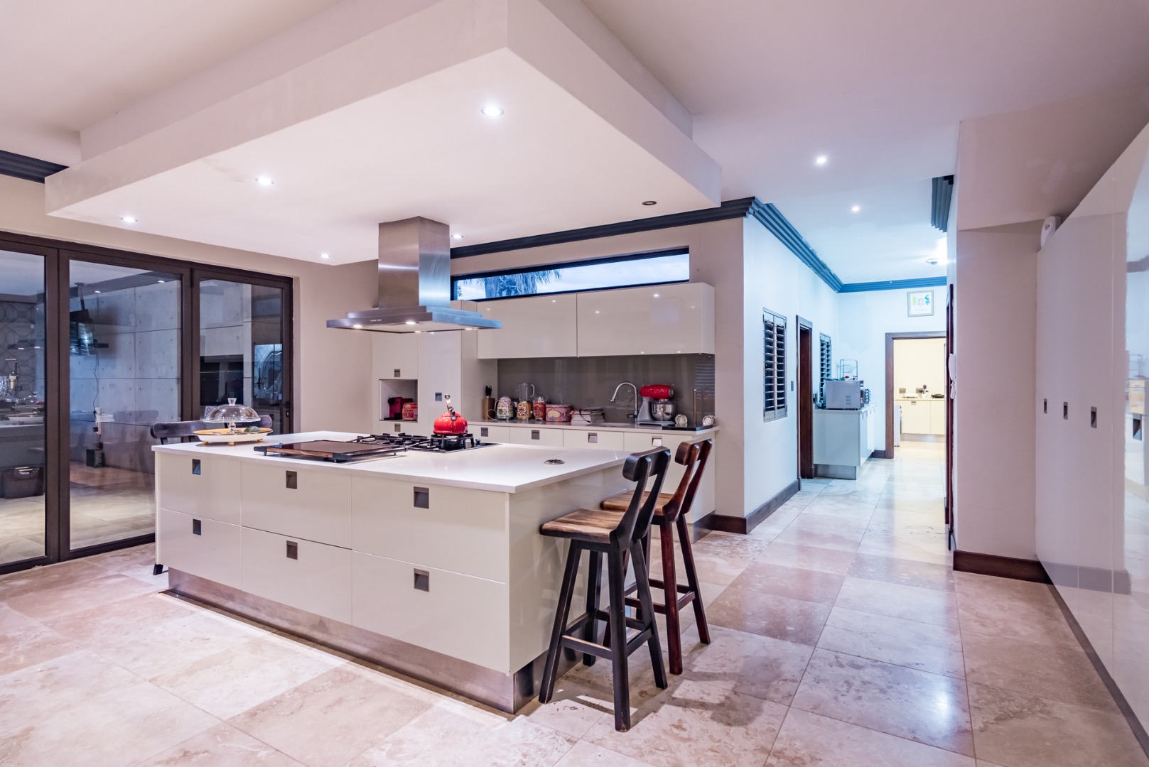When you walk into this home you are immediately embraced by a sense of calm derived from the light and airy spaces. This home is a fine example of 21st century architecture evident in the usage of perfect symmetry with clean, straight lines and simplified yet elegant designs that add a classy ambience to the overall visually pleasing design. Situated on a very special stand inside Mooikloof Equestrian Estate it ensures privacy to the owners and unobstructed views. The comfortable modern style of the home lends itself to an abundance of natural light and sun in which the home owners relish. The magnificent open-plan Italian imported kitchen forms the heart of the house, from where the cook/s can be part of the socializing in the living rooms. Entertaining will be a real delight with all the living rooms (6) functioning on aluminum stack doors opening onto the huge patios overlooking the huge swimming pool. Entertaining can be done on a large scale with all the living rooms interlinked between each other but if you do prefer a cozy atmosphere between only a few friends you could close off some of the doors for more privacy. The bar, Jacuzzi and indoor braai add extra pleasure to the entertaining areas.