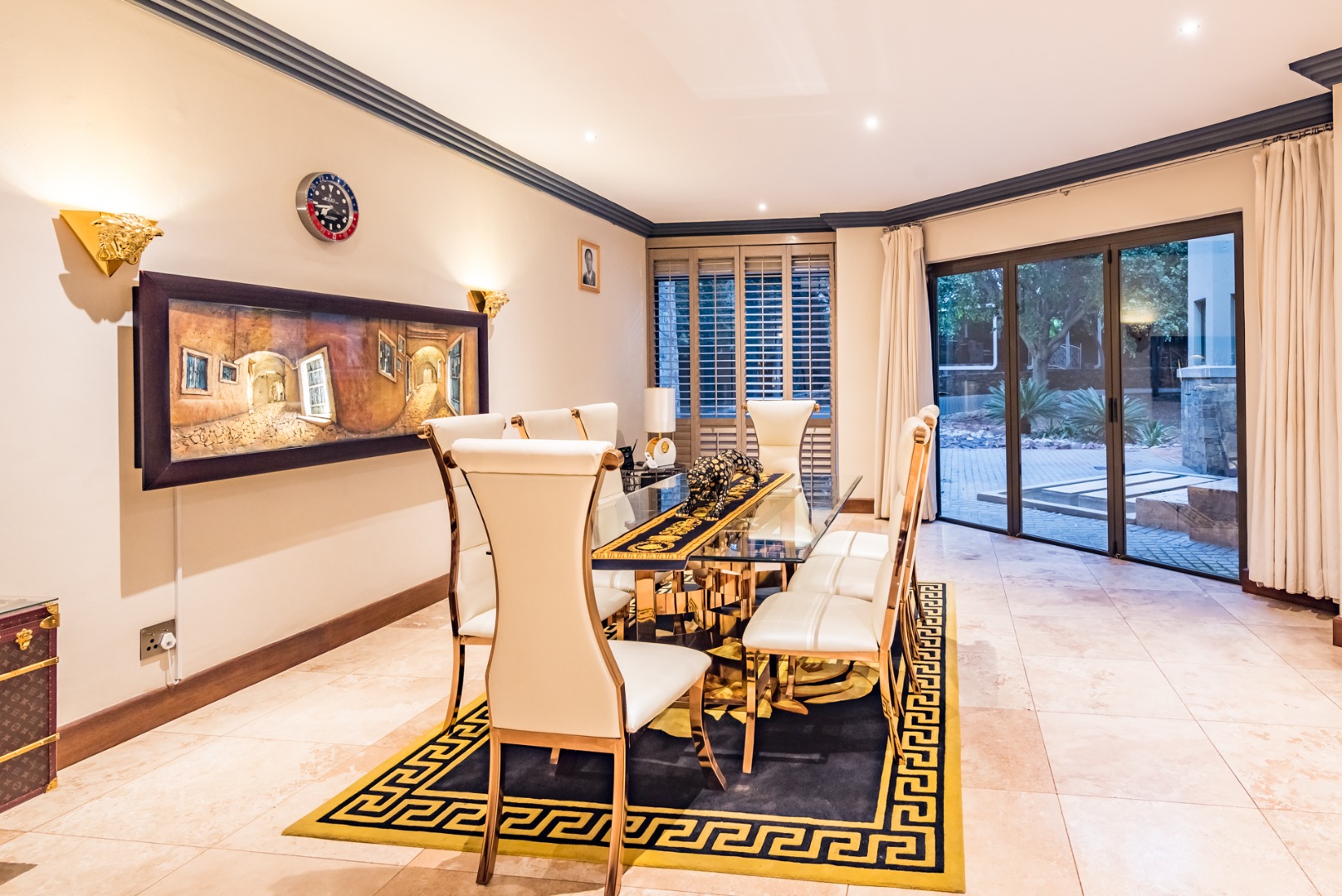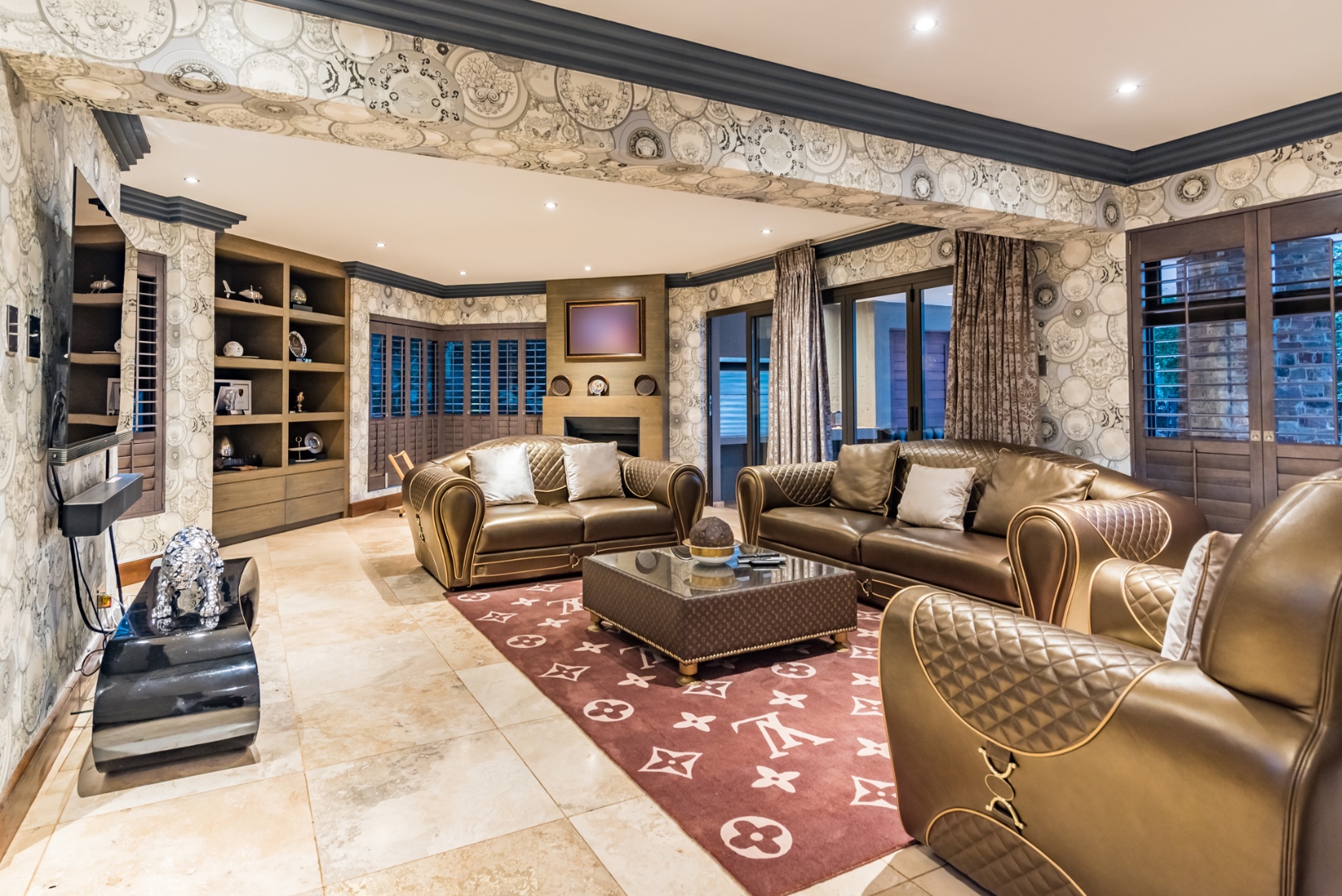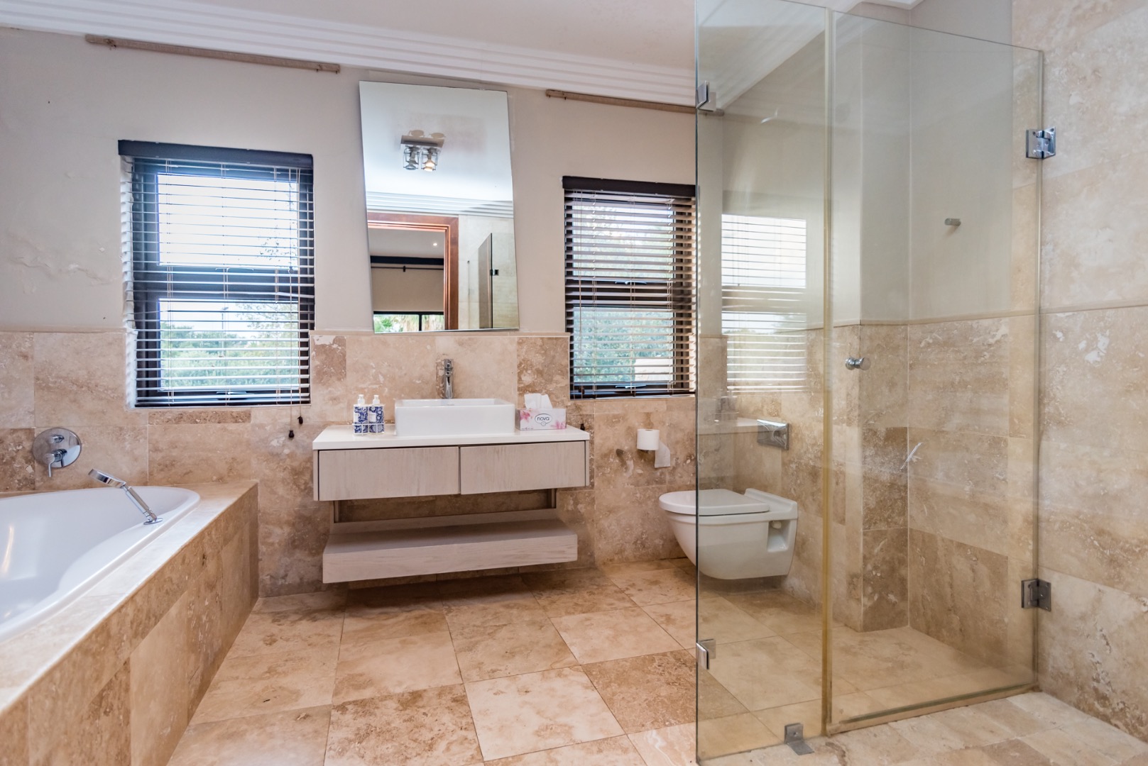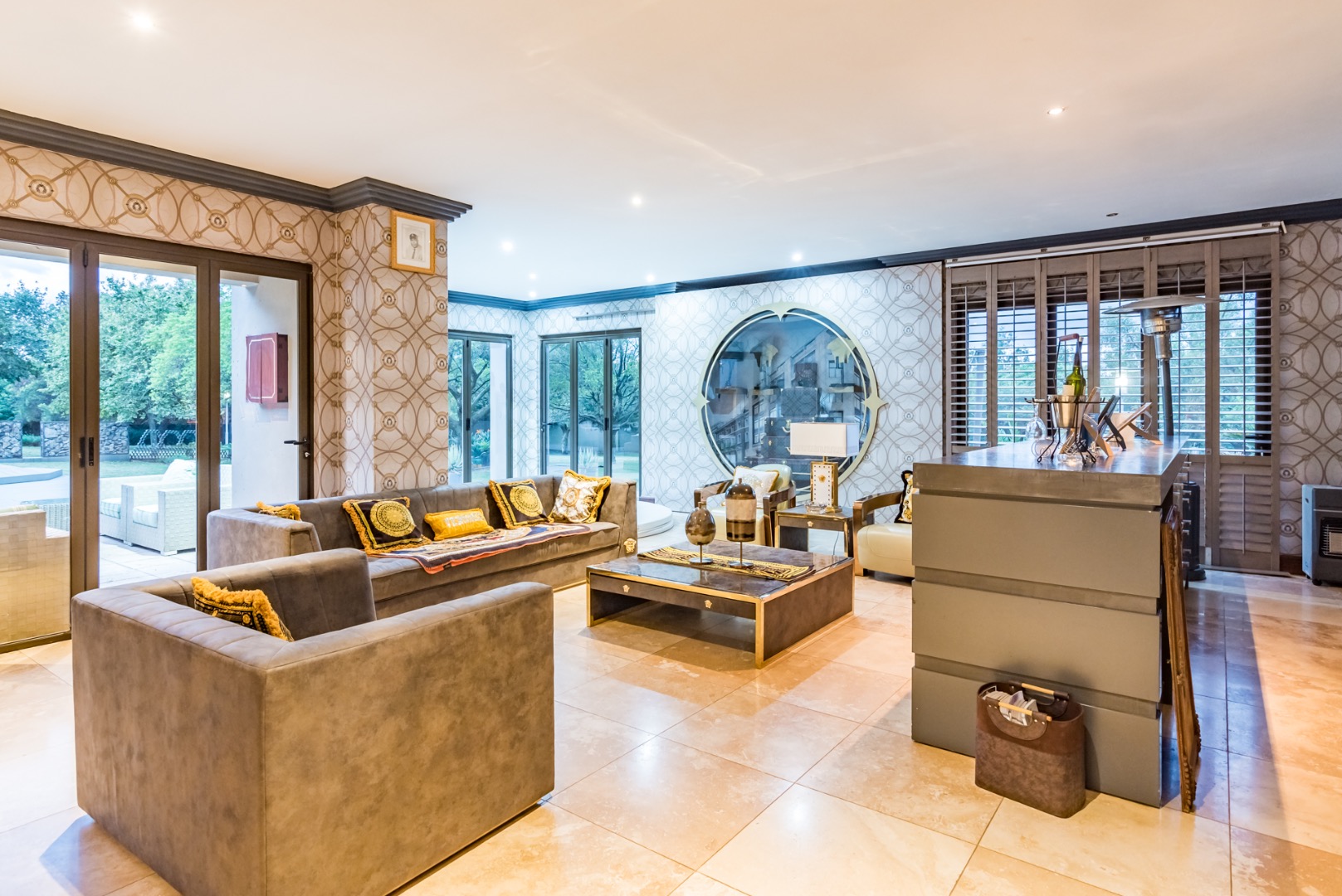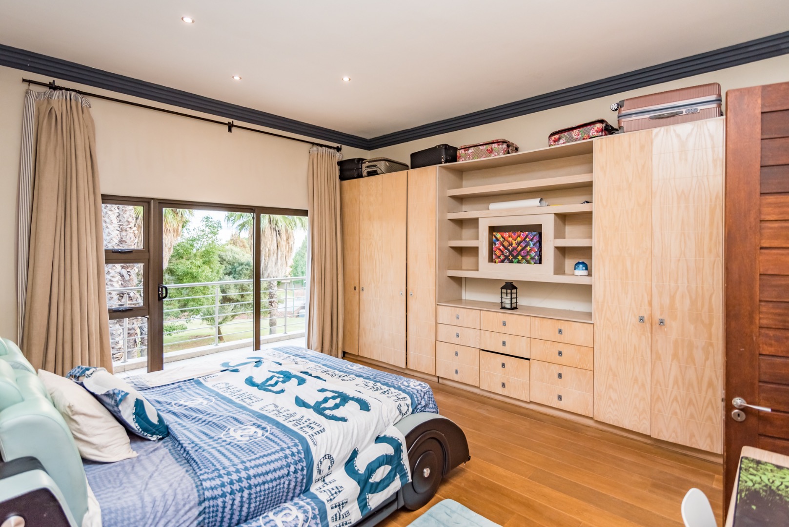 When you walk into this home you are immediately embraced by a sense of calm derived from the light and airy spaces. This home is a fine example of 21st century architecture evident in the usage of perfect symmetry with clean, straight lines and simplified yet elegant designs that add a classy ambience to the overall visually pleasing design. Situated on a very special stand inside Mooikloof Equestrian Estate it ensures privacy to the owners and unobstructed views. The comfortable modern style of the home lends itself to an abundance of natural light and sun in which the home owners relish. The magnificent open-plan Italian imported kitchen forms the heart of the house, from where the cook/s can be part of the socializing in the living rooms. Entertaining will be a real delight with all the living rooms (6) functioning on aluminum stack doors opening onto the huge patios overlooking the huge swimming pool. Entertaining can be done on a large scale with all the living rooms interlinked between each other but if you do prefer a cozy atmosphere between only a few friends you could close off some of the doors for more privacy. The bar, Jacuzzi and indoor braai add extra pleasure to the entertaining areas.