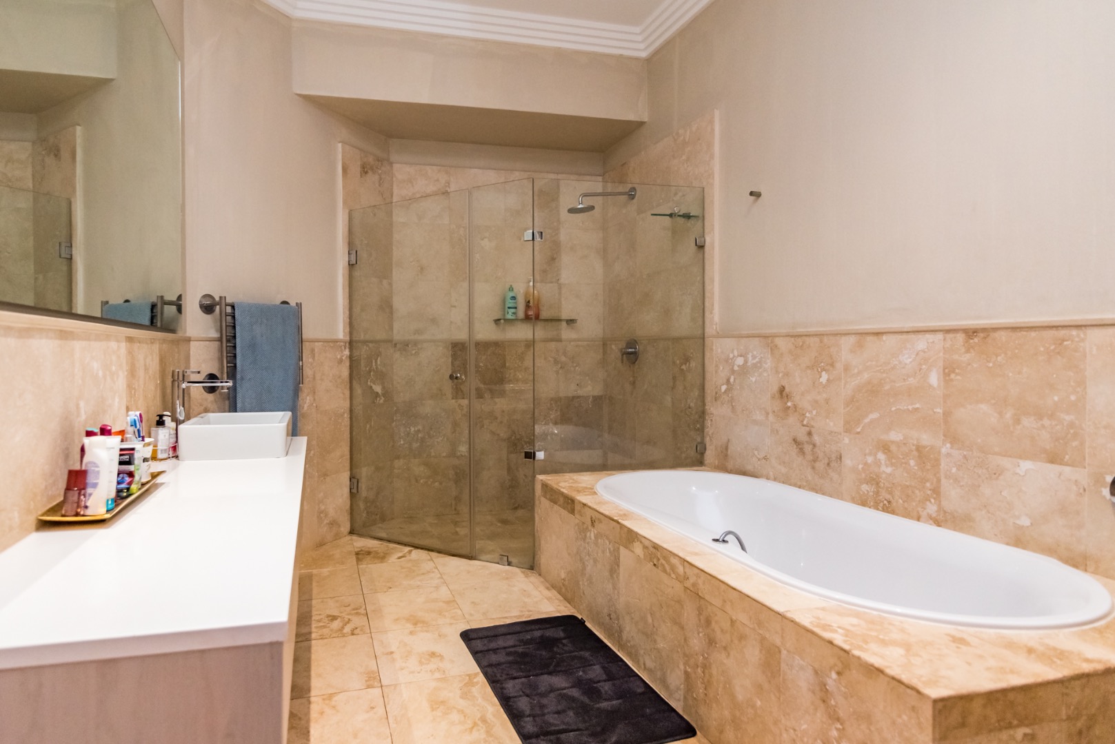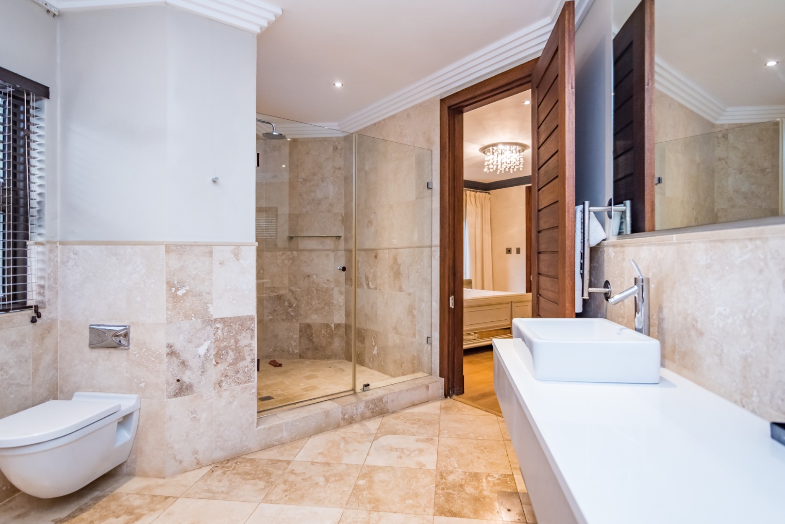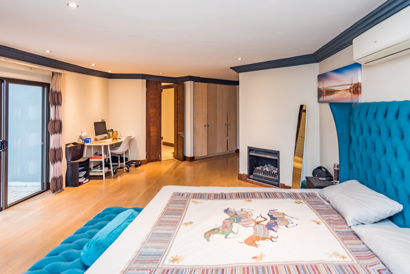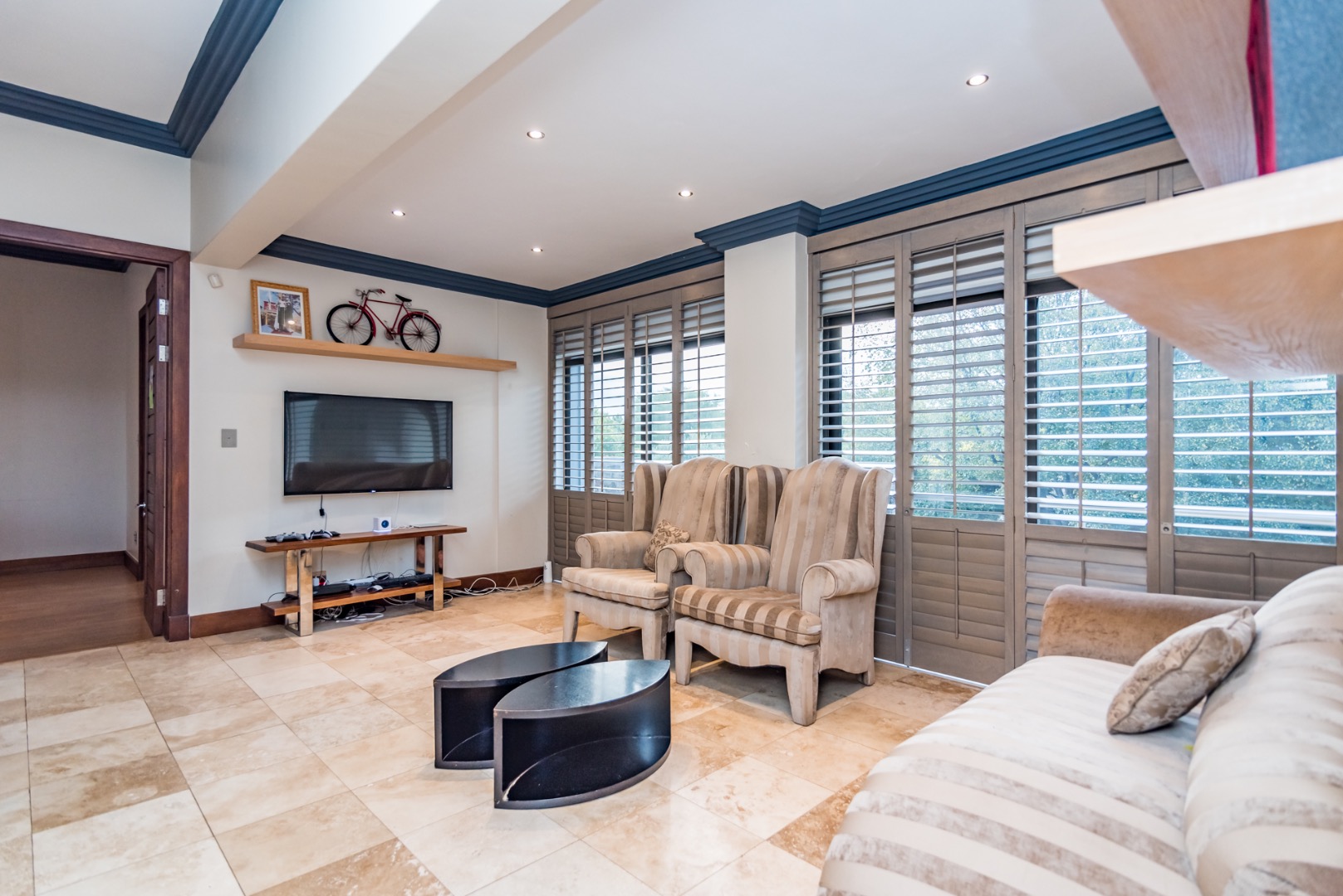 Furthermore the house offers: 5 bedrooms all with en-suite bathrooms; 5 living rooms; gym, flat with 2 en suite bedrooms, 2 living rooms and fully equipped kitchen with it’s own garden; 4 store rooms, 6 garages, 3 carports, 2 servants’ quarters. Extra features include: 3-phase electricity, air-conditioning, generator. Huge laundry and separate scullery. The garden all around the house is complementing this amazing, contemporary special home – a home that only could be appreciated by viewing it.