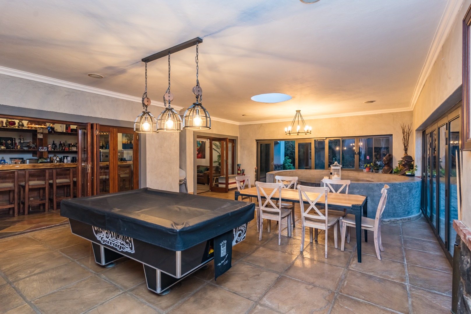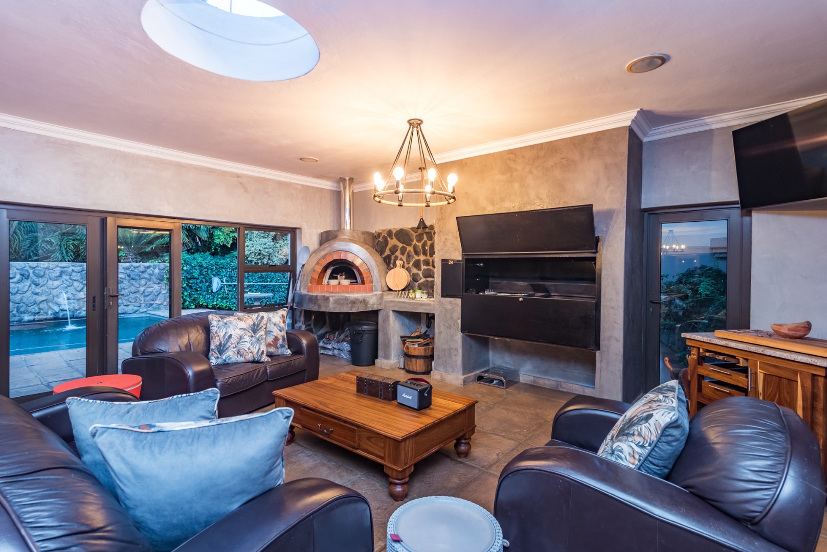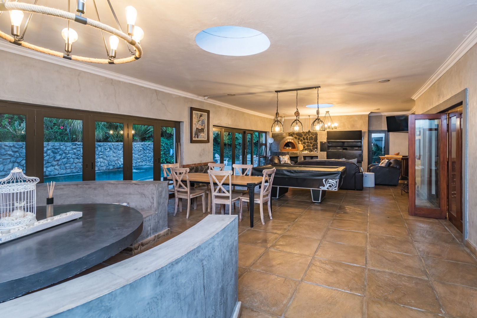 interlinked with the braai area with stack doors opening fully on hot summer