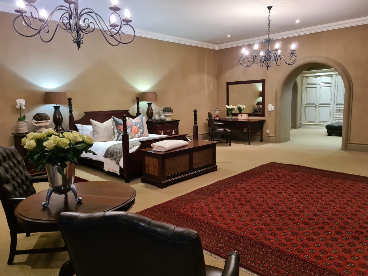 is complemented by the spacious dressing room and bathroom – fit for a king and