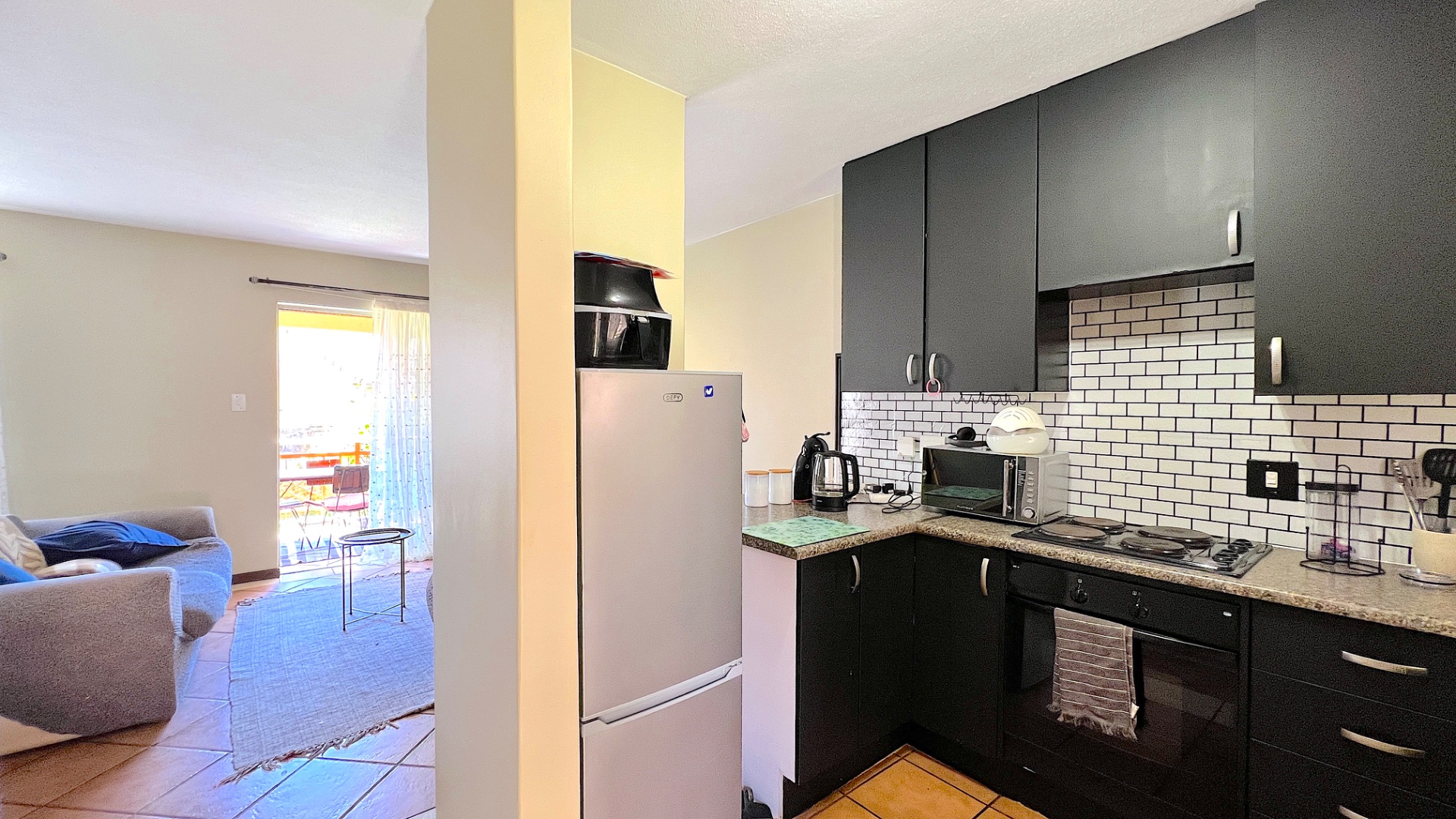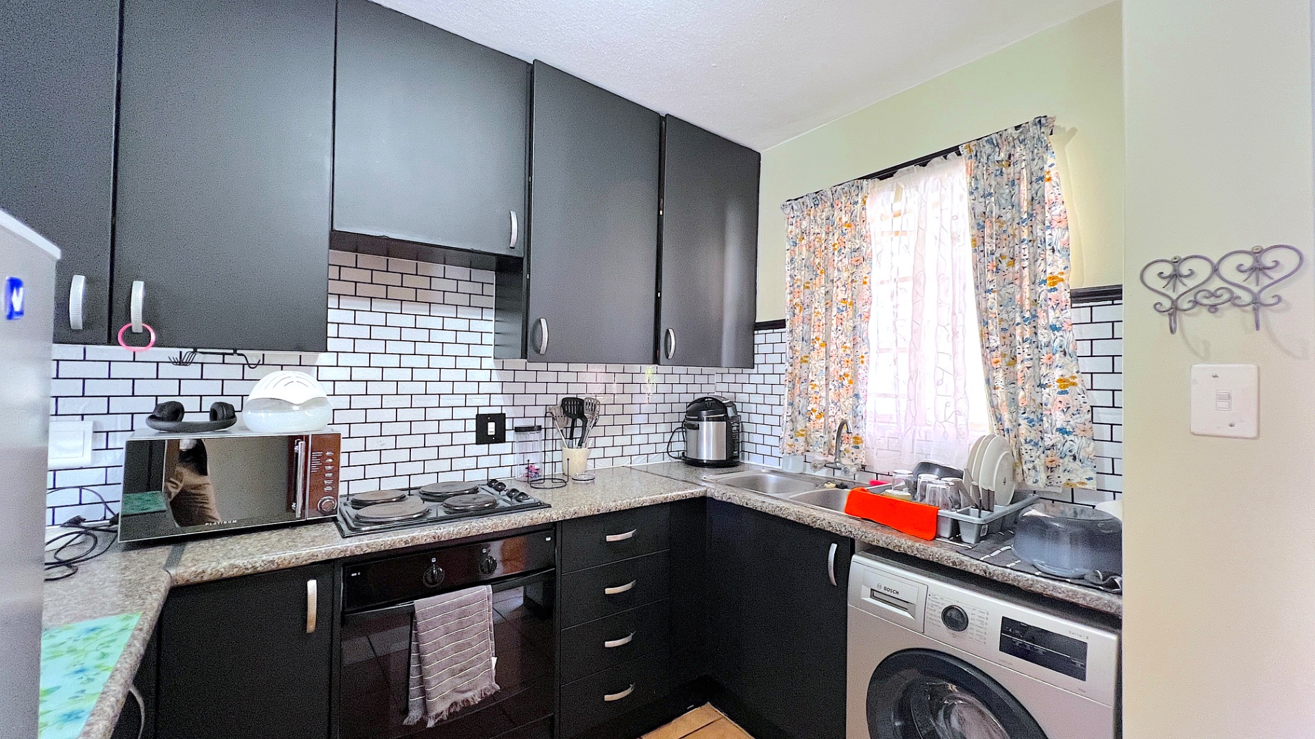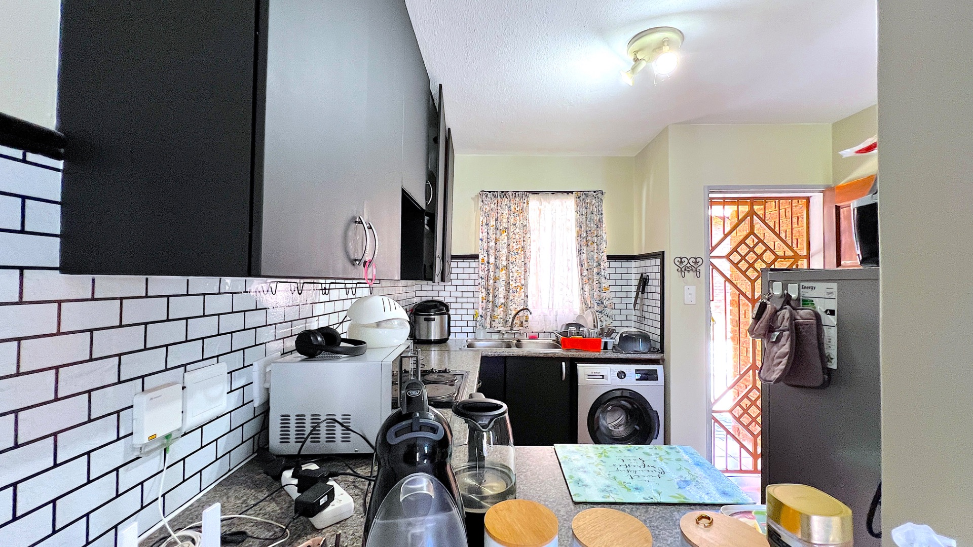 This inviting 81 sqm residential property offers a comfortable and secure lifestyle within the sought-after Mooikloof Ridge estate in Pretoria. Ideal for modern living, this home features 2 bedrooms, 2 bathrooms, and a single garage, perfectly suited for contemporary needs. The interior boasts an open-plan layout, seamlessly connecting the living area with a modern kitchen. The kitchen features sleek black cabinetry, a stylish white subway tile backsplash, integrated appliances, and a pantry. The living space extends to a private patio, ideal for relaxation or entertaining. Accommodation includes two well-appointed bedrooms, each with tiled flooring and ceiling fans. The main bedroom offers a large built-in wardrobe and direct access to an en-suite bathroom, ensuring privacy and convenience. Residents of this pet-friendly property can enjoy communal amenities, including a sparkling swimming pool and a clubhouse, fostering a vibrant community atmosphere. The property also features paving and a garden area. Security is paramount within this gated community, offering 24-hour security, an access gate, security post, and security gates with burglar bars. Fibre connectivity ensures high-speed internet. This Pretoria location provides a tranquil environment with easy access to urban conveniences. Key Features: * 2 Bedrooms, 2 Bathrooms * Modern Kitchen with Black Cabinetry * Open-Plan Living Area * Private Patio * Single Garage & Additional Parking * Communal Pool & Clubhouse * 24-Hour Security & Access Control * Fibre Ready * Pet-Friendly