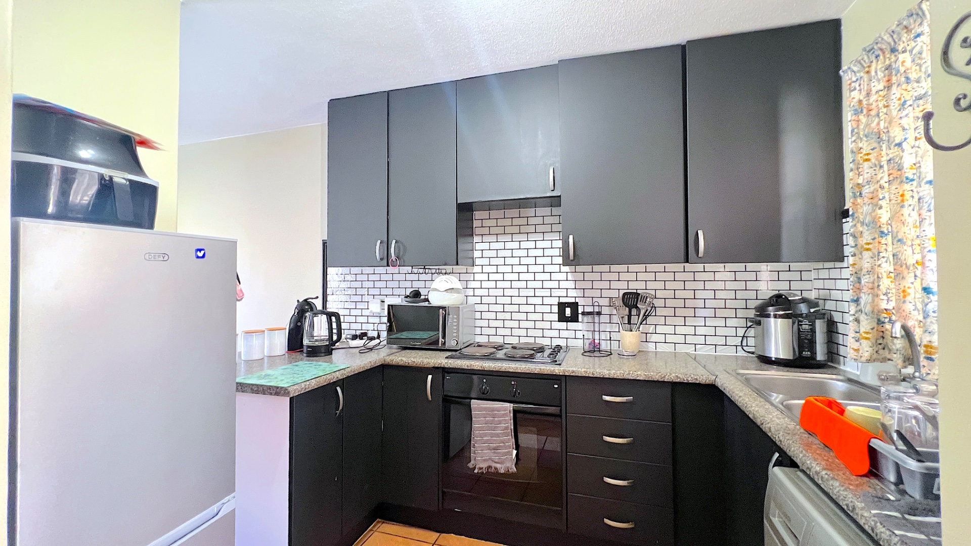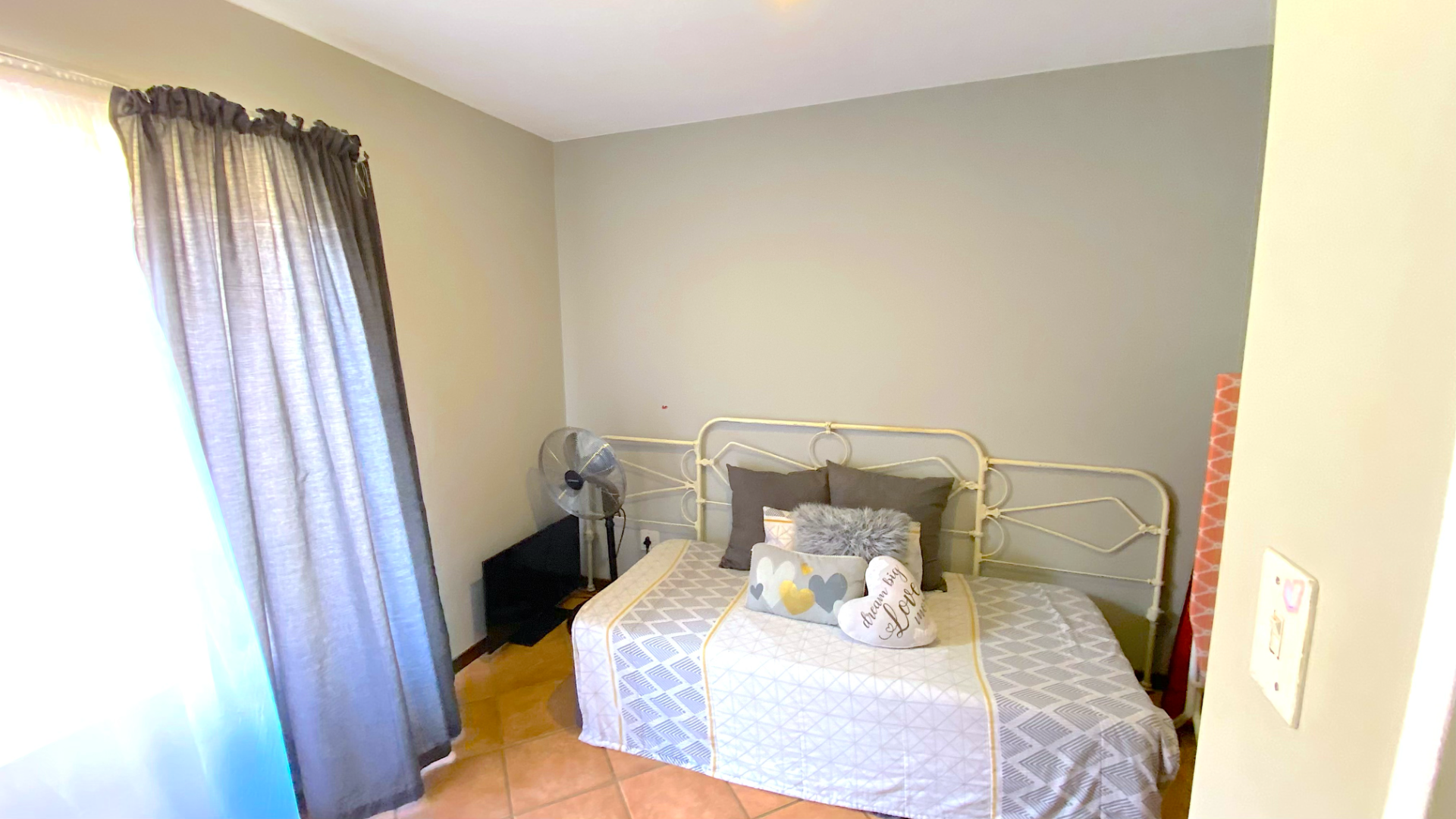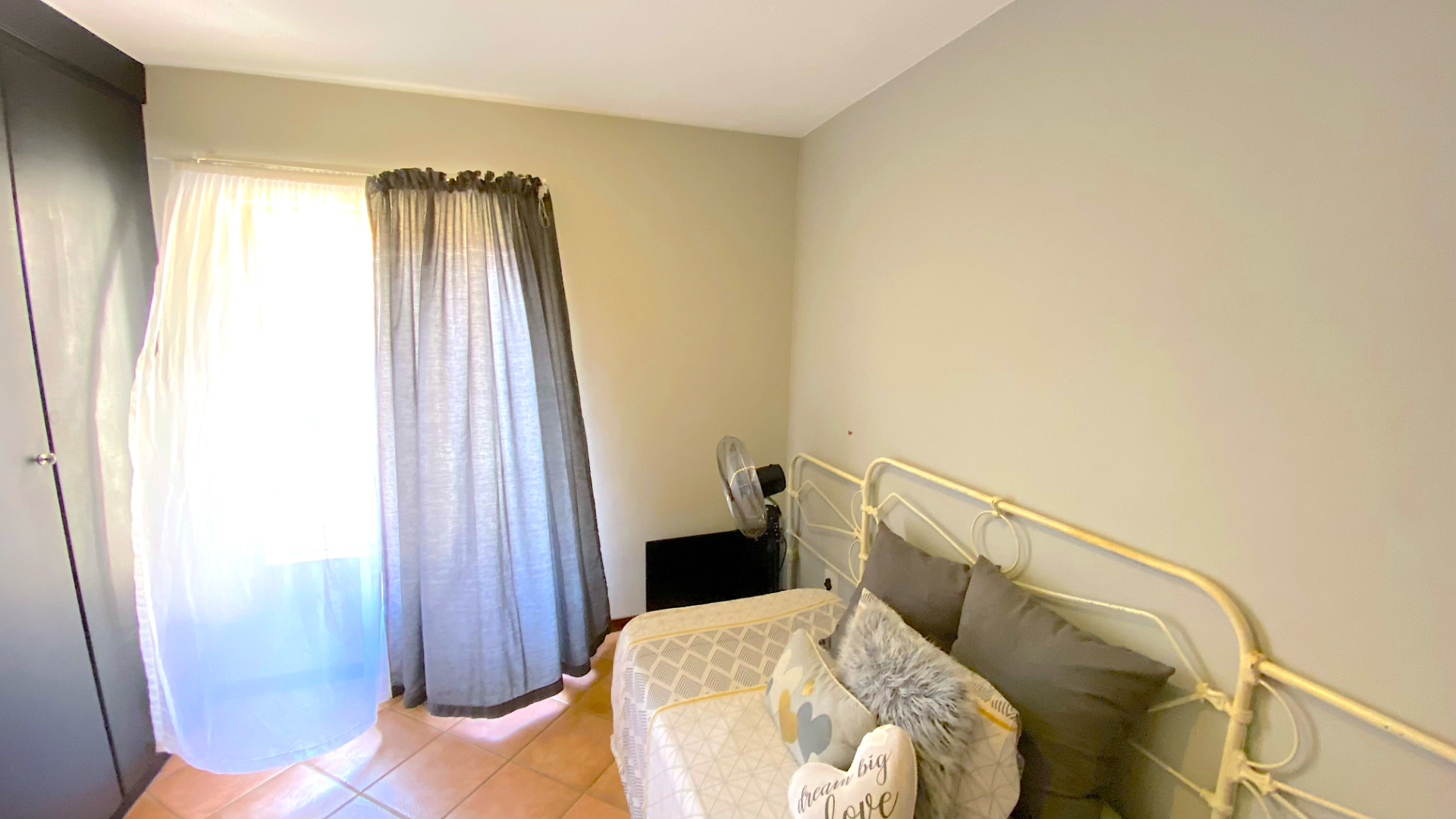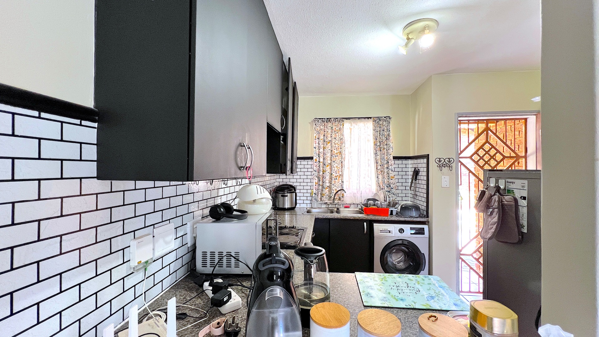 This inviting 81 sqm residential property offers a comfortable and secure lifestyle within the sought-after Mooikloof Ridge estate in Pretoria. Ideal for modern living, this home features 2 bedrooms, 2 bathrooms, and a single garage, perfectly suited for contemporary needs. The interior boasts an open-plan layout, seamlessly connecting the living area with a modern kitchen. The kitchen features sleek black cabinetry, a stylish white subway tile backsplash, integrated appliances, and a pantry. The living space extends to a private patio, ideal for relaxation or entertaining. Accommodation includes two well-appointed bedrooms, each with tiled flooring and ceiling fans. The main bedroom offers a large built-in wardrobe and direct access to an en-suite bathroom, ensuring privacy and convenience. Residents of this pet-friendly property can enjoy communal amenities, including a sparkling swimming pool and a clubhouse, fostering a vibrant community atmosphere. The property also features paving and a garden area. Security is paramount within this gated community, offering 24-hour security, an access gate, security post, and security gates with burglar bars. Fibre connectivity ensures high-speed internet. This Pretoria location provides a tranquil environment with easy access to urban conveniences. Key Features: * 2 Bedrooms, 2 Bathrooms * Modern Kitchen with Black Cabinetry * Open-Plan Living Area * Private Patio * Single Garage & Additional Parking * Communal Pool & Clubhouse * 24-Hour Security & Access Control * Fibre Ready * Pet-Friendly