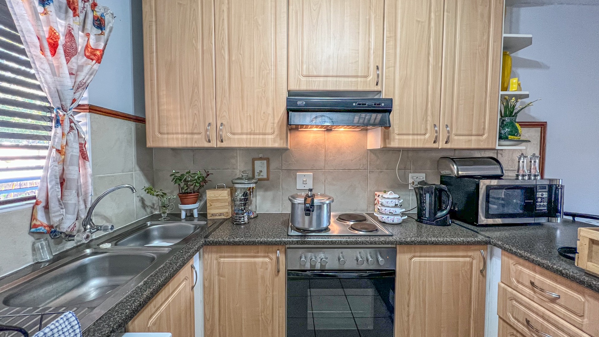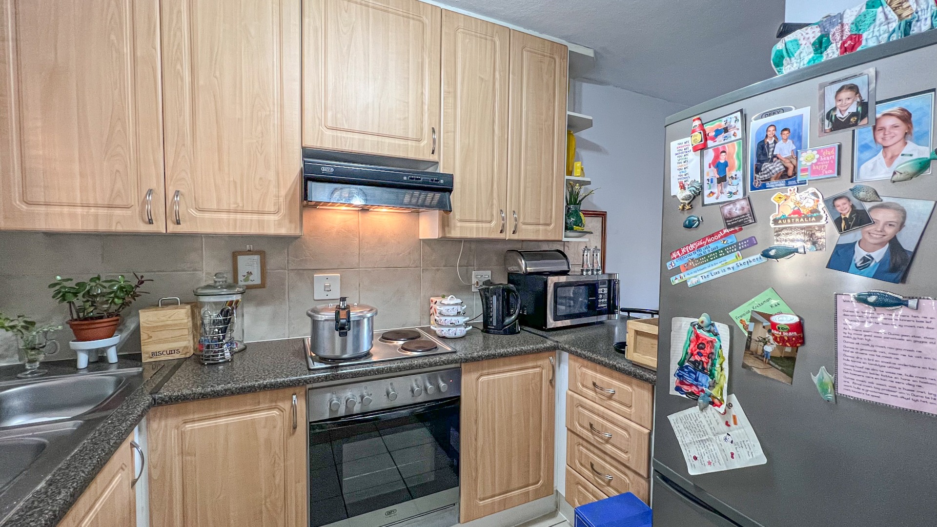 This delightful home boasts a bright and airy open-plan living area, effortlessly flowing into a well-designed kitchen with ample cupboard space for all your storage needs.