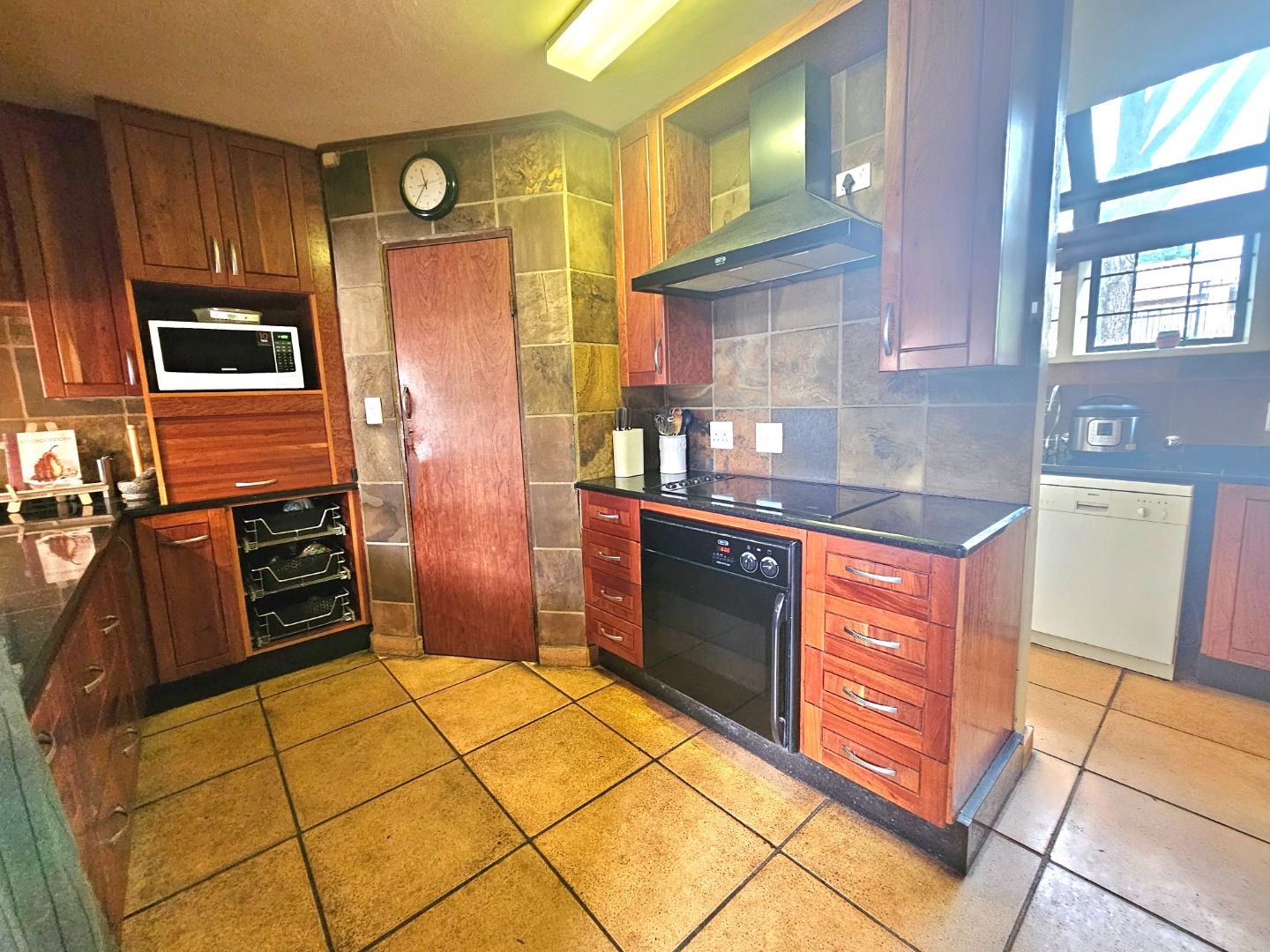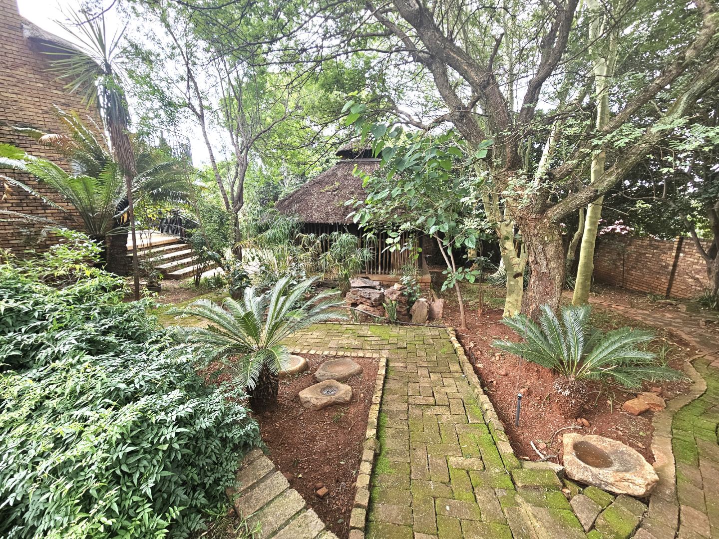 The property also benefits from three garages, a large carport for about six additional parking spaces, staff quarters and a storage room. Security is comprehensively addressed with 24-hour security, an alarm system, and a security post, ensuring peace of mind. Modern conveniences include fibre connectivity and a battery inverter, underscoring a commitment to uninterrupted living. An integrated sprinkler system maintains the lush garden. Moreleta Park offers a tranquil suburban lifestyle within close proximity to essential amenities and major transport routes in Pretoria, South Africa.