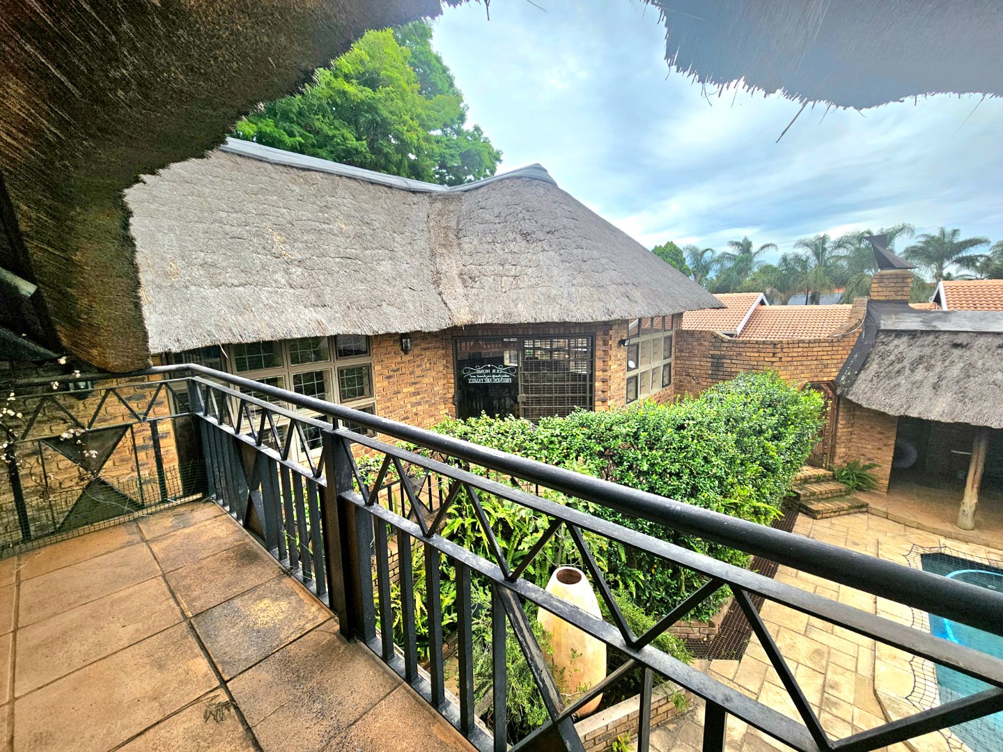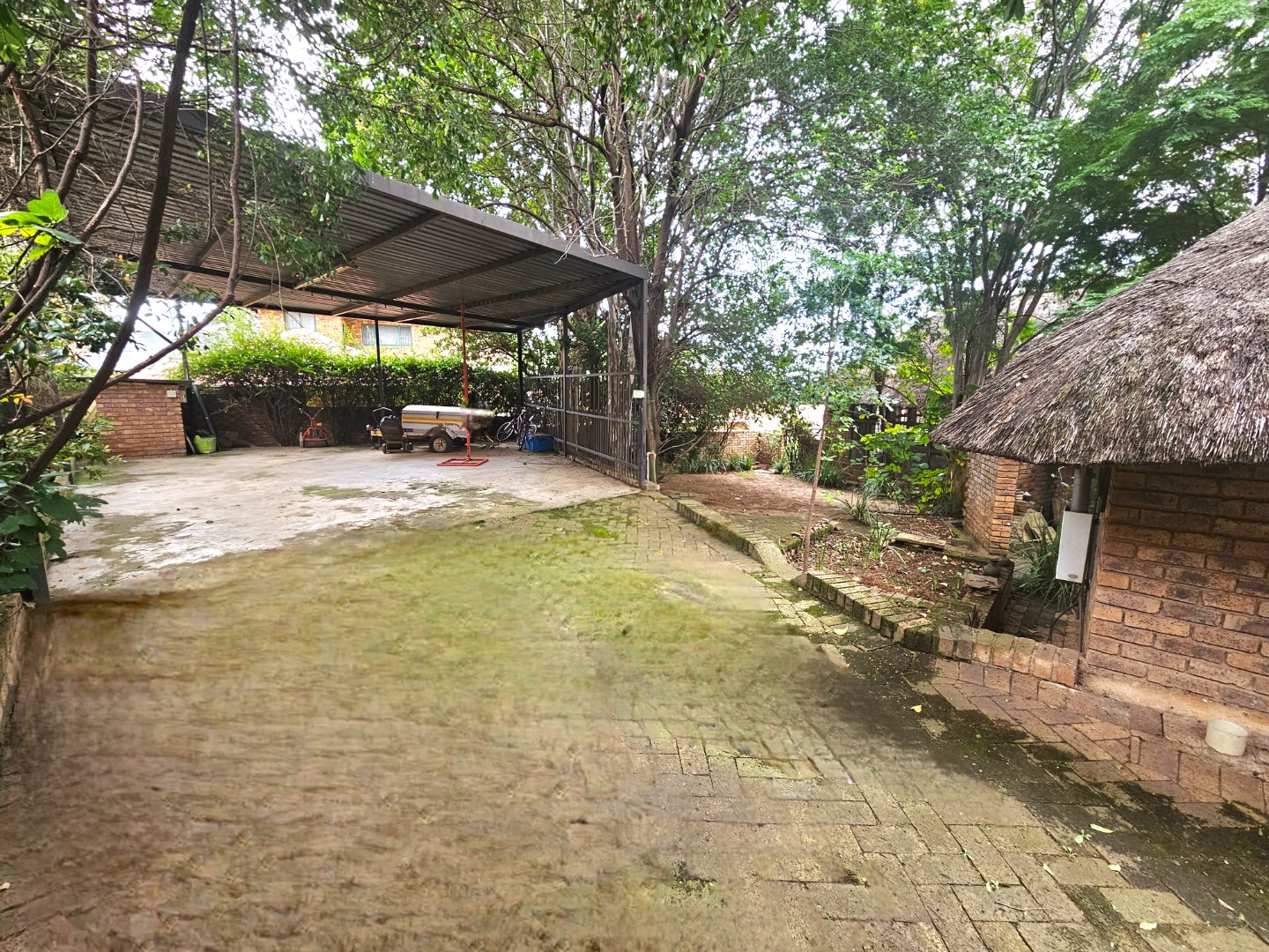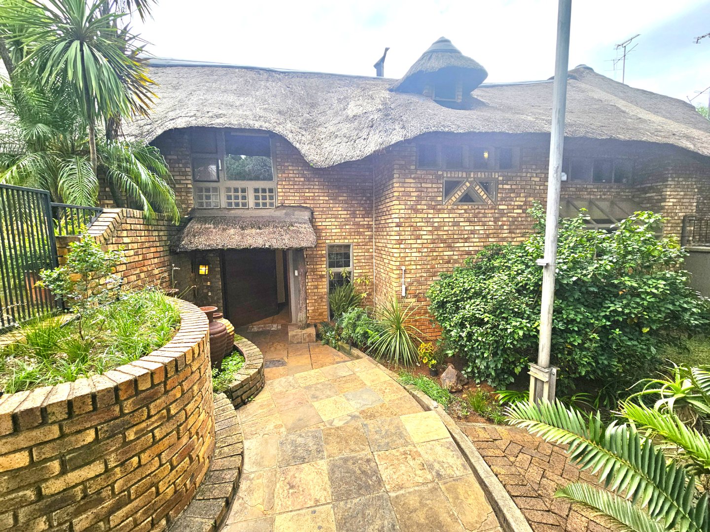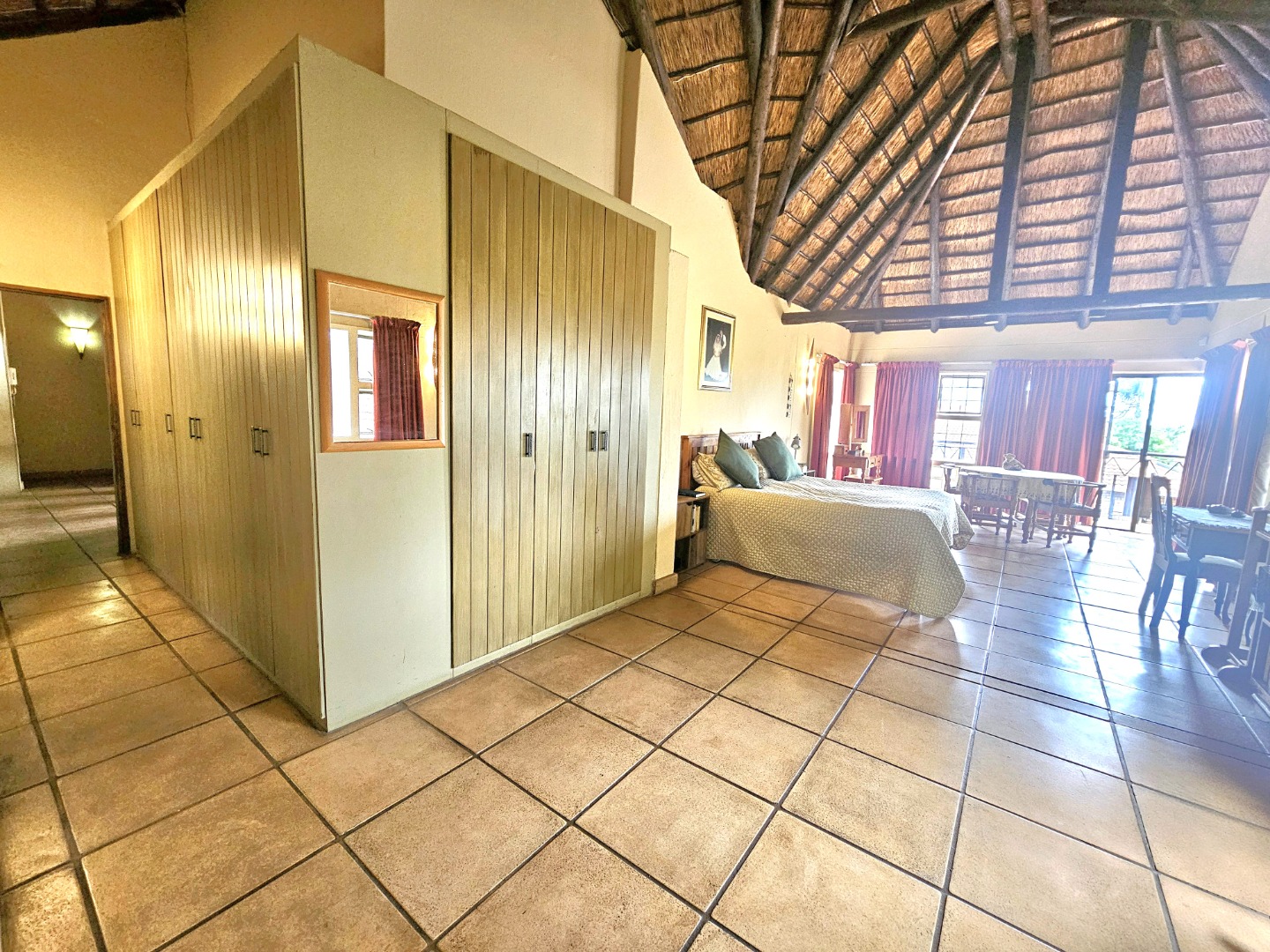 Embrace a holiday-style lifestyle in this charming thatched-roof home, offering a harmonious blend of rustic charm and contemporary living perfectly suited for entertaining family and friends. The property also offers two large additional rooms, ideal for use as home offices, studios, or versatile workspaces. A large carport further enhances the practicality of the home and can easily serve as a workshop or additional covered workspace for about six cars.