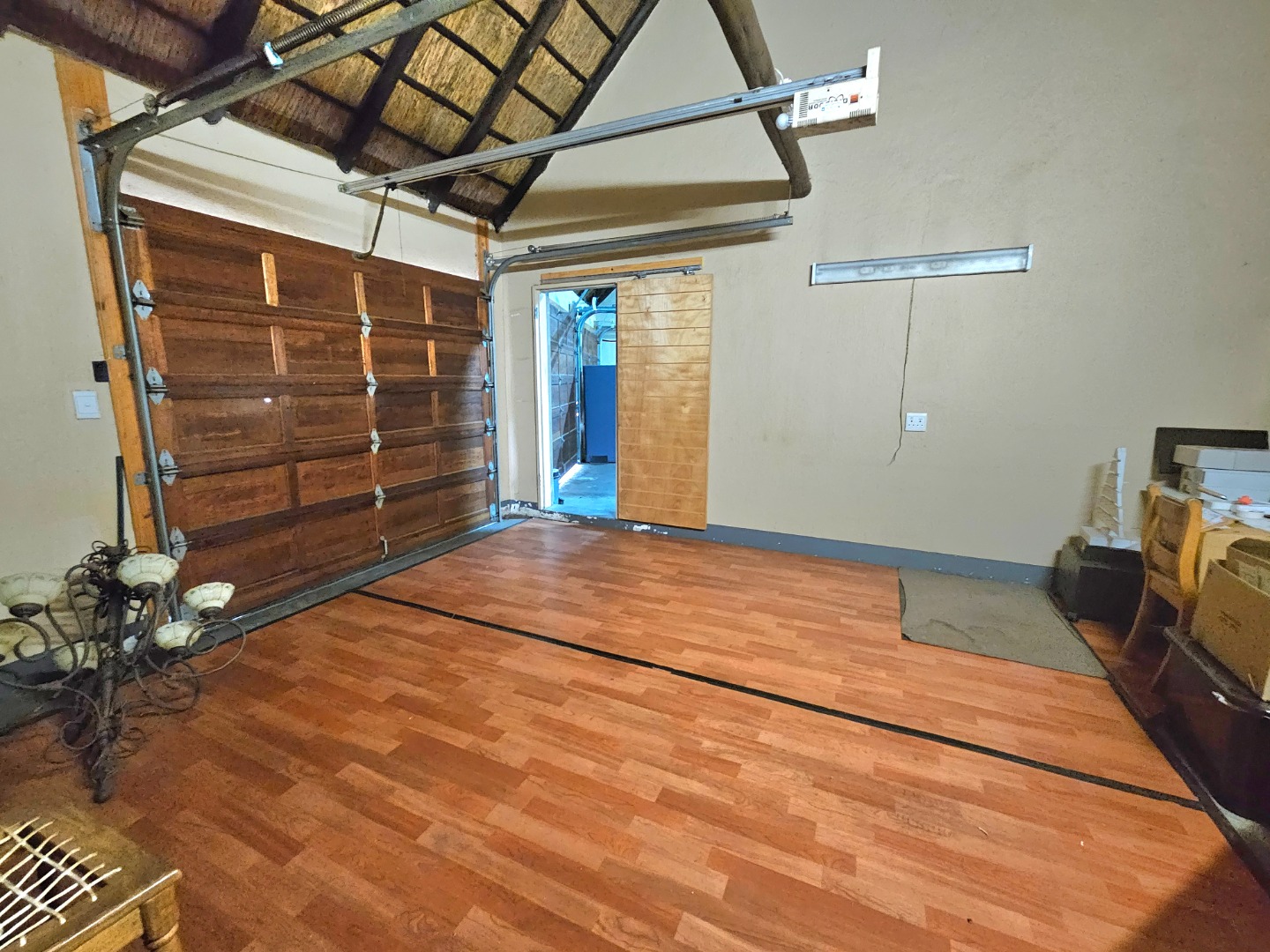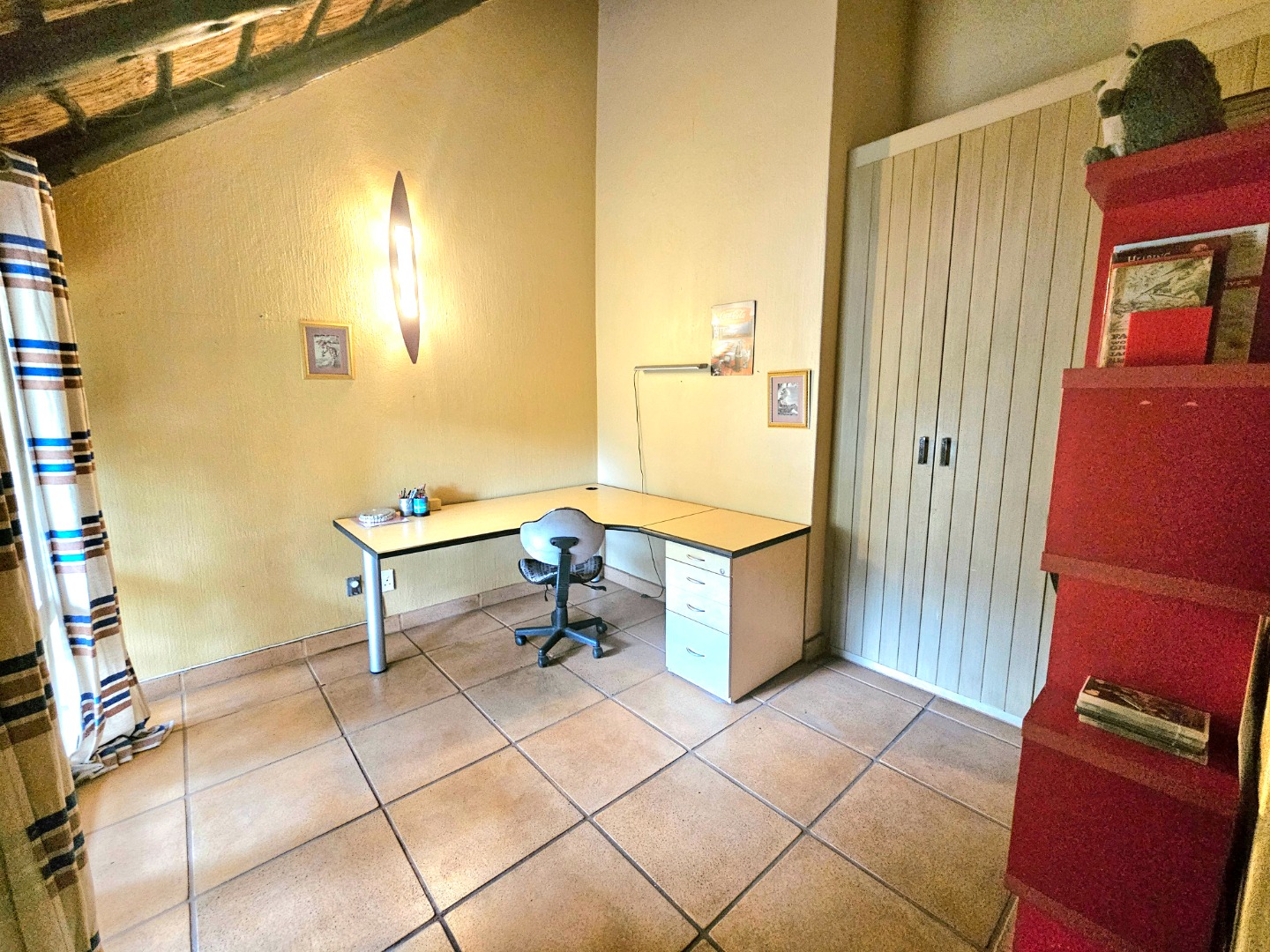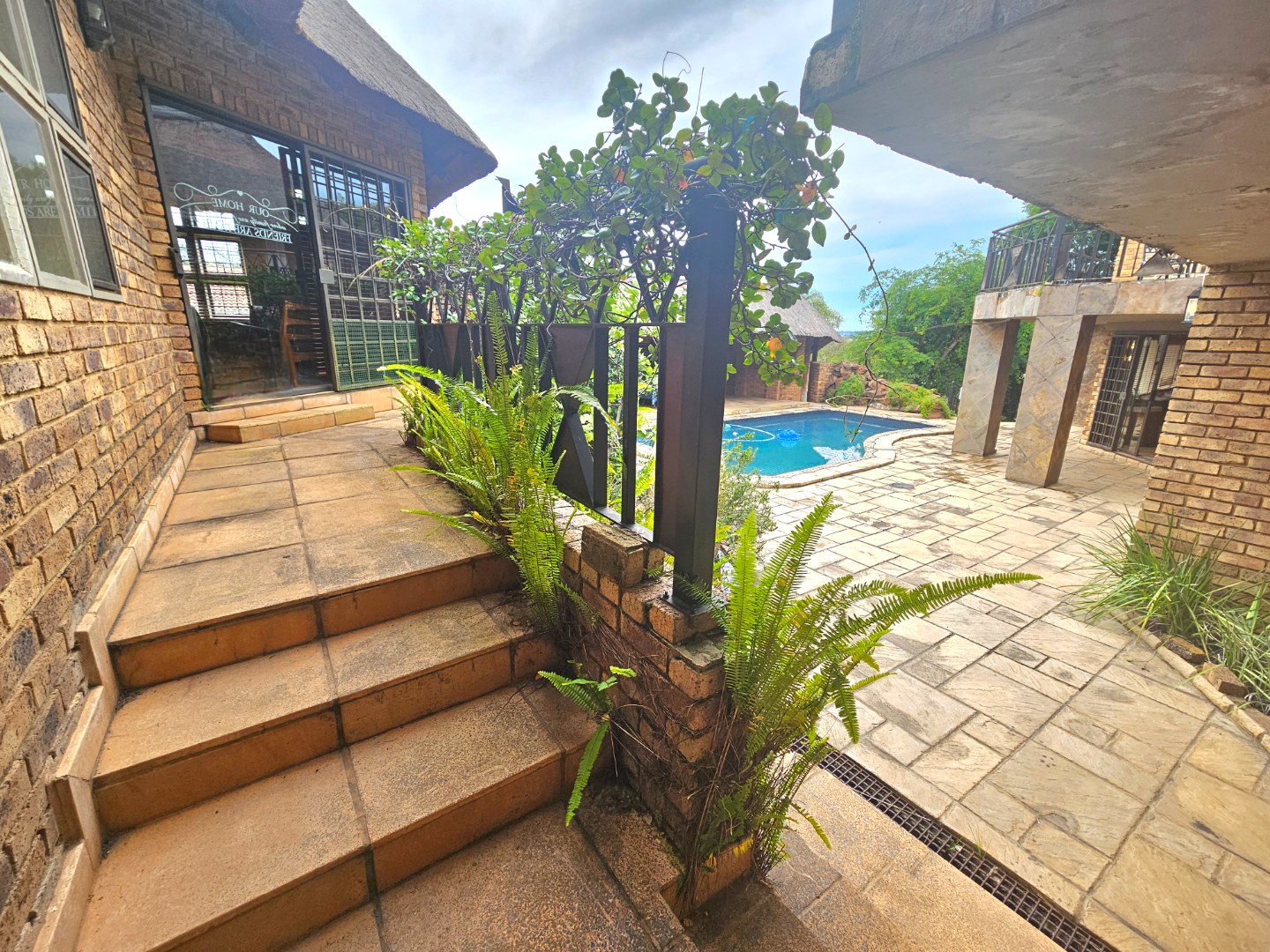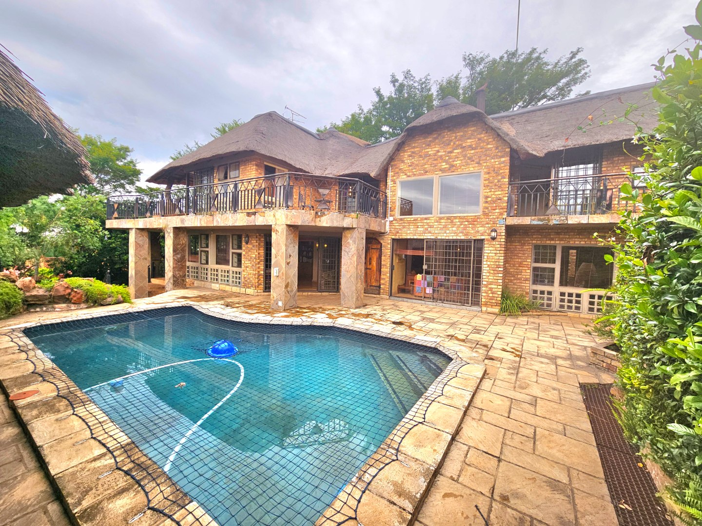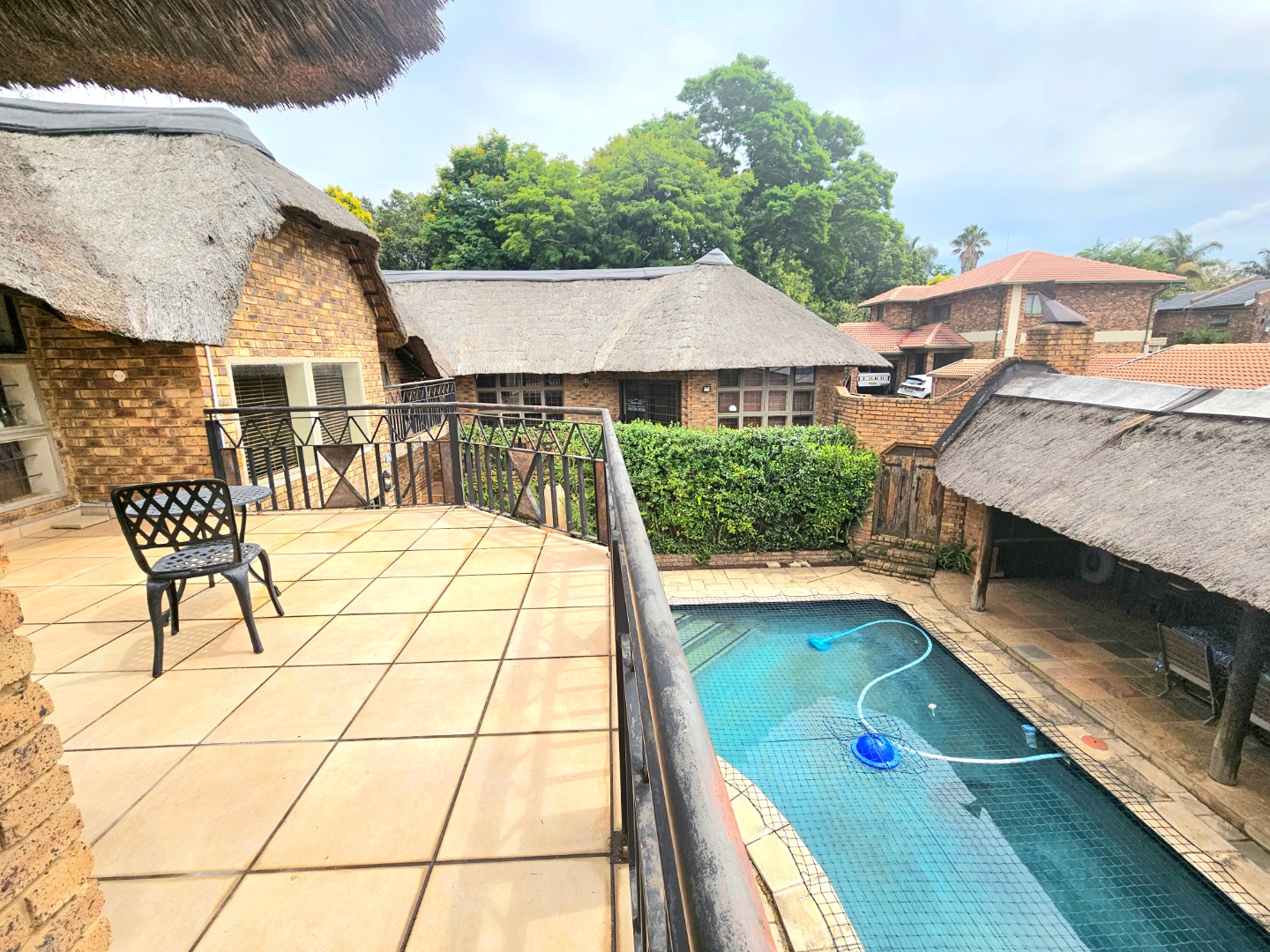 Embrace a holiday-style lifestyle in this charming thatched-roof home, offering a harmonious blend of rustic charm and contemporary living perfectly suited for entertaining family and friends. The property also offers two large additional rooms, ideal for use as home offices, studios, or versatile workspaces. A large carport further enhances the practicality of the home and can easily serve as a workshop or additional covered workspace for about six cars.