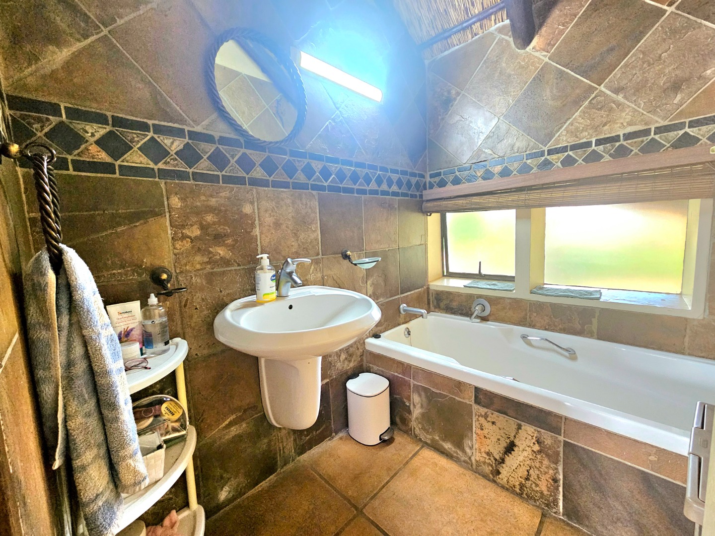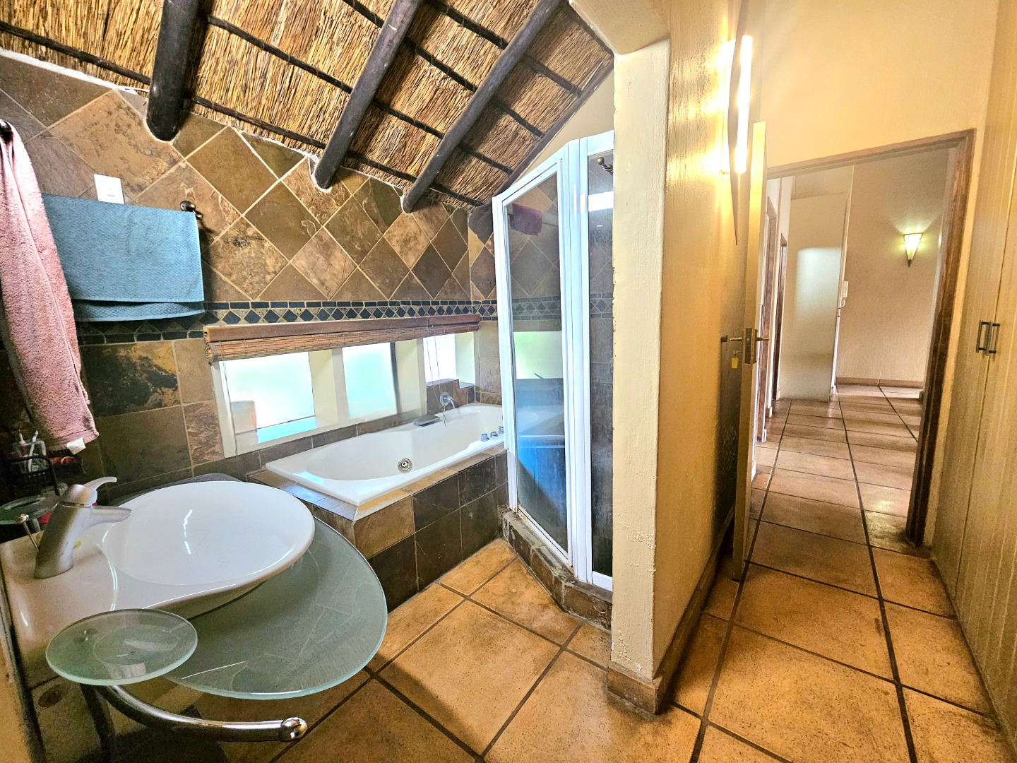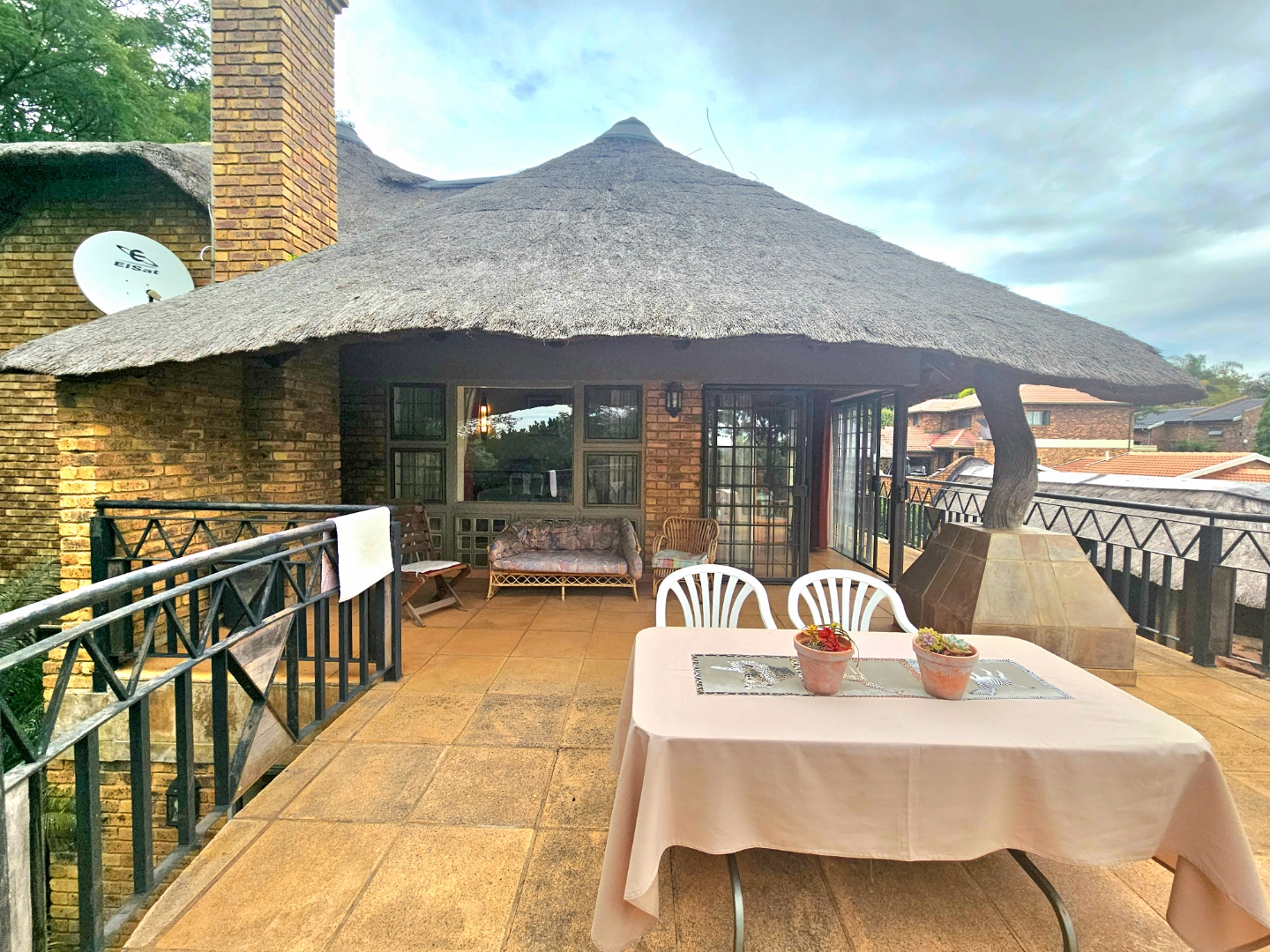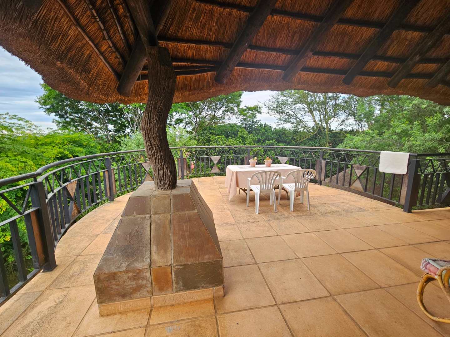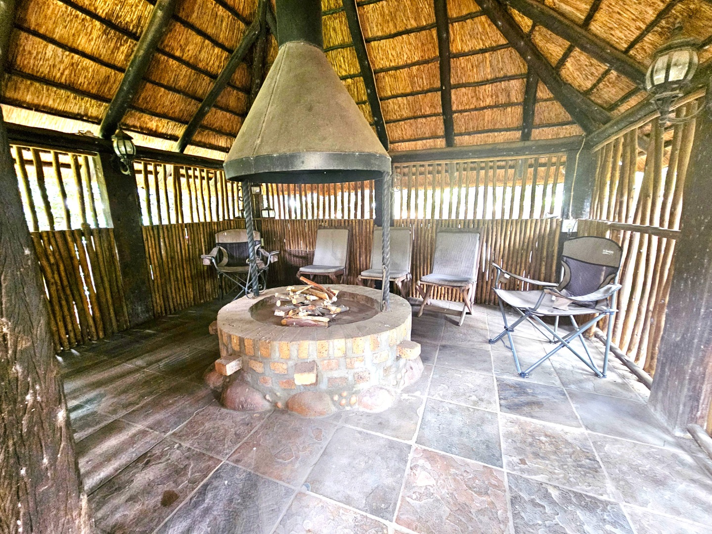 Embrace a holiday-style lifestyle in this charming thatched-roof home, offering a harmonious blend of rustic charm and contemporary living perfectly suited for entertaining family and friends. The property also offers two large additional rooms, ideal for use as home offices, studios, or versatile workspaces. A large carport further enhances the practicality of the home and can easily serve as a workshop or additional covered workspace for about six cars.