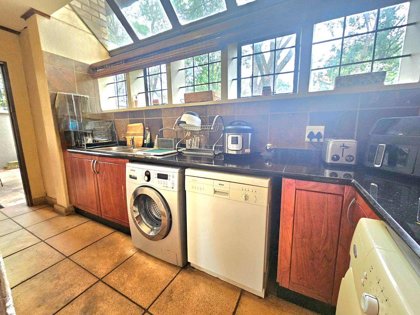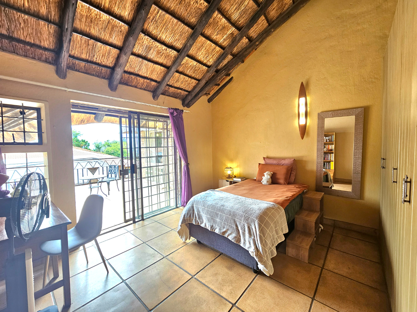 Step outside to enjoy the sparkling swimming pool and generous lapa, complete with its own built-in braai—ideal for hosting guests and enjoying warm summer days. A welcoming firepit provides an additional entertainment space, perfect for gathering with family and friends during cooler evenings.