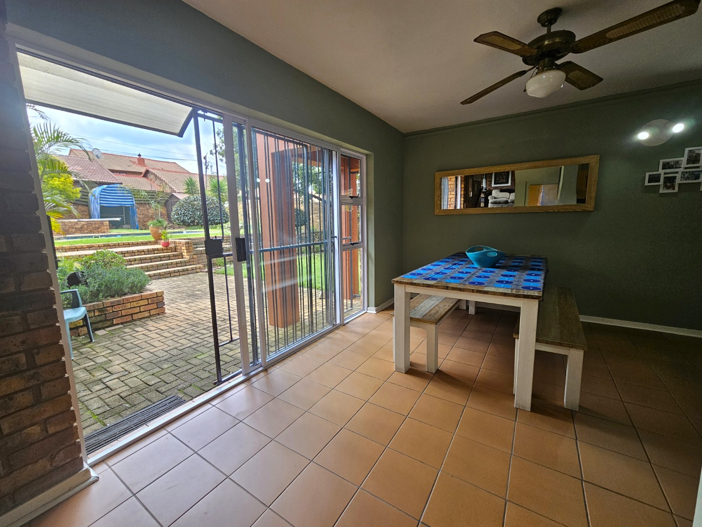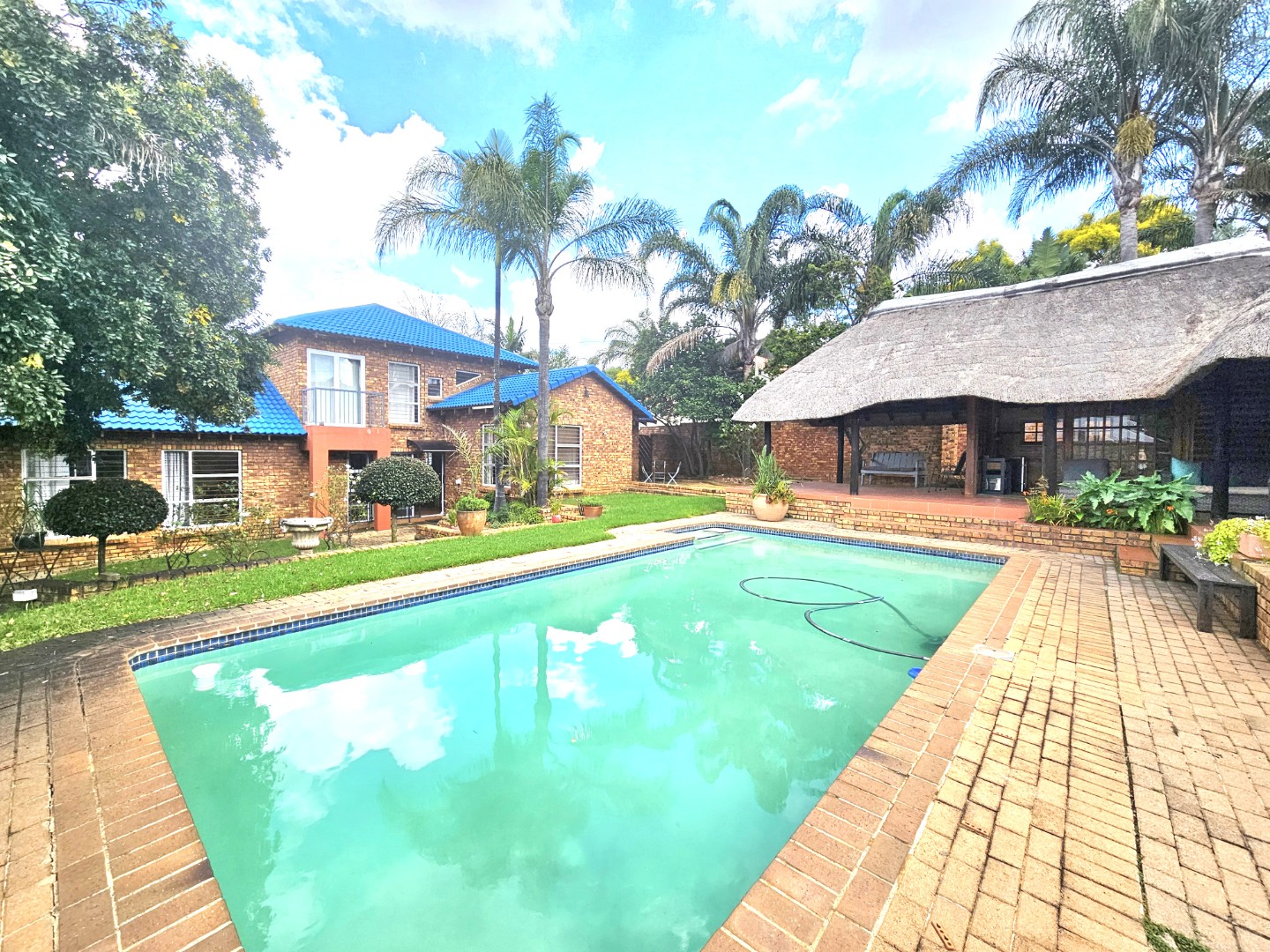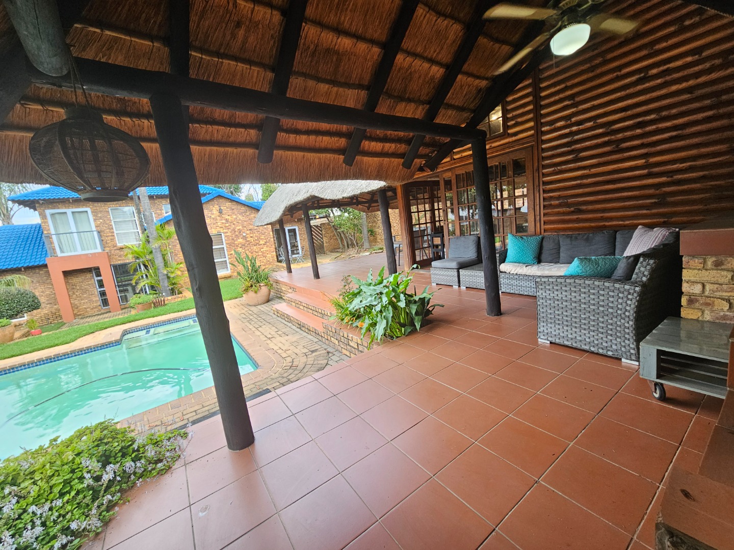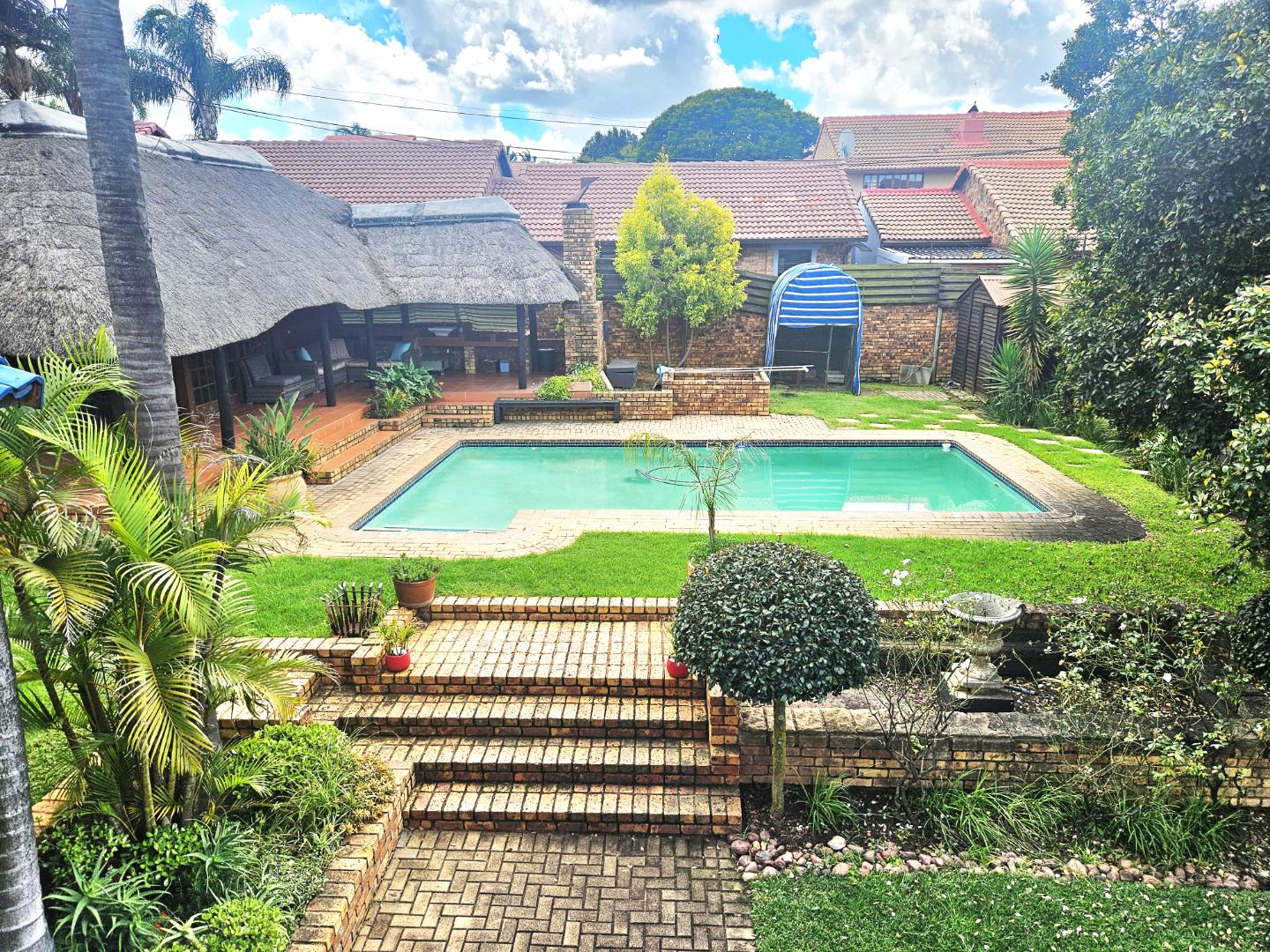 The exterior is equally impressive, featuring a a large lapa with an en-suite room, a built-in braai, meticulously maintained garden, a refreshing swimming pool, creating an idyllic setting for outdoor entertaining and relaxation. Pets are permitted, adding to the property's appeal as a comprehensive family home.