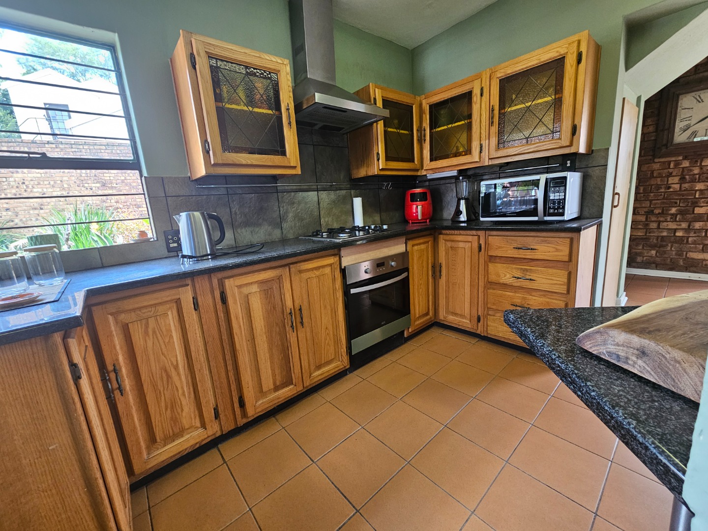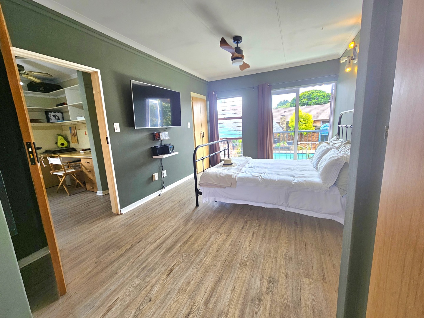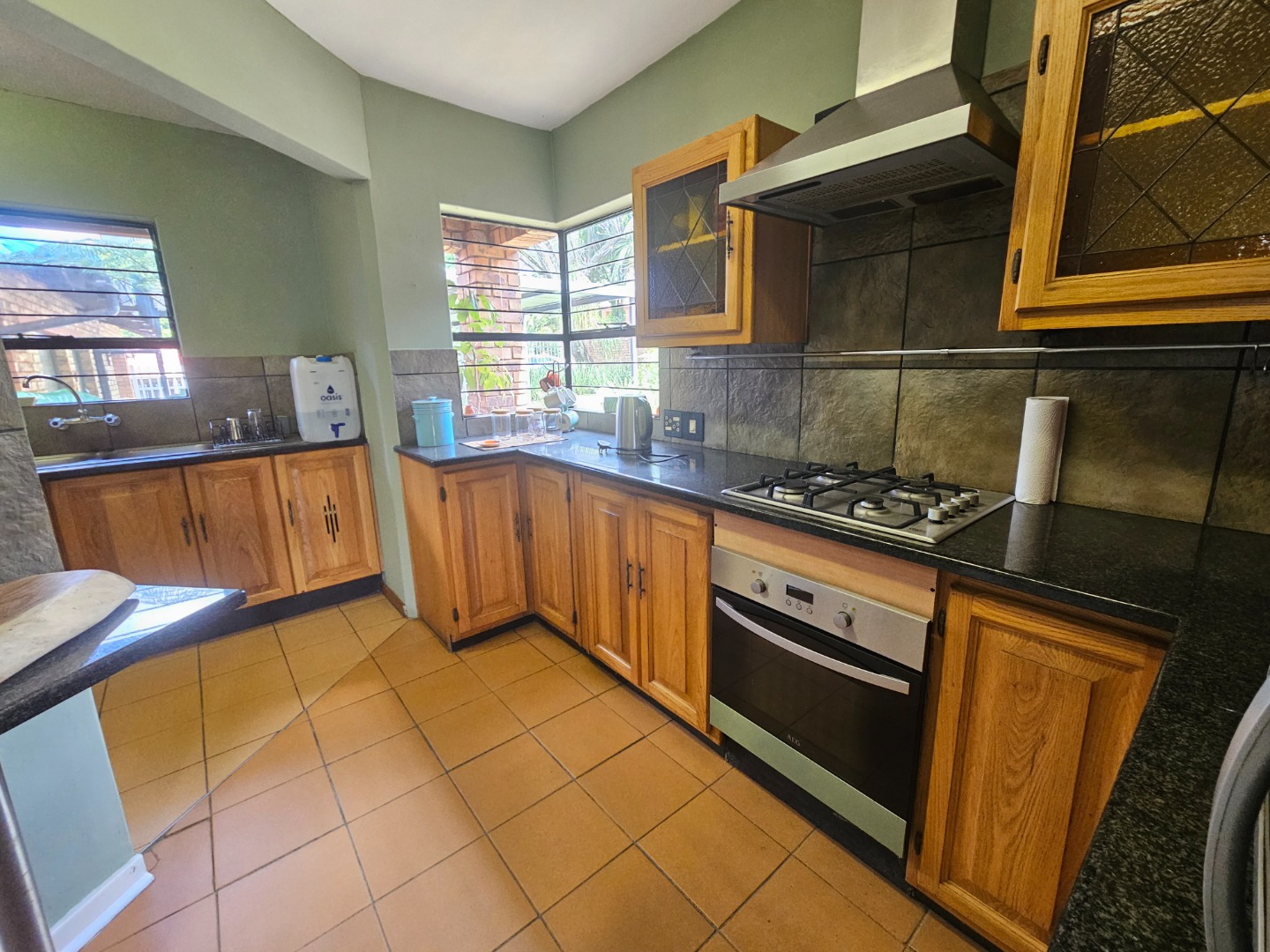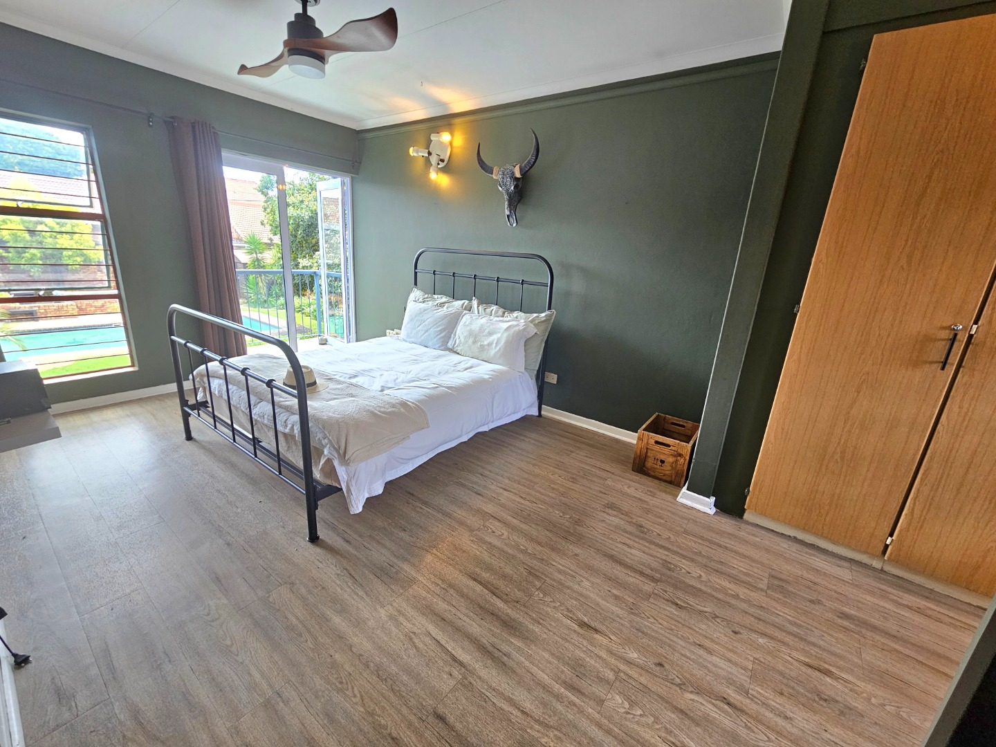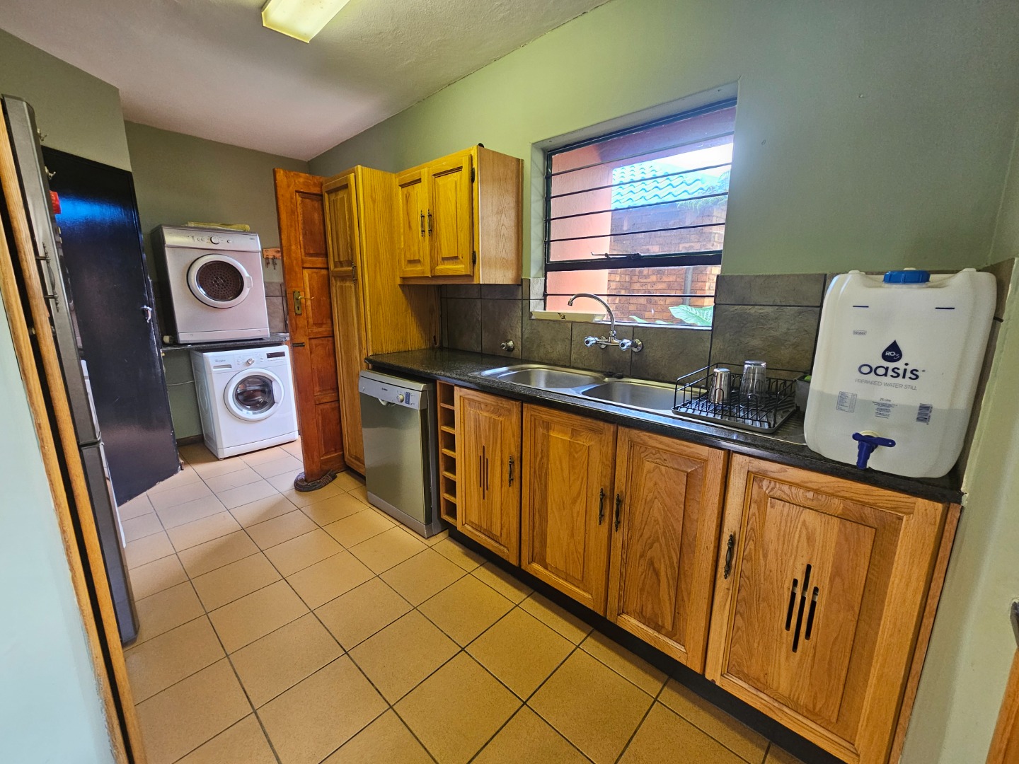 The exterior is equally impressive, featuring a a large lapa with an en-suite room, a built-in braai, meticulously maintained garden, a refreshing swimming pool, creating an idyllic setting for outdoor entertaining and relaxation. Pets are permitted, adding to the property's appeal as a comprehensive family home.