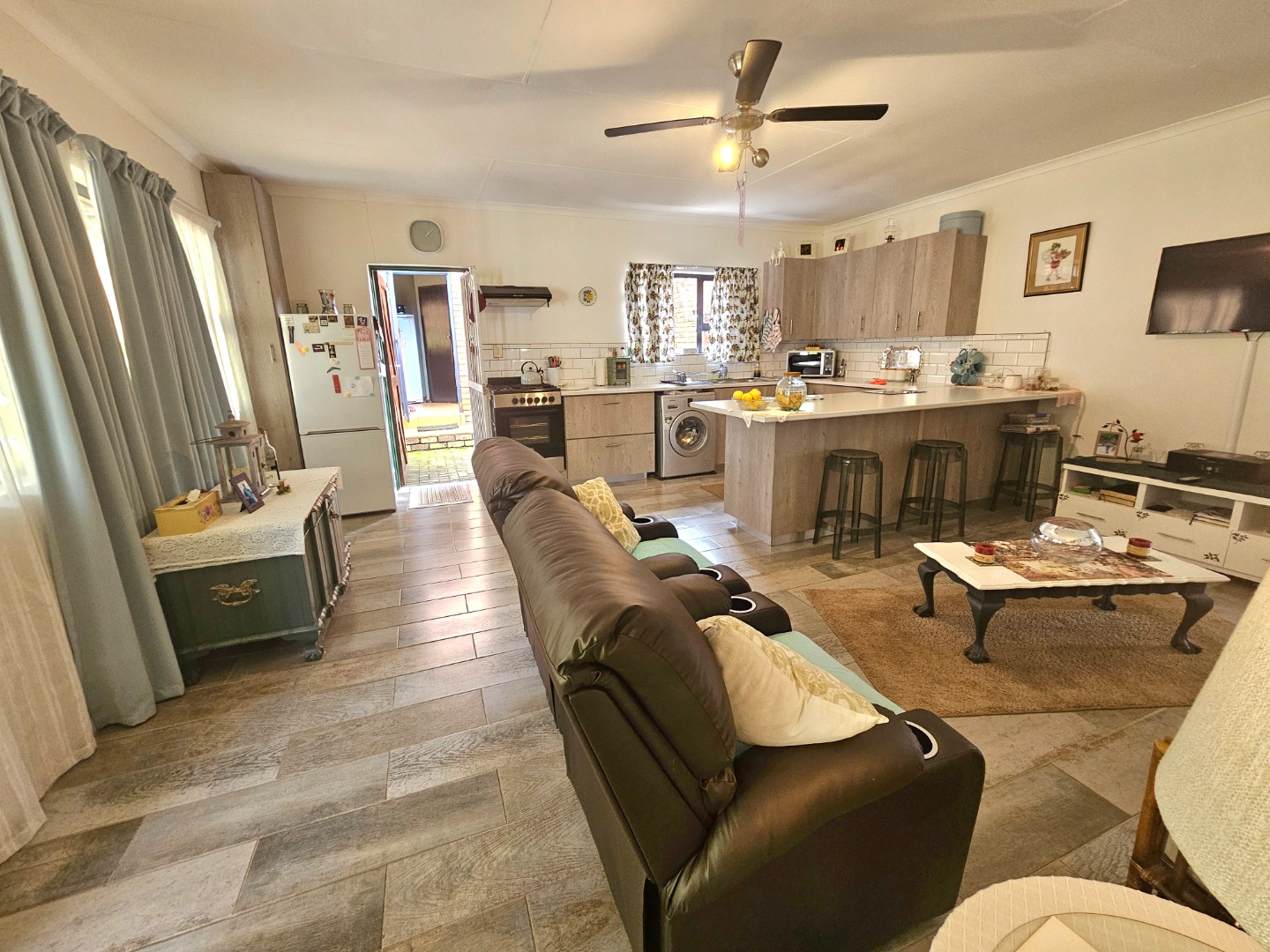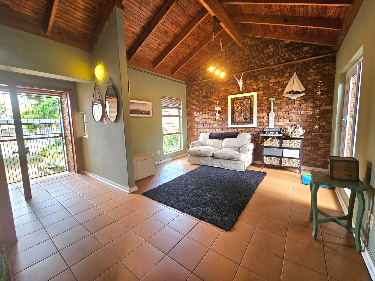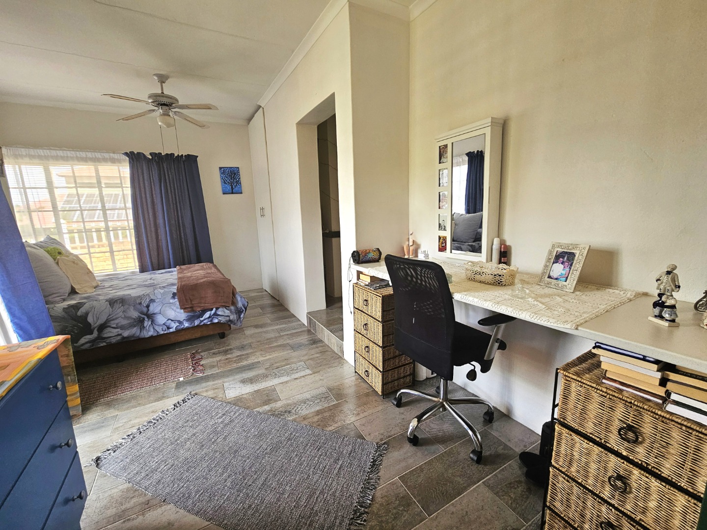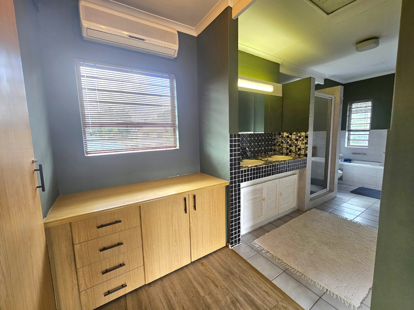 The exterior is equally impressive, featuring a a large lapa with an en-suite room, a built-in braai, meticulously maintained garden, a refreshing swimming pool, creating an idyllic setting for outdoor entertaining and relaxation. Pets are permitted, adding to the property's appeal as a comprehensive family home.